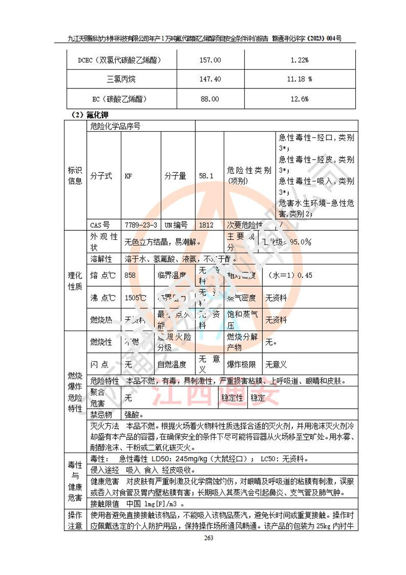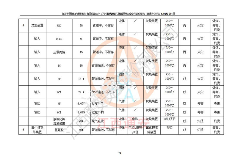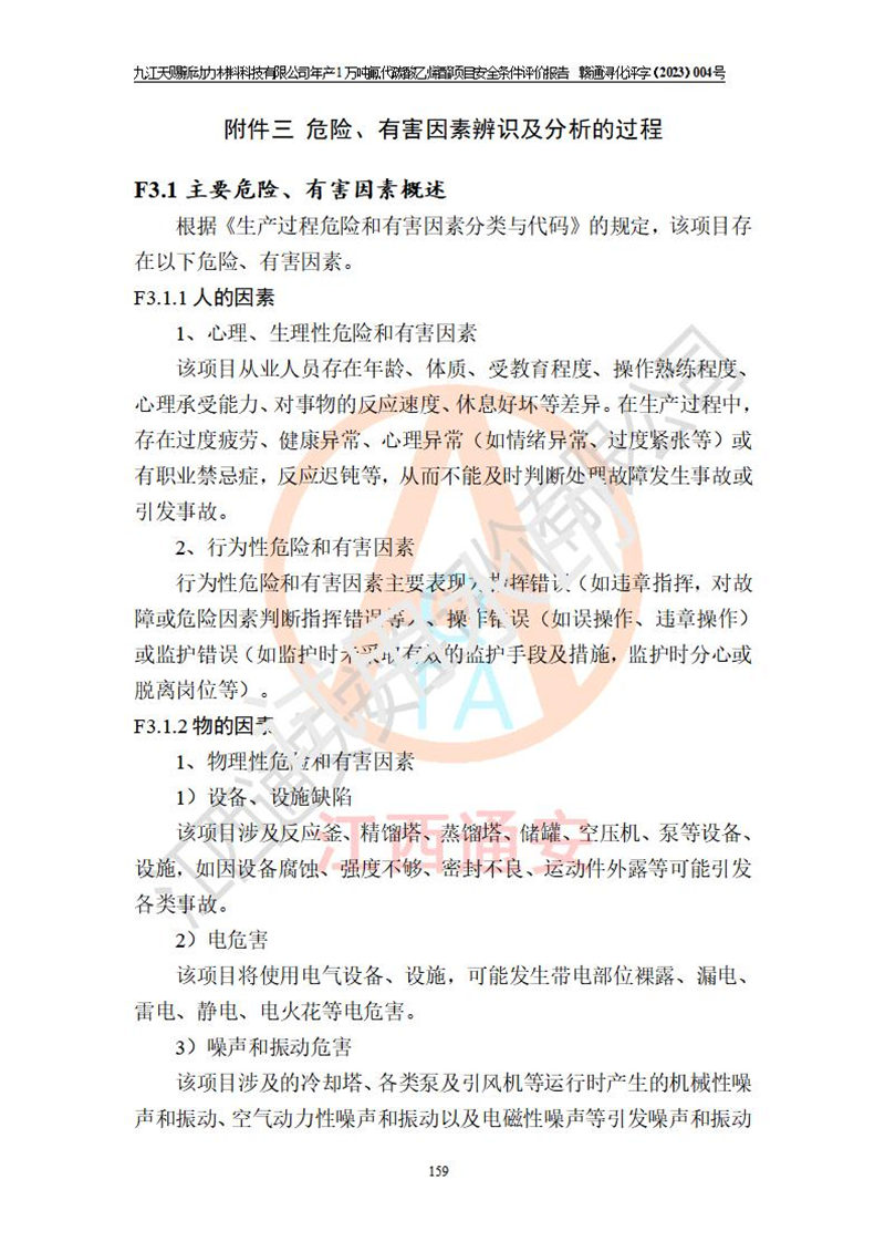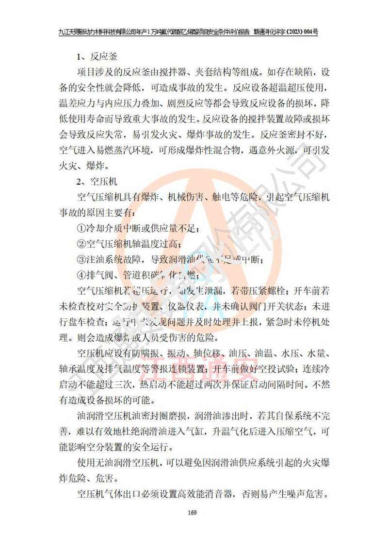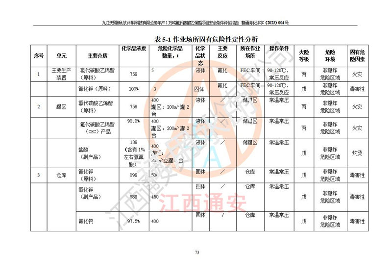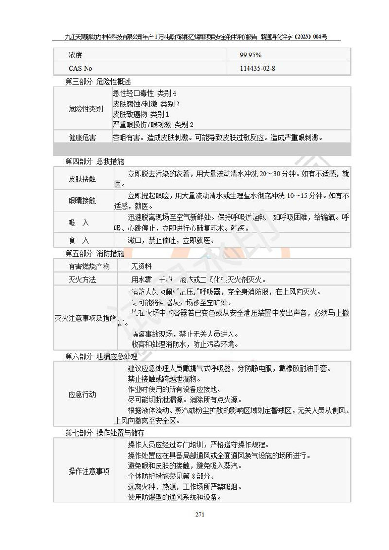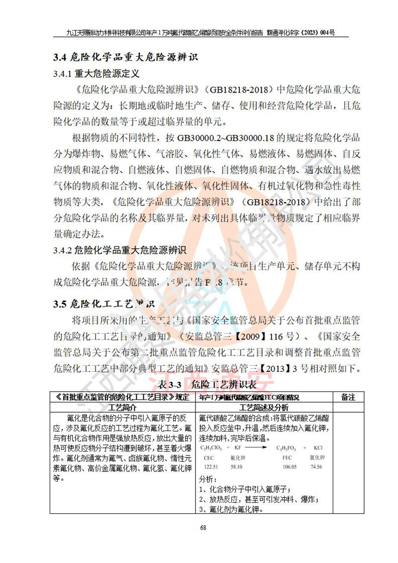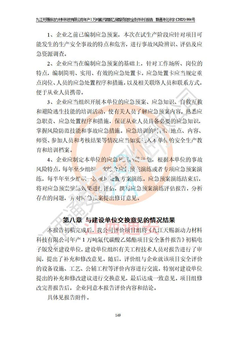 評價報告名稱 | 九江天賜新動力材料科技有限公司年產(chǎn)1萬噸氟代碳酸乙烯酯項目安全條件評價報告 | ||||