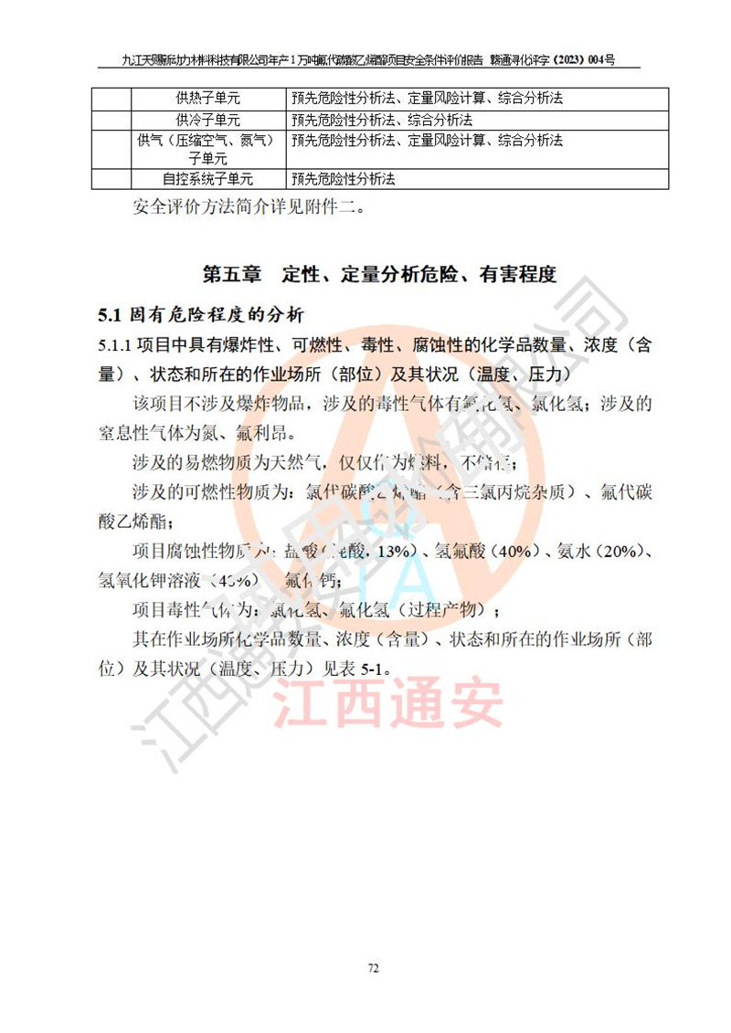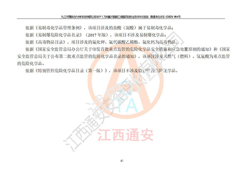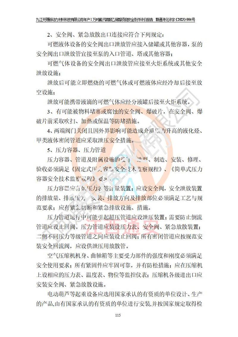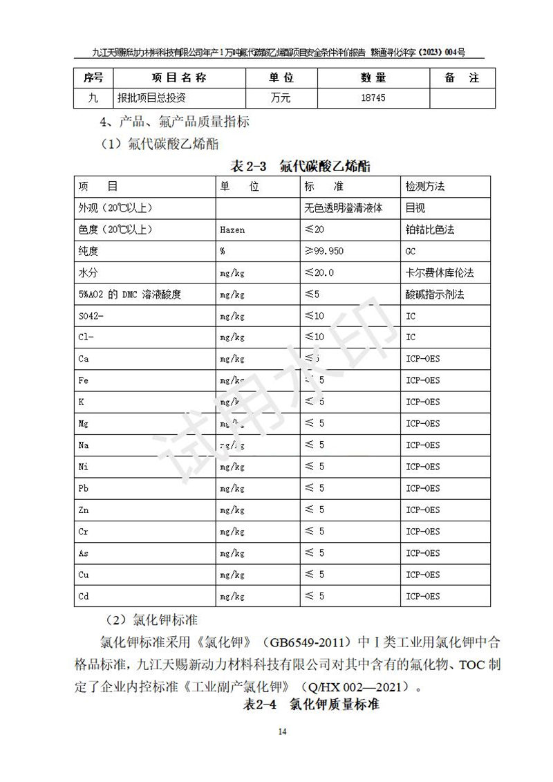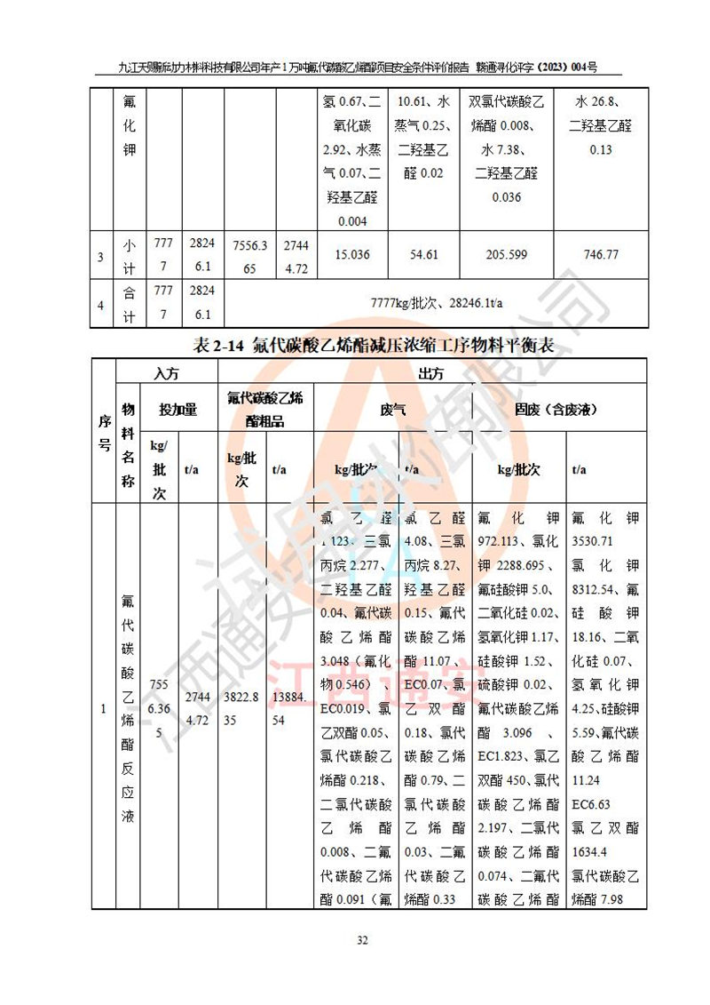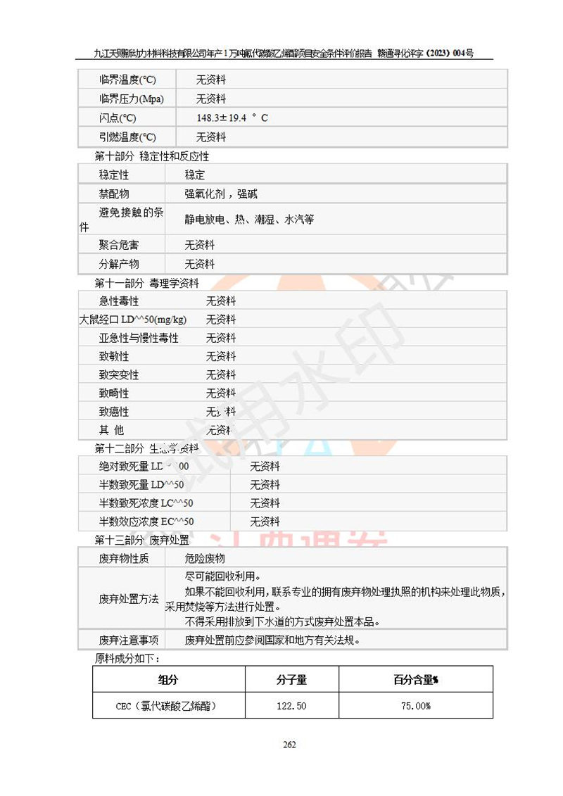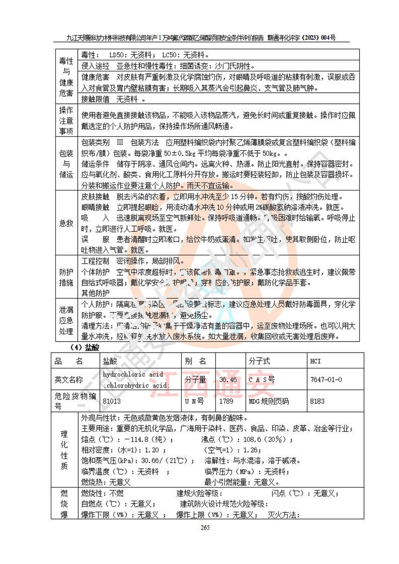 評價報告名稱 | 九江天賜新動力材料科技有限公司年產(chǎn)1萬噸氟代碳酸乙烯酯項目安全條件評價報告 | ||||