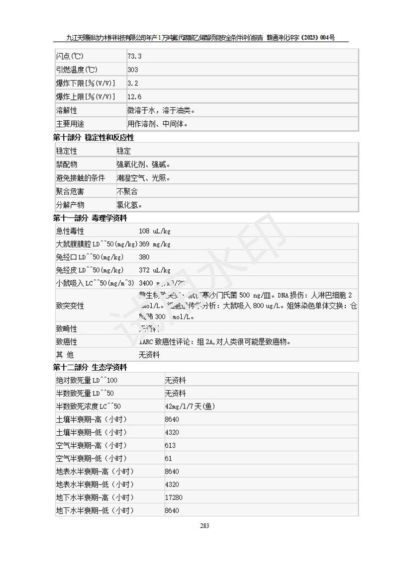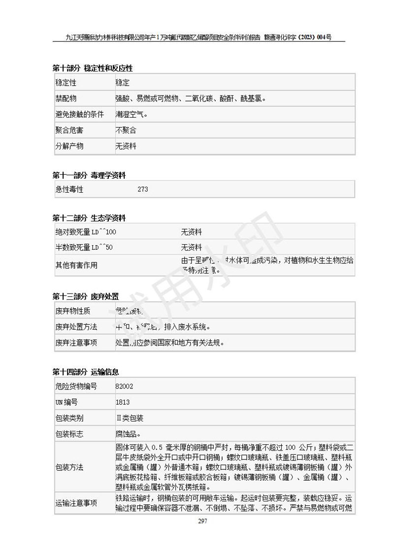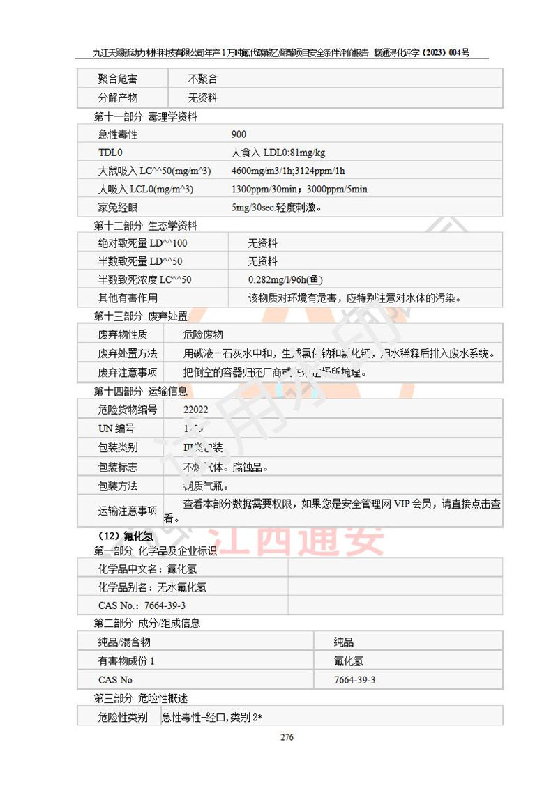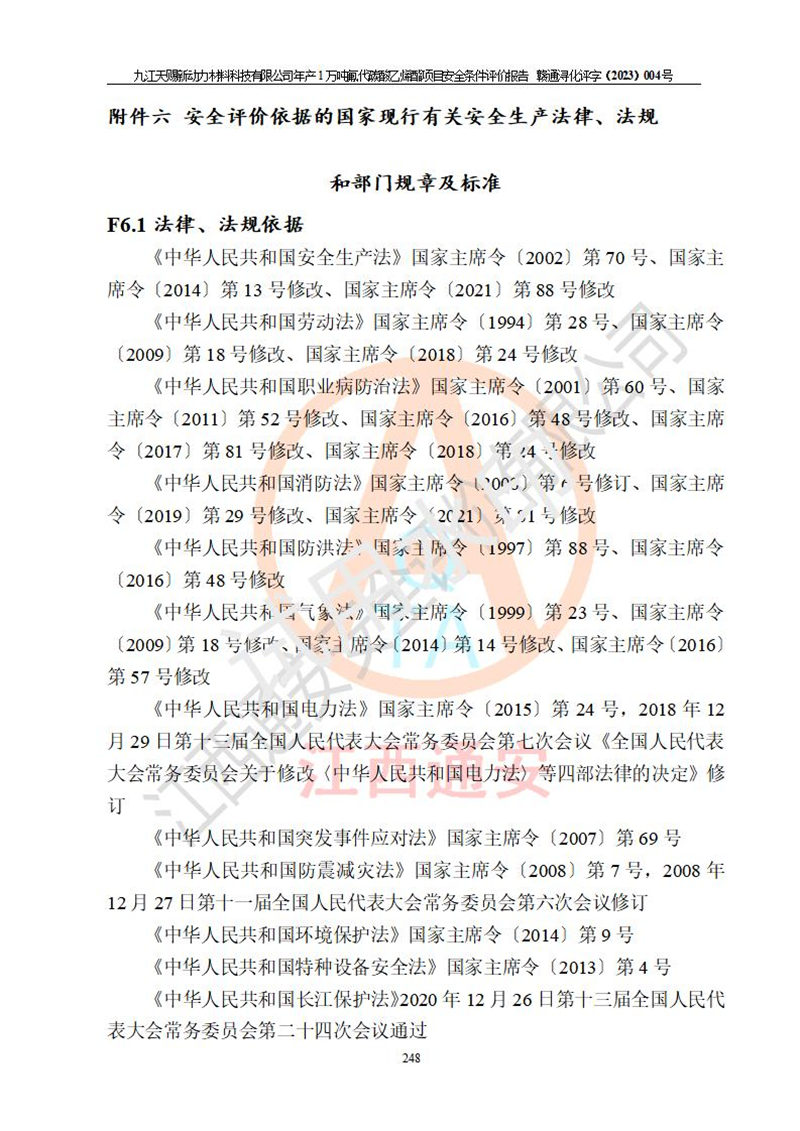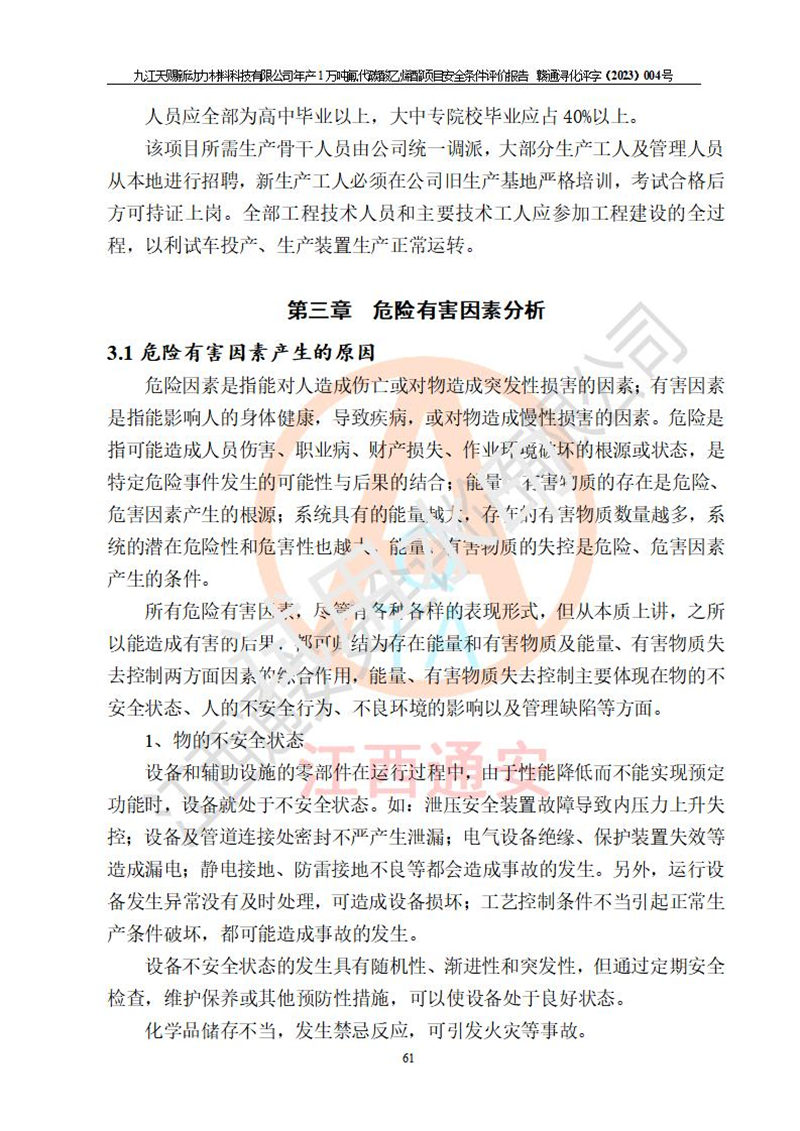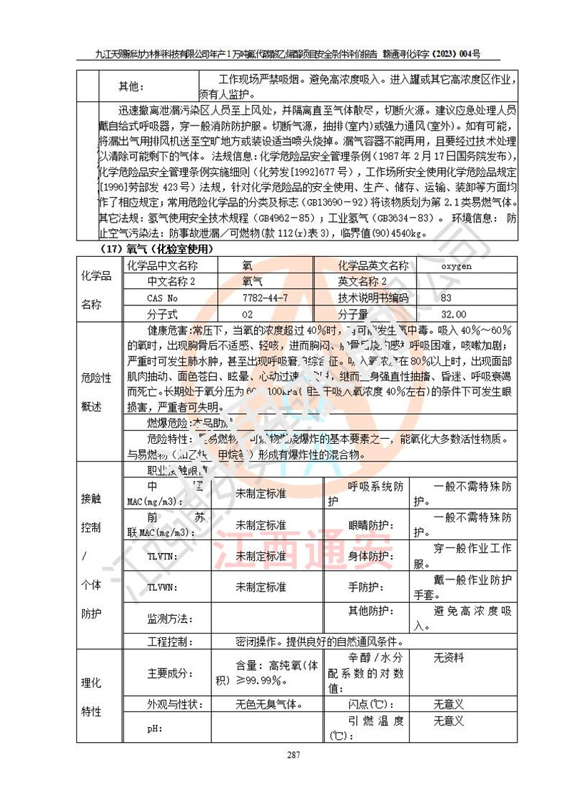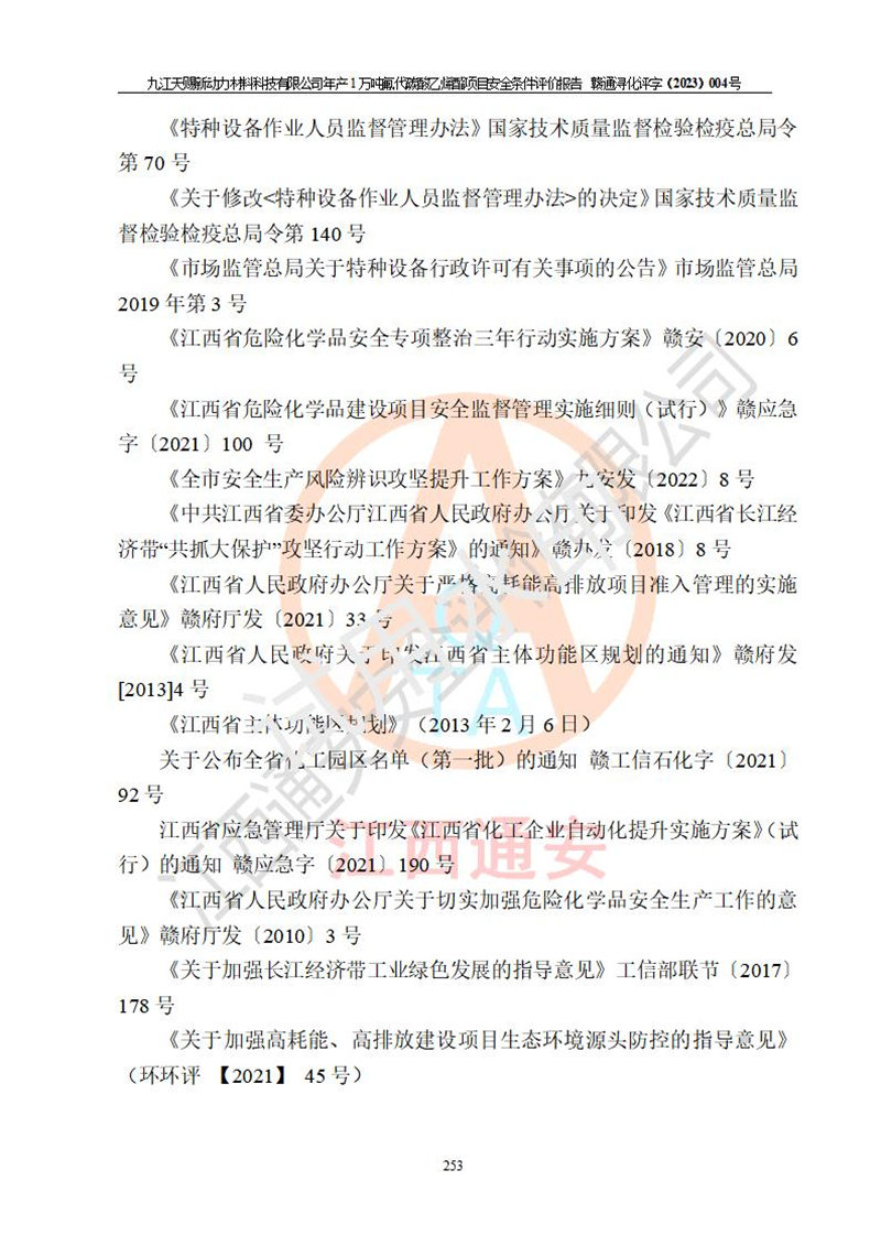 評價報告名稱 | 九江天賜新動力材料科技有限公司年產(chǎn)1萬噸氟代碳酸乙烯酯項目安全條件評價報告 | ||||