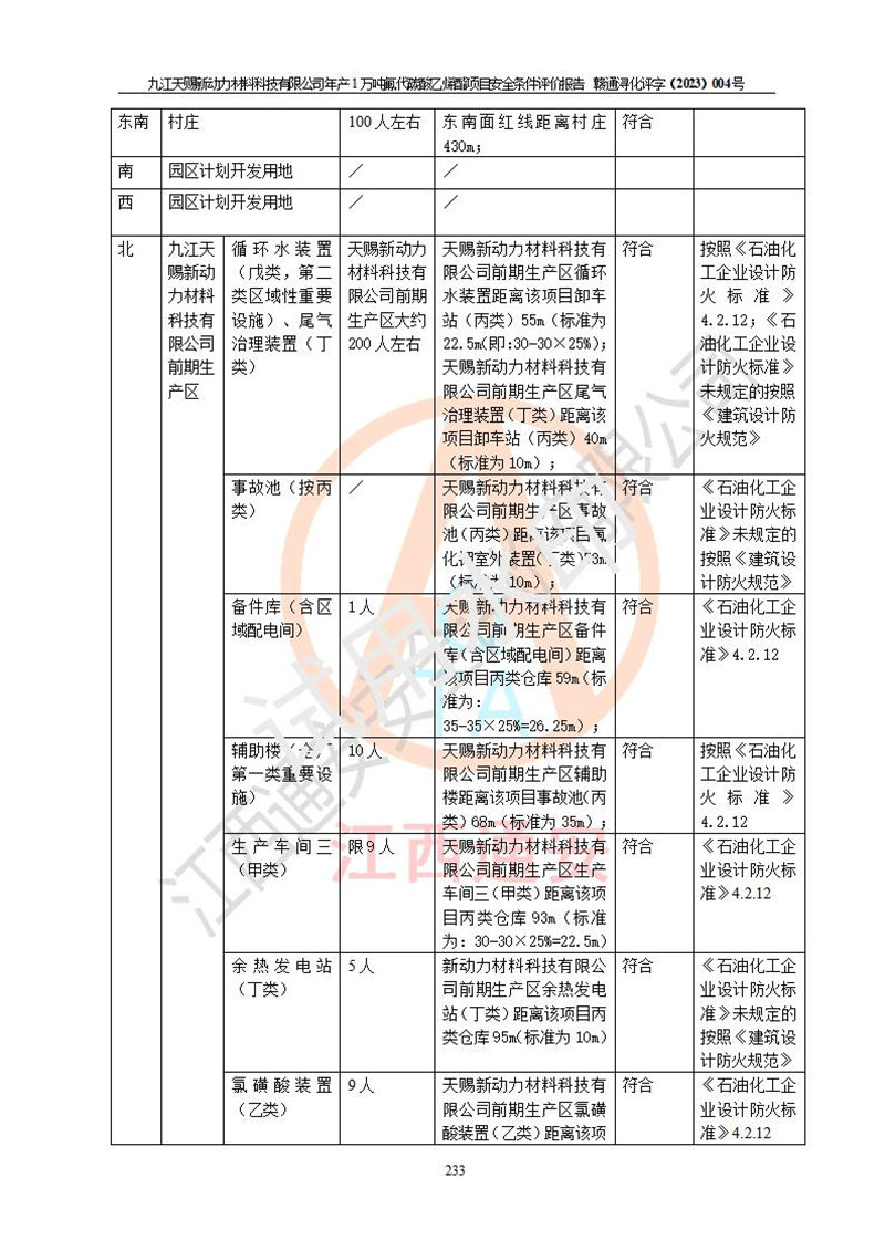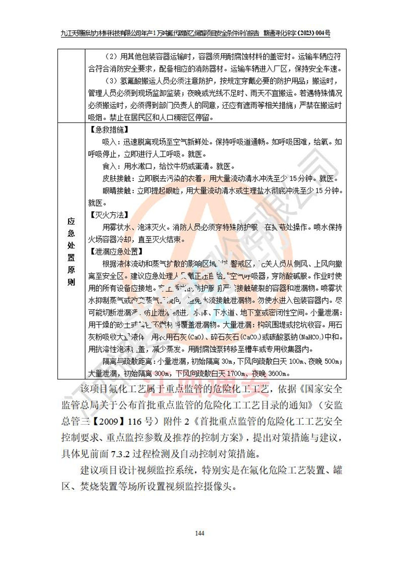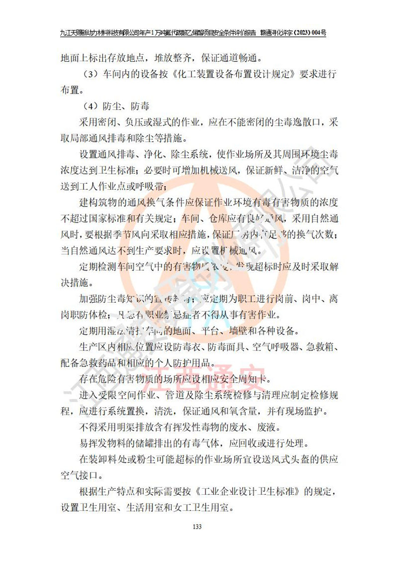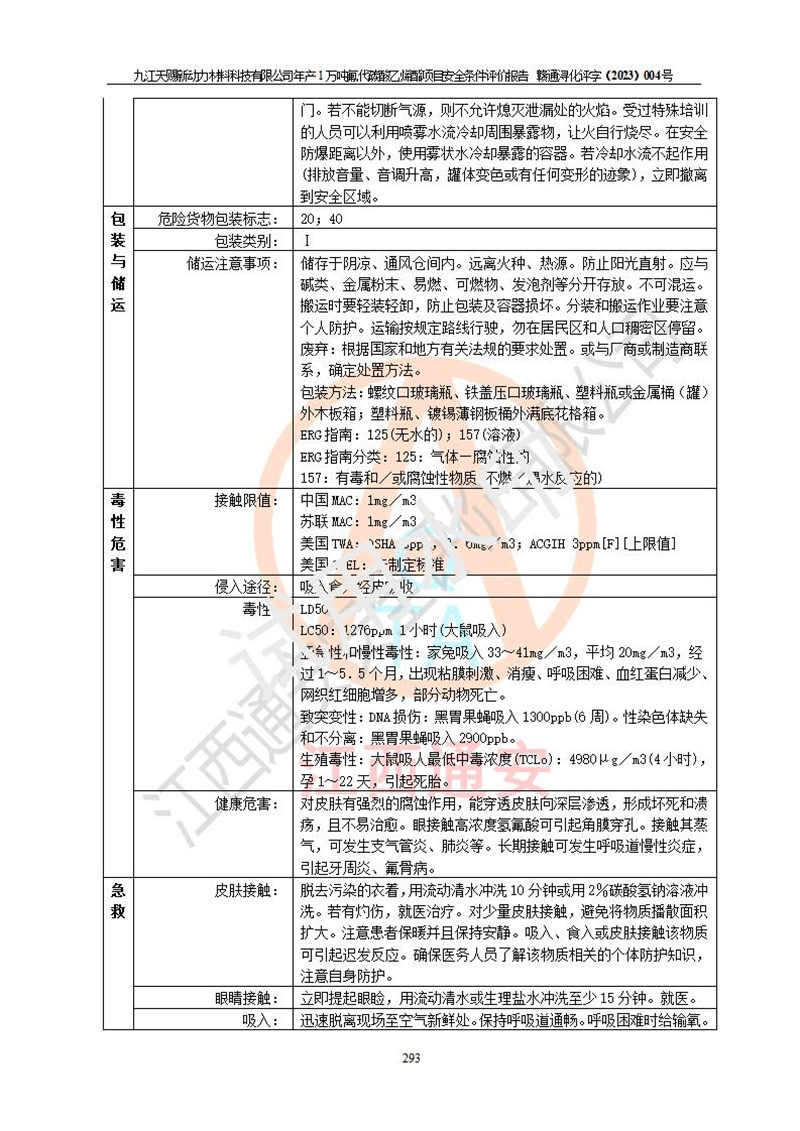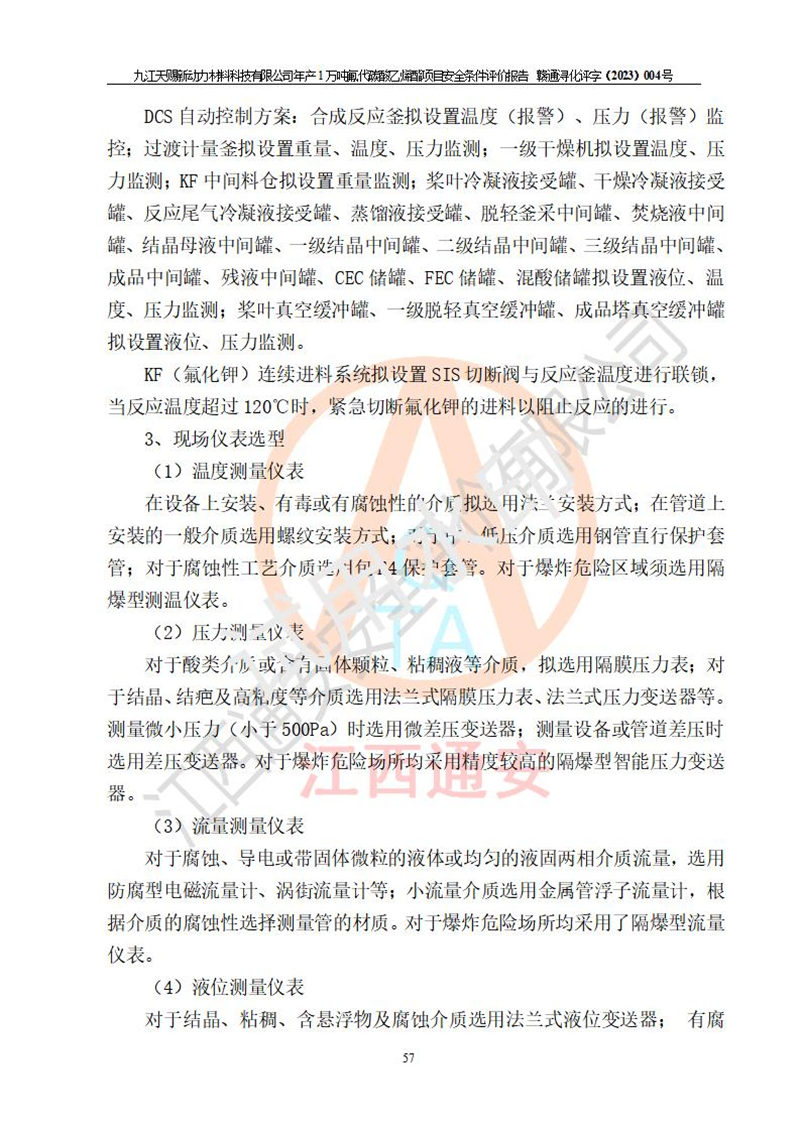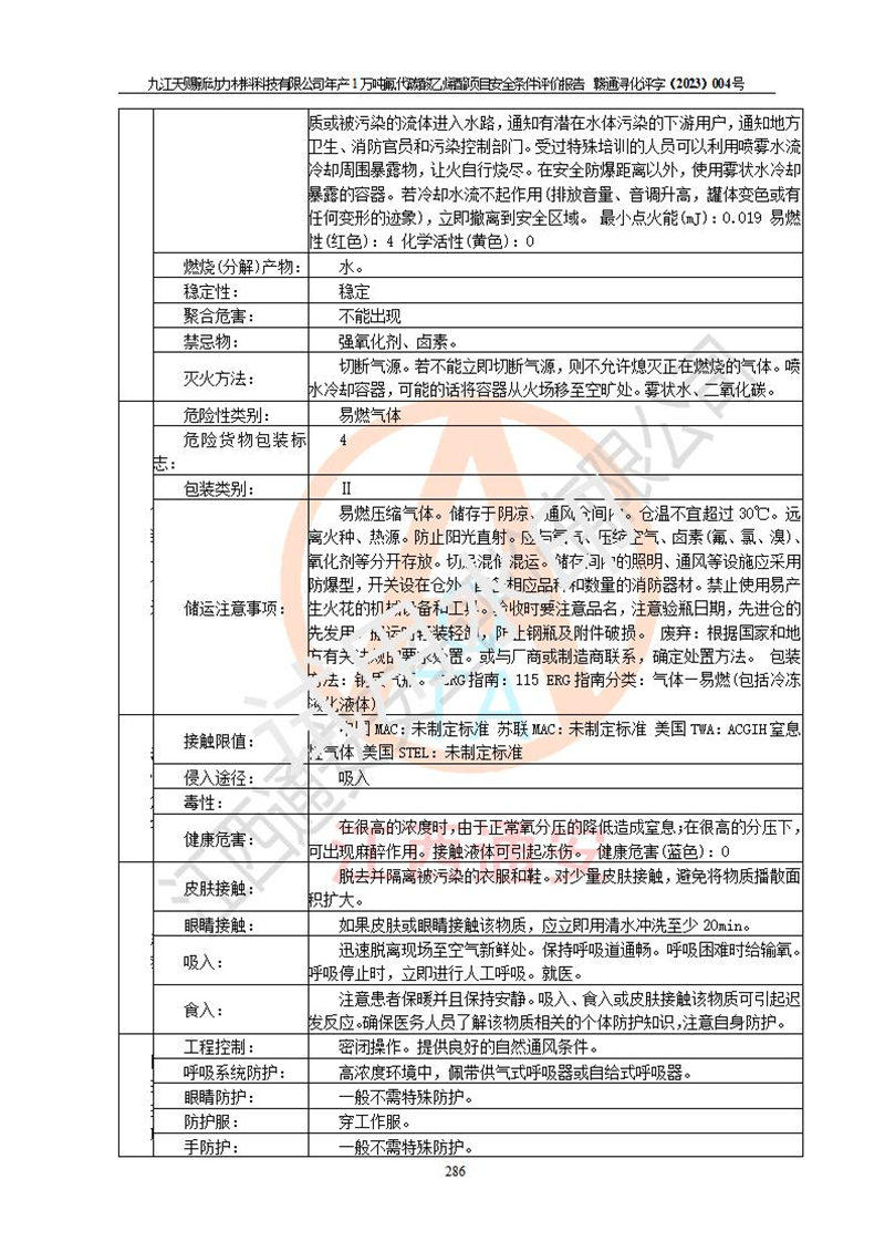 評價結(jié)論 | 九江天賜新動力材料科技有限公司年產(chǎn)1萬噸氟代碳酸乙烯酯項目安全條件、廠址、總體布局、主要技術(shù)和工藝、裝置、設(shè)施、配套和輔助工程、安全管理等均滿足安全生產(chǎn)相關(guān)法律法規(guī)、標(biāo)準(zhǔn)規(guī)范的要求。該建設(shè)項目的危險、有害因素可得到**控制,風(fēng)險在可接受范圍內(nèi),具有**的本質(zhì)安 全水平。企業(yè)應(yīng)認(rèn)真落實本報告提出的安全對策與建議,在下一步設(shè)計、建設(shè)施工過程中嚴(yán)把質(zhì)量關(guān)、嚴(yán)格施工安全管理和檢查,使各項安全措施落實到實處,且嚴(yán)格執(zhí)行建設(shè)項目安全設(shè)施“三同時”的規(guī)定,建立**的事故應(yīng)急體系和措施。 | ||||