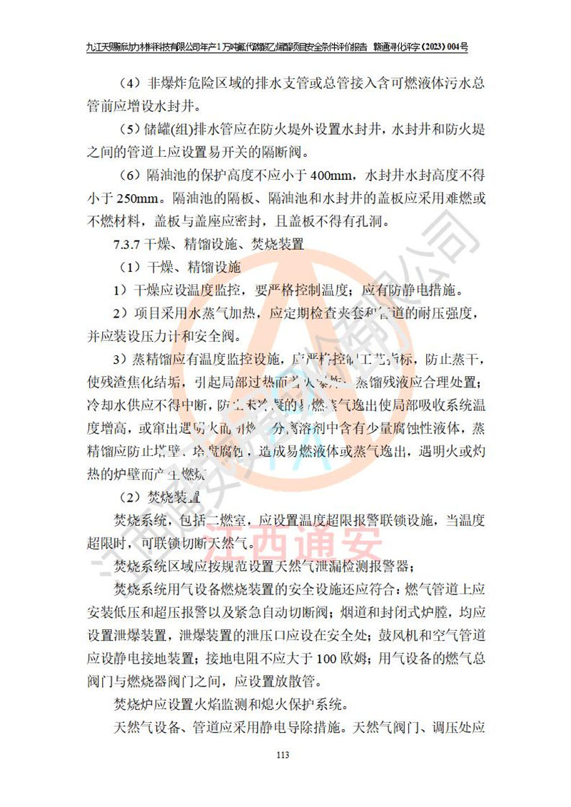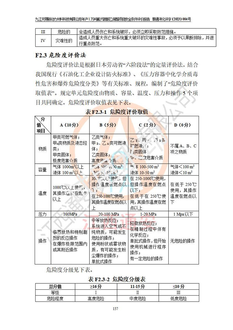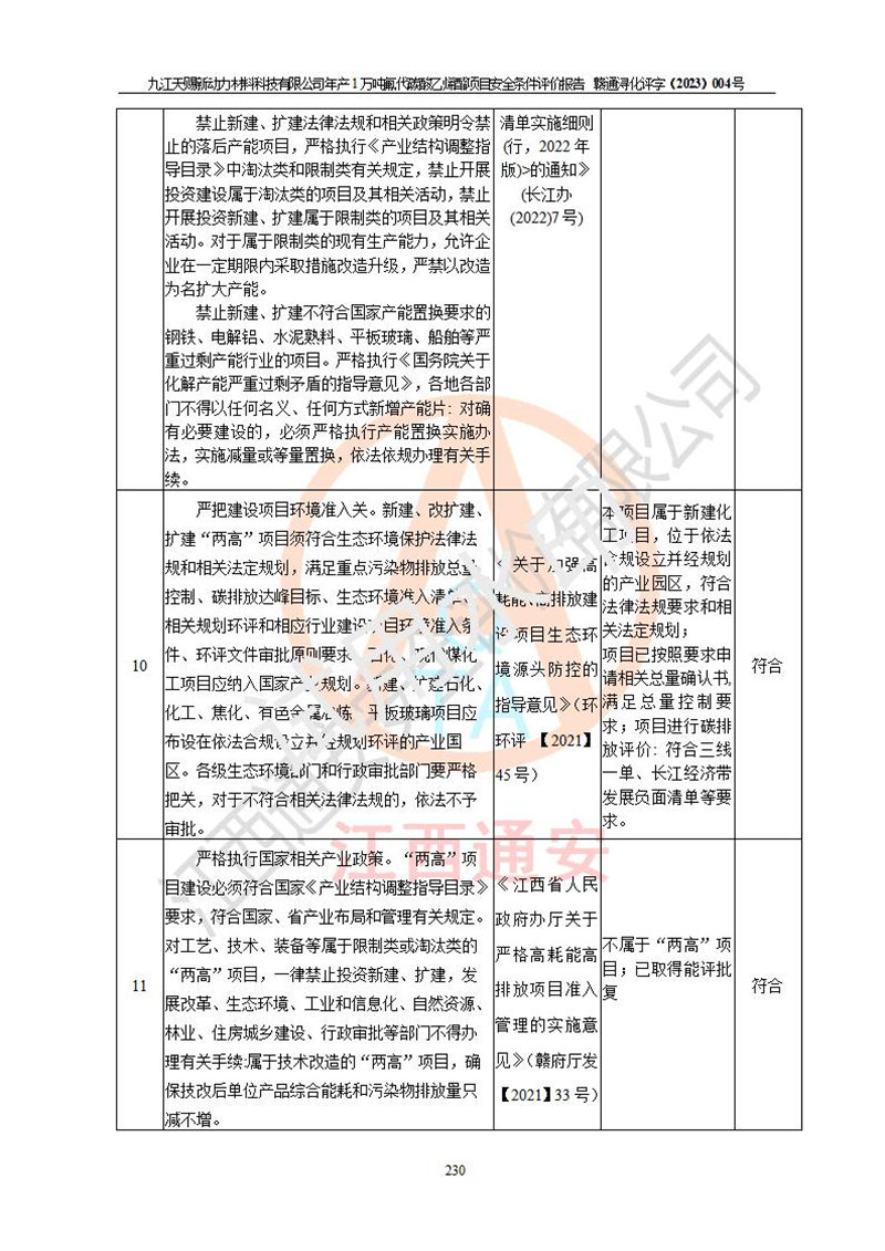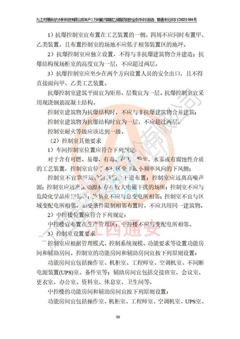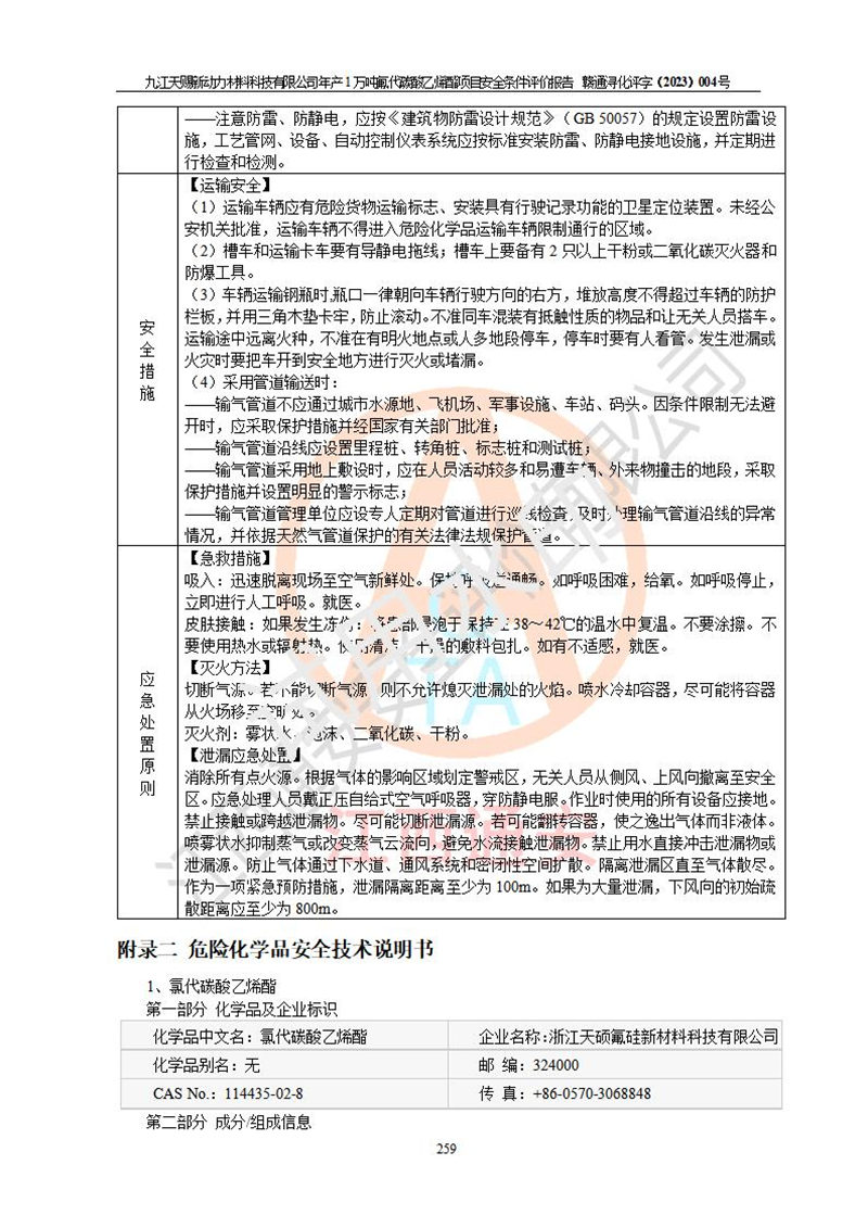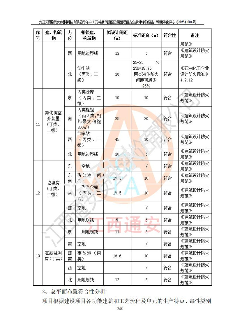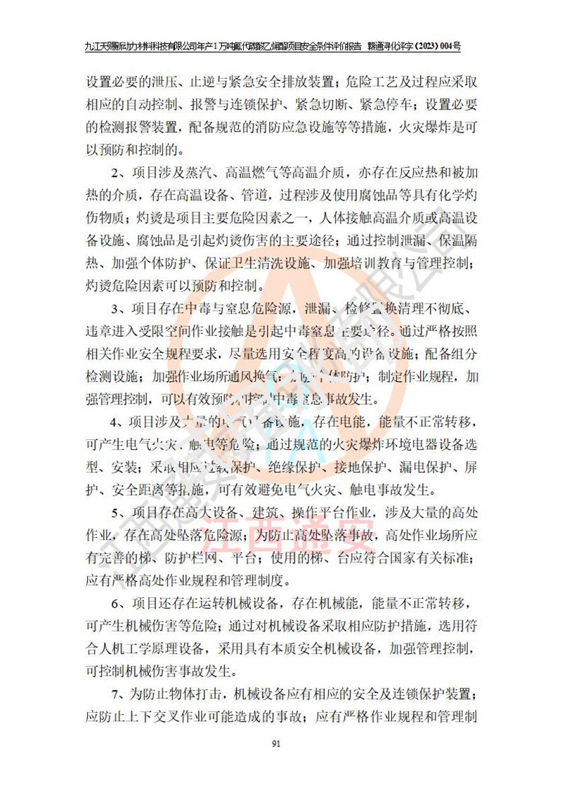 評價結(jié)論 | 九江天賜新動力材料科技有限公司年產(chǎn)1萬噸氟代碳酸乙烯酯項目安全條件、廠址、總體布局、主要技術(shù)和工藝、裝置、設(shè)施、配套和輔助工程、安全管理等均滿足安全生產(chǎn)相關(guān)法律法規(guī)、標(biāo)準(zhǔn)規(guī)范的要求。該建設(shè)項目的危險、有害因素可得到**控制,風(fēng)險在可接受范圍內(nèi),具有**的本質(zhì)安 全水平。企業(yè)應(yīng)認(rèn)真落實本報告提出的安全對策與建議,在下一步設(shè)計、建設(shè)施工過程中嚴(yán)把質(zhì)量關(guān)、嚴(yán)格施工安全管理和檢查,使各項安全措施落實到實處,且嚴(yán)格執(zhí)行建設(shè)項目安全設(shè)施“三同時”的規(guī)定,建立**的事故應(yīng)急體系和措施。 | ||||