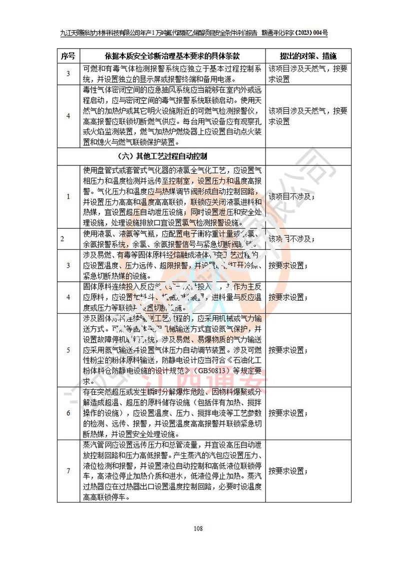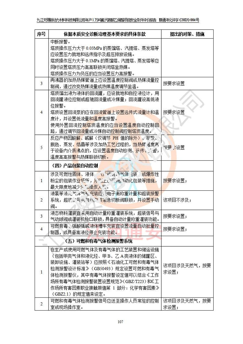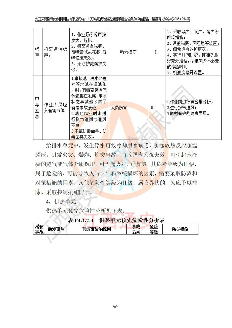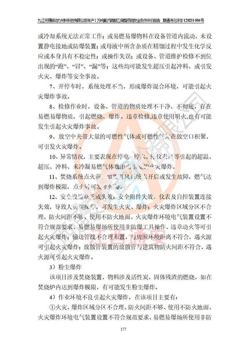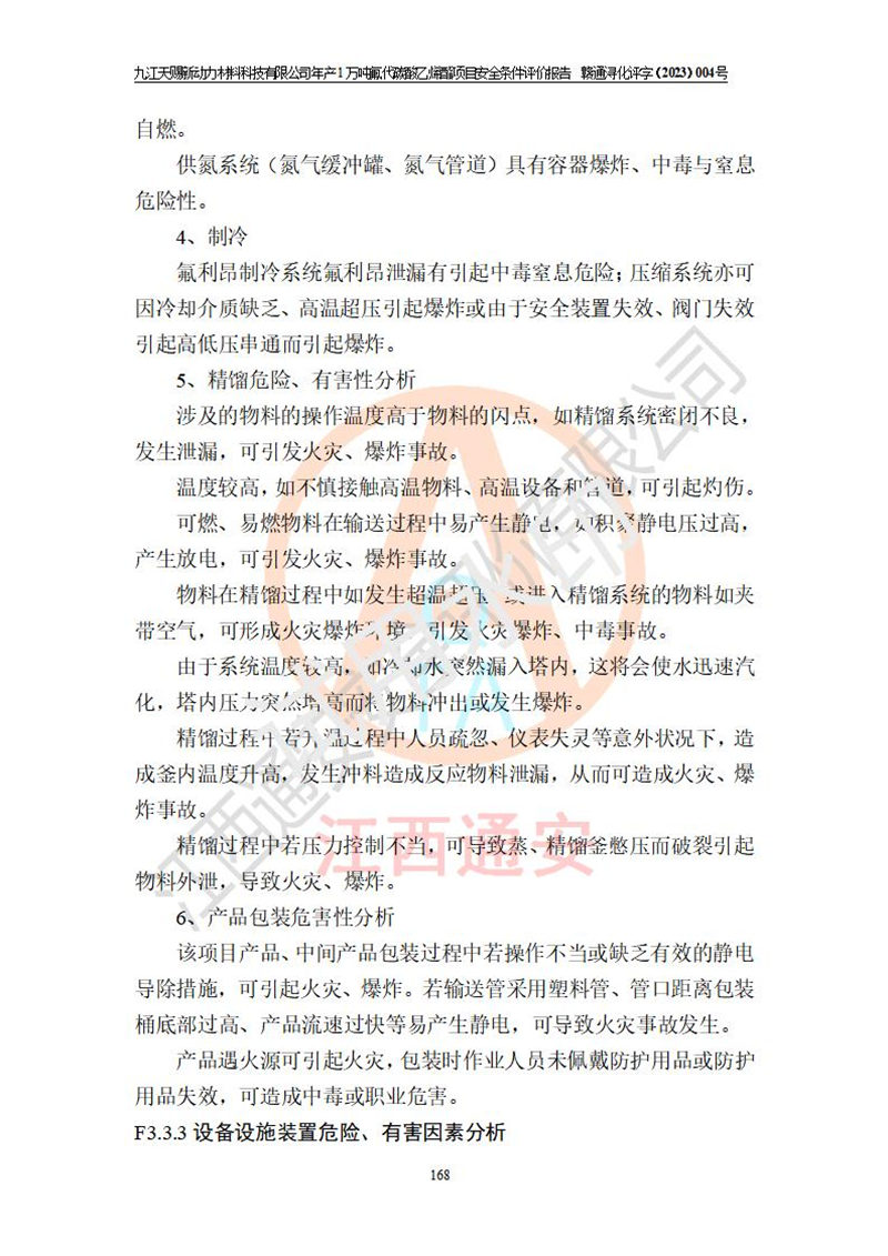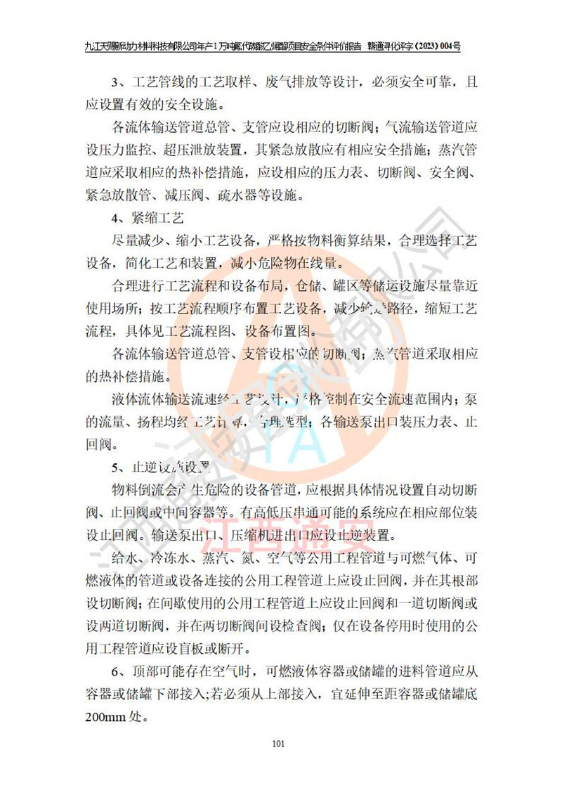 評價結(jié)論 | 九江天賜新動力材料科技有限公司年產(chǎn)1萬噸氟代碳酸乙烯酯項目安全條件、廠址、總體布局、主要技術(shù)和工藝、裝置、設(shè)施、配套和輔助工程、安全管理等均滿足安全生產(chǎn)相關(guān)法律法規(guī)、標(biāo)準(zhǔn)規(guī)范的要求。該建設(shè)項目的危險、有害因素可得到**控制,風(fēng)險在可接受范圍內(nèi),具有**的本質(zhì)安 全水平。企業(yè)應(yīng)認(rèn)真落實本報告提出的安全對策與建議,在下一步設(shè)計、建設(shè)施工過程中嚴(yán)把質(zhì)量關(guān)、嚴(yán)格施工安全管理和檢查,使各項安全措施落實到實處,且嚴(yán)格執(zhí)行建設(shè)項目安全設(shè)施“三同時”的規(guī)定,建立**的事故應(yīng)急體系和措施。 | ||||