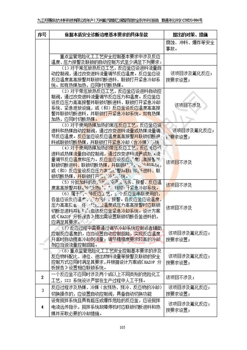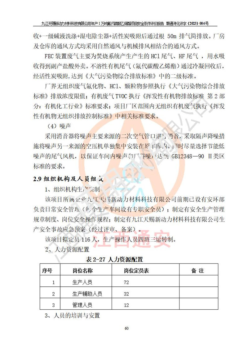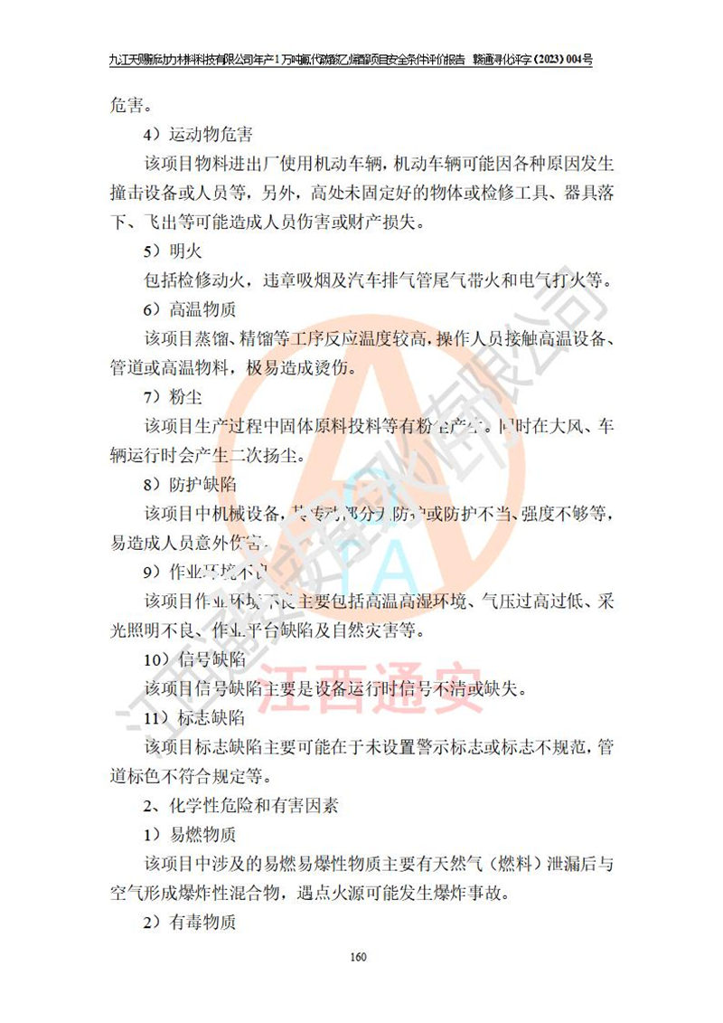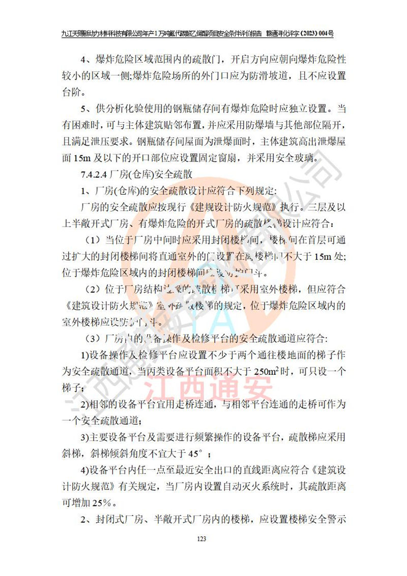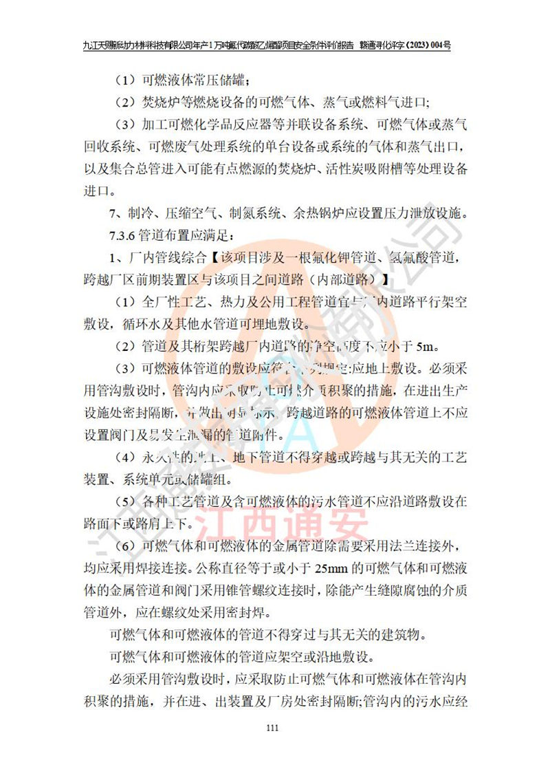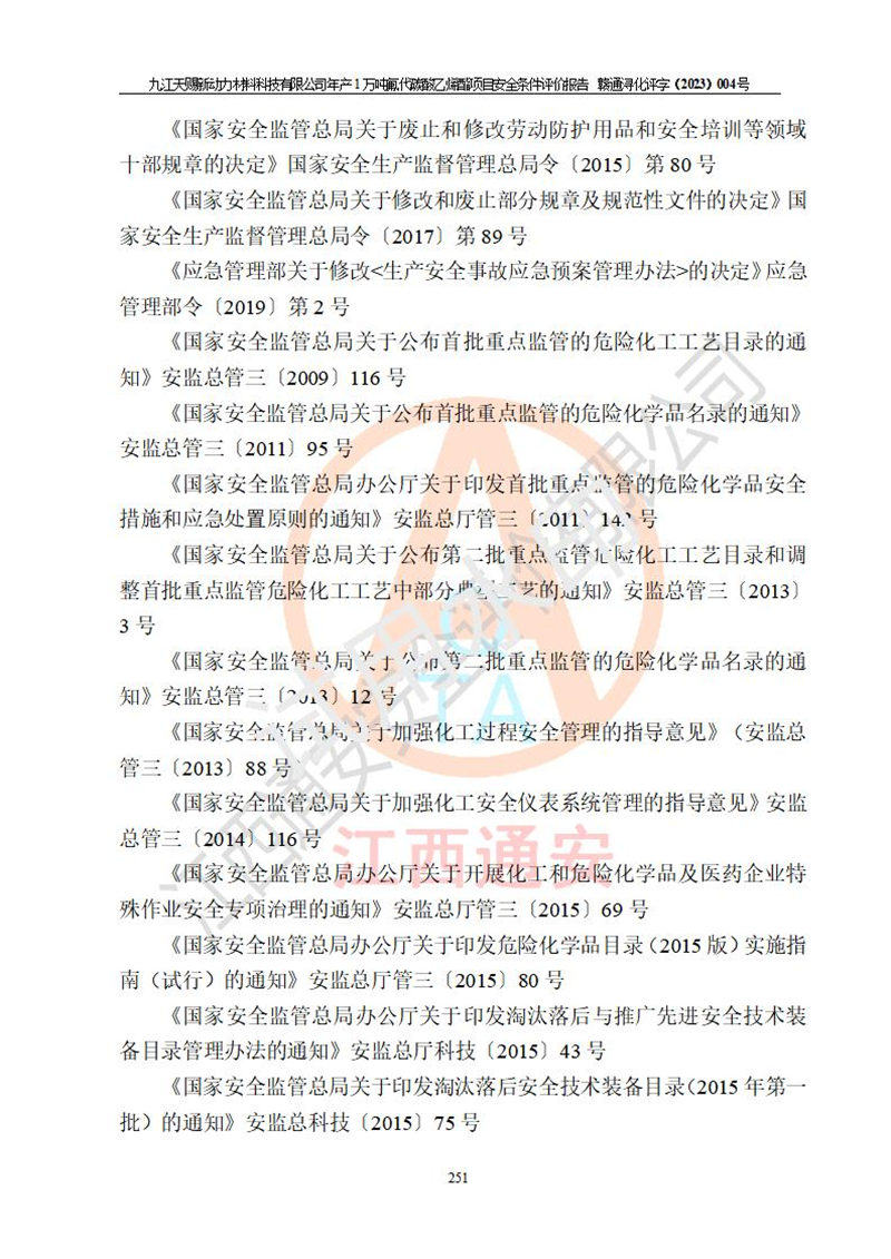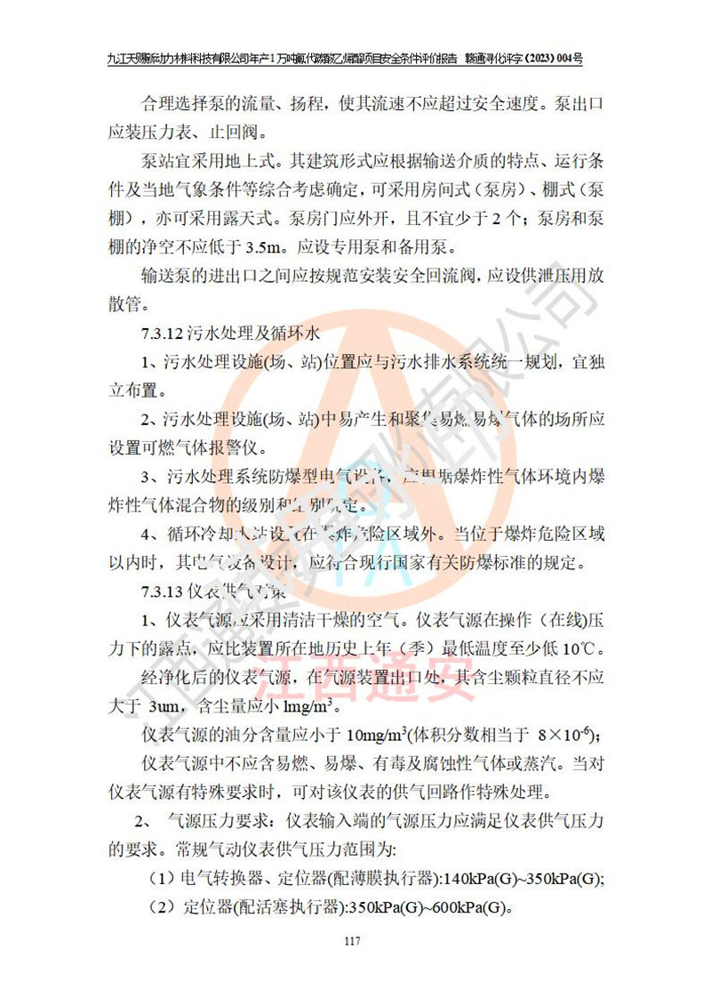 評價結(jié)論 | 九江天賜新動力材料科技有限公司年產(chǎn)1萬噸氟代碳酸乙烯酯項目安全條件、廠址、總體布局、主要技術(shù)和工藝、裝置、設(shè)施、配套和輔助工程、安全管理等均滿足安全生產(chǎn)相關(guān)法律法規(guī)、標(biāo)準(zhǔn)規(guī)范的要求。該建設(shè)項目的危險、有害因素可得到**控制,風(fēng)險在可接受范圍內(nèi),具有**的本質(zhì)安 全水平。企業(yè)應(yīng)認(rèn)真落實本報告提出的安全對策與建議,在下一步設(shè)計、建設(shè)施工過程中嚴(yán)把質(zhì)量關(guān)、嚴(yán)格施工安全管理和檢查,使各項安全措施落實到實處,且嚴(yán)格執(zhí)行建設(shè)項目安全設(shè)施“三同時”的規(guī)定,建立**的事故應(yīng)急體系和措施。 | ||||