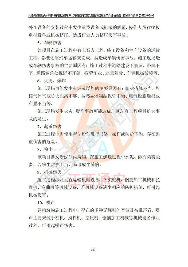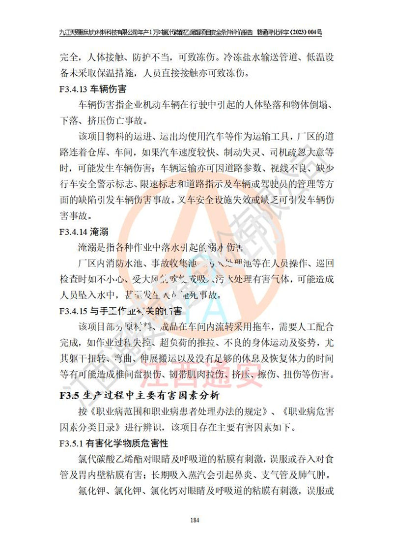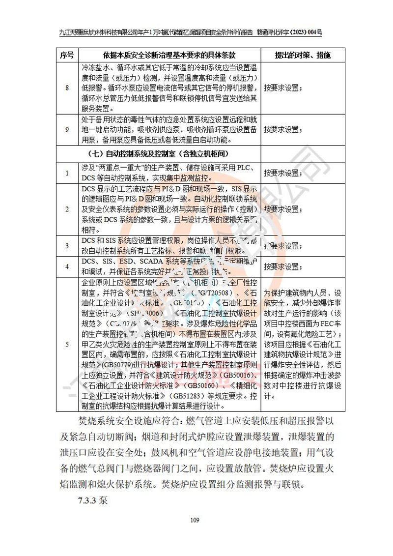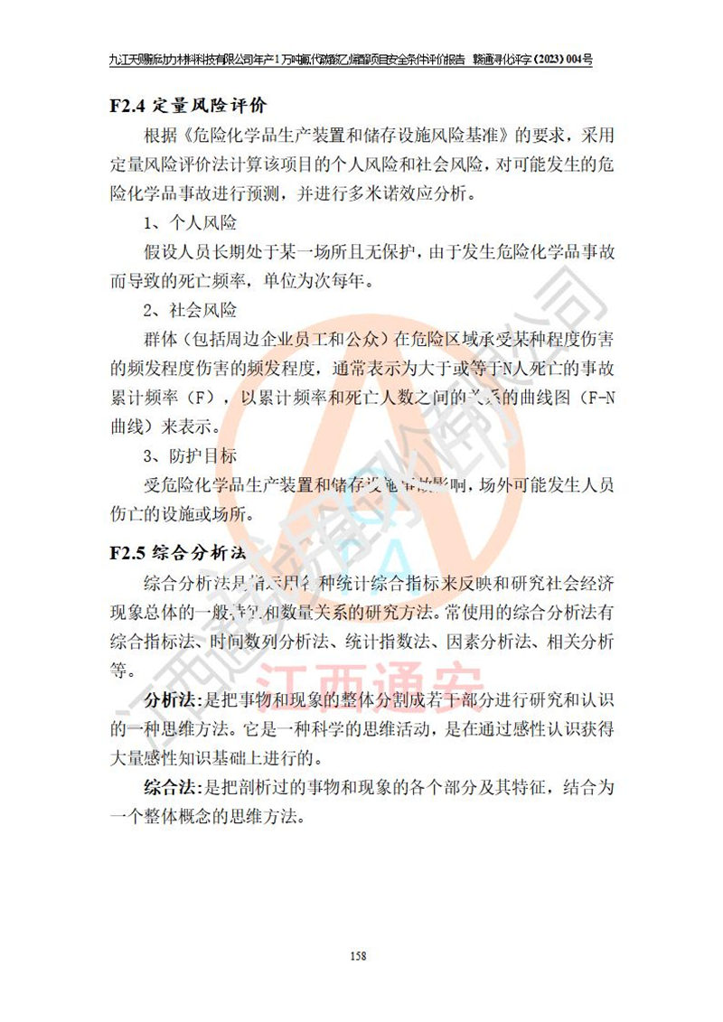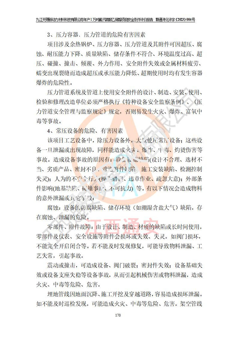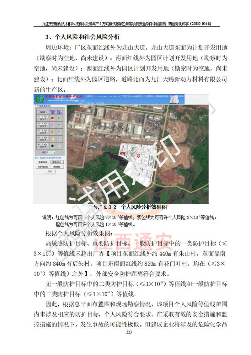 評價結(jié)論 | 九江天賜新動力材料科技有限公司年產(chǎn)1萬噸氟代碳酸乙烯酯項目安全條件、廠址、總體布局、主要技術(shù)和工藝、裝置、設(shè)施、配套和輔助工程、安全管理等均滿足安全生產(chǎn)相關(guān)法律法規(guī)、標(biāo)準(zhǔn)規(guī)范的要求。該建設(shè)項目的危險、有害因素可得到**控制,風(fēng)險在可接受范圍內(nèi),具有**的本質(zhì)安 全水平。企業(yè)應(yīng)認(rèn)真落實本報告提出的安全對策與建議,在下一步設(shè)計、建設(shè)施工過程中嚴(yán)把質(zhì)量關(guān)、嚴(yán)格施工安全管理和檢查,使各項安全措施落實到實處,且嚴(yán)格執(zhí)行建設(shè)項目安全設(shè)施“三同時”的規(guī)定,建立**的事故應(yīng)急體系和措施。 | ||||