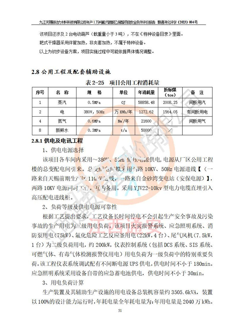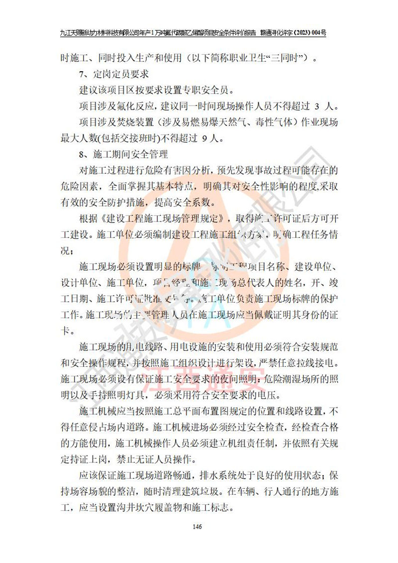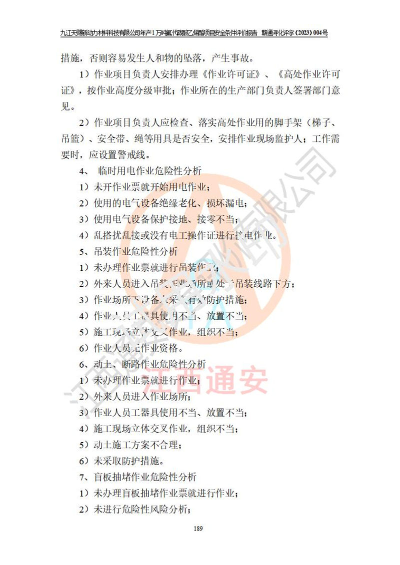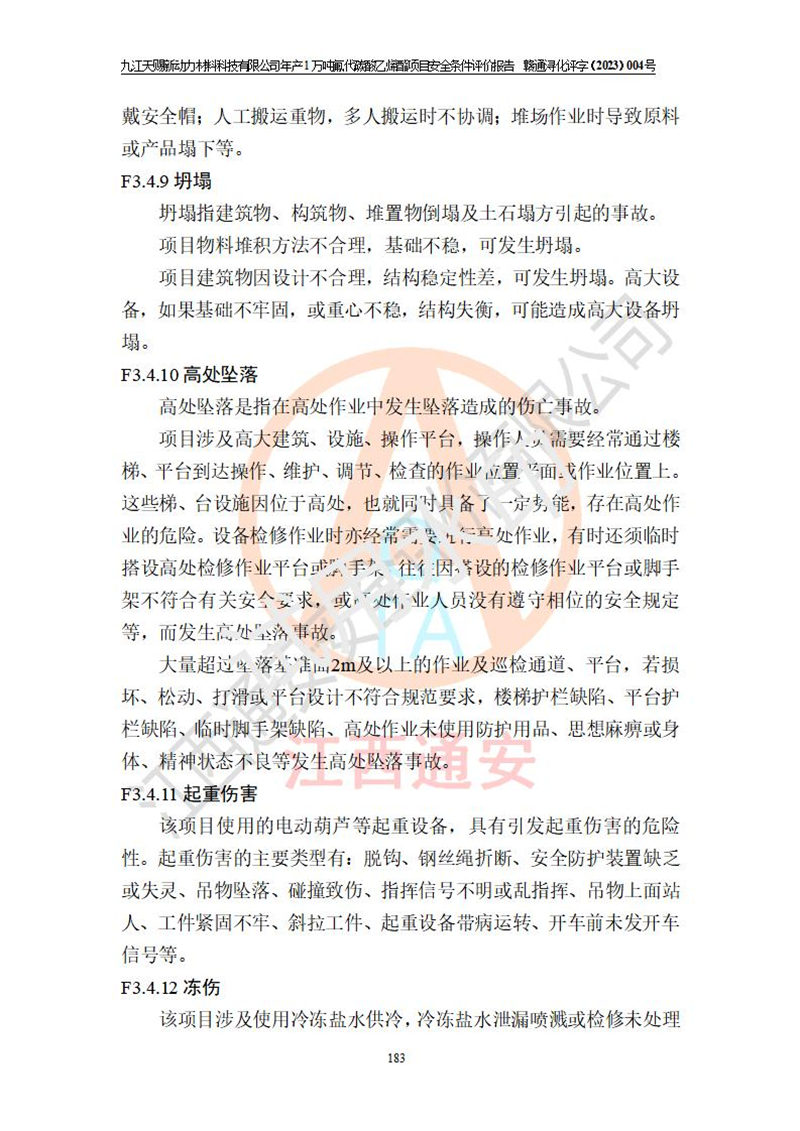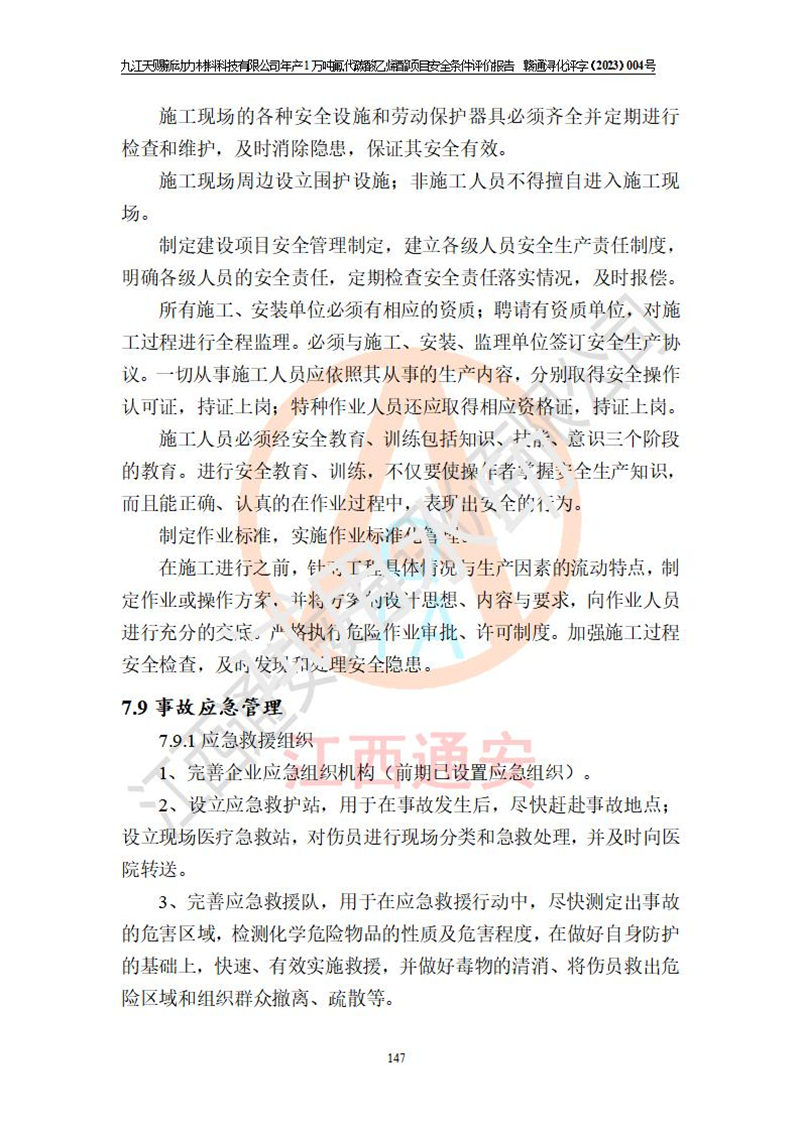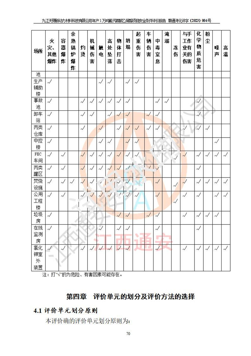 評價結(jié)論 | 九江天賜新動力材料科技有限公司年產(chǎn)1萬噸氟代碳酸乙烯酯項目安全條件、廠址、總體布局、主要技術(shù)和工藝、裝置、設(shè)施、配套和輔助工程、安全管理等均滿足安全生產(chǎn)相關(guān)法律法規(guī)、標(biāo)準(zhǔn)規(guī)范的要求。該建設(shè)項目的危險、有害因素可得到**控制,風(fēng)險在可接受范圍內(nèi),具有**的本質(zhì)安 全水平。企業(yè)應(yīng)認(rèn)真落實本報告提出的安全對策與建議,在下一步設(shè)計、建設(shè)施工過程中嚴(yán)把質(zhì)量關(guān)、嚴(yán)格施工安全管理和檢查,使各項安全措施落實到實處,且嚴(yán)格執(zhí)行建設(shè)項目安全設(shè)施“三同時”的規(guī)定,建立**的事故應(yīng)急體系和措施。 | ||||