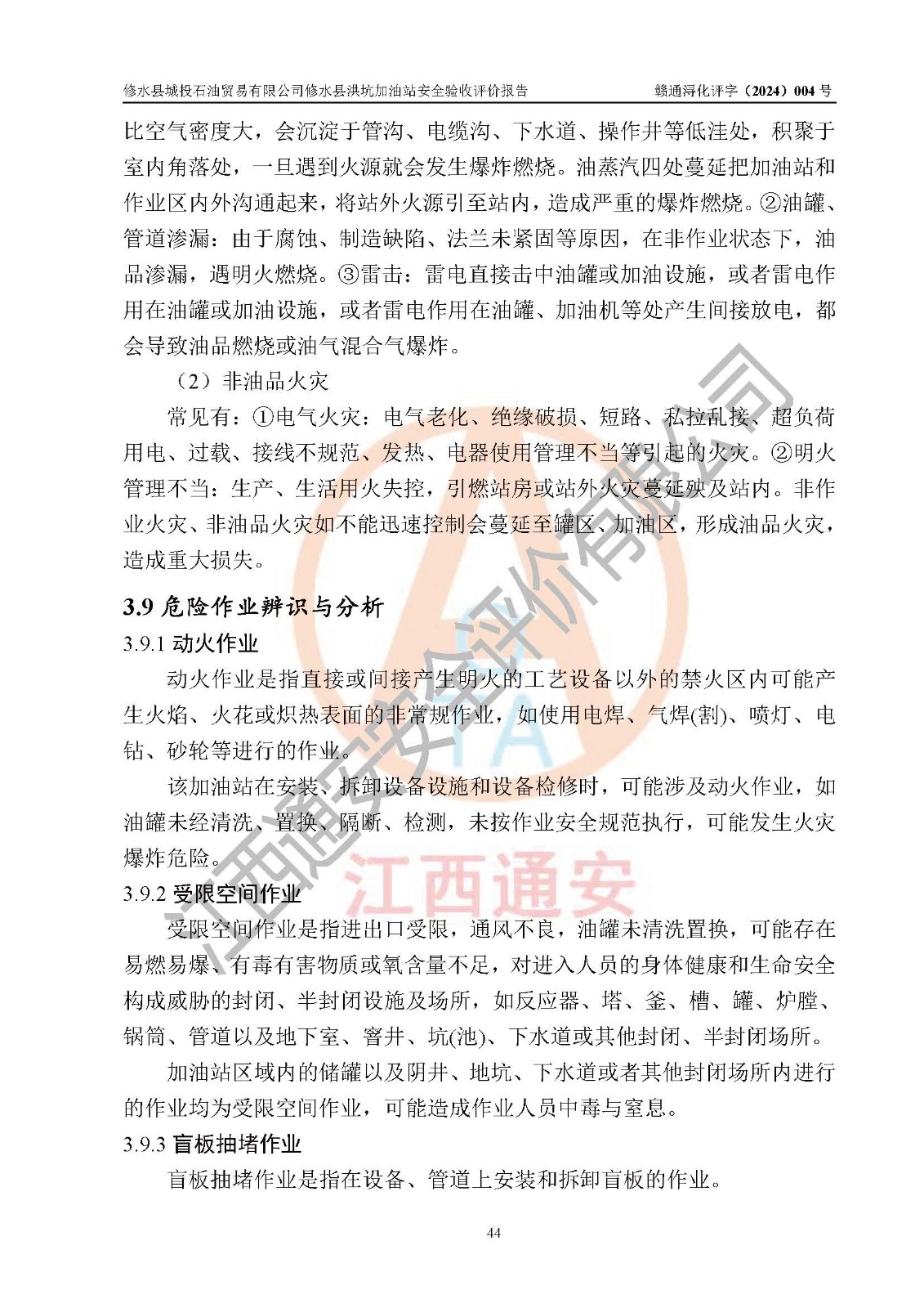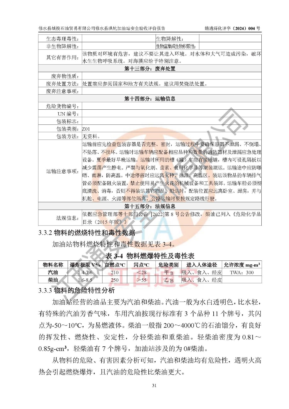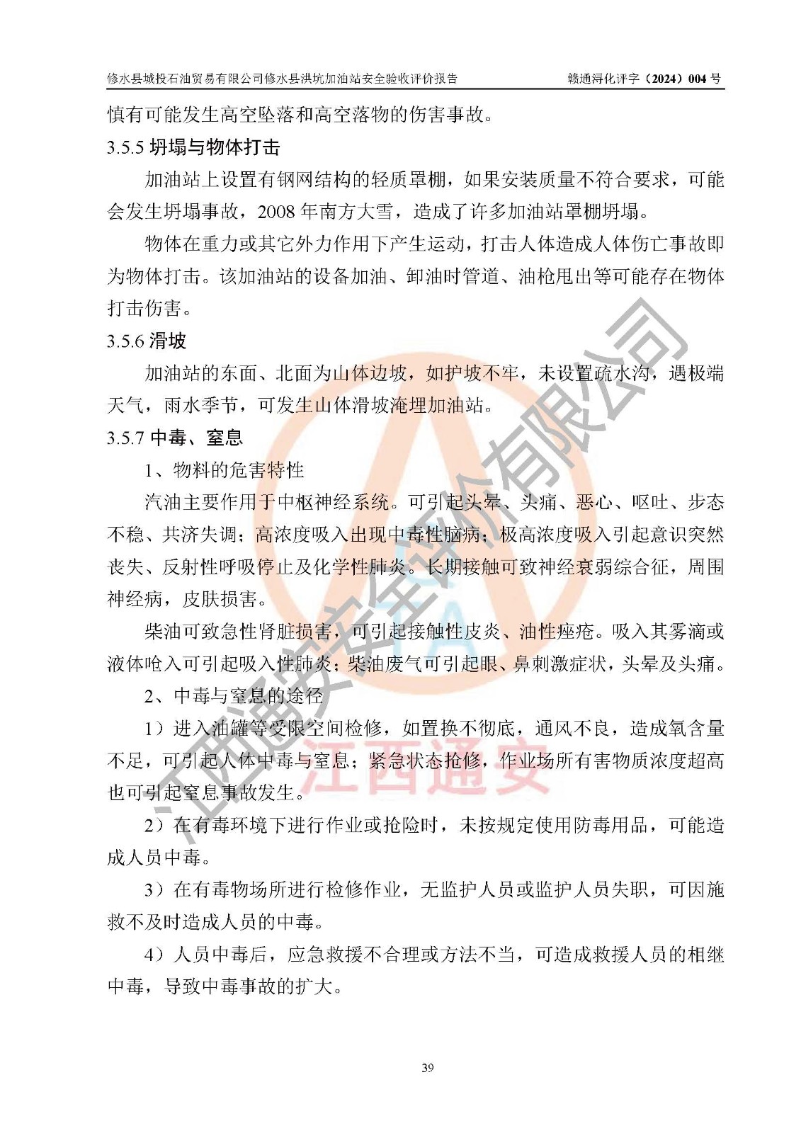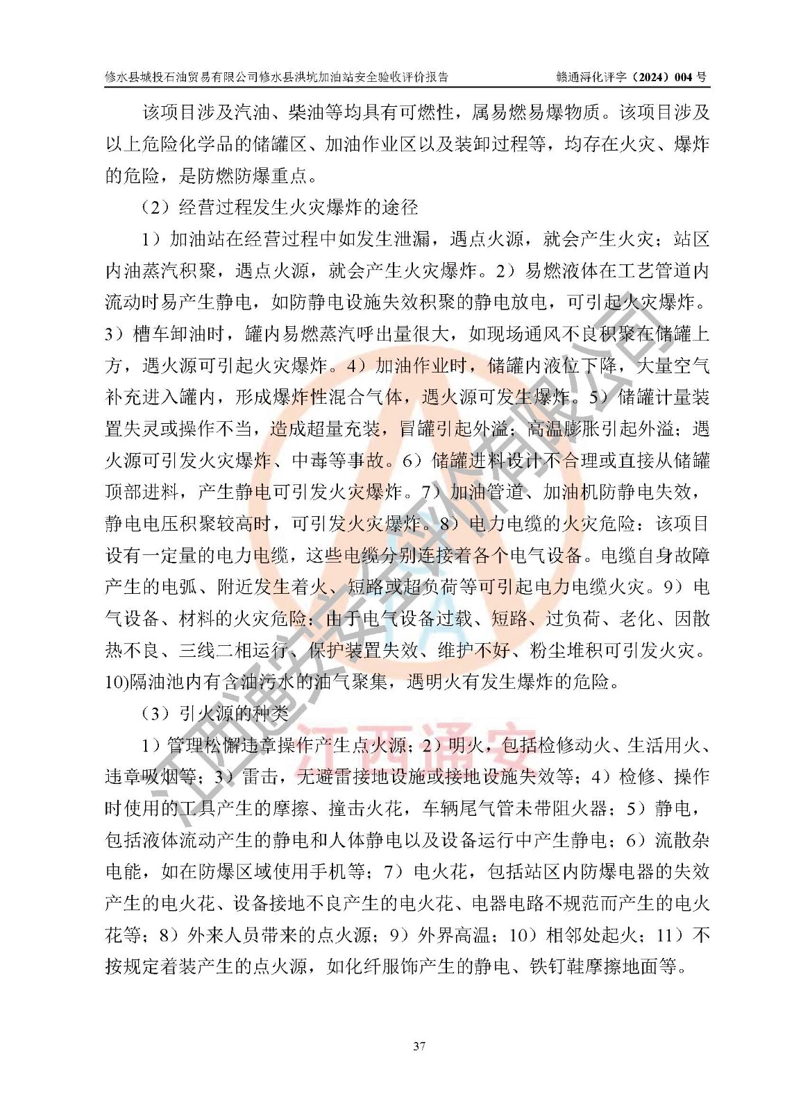 項(xiàng)目簡介 | 修水縣城投石油貿(mào)易有限公司是一家有限責(zé)任公司(非自然人投資或控股的有限責(zé)任公司),法定**人:陳炳印,經(jīng)營范圍:一般項(xiàng)目:石油制品銷售(不含危險(xiǎn)化學(xué)品),洗車服務(wù),機(jī)動(dòng)車修理和維護(hù),廣告發(fā)布,互聯(lián)網(wǎng)銷售(除銷售需要許可的商品)(除許可業(yè)務(wù)外,可自主依法經(jīng)營法律法規(guī)非禁止或限制的項(xiàng)目),注冊資本:伍仟萬元整,成立日期2021年11月03日,住所:江西省九江市修水縣義寧鎮(zhèn)洪坑村888號(hào)。 修水縣城投石油貿(mào)易有限公司依據(jù)九江市商務(wù)局加油站網(wǎng)點(diǎn)規(guī)劃確認(rèn)文件《關(guān)于對(duì)中石化江西九江修水石油分公司蘆良大道等3座新建加油站地址網(wǎng)點(diǎn)規(guī)劃確認(rèn)的通知》(九商務(wù)字〔2023〕20號(hào))在修水縣蘆良西大道北側(cè)、修水縣消防救援大隊(duì)的東側(cè)新建了修水縣洪坑加油站項(xiàng)目。 修水縣洪坑加油站用地面積2528.9m2,站內(nèi)設(shè)置有4臺(tái)雙槍潛油泵程控燃油加油機(jī)及配套的工藝管線,設(shè)埋地臥式雙層油罐5臺(tái),其中30m3的92#汽油儲(chǔ)罐2臺(tái)、30m3的95#汽油儲(chǔ)罐1臺(tái)、30m3的0#柴油儲(chǔ)罐2臺(tái),油品儲(chǔ)罐總?cè)莘e為 120m3(柴油折半),屬二級(jí)加油站。 該加油站涉及的主要物料為汽油和柴油,按**十部、局聯(lián)合公告〔2015〕第5號(hào)公告公布的《危險(xiǎn)化學(xué)品目錄》(2022年第8號(hào)公告修改),汽油和柴油屬于危險(xiǎn)化學(xué)品。根據(jù)**安全監(jiān)管總局安監(jiān)總管三〔2011〕95號(hào)文件公布《首批重點(diǎn)監(jiān)管的危險(xiǎn)化學(xué)品名錄》和應(yīng)急管理部等4部令公告第3號(hào)《特別管控危險(xiǎn)化學(xué)品目錄(**版)》,汽油屬于**重點(diǎn)監(jiān)管和特別管控的危險(xiǎn)化學(xué)品。 修水縣洪坑加油站項(xiàng)目,由四川創(chuàng)安太平科技有限公司進(jìn)行安全條件評(píng)價(jià)、江西省化學(xué)工業(yè)設(shè)計(jì)院設(shè)計(jì)(化工石化醫(yī)藥行業(yè)**、成品油儲(chǔ)運(yùn)工程乙級(jí))、江西杰宸建設(shè)工程有限公司施工(石油化工總承包叁級(jí))、監(jiān)理單位:江西華屹工程項(xiàng)目管理有限公司監(jiān)理和榮泰工程管理咨詢有限公司(工程監(jiān)理綜合資質(zhì))。2023年12月23日取得了《危險(xiǎn)化學(xué)品建設(shè)項(xiàng)目安全條件備案告之意見書》(九行審安審字〔2023〕54號(hào),2024年01月10日取得了《關(guān)于修水縣城投石油貿(mào)易有限公司修水縣洪坑加油站新建項(xiàng)目安全設(shè)施設(shè)計(jì)的審查意見》(九行審安設(shè)審字〔2024〕1號(hào),工程項(xiàng)目現(xiàn)已竣工。 依據(jù)《中華人民共和國安全生產(chǎn)法》、《危險(xiǎn)化學(xué)品建設(shè)項(xiàng)目安全監(jiān)督管理辦法〔2015年修訂〕(安監(jiān)總局令第45號(hào))、《危險(xiǎn)化學(xué)品經(jīng)營許可證管理辦法》(安監(jiān)總局第55號(hào)令)等規(guī)定的要求,新建、改建、擴(kuò)建危險(xiǎn)化學(xué)品安全設(shè)施應(yīng)與主體工程同時(shí)設(shè)計(jì)、同時(shí)施工、同時(shí)投入使用。為檢查加油站新建項(xiàng)目的安全設(shè)施與主體工程是否“三同時(shí)”和在安全經(jīng)營及安全管理方面是否符合**及行業(yè)有關(guān)法律法規(guī)及標(biāo)準(zhǔn)。為**工程項(xiàng)目在安全生產(chǎn)及安全管理方面符合**及行業(yè)有關(guān)法律法規(guī)及標(biāo)準(zhǔn),修水縣洪坑加油站委托江西通安安全評(píng)價(jià)有限公司承擔(dān)該項(xiàng)目的安全驗(yàn)收評(píng)價(jià),為加油站新建項(xiàng)目竣工驗(yàn)收做安全技術(shù)準(zhǔn)備。 江西通安安全評(píng)價(jià)有限公司接受委托后,組織了評(píng)價(jià)組;依據(jù)《安全評(píng)價(jià)通則》(AQ8001-2007)和《安全驗(yàn)收評(píng)價(jià)導(dǎo)則》(AQ8003-2007)的要求,在收集項(xiàng)目相關(guān)的安全對(duì)策措施的具體設(shè)計(jì)、安裝施工情況等資料的基礎(chǔ)上,評(píng)價(jià)組于2023年11月進(jìn)行了現(xiàn)場勘查,對(duì)該項(xiàng)目在設(shè)計(jì)中安全生產(chǎn)保障等內(nèi)容的實(shí)施情況和相關(guān)對(duì)策措施建議的落實(shí)情況和安全設(shè)施、設(shè)備、裝置投入運(yùn)營和使用的情況、安全生產(chǎn)管理措施到位情況、安全生產(chǎn)規(guī)章制度建立健全情況、事故應(yīng)急預(yù)案建立等情況進(jìn)行了檢查,提出加油站現(xiàn)場存在的安全隱患及整改建議。根據(jù)企業(yè)提供的資料,在危險(xiǎn)、有害因素分析基礎(chǔ)上,根據(jù)加油站加油作業(yè)工藝程序、站區(qū)內(nèi)功能區(qū)域特點(diǎn),劃分了評(píng)價(jià)單元;對(duì)劃分的評(píng)價(jià)單元及單元內(nèi)的危險(xiǎn)、有害因素選擇了相應(yīng)的安全評(píng)價(jià)方法逐項(xiàng)進(jìn)行分析、評(píng)價(jià),提出相應(yīng)的預(yù)防和控制對(duì)策措施;在與企業(yè)溝通后編制完成了安全驗(yàn)收評(píng)價(jià)報(bào)告,經(jīng)評(píng)價(jià)公司內(nèi)部五級(jí)審核程序,及加油站現(xiàn)場存在的安全隱患**落實(shí)整改后出具《修水縣洪坑加油站安全驗(yàn)收評(pí