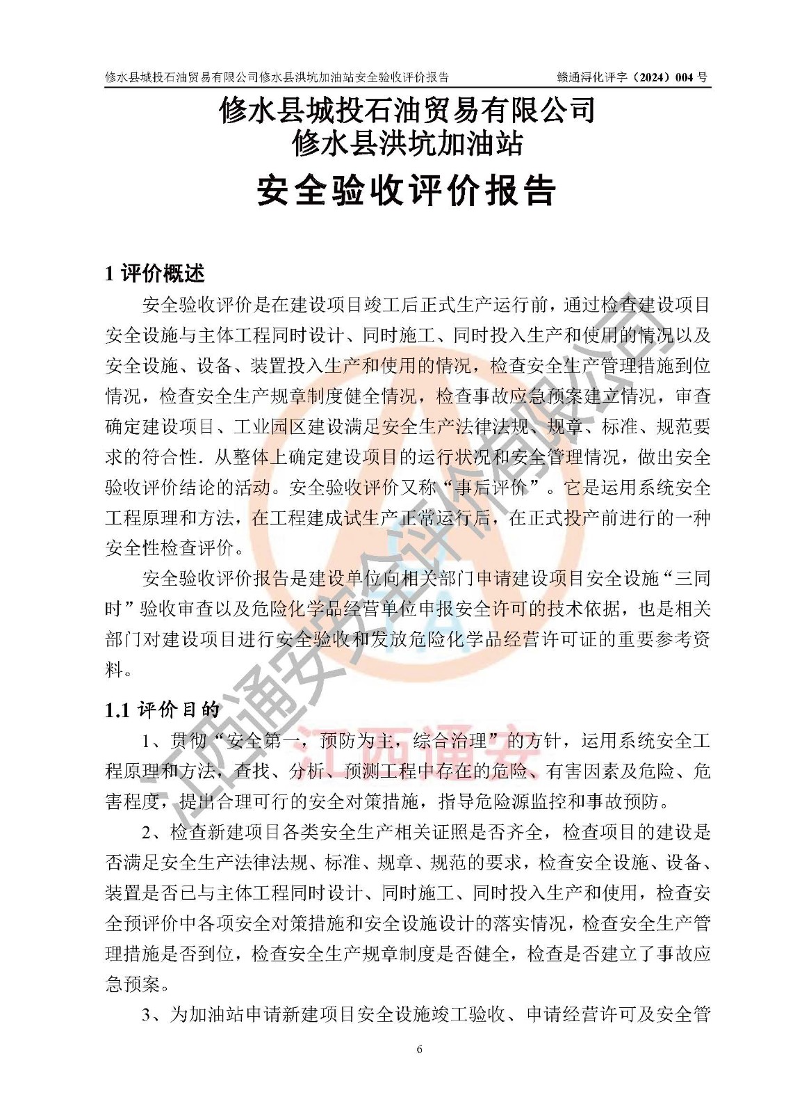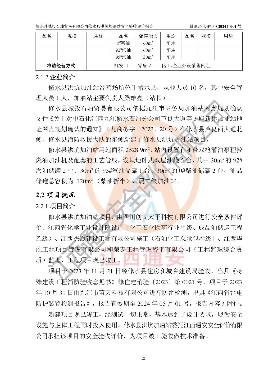 評(píng)價(jià)報(bào)告名稱 | 修水縣城投石油貿(mào)易有限公司修水縣洪坑加油站安全驗(yàn)收評(píng)價(jià)報(bào)告 | ||||||