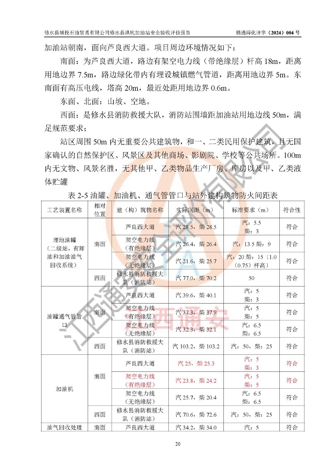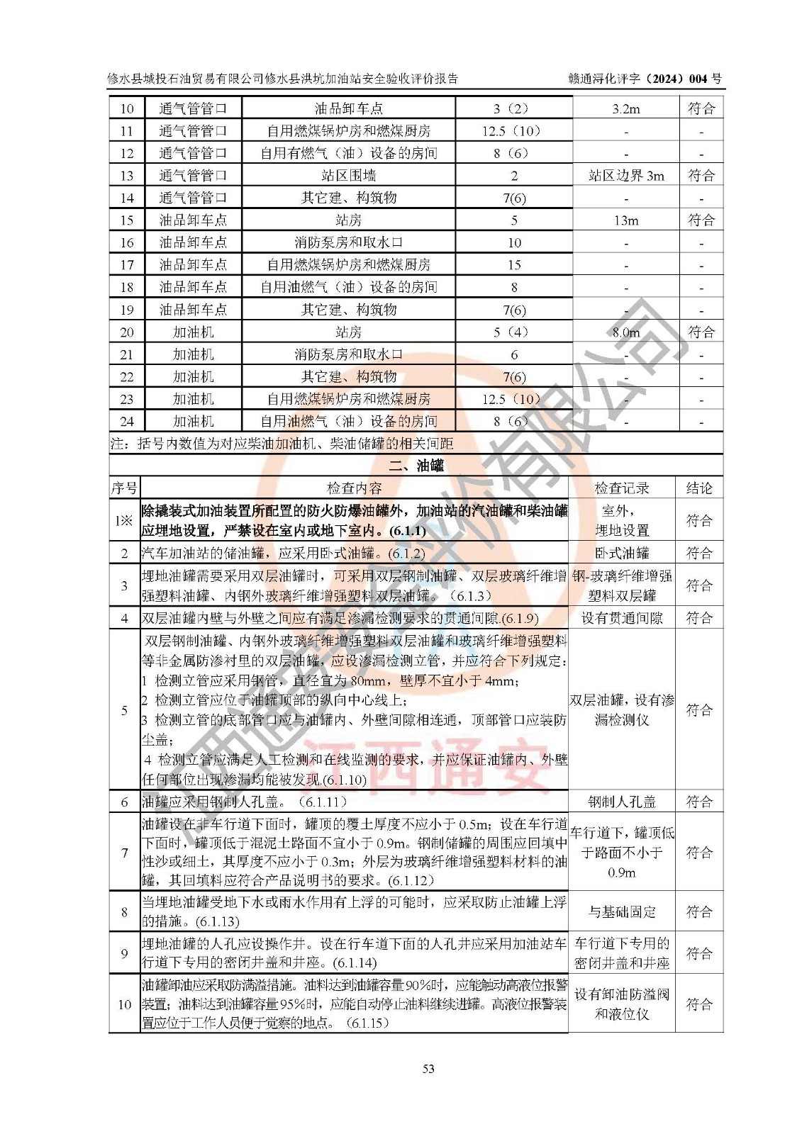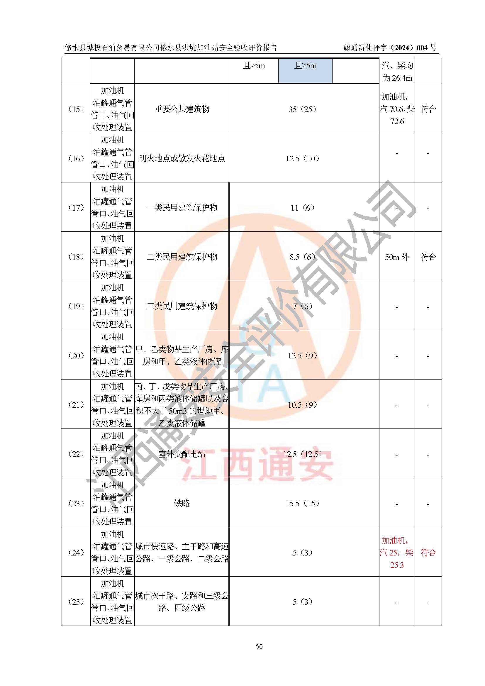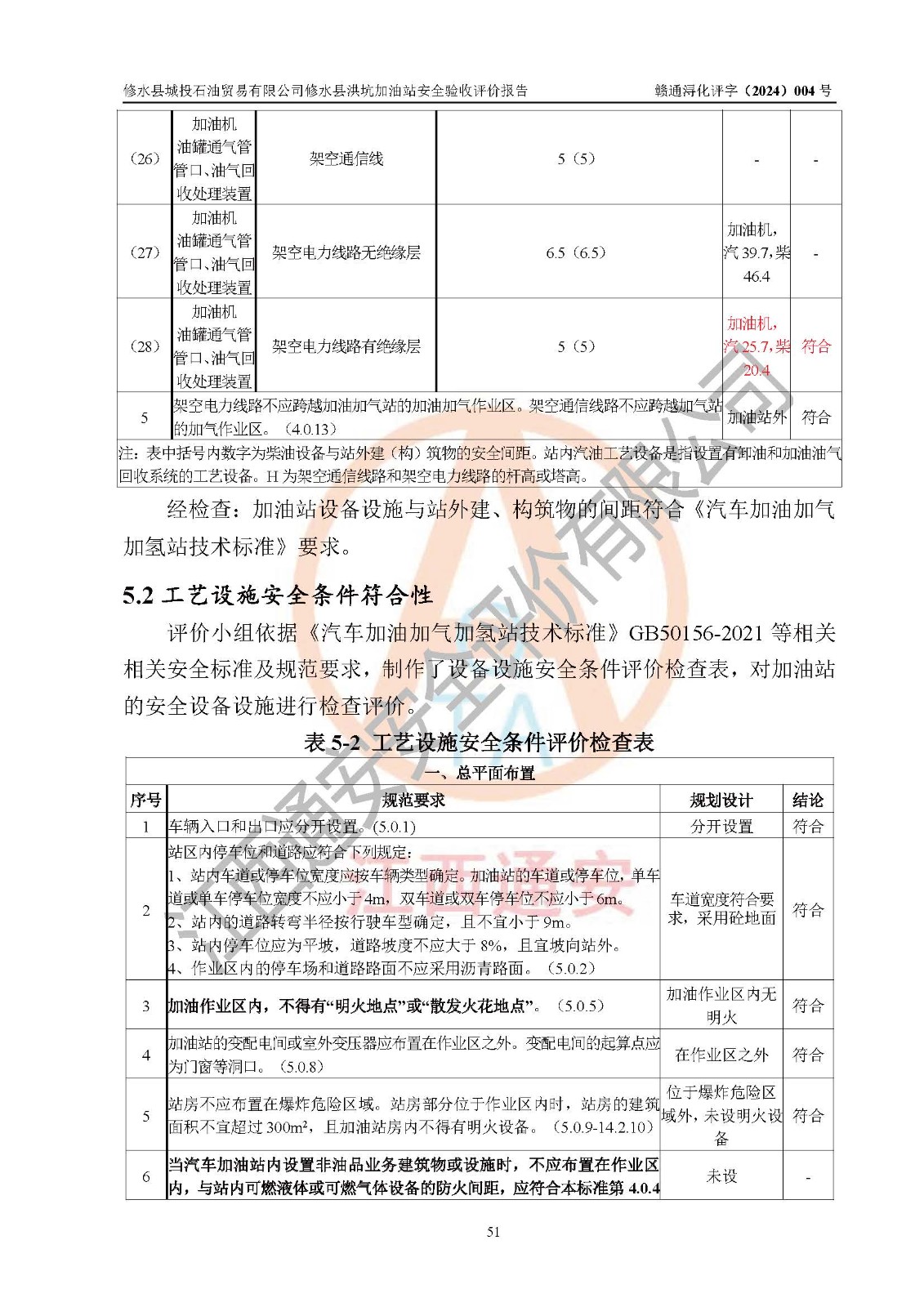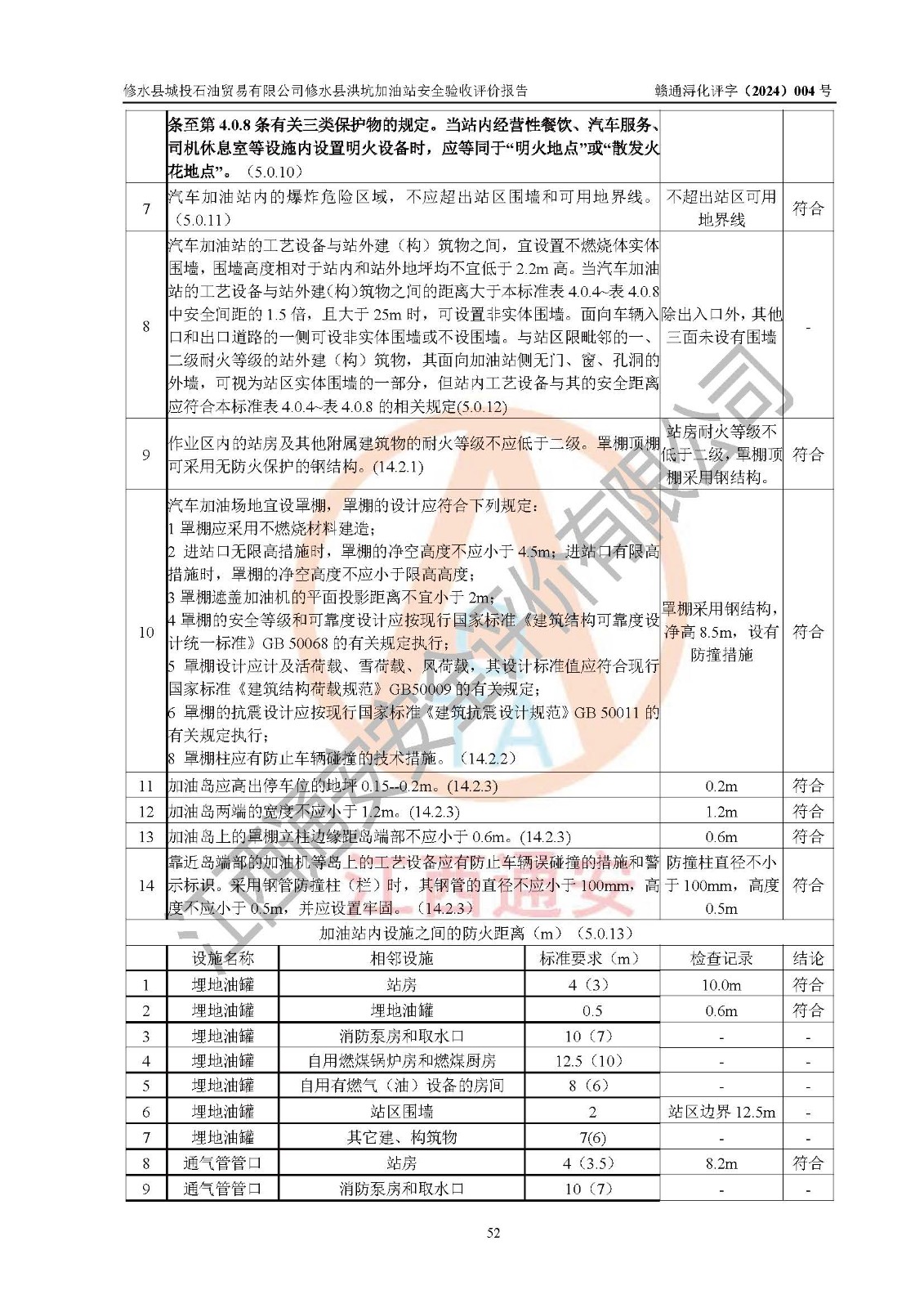 評(píng)價(jià)結(jié)論 | 綜上所述:修水縣城投石油貿(mào)易有限公司修水縣洪坑加油站涉及的安全條件、安全經(jīng)營條件、安全生產(chǎn)管理符合《危險(xiǎn)化學(xué)品經(jīng)營許可證管理辦法》、《汽車加油加氣加氫站技術(shù)標(biāo)準(zhǔn)》等**有關(guān)法規(guī)、標(biāo)準(zhǔn)、規(guī)范要求,能滿足危險(xiǎn)化學(xué)品經(jīng)營安全條件。 | ||||||