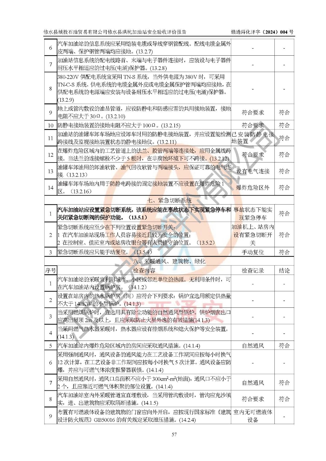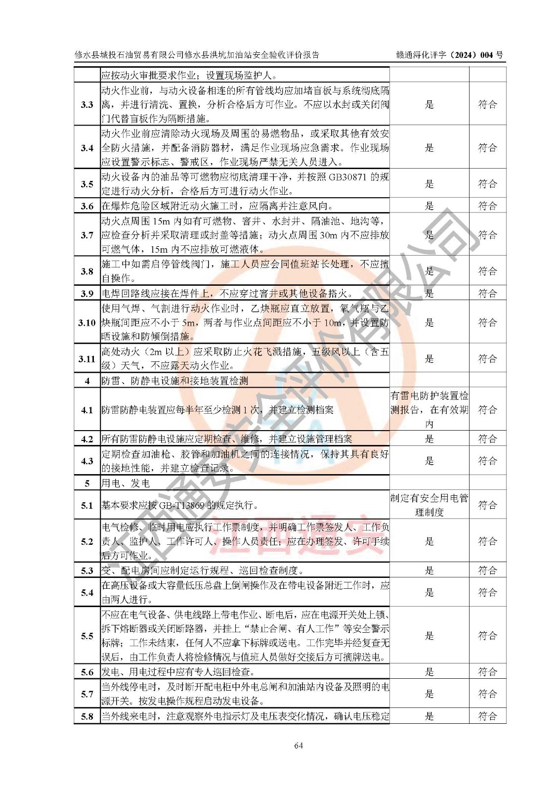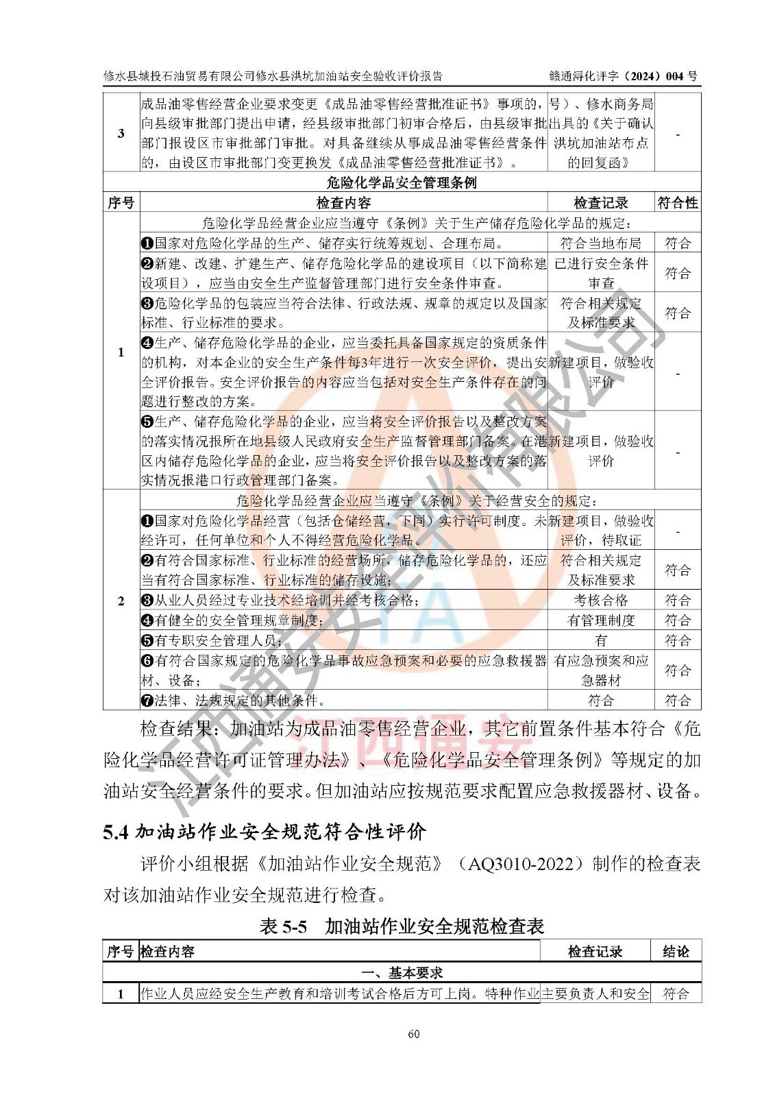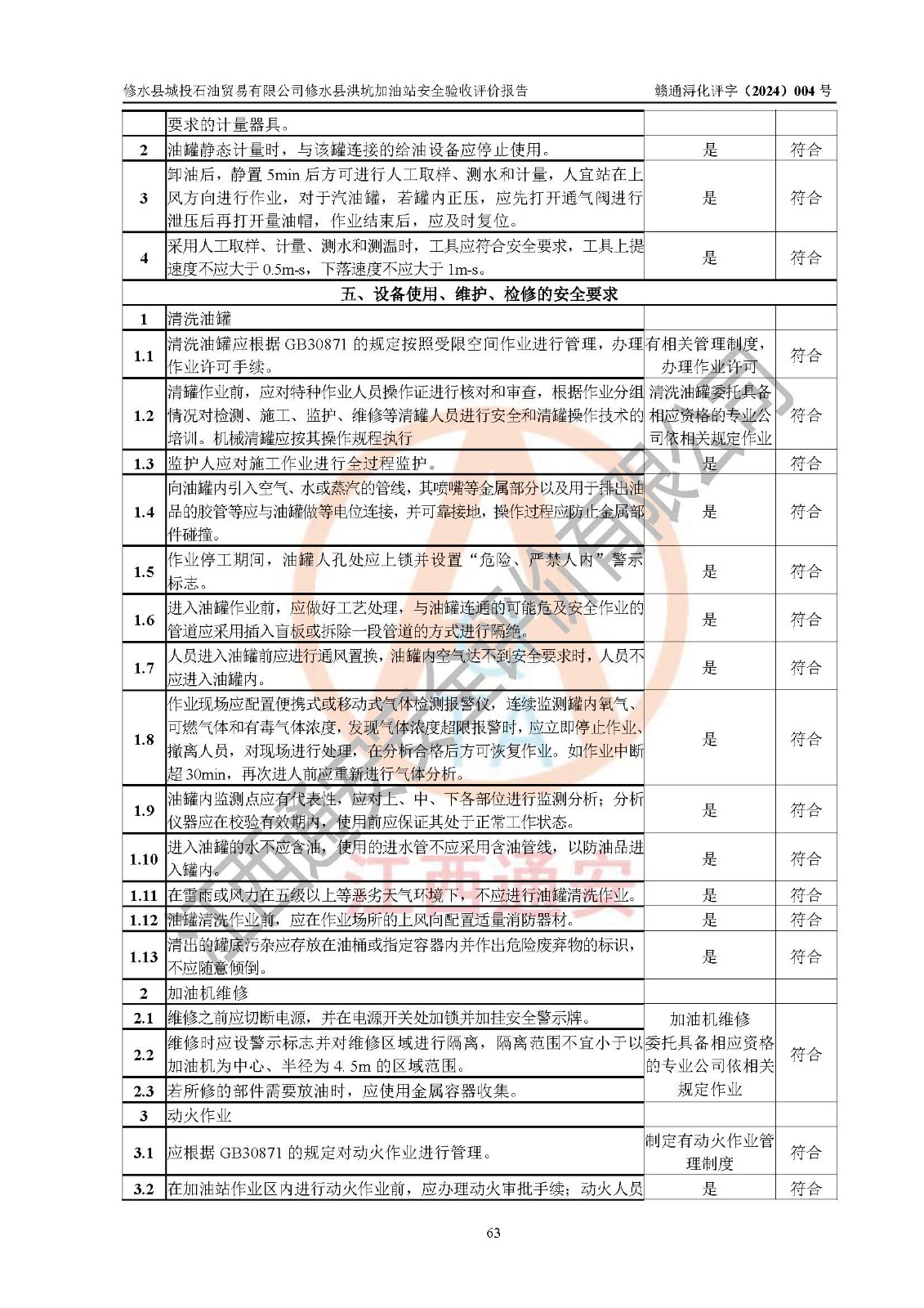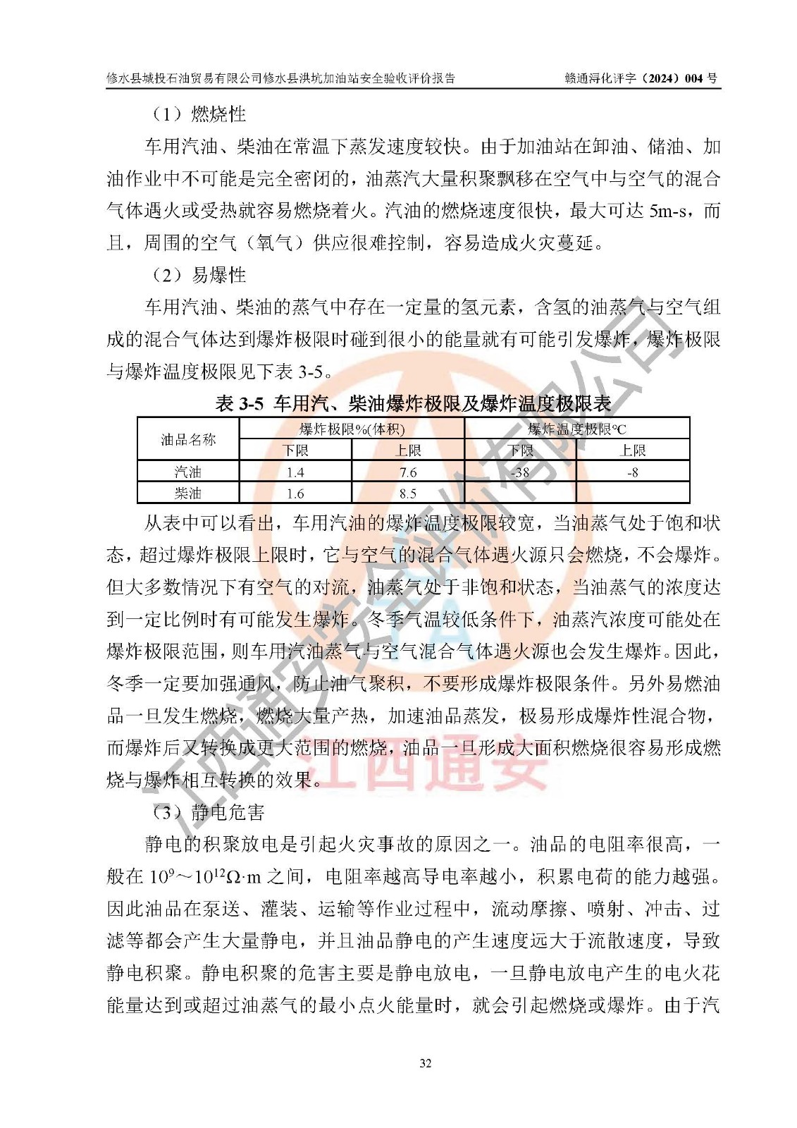 評(píng)價(jià)結(jié)論 | 綜上所述:修水縣城投石油貿(mào)易有限公司修水縣洪坑加油站涉及的安全條件、安全經(jīng)營條件、安全生產(chǎn)管理符合《危險(xiǎn)化學(xué)品經(jīng)營許可證管理辦法》、《汽車加油加氣加氫站技術(shù)標(biāo)準(zhǔn)》等**有關(guān)法規(guī)、標(biāo)準(zhǔn)、規(guī)范要求,能滿足危險(xiǎn)化學(xué)品經(jīng)營安全條件。 | ||||||