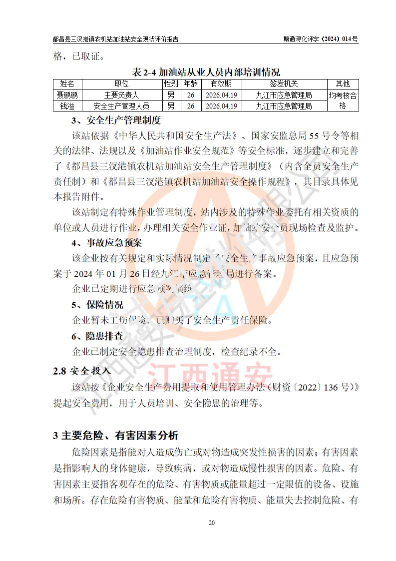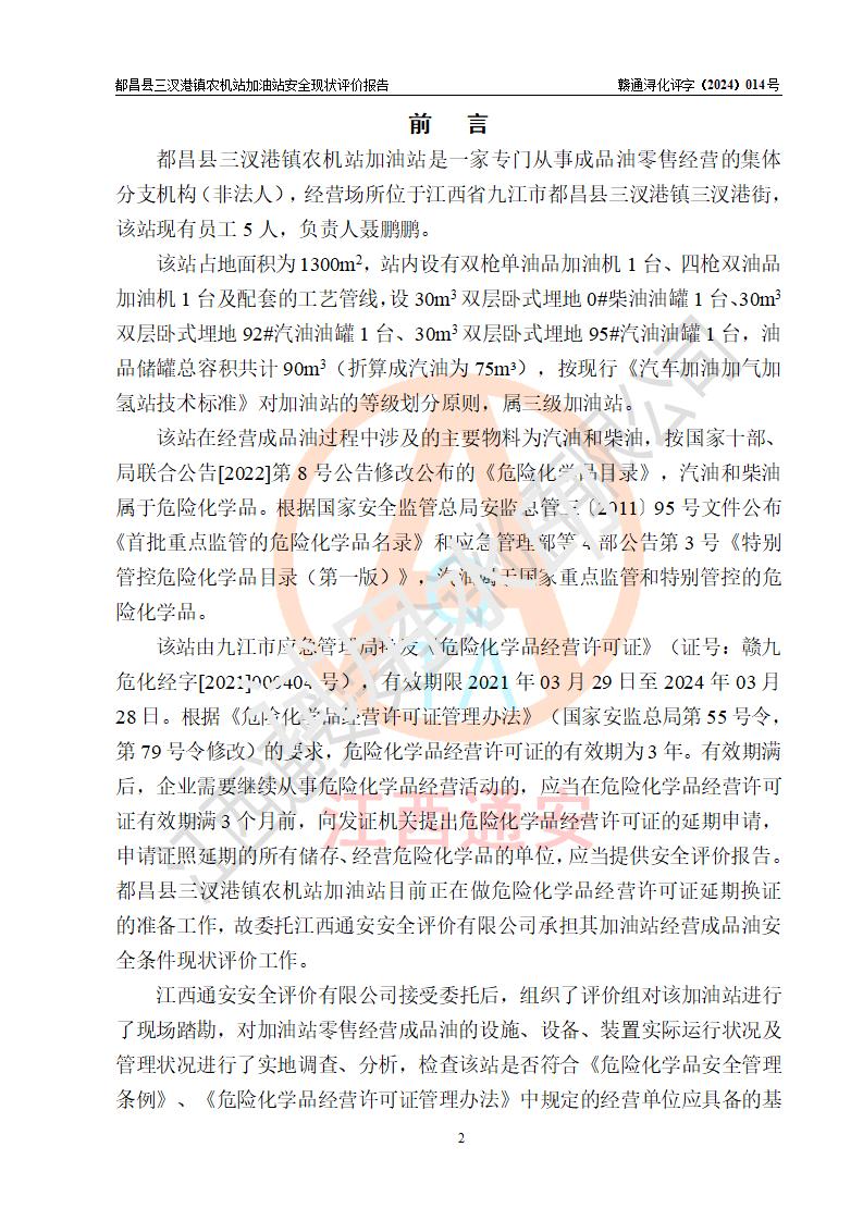 評價報告名稱 | 都昌縣三汊港鎮(zhèn)農機站加油站安全現(xiàn)狀評價報告 | |||