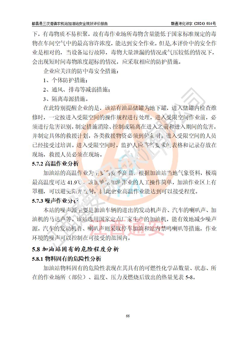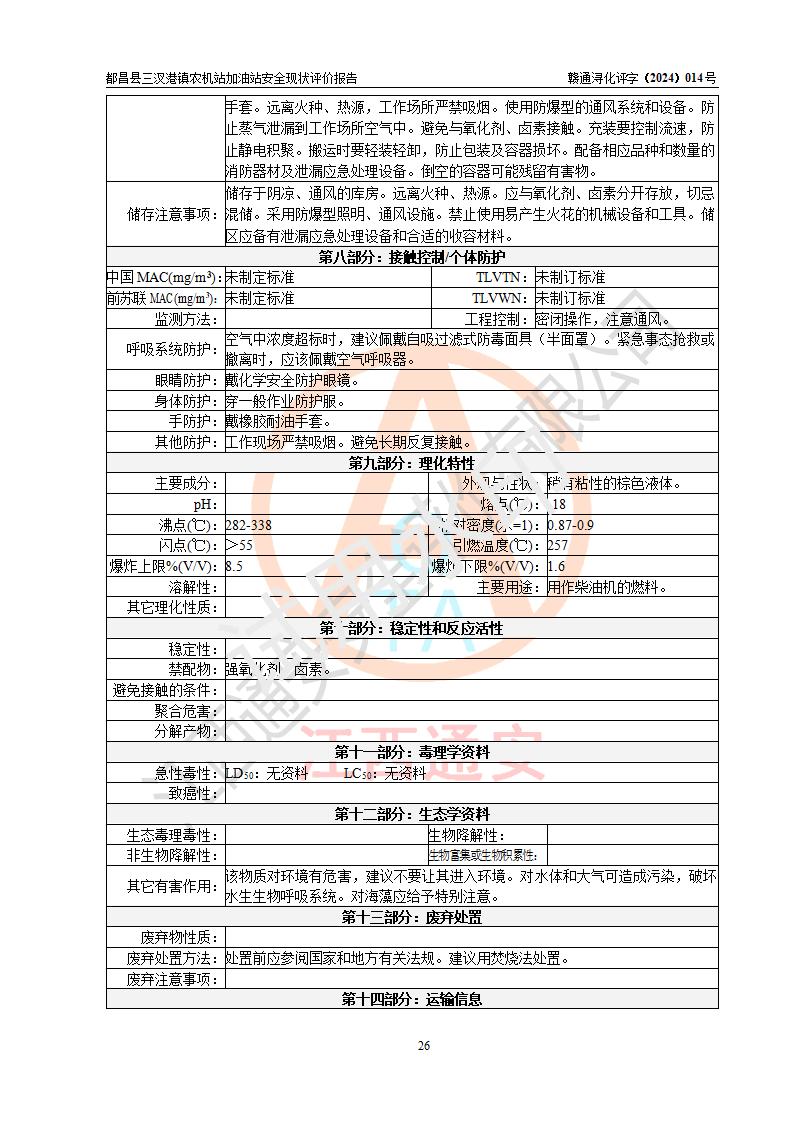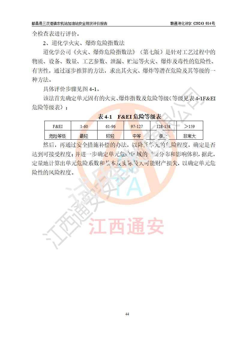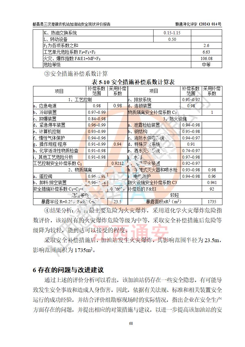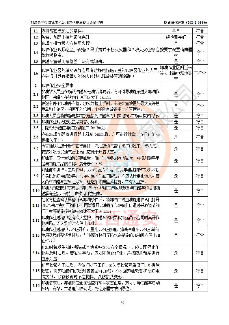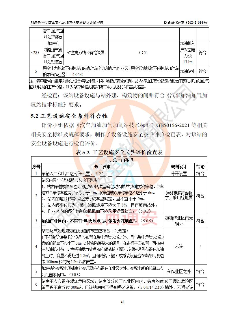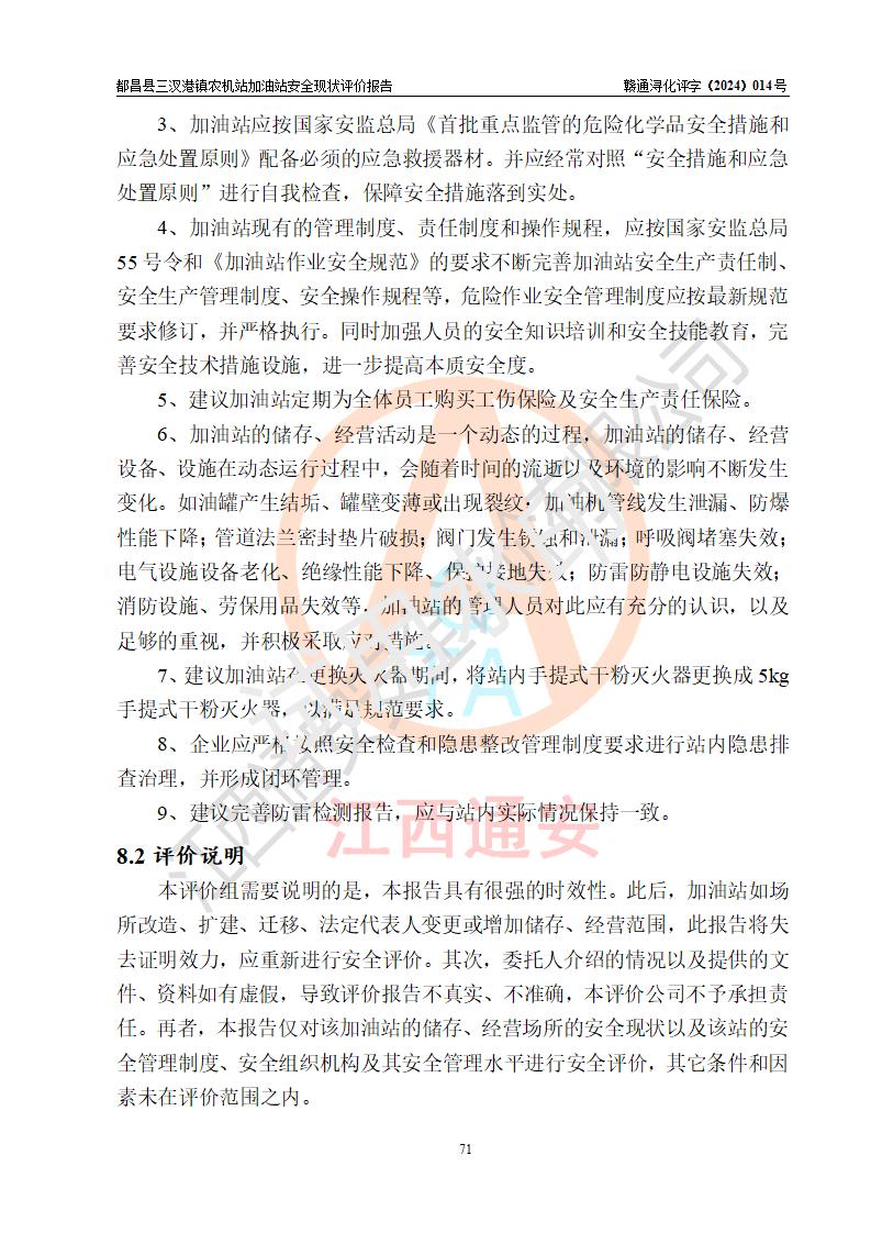 評價結論 | 都昌縣三汊港鎮(zhèn)農機站加油站涉及的安全條件、安全經(jīng)營條件、安全生產(chǎn)管理符合《危險化學品經(jīng)營許可證管理辦法》、《汽車加油加氣加氫站技術標準》等**有關法規(guī)、標準、規(guī)范要求,能滿足危險化學品經(jīng)營安全條件。 | |||