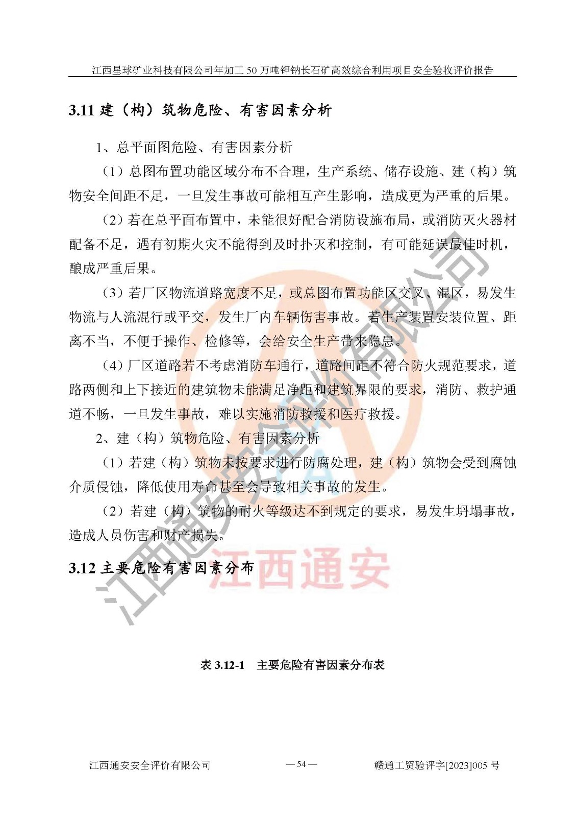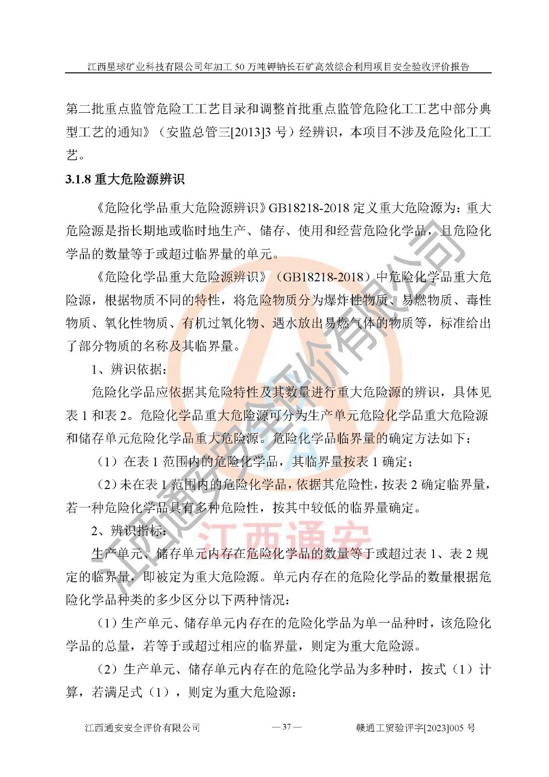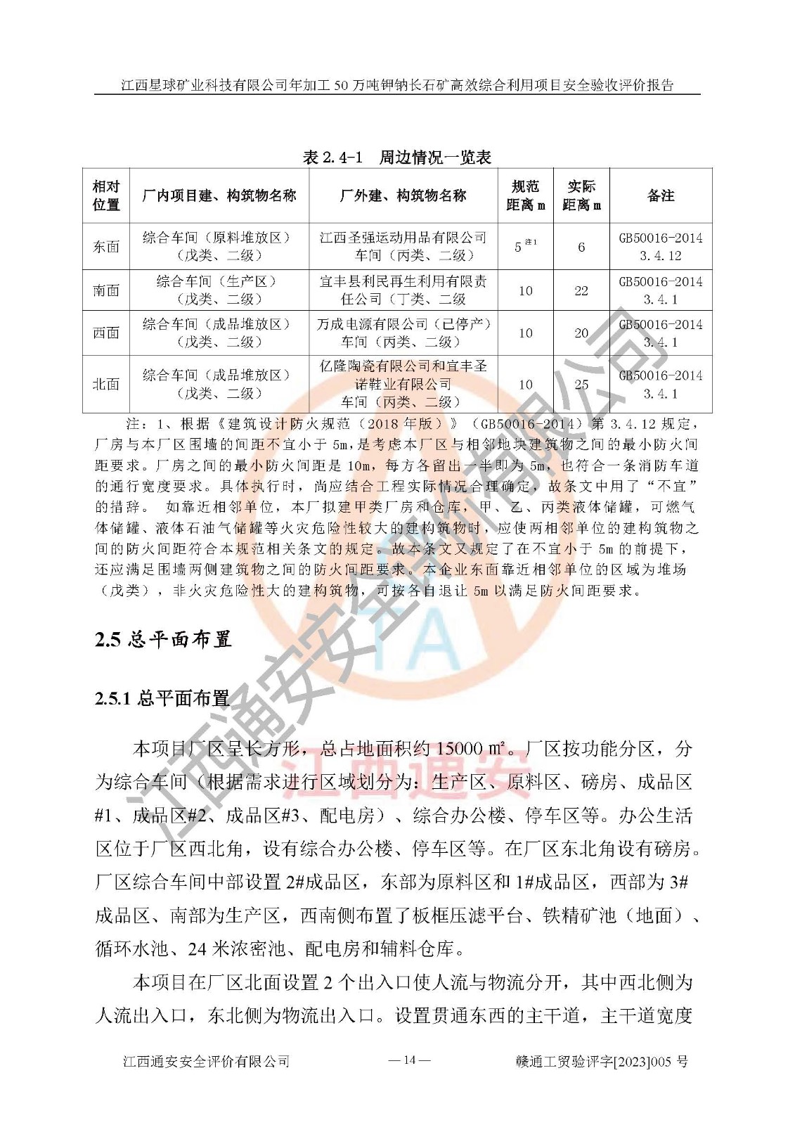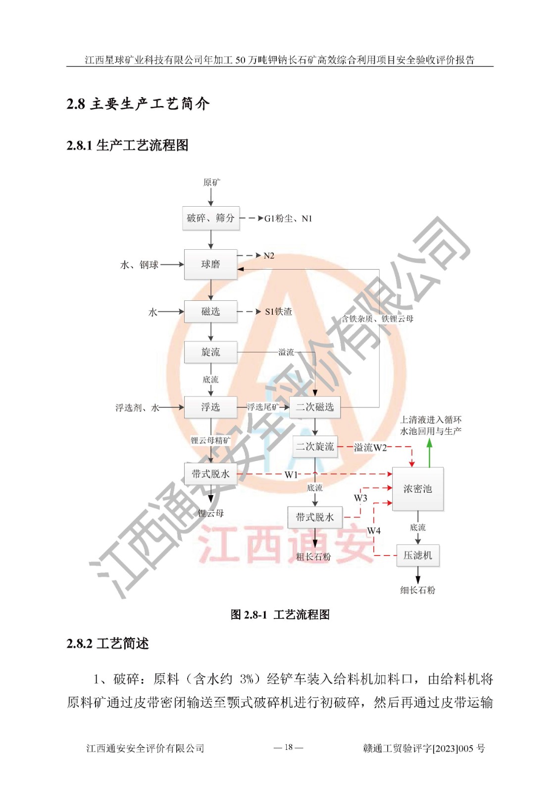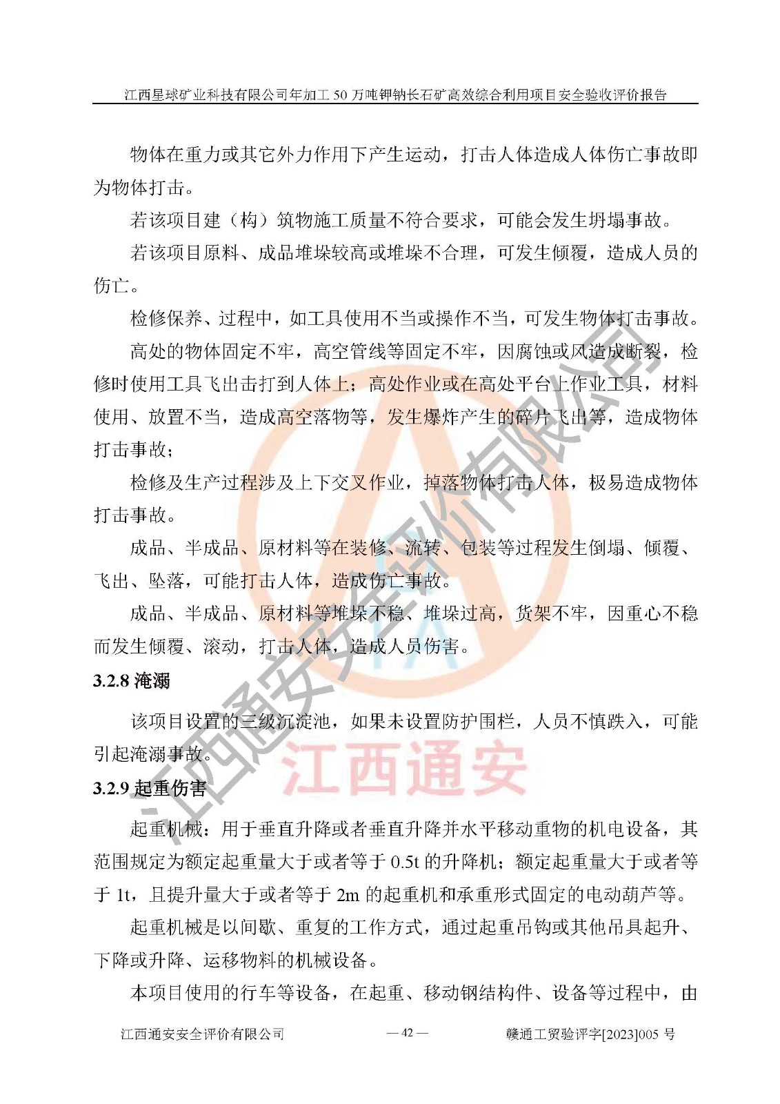 項(xiàng)目簡介 | 本報(bào)告為江西星球礦業(yè)科技有限公司年加工50萬噸鉀鈉長石礦**綜合利用項(xiàng)目安全驗(yàn)收評(píng)價(jià)報(bào)告。江西星球礦業(yè)科技有限公司成立于2010年11月04日,統(tǒng)一社會(huì)信用代碼:9136092456381952X5,注冊(cè)地址江西省宜春市宜豐縣工業(yè)園,注冊(cè)資金500萬元,法人**為何劍興,經(jīng)營范圍:陶瓷原料、化工產(chǎn)品(不含危險(xiǎn)化學(xué)品)加工、銷售;瓷土加工與銷售;瓷土露天開采。本項(xiàng)目為年加工50萬噸鉀鈉長石礦**綜合利用項(xiàng)目,總投資6000萬元。 江西星球礦業(yè)科技有限公司于2015年前后建設(shè)投產(chǎn)了江西星球礦業(yè)科技有限公司年產(chǎn)15萬噸精選鉀長石粉項(xiàng)目(一期5萬噸),為宜春市陶瓷產(chǎn)業(yè)提供優(yōu)質(zhì)的鉀長石原料。為了適應(yīng)市場(chǎng)需求以及公司更好的發(fā)展,從鋰瓷石礦中提取優(yōu)質(zhì)的鋰云母資源,江西星球礦業(yè)科技有限公司決定將現(xiàn)有已建工程(包括已建生產(chǎn)線及配套設(shè)施)**拆除,保留現(xiàn)有工程建構(gòu)筑物,在此基礎(chǔ)上建設(shè)“江西星球礦業(yè)科技有限公司年加工50萬噸鉀鈉長石礦**綜合利用項(xiàng)目”。本次擴(kuò)建主要增加鋰云母提取工藝,為宜春市各鋰電產(chǎn)業(yè)提供優(yōu)質(zhì)的鋰云母原料。 本項(xiàng)目于2022年02月28日在宜豐縣發(fā)展和改革委員會(huì)備案,取得《江西省企業(yè)投資項(xiàng)目備案通知書》(宜豐縣發(fā)展和改革委員會(huì),項(xiàng)目統(tǒng)一代碼為:2201-360924-04-01-704455),2022年4月組織技術(shù)人員編制了《江西星球礦業(yè)科技有限公司年加工50萬噸鉀鈉長石擴(kuò)建項(xiàng)目安全生產(chǎn)條件和設(shè)施綜合分析報(bào)告》,2022年10月委托中裕工程集團(tuán)有限公司編制了《江西星球礦業(yè)科技有限公司年加工50萬噸鉀鈉長石礦**綜合利用項(xiàng)目安全設(shè)施設(shè)計(jì)》。本項(xiàng)目外購礦石,通過破碎、球磨、選礦、脫水后*終產(chǎn)出鋰云母精礦、長石粉及尾泥。其中在生產(chǎn)工藝中主要涉及的化學(xué)品為聚丙烯酸酰胺、浮選劑,檢維修工序使用到的氧氣、乙炔以及裝載車和叉車使用到的燃料柴油。經(jīng)辨識(shí),該項(xiàng)目不構(gòu)成危險(xiǎn)品重大危險(xiǎn)源。根據(jù)生產(chǎn)工藝特點(diǎn)及物料的理化特性可知,該項(xiàng)目生產(chǎn)過程中存在火災(zāi)、爆炸、機(jī)械傷害、灼燙、觸電、**傷害、高處墜落、坍塌、物體打擊、淹溺、起重傷害、中毒窒息、其他傷害等危險(xiǎn)有害因素。