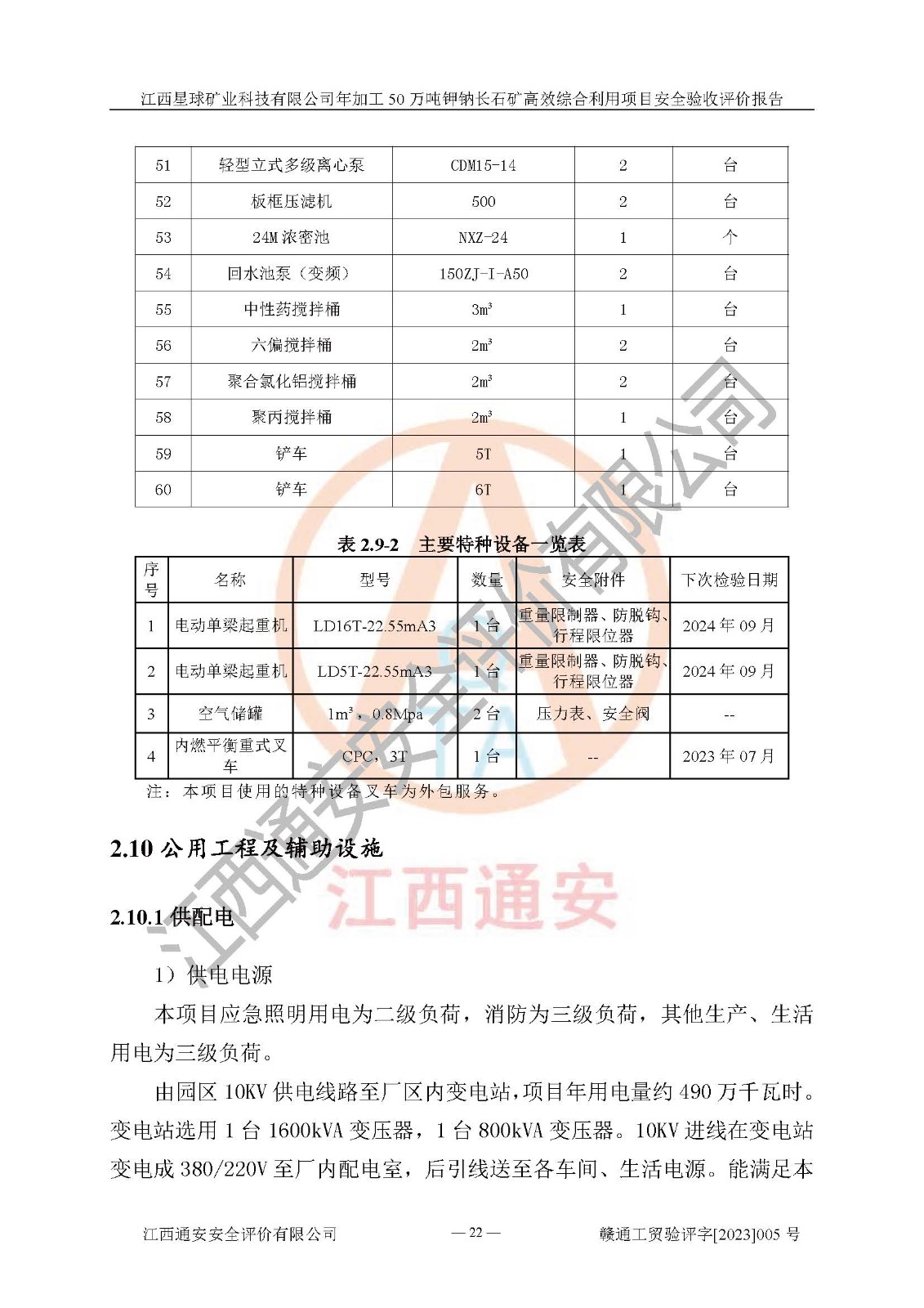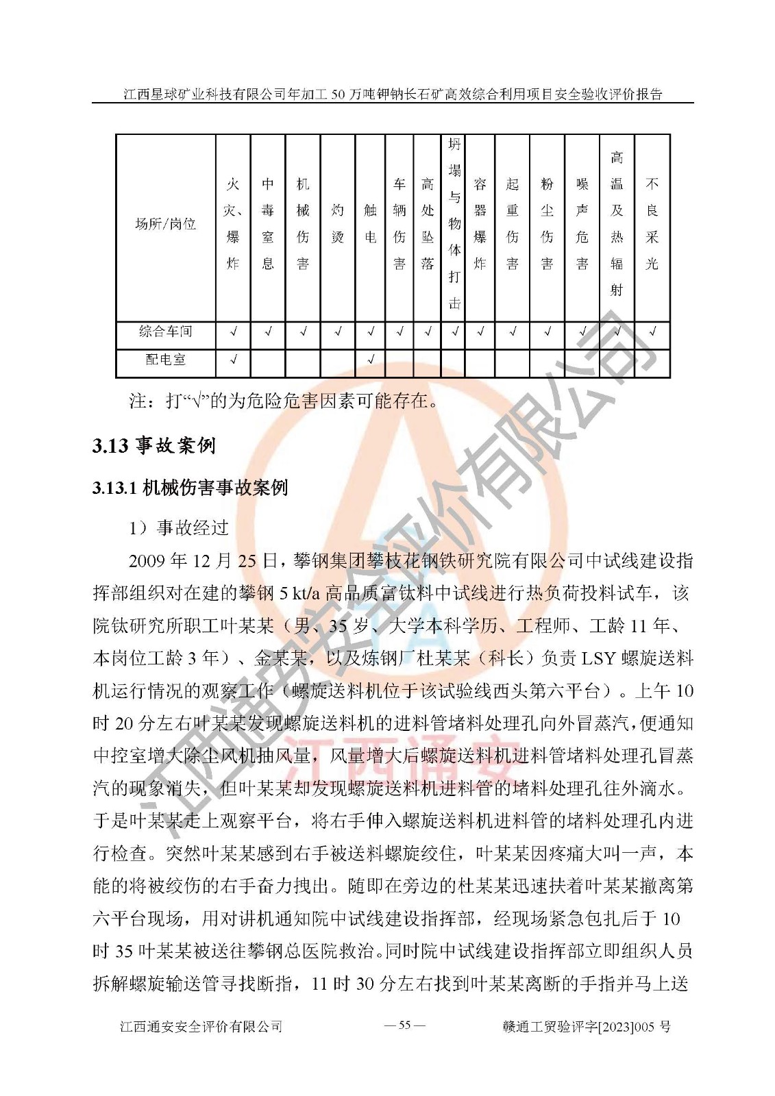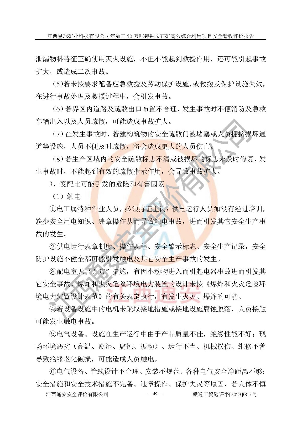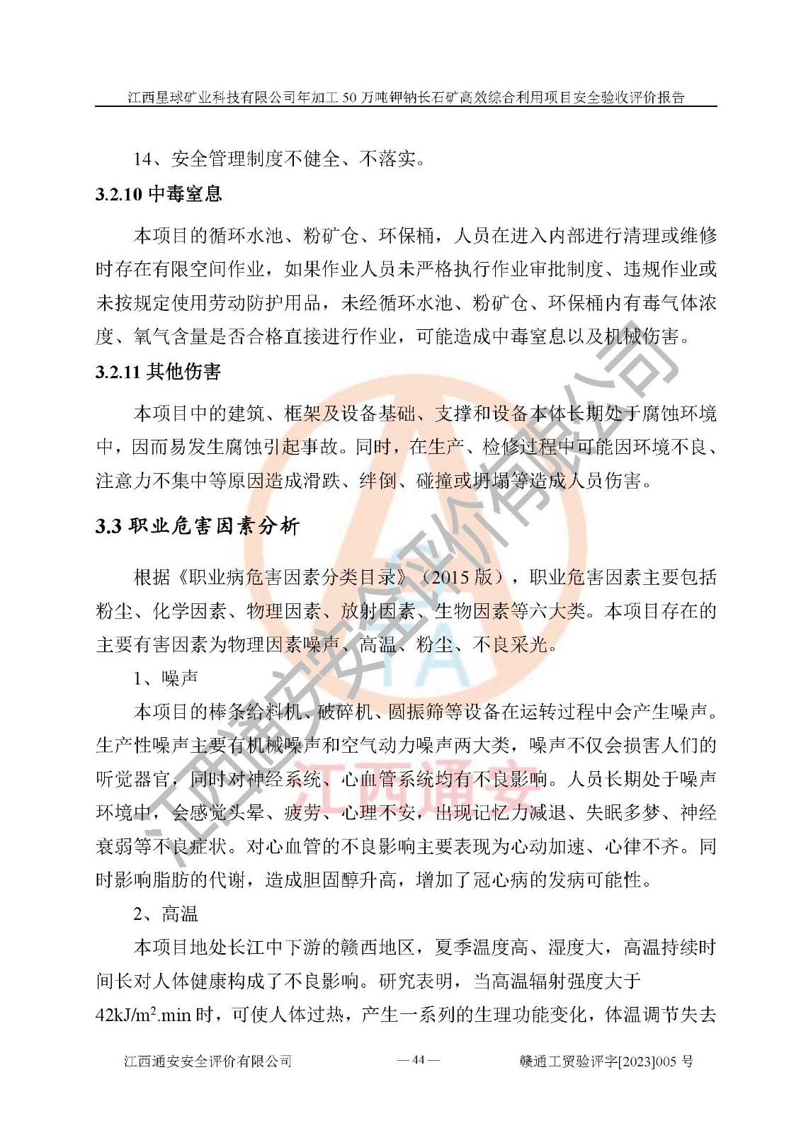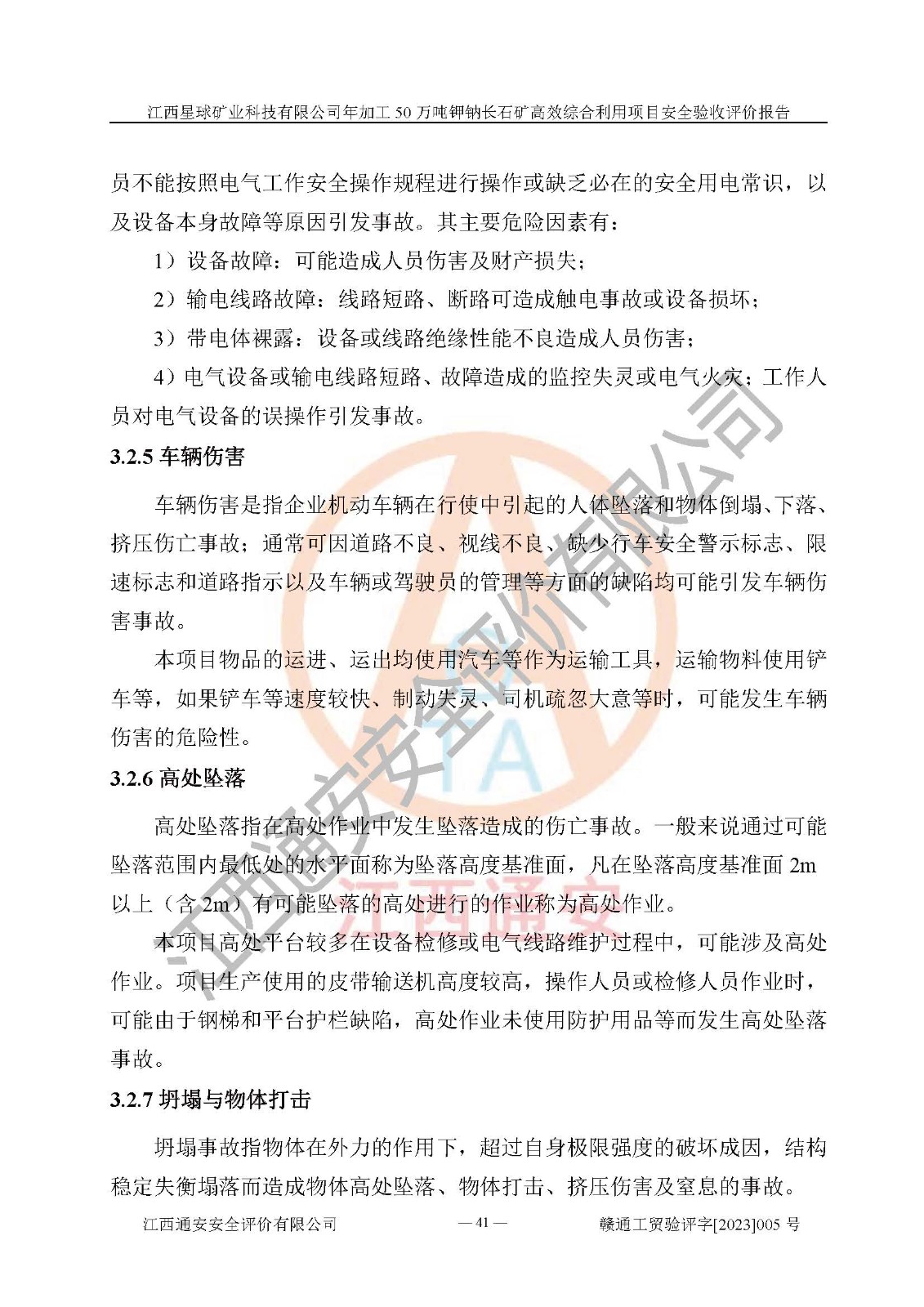 項(xiàng)目簡介 | 本報(bào)告為江西星球礦業(yè)科技有限公司年加工50萬噸鉀鈉長石礦**綜合利用項(xiàng)目安全驗(yàn)收評(píng)價(jià)報(bào)告。江西星球礦業(yè)科技有限公司成立于2010年11月04日,統(tǒng)一社會(huì)信用代碼:9136092456381952X5,注冊(cè)地址江西省宜春市宜豐縣工業(yè)園,注冊(cè)資金500萬元,法人**為何劍興,經(jīng)營范圍:陶瓷原料、化工產(chǎn)品(不含危險(xiǎn)化學(xué)品)加工、銷售;瓷土加工與銷售;瓷土露天開采。本項(xiàng)目為年加工50萬噸鉀鈉長石礦**綜合利用項(xiàng)目,總投資6000萬元。 江西星球礦業(yè)科技有限公司于2015年前后建設(shè)投產(chǎn)了江西星球礦業(yè)科技有限公司年產(chǎn)15萬噸精選鉀長石粉項(xiàng)目(一期5萬噸),為宜春市陶瓷產(chǎn)業(yè)提供優(yōu)質(zhì)的鉀長石原料。為了適應(yīng)市場(chǎng)需求以及公司更好的發(fā)展,從鋰瓷石礦中提取優(yōu)質(zhì)的鋰云母資源,江西星球礦業(yè)科技有限公司決定將現(xiàn)有已建工程(包括已建生產(chǎn)線及配套設(shè)施)**拆除,保留現(xiàn)有工程建構(gòu)筑物,在此基礎(chǔ)上建設(shè)“江西星球礦業(yè)科技有限公司年加工50萬噸鉀鈉長石礦**綜合利用項(xiàng)目”。本次擴(kuò)建主要增加鋰云母提取工藝,為宜春市各鋰電產(chǎn)業(yè)提供優(yōu)質(zhì)的鋰云母原料。 本項(xiàng)目于2022年02月28日在宜豐縣發(fā)展和改革委員會(huì)備案,取得《江西省企業(yè)投資項(xiàng)目備案通知書》(宜豐縣發(fā)展和改革委員會(huì),項(xiàng)目統(tǒng)一代碼為:2201-360924-04-01-704455),2022年4月組織技術(shù)人員編制了《江西星球礦業(yè)科技有限公司年加工50萬噸鉀鈉長石擴(kuò)建項(xiàng)目安全生產(chǎn)條件和設(shè)施綜合分析報(bào)告》,2022年10月委托中裕工程集團(tuán)有限公司編制了《江西星球礦業(yè)科技有限公司年加工50萬噸鉀鈉長石礦**綜合利用項(xiàng)目安全設(shè)施設(shè)計(jì)》。本項(xiàng)目外購礦石,通過破碎、球磨、選礦、脫水后*終產(chǎn)出鋰云母精礦、長石粉及尾泥。其中在生產(chǎn)工藝中主要涉及的化學(xué)品為聚丙烯酸酰胺、浮選劑,檢維修工序使用到的氧氣、乙炔以及裝載車和叉車使用到的燃料柴油。經(jīng)辨識(shí),該項(xiàng)目不構(gòu)成危險(xiǎn)品重大危險(xiǎn)源。根據(jù)生產(chǎn)工藝特點(diǎn)及物料的理化特性可知,該項(xiàng)目生產(chǎn)過程中存在火災(zāi)、爆炸、機(jī)械傷害、灼燙、觸電、**傷害、高處墜落、坍塌、物體打擊、淹溺、起重傷害、中毒窒息、其他傷害等危險(xiǎn)有害因素。