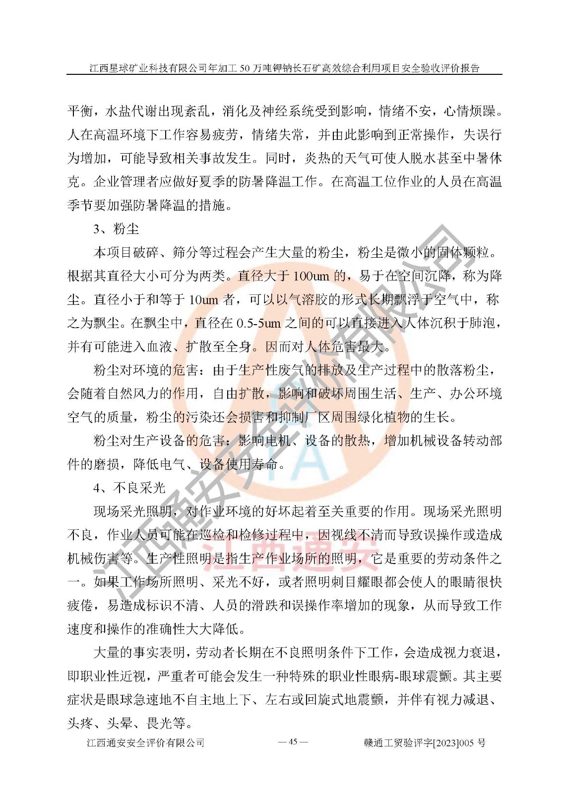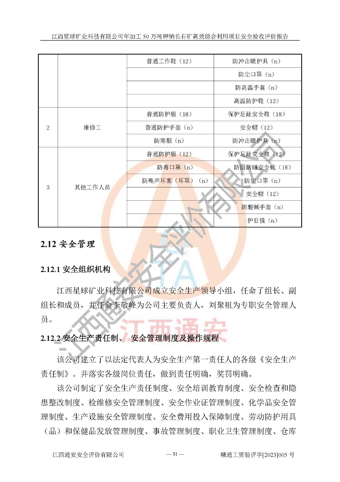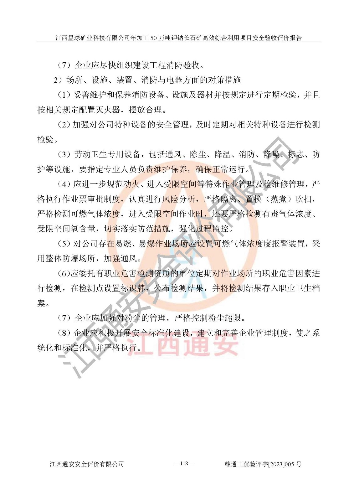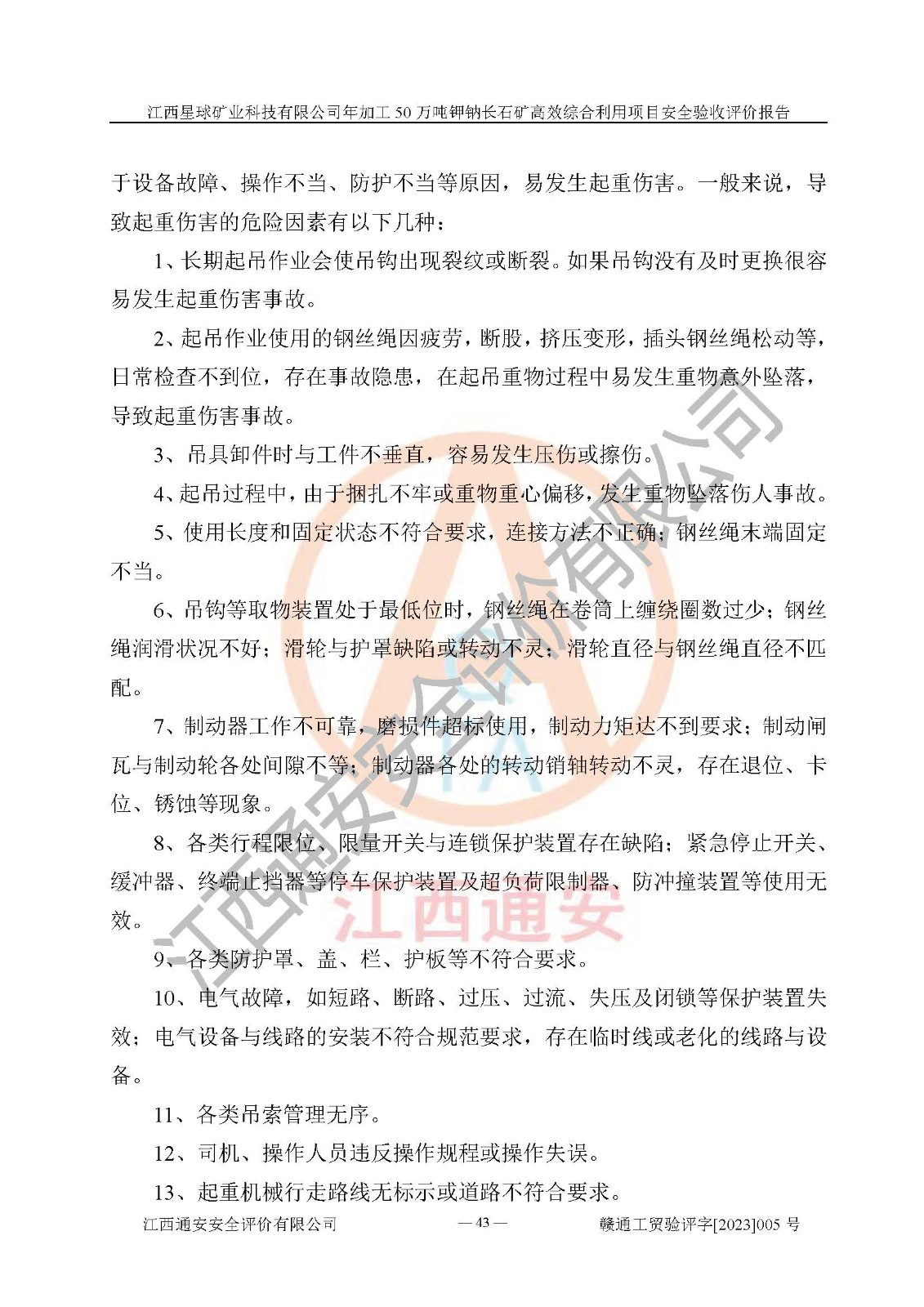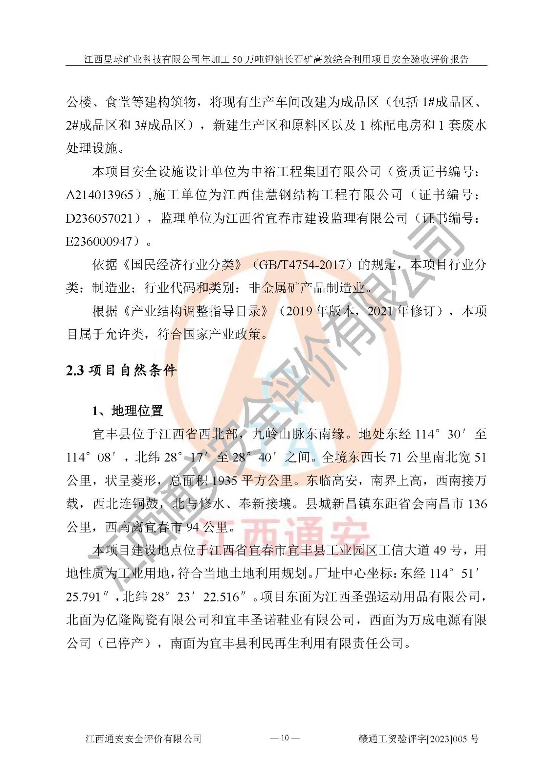 項(xiàng)目簡介 | 本報(bào)告為江西星球礦業(yè)科技有限公司年加工50萬噸鉀鈉長石礦**綜合利用項(xiàng)目安全驗(yàn)收評(píng)價(jià)報(bào)告。江西星球礦業(yè)科技有限公司成立于2010年11月04日,統(tǒng)一社會(huì)信用代碼:9136092456381952X5,注冊(cè)地址江西省宜春市宜豐縣工業(yè)園,注冊(cè)資金500萬元,法人**為何劍興,經(jīng)營范圍:陶瓷原料、化工產(chǎn)品(不含危險(xiǎn)化學(xué)品)加工、銷售;瓷土加工與銷售;瓷土露天開采。本項(xiàng)目為年加工50萬噸鉀鈉長石礦**綜合利用項(xiàng)目,總投資6000萬元。 江西星球礦業(yè)科技有限公司于2015年前后建設(shè)投產(chǎn)了江西星球礦業(yè)科技有限公司年產(chǎn)15萬噸精選鉀長石粉項(xiàng)目(一期5萬噸),為宜春市陶瓷產(chǎn)業(yè)提供優(yōu)質(zhì)的鉀長石原料。為了適應(yīng)市場(chǎng)需求以及公司更好的發(fā)展,從鋰瓷石礦中提取優(yōu)質(zhì)的鋰云母資源,江西星球礦業(yè)科技有限公司決定將現(xiàn)有已建工程(包括已建生產(chǎn)線及配套設(shè)施)**拆除,保留現(xiàn)有工程建構(gòu)筑物,在此基礎(chǔ)上建設(shè)“江西星球礦業(yè)科技有限公司年加工50萬噸鉀鈉長石礦**綜合利用項(xiàng)目”。本次擴(kuò)建主要增加鋰云母提取工藝,為宜春市各鋰電產(chǎn)業(yè)提供優(yōu)質(zhì)的鋰云母原料。 本項(xiàng)目于2022年02月28日在宜豐縣發(fā)展和改革委員會(huì)備案,取得《江西省企業(yè)投資項(xiàng)目備案通知書》(宜豐縣發(fā)展和改革委員會(huì),項(xiàng)目統(tǒng)一代碼為:2201-360924-04-01-704455),2022年4月組織技術(shù)人員編制了《江西星球礦業(yè)科技有限公司年加工50萬噸鉀鈉長石擴(kuò)建項(xiàng)目安全生產(chǎn)條件和設(shè)施綜合分析報(bào)告》,2022年10月委托中裕工程集團(tuán)有限公司編制了《江西星球礦業(yè)科技有限公司年加工50萬噸鉀鈉長石礦**綜合利用項(xiàng)目安全設(shè)施設(shè)計(jì)》。本項(xiàng)目外購礦石,通過破碎、球磨、選礦、脫水后*終產(chǎn)出鋰云母精礦、長石粉及尾泥。其中在生產(chǎn)工藝中主要涉及的化學(xué)品為聚丙烯酸酰胺、浮選劑,檢維修工序使用到的氧氣、乙炔以及裝載車和叉車使用到的燃料柴油。經(jīng)辨識(shí),該項(xiàng)目不構(gòu)成危險(xiǎn)品重大危險(xiǎn)源。根據(jù)生產(chǎn)工藝特點(diǎn)及物料的理化特性可知,該項(xiàng)目生產(chǎn)過程中存在火災(zāi)、爆炸、機(jī)械傷害、灼燙、觸電、**傷害、高處墜落、坍塌、物體打擊、淹溺、起重傷害、中毒窒息、其他傷害等危險(xiǎn)有害因素。