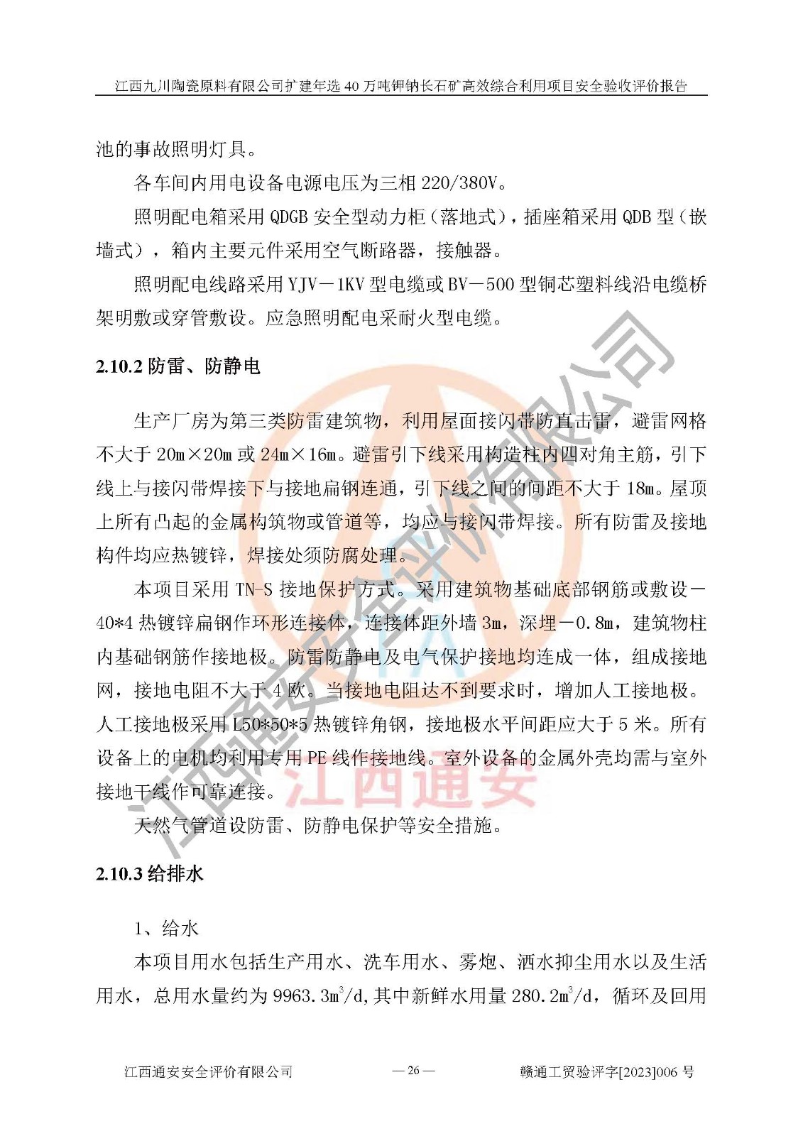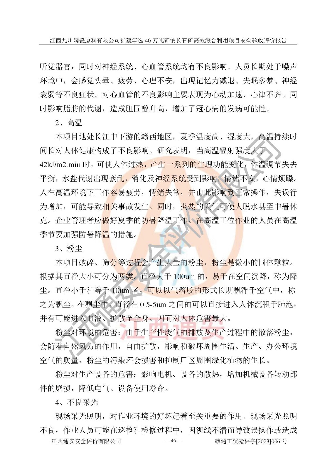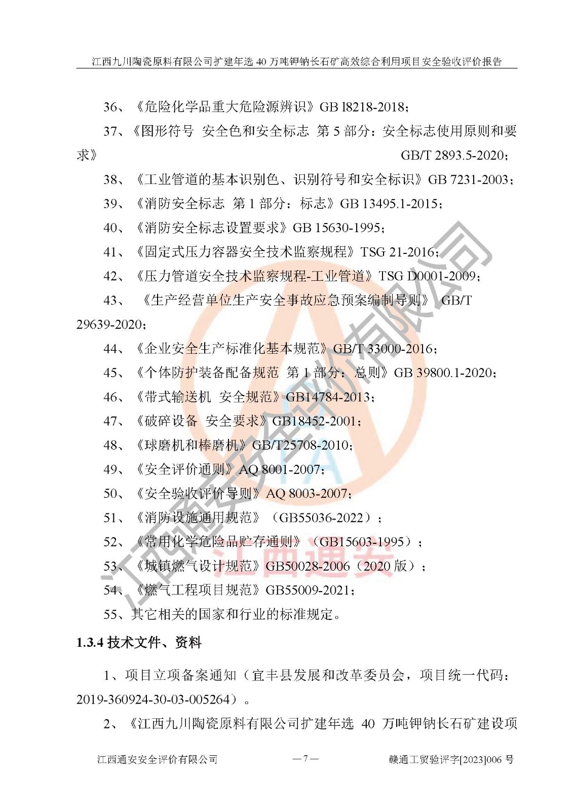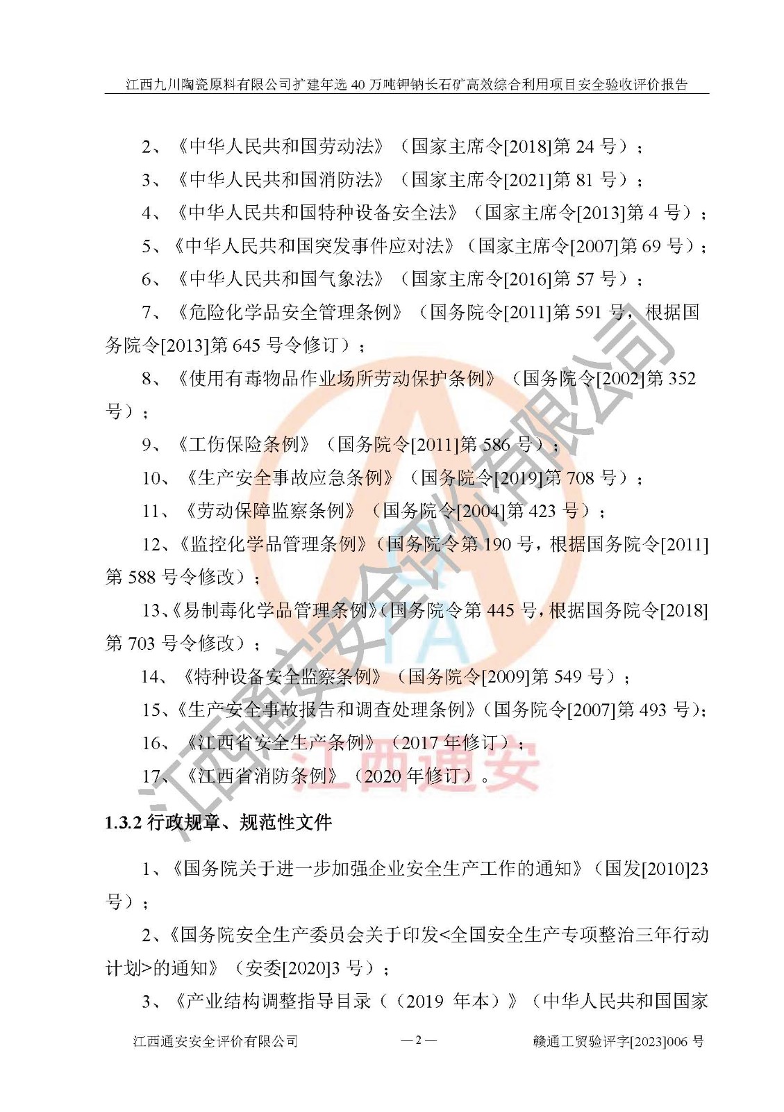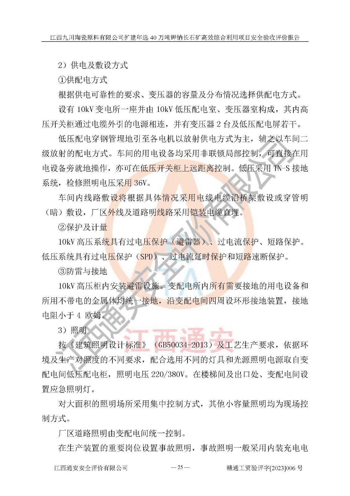 項目簡介 | 本報告為江西九川陶瓷原料有限公司擴(kuò)建年選40萬噸鉀鈉長石礦**綜合利用項目安全驗收評價報告。江西九川陶瓷原料有限公司成立于2012年5月18日,統(tǒng)一社會信用代碼:913609245965074856,注冊地址江西省宜春市宜豐縣工業(yè)園,注冊資金200萬元,法人**為趙宏業(yè),經(jīng)營范圍:瓷土、高嶺土、鉀長石、粘土陶瓷熔塊加工銷售。(依法須經(jīng)批準(zhǔn)的項目,經(jīng)相關(guān)部門批準(zhǔn)后方可開展經(jīng)營法動)。本項目為擴(kuò)建年選40萬噸鉀鈉長石礦**綜合利用項目,總投資4000萬元。 江西九川陶瓷原料有限公司于2014年前后建設(shè)投產(chǎn)了江西九川陶瓷原料有限公司年產(chǎn)75萬噸鉀長石項目,為宜春市陶瓷產(chǎn)業(yè)提供優(yōu)質(zhì)的鉀長石原料。為了適應(yīng)市場需求以及公司更好的發(fā)展,從鋰瓷石礦中提取優(yōu)質(zhì)的鋰云母資源,江西九川陶瓷原料有限公司決定依托現(xiàn)有破碎車間,利用現(xiàn)有原料堆棚改造為選礦車間,擴(kuò)建年選40萬噸鉀鈉長石礦**綜合利用項目。本次擴(kuò)建主要增加鋰云母提取工藝,為宜春市各鋰電產(chǎn)業(yè)提供優(yōu)質(zhì)的鋰云母原料。 本項目于2019年04月01日在宜豐縣發(fā)展和改革委員會備案,取得《江西省企業(yè)投資項目備案通知書》(宜豐縣發(fā)展和改革委員會,項目統(tǒng)一代碼為:2019-360924-30-03-005264),2022年4月組織技術(shù)人員編制了《江西九川陶瓷原料有限公司擴(kuò)建年選40萬噸鉀鈉長石礦建設(shè)項目選址安全條件論證報告》,2022年10月委托中裕工程集團(tuán)有限公司編制了《江西九川陶瓷原料有限公司擴(kuò)建年選40萬噸鉀鈉長石礦**綜合利用項目安全設(shè)施設(shè)計》。本項目外購礦石,通過破碎、球磨、選礦、脫水、烘干后*終產(chǎn)出鋰云母精礦、長石粉及尾泥。其中在生產(chǎn)工藝中主要涉及的化學(xué)品為聚丙烯酸酰胺、浮選劑,檢維修工序使用到的氧氣、乙炔,裝載車使用到的燃料柴油以及管道天然氣。經(jīng)辨識,該項目不構(gòu)成危險品重大危險源。根據(jù)生產(chǎn)工藝特點及物料的理化特性可知,該項目生產(chǎn)過程中存在火災(zāi)、爆炸、機(jī)械傷害、灼燙、觸電、**傷害、高處墜落、坍塌、物體打擊、淹溺、起重傷害、中毒窒息、其他傷害等危險有害因素。