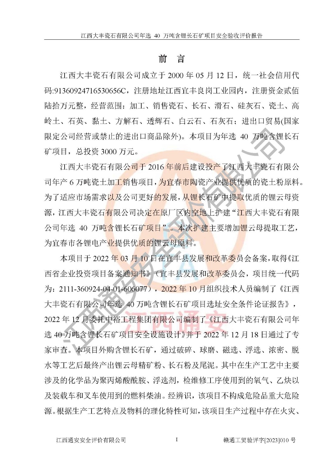 項(xiàng)目名稱 | 江西大豐瓷石有限公司年選 40 萬噸含鋰長石礦項(xiàng)目 | ||||