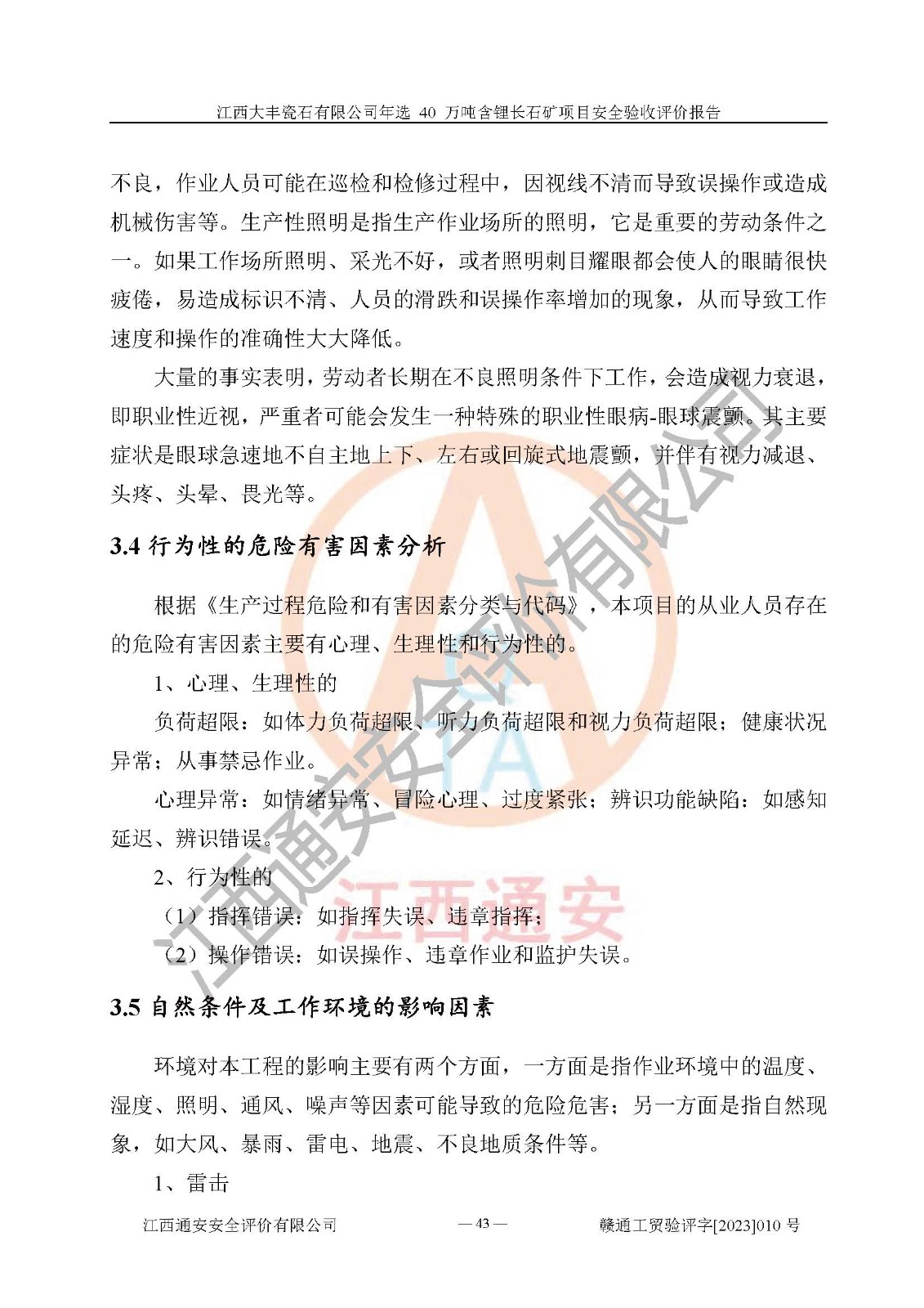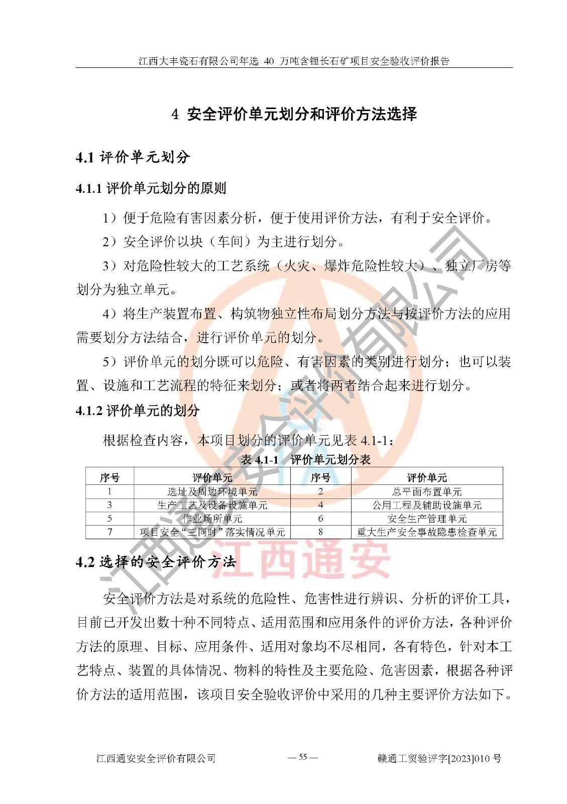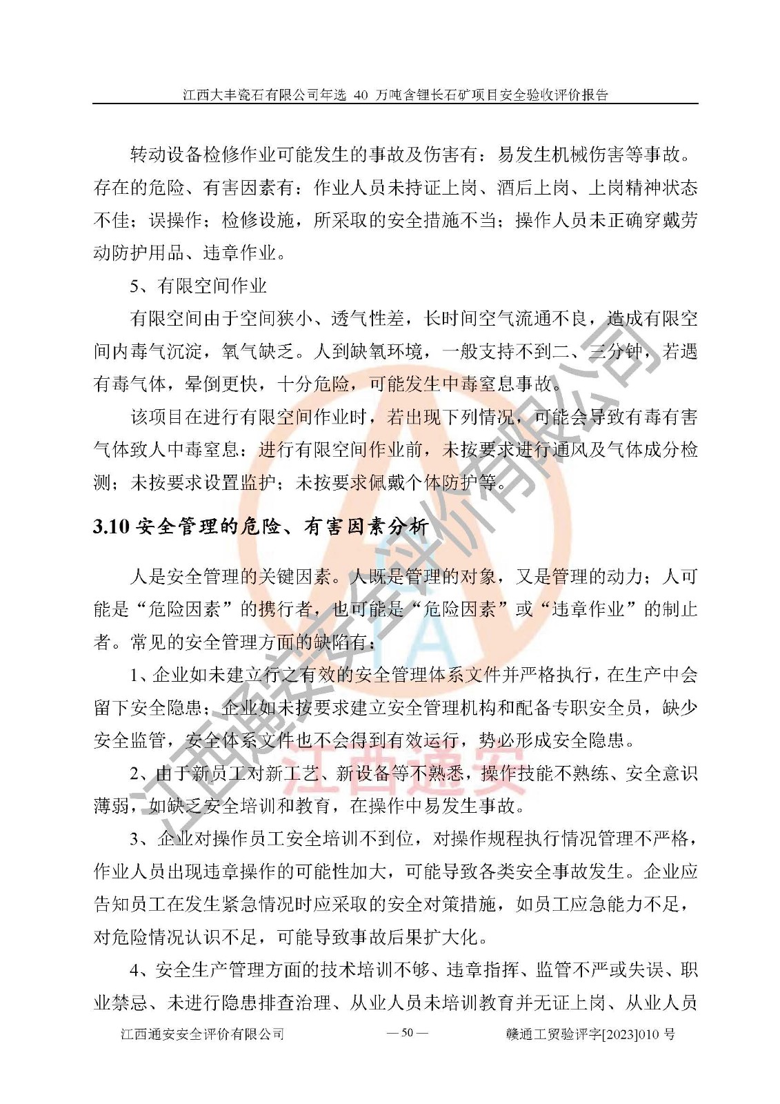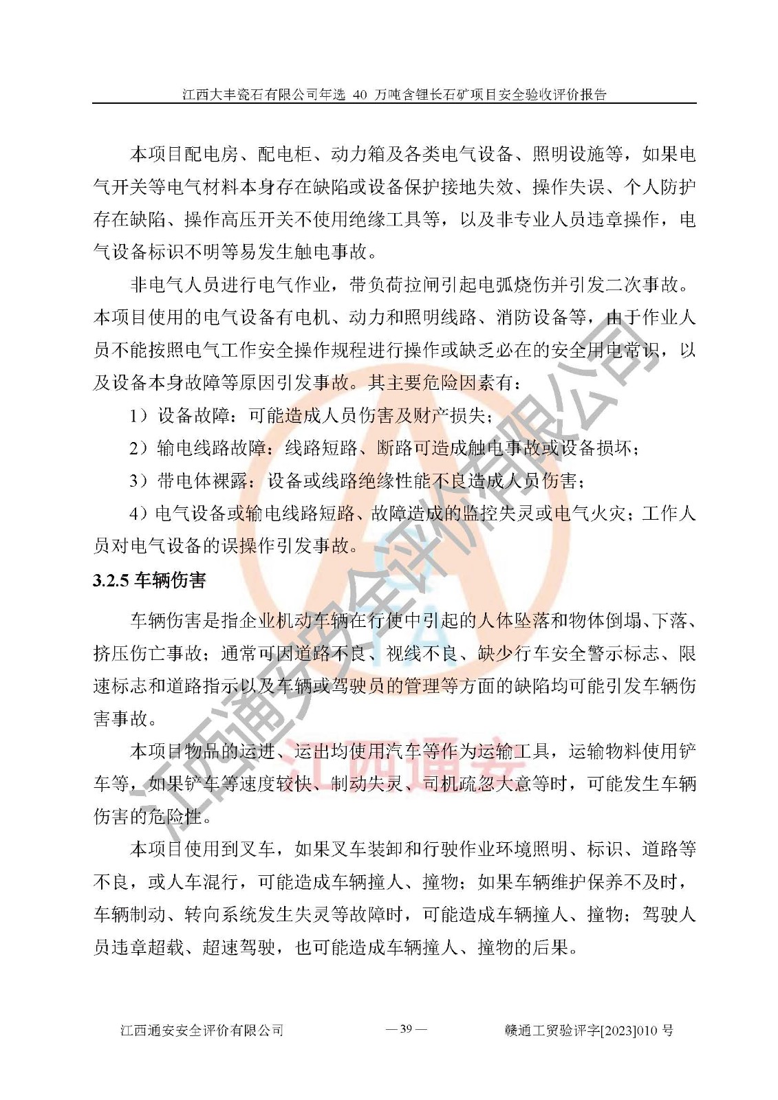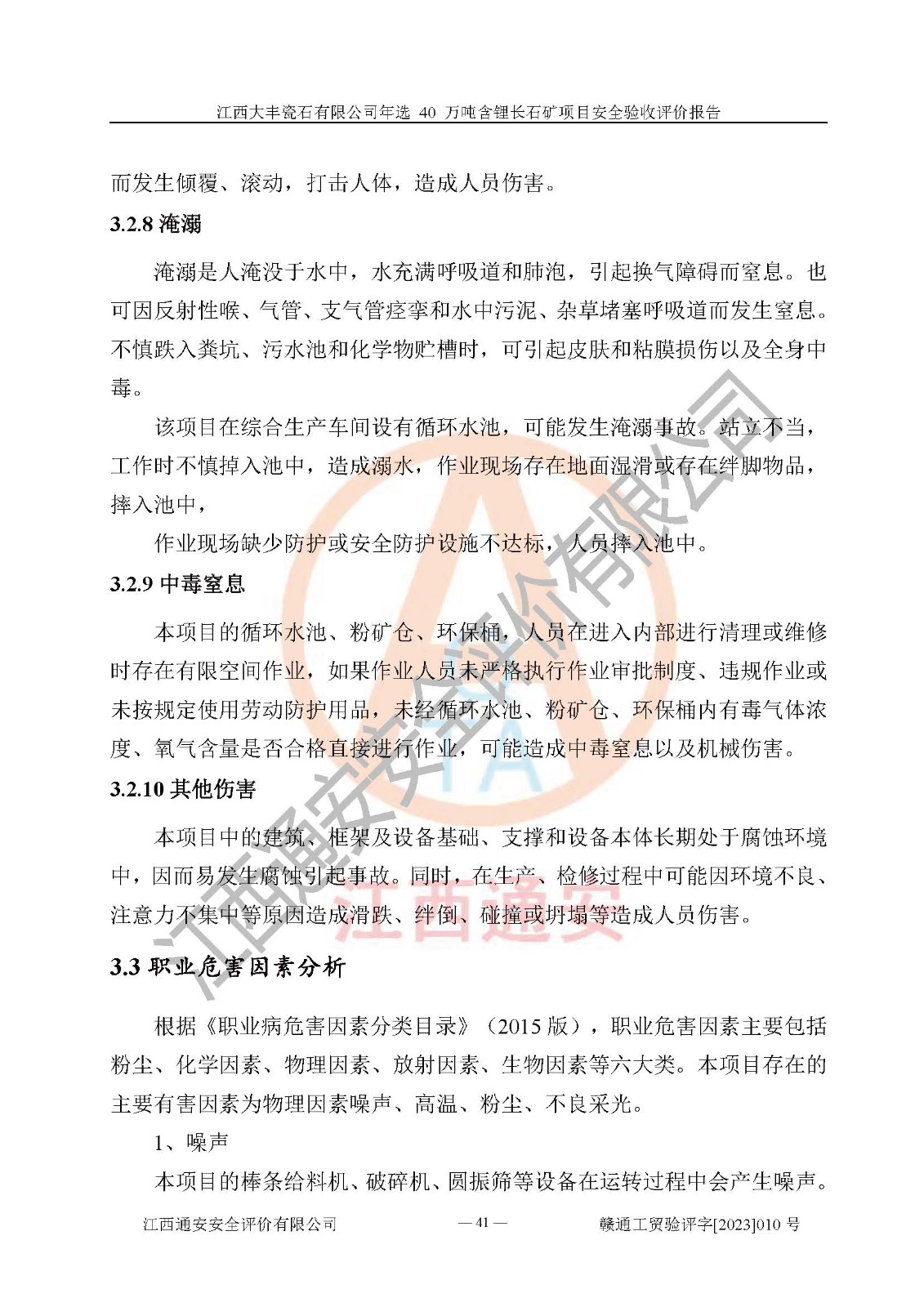 其它 | 根據(jù)《中華人民共和國安全生產(chǎn)法》、《新建項(xiàng)目安全設(shè)施“三同時”監(jiān)督管理辦法》(原**安全生產(chǎn)監(jiān)督管理總局令第77號修訂)等法律法規(guī)的要求,對江西大豐瓷石有限公司年選 40 萬噸含鋰長石礦項(xiàng)目安全驗(yàn)收的基本條件進(jìn)行分析,結(jié)果如下: 1)本項(xiàng)目在初步設(shè)計(jì)及建設(shè)過程中基本能貫徹執(zhí)行**、地方及有關(guān)部門的安全生產(chǎn)法律法規(guī)、標(biāo)準(zhǔn)要求,取得了**相關(guān)部門的許可、備案。項(xiàng)目的設(shè)計(jì)、施工、監(jiān)理等單位均有相應(yīng)資質(zhì)。 2)本項(xiàng)目址選符合要求;總平面布置合理,主要建筑的防火間距符合符合《建筑設(shè)計(jì)防火規(guī)范(2018版)》(GB50016-2014)、《工業(yè)企業(yè)總平面設(shè)計(jì)規(guī)范》(GB50187-2012)有關(guān)規(guī)范、標(biāo)準(zhǔn)的要求。 3)本項(xiàng)目生產(chǎn)工藝成熟、試運(yùn)行正常,試運(yùn)行中過程中工藝和裝置、設(shè)備(設(shè)施)安全、可靠,未發(fā)生安全事故。 4)本項(xiàng)目的特種設(shè)備由有資質(zhì)單位設(shè)計(jì)、制造、安裝,特種設(shè)備經(jīng)宜春市特種設(shè)備檢驗(yàn)中心檢驗(yàn)合格,符合《中華人民共和國特種設(shè)備安全法》、《特種設(shè)備安全監(jiān)察條例》(中華人民共和國***令第549號)的規(guī)定。特種設(shè)備作業(yè)人員、特種作業(yè)人員均持證上崗。 5)企業(yè)主要負(fù)責(zé)人、安全管理人員均取得了江西省億源企業(yè)咨詢服務(wù)有限公司頒發(fā)的培訓(xùn)證書,特種作業(yè)人員操作證在**期內(nèi),其他從業(yè)人員經(jīng)安全培訓(xùn)符合,取得上崗證。 6)企業(yè)建立有安全管理制度,制定有各類人員的安全生產(chǎn)責(zé)任制、各項(xiàng)安全管理制度和操作規(guī)程。按照**有關(guān)規(guī)定編制了事故應(yīng)急救援預(yù)案并進(jìn)行了備案,并定期進(jìn)行演練等,符合要求。 7)本項(xiàng)目作業(yè)條件危險(xiǎn)性分析結(jié)果:在選定的單元的危險(xiǎn)程度均為“可能危險(xiǎn),需要注意”或“稍有危險(xiǎn),可以接受”,作業(yè)條件相對安全。 評價結(jié)論: 江西大豐瓷石有限公司年選 40 萬噸含鋰長石礦項(xiàng)目的安全設(shè)施及安全管理符合**及有關(guān)部門關(guān)于安全生產(chǎn)法律、法規(guī)、標(biāo)準(zhǔn)的要求,該項(xiàng)目試生產(chǎn)以來,工藝設(shè)備、安全設(shè)施及企業(yè)安全管理機(jī)制等運(yùn)行正常,安全設(shè)施、措施達(dá)到設(shè)計(jì)要求和預(yù)期結(jié)果,可以滿足建設(shè)項(xiàng)目安全生產(chǎn)的要求,安全生產(chǎn)管理**,具備竣工驗(yàn)收條件。 | ||||