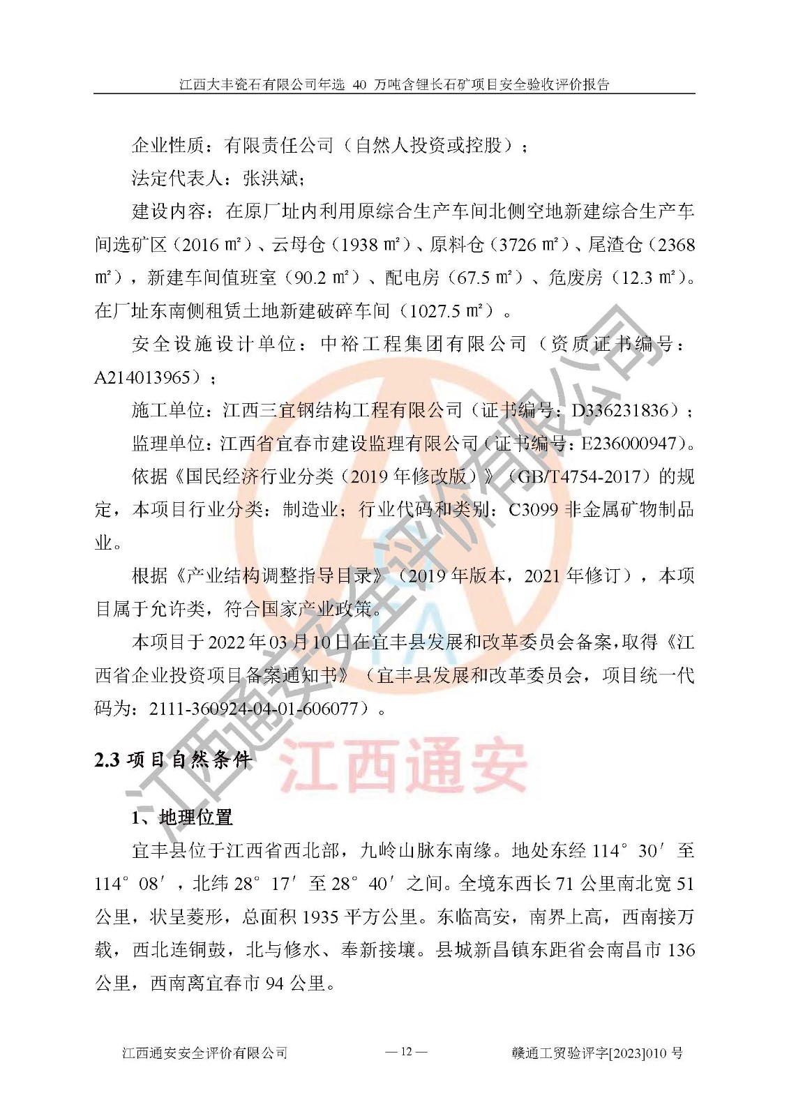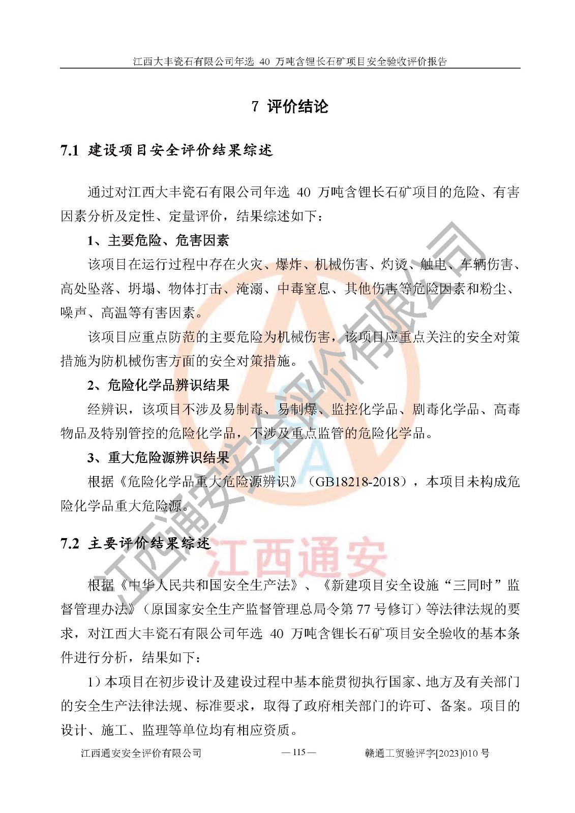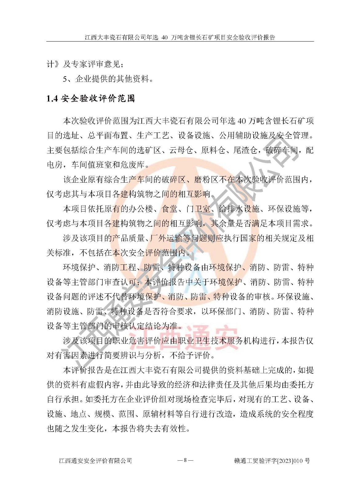 報(bào)告編號:贛通工貿(mào)驗(yàn)評字[2023]010號