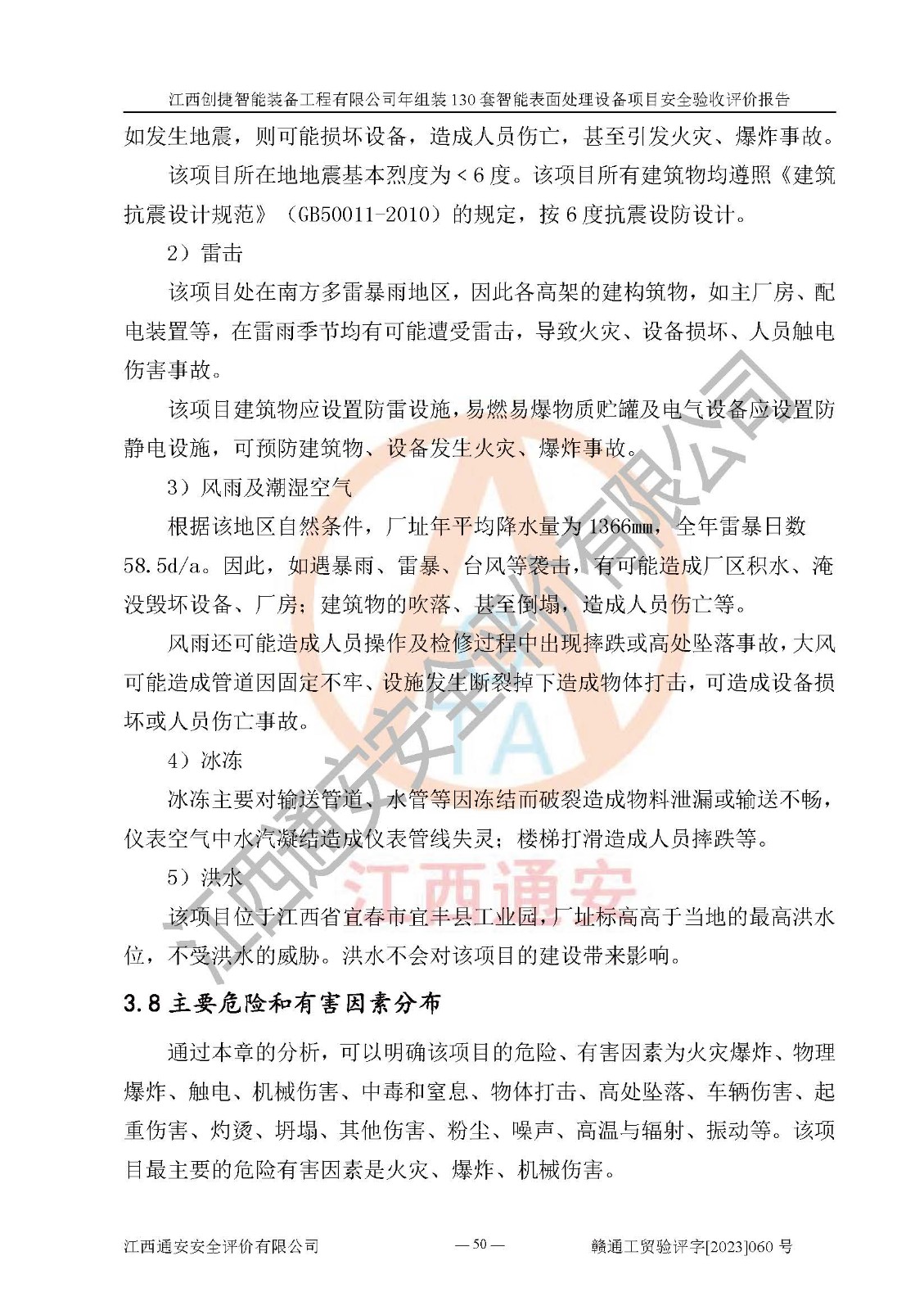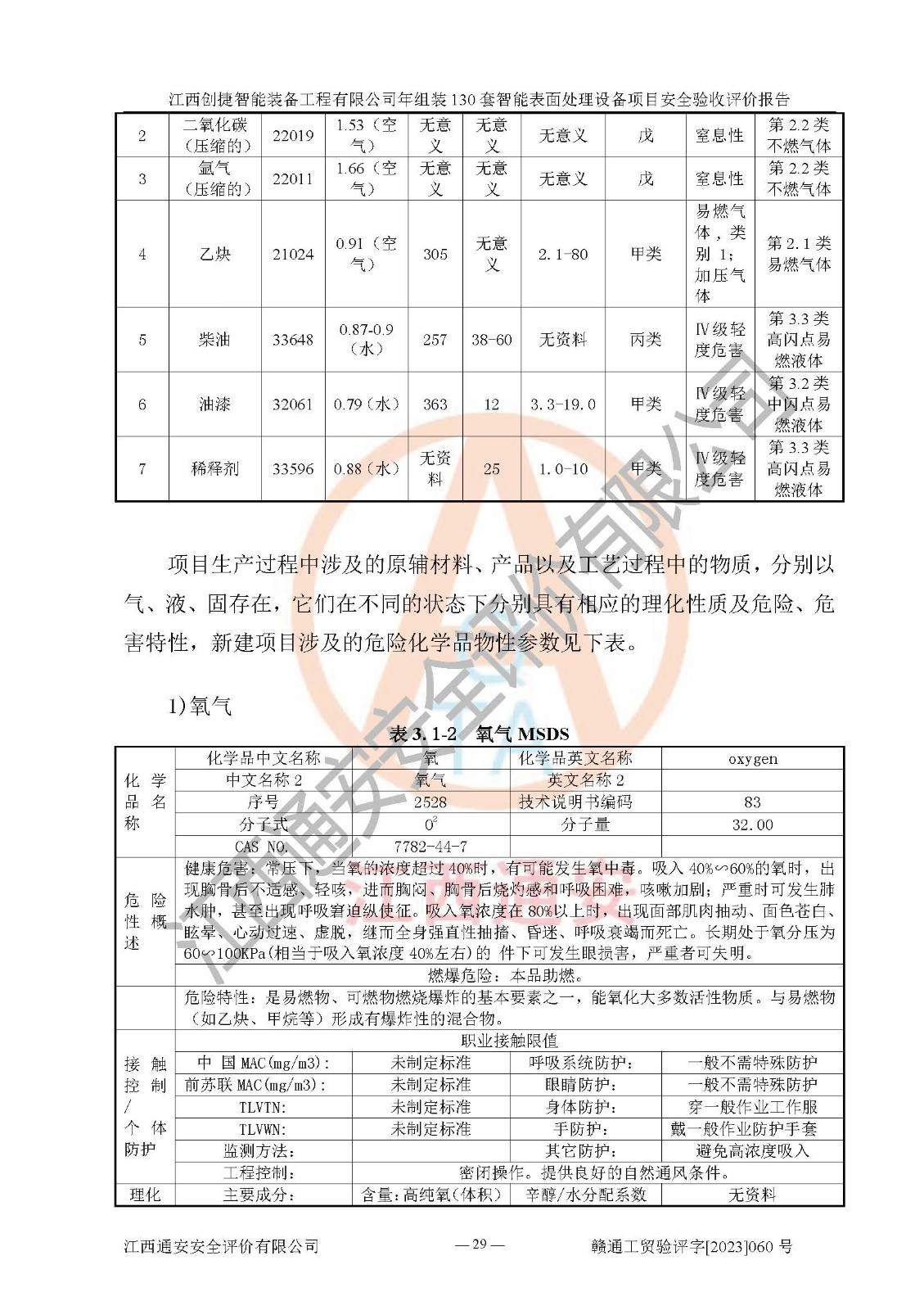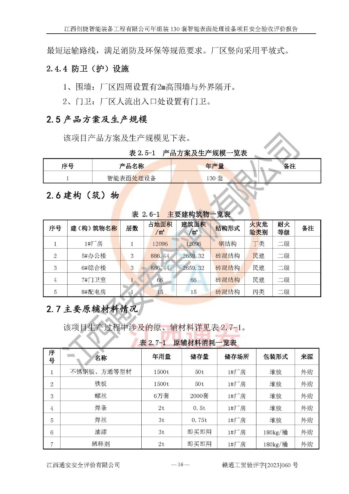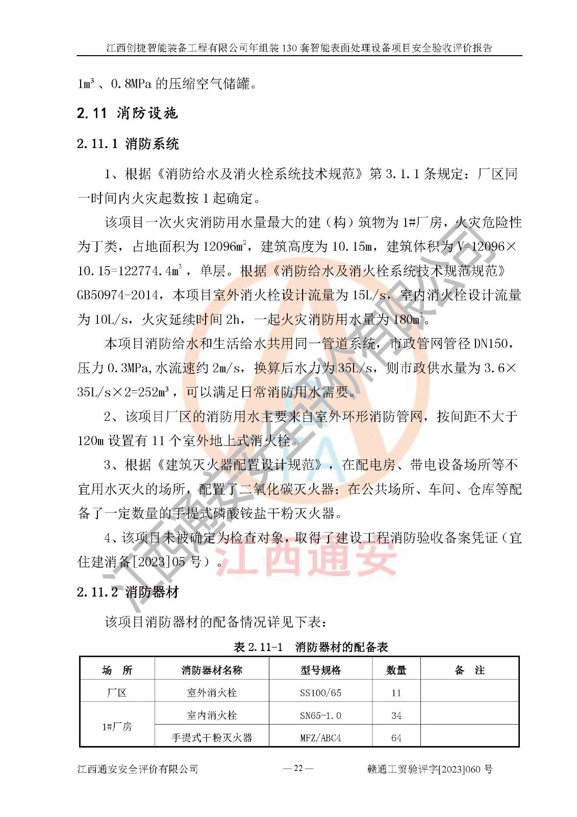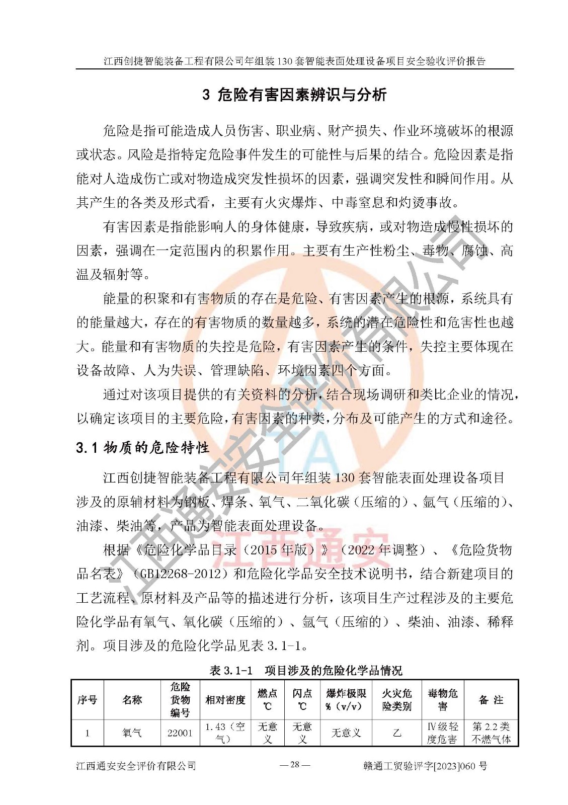 項(xiàng)目簡介 | 江西創(chuàng)捷智能裝備工程有限公司位于江西省宜春市宜豐縣工業(yè)園長新路。法人**人楊鋼,公司注冊資本叁億元整,公司經(jīng)營范圍:除塵設(shè)備、工業(yè)機(jī)器人及其他**設(shè)備的設(shè)計(jì)、生產(chǎn)、銷售、安裝、維修、技術(shù)咨詢服務(wù);五金機(jī)電設(shè)備、磨料、鋼砂、鋼丸、棕剛玉、白剛玉銷售;進(jìn)出口貿(mào)易(**限定公司經(jīng)營或禁止的進(jìn)出口商品除外,依法須經(jīng)批準(zhǔn)的項(xiàng)目,經(jīng)相關(guān)部門批準(zhǔn)后方可開展經(jīng)營活動)。廠區(qū)占地面積53332***(約合80畝),項(xiàng)目建成后,形成年產(chǎn)智能表面處理設(shè)備130套。 江西創(chuàng)捷智能裝備工程有限公司年組裝130套智能表面處理設(shè)備項(xiàng)目于2019年10月9日在江西省宜豐縣發(fā)展和改革委員會備案(項(xiàng)目代碼:201119-360924-34-03-024454號),于2020年4月組織技術(shù)人員編制了選址安全條件論證報(bào)告,于2020年11月委托中北工程設(shè)計(jì)咨詢有限公司編制了江西創(chuàng)捷智能裝備工程有限公司年組裝130套智能表面處理設(shè)備項(xiàng)目安全設(shè)施設(shè)計(jì),2023年8月由中北工程設(shè)計(jì)咨詢有限公司出具安全設(shè)施設(shè)計(jì)變更通知單,該項(xiàng)目生產(chǎn)過程中涉及的危險(xiǎn)化學(xué)品有液氧、二氧化碳(壓縮的)、氬氣(壓縮的)、固化劑、稀釋劑、聚氨酯漆,產(chǎn)品為智能表面處理設(shè)備。經(jīng)辨識,該項(xiàng)目不構(gòu)成危險(xiǎn)品重大危險(xiǎn)源。根據(jù)生產(chǎn)工藝特點(diǎn)及物料的理化特性可知,該項(xiàng)目生產(chǎn)過程中存在火災(zāi)、爆炸、觸電、機(jī)械傷害等危險(xiǎn)因素。 | ||||