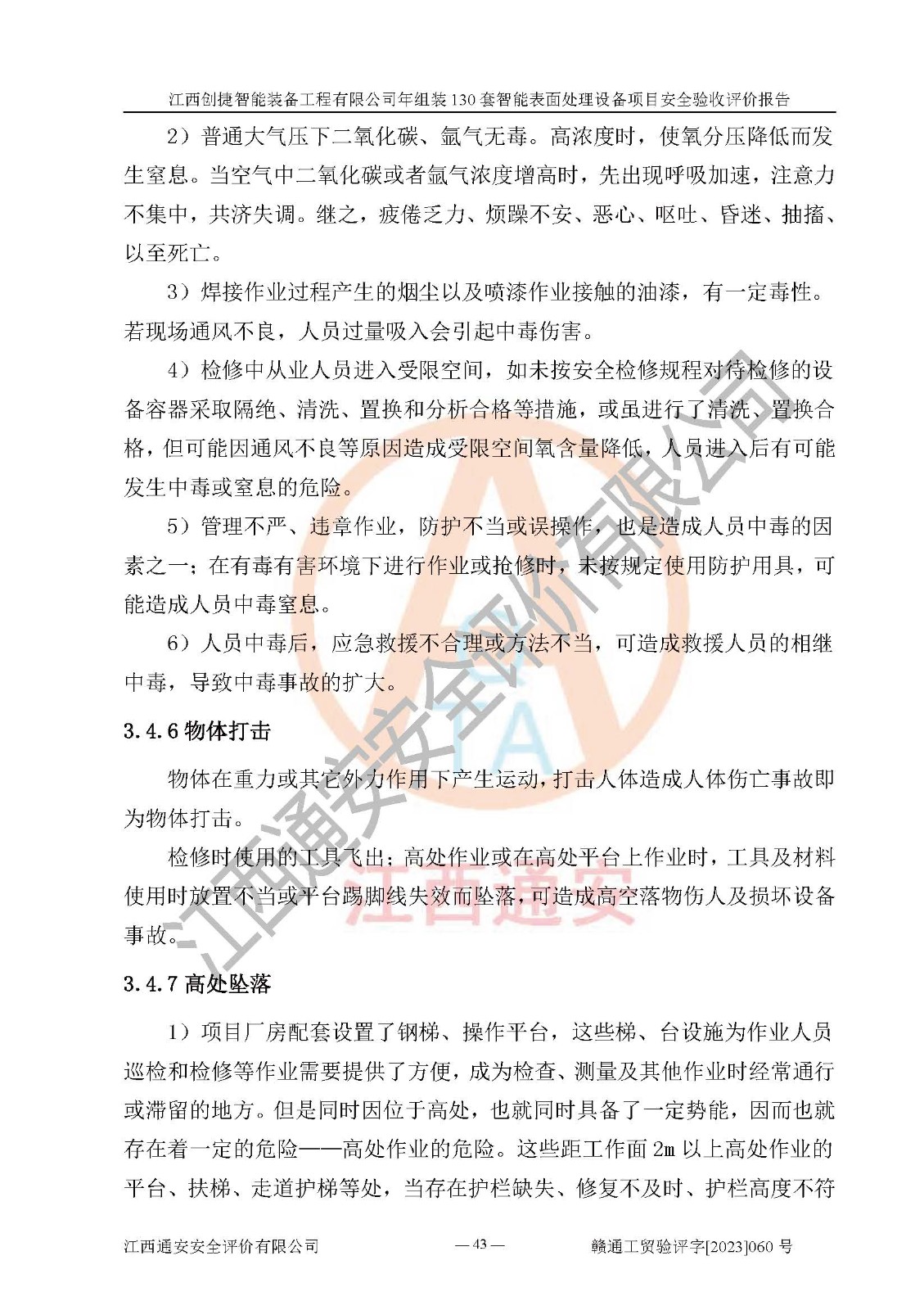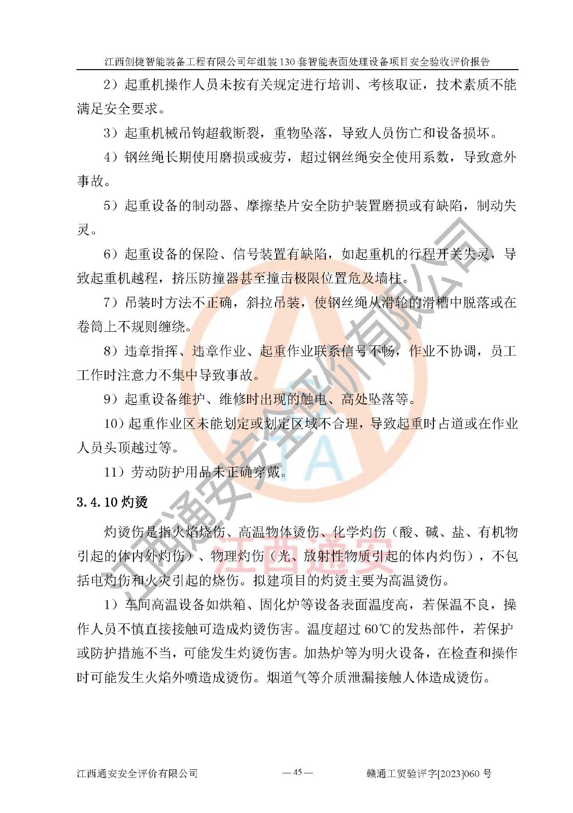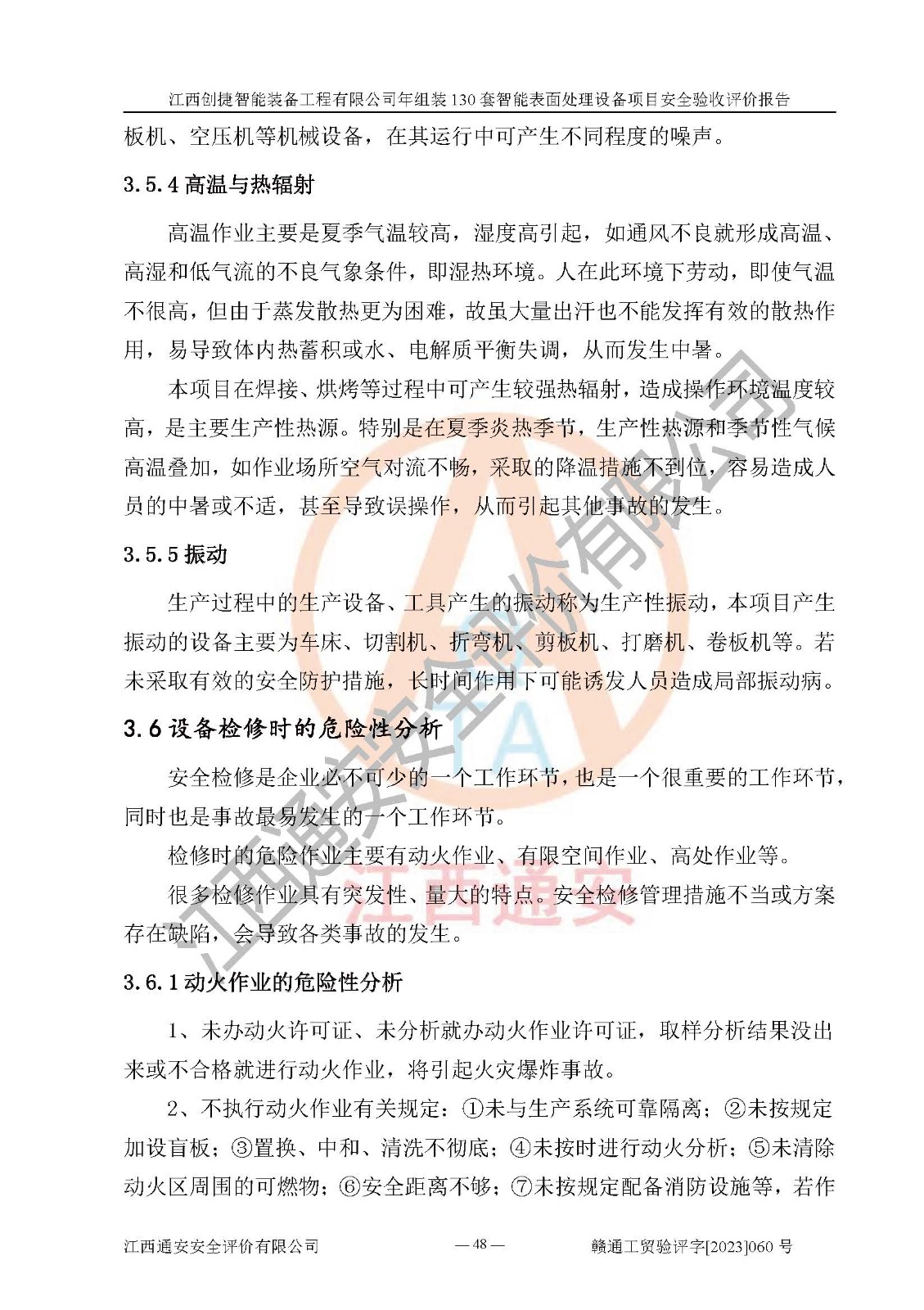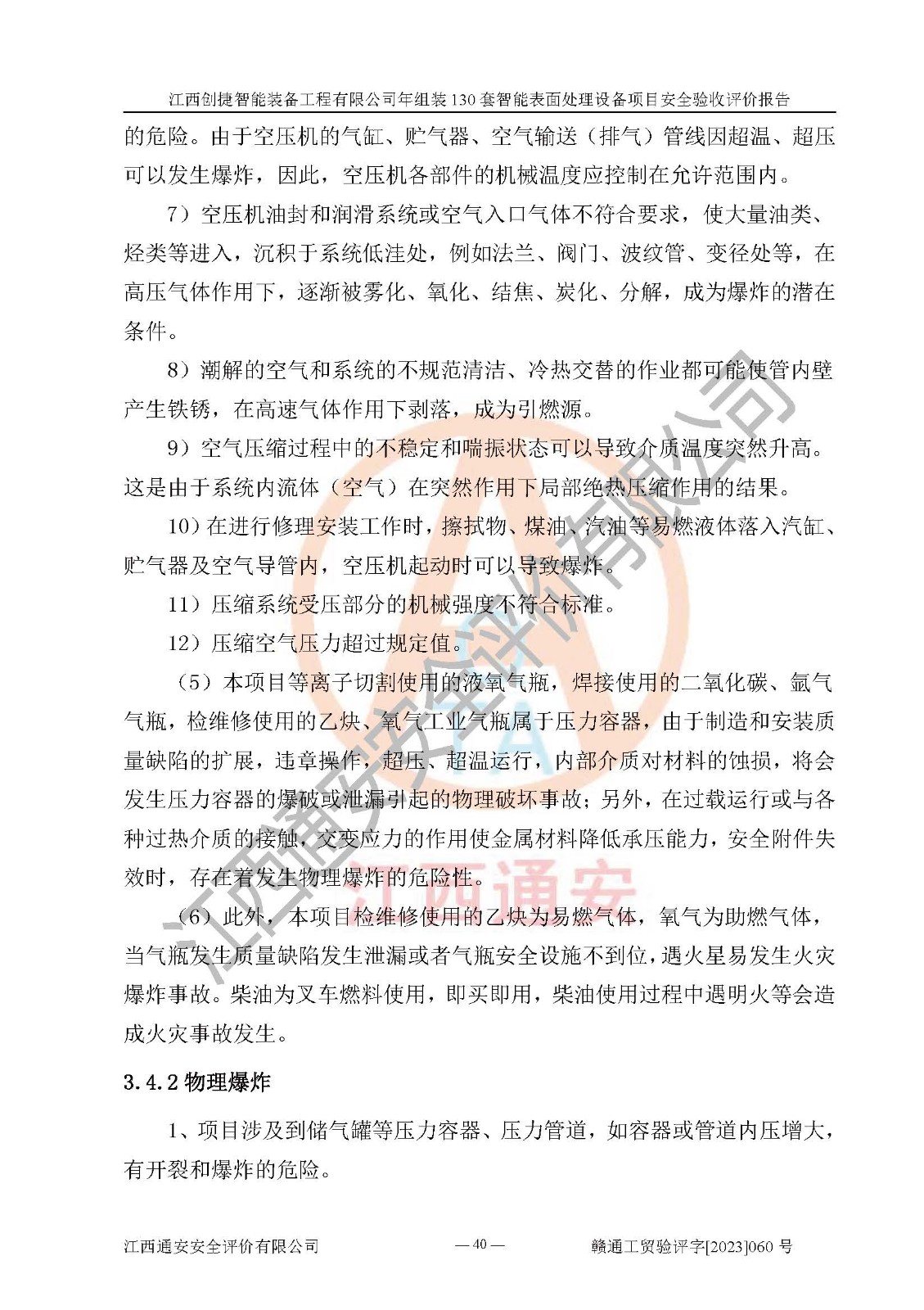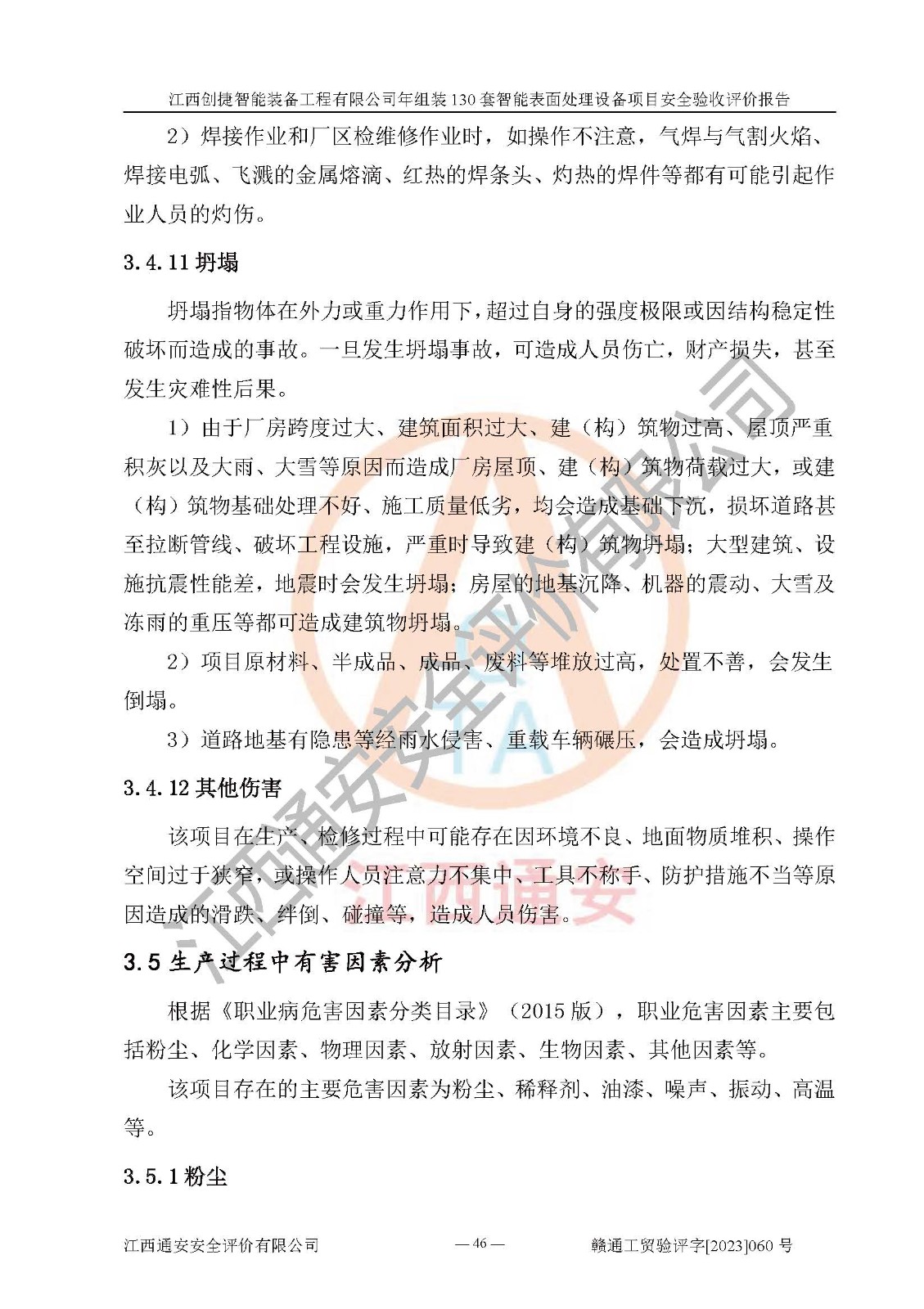 項(xiàng)目簡介 | 江西創(chuàng)捷智能裝備工程有限公司位于江西省宜春市宜豐縣工業(yè)園長新路。法人**人楊鋼,公司注冊資本叁億元整,公司經(jīng)營范圍:除塵設(shè)備、工業(yè)機(jī)器人及其他**設(shè)備的設(shè)計(jì)、生產(chǎn)、銷售、安裝、維修、技術(shù)咨詢服務(wù);五金機(jī)電設(shè)備、磨料、鋼砂、鋼丸、棕剛玉、白剛玉銷售;進(jìn)出口貿(mào)易(**限定公司經(jīng)營或禁止的進(jìn)出口商品除外,依法須經(jīng)批準(zhǔn)的項(xiàng)目,經(jīng)相關(guān)部門批準(zhǔn)后方可開展經(jīng)營活動)。廠區(qū)占地面積53332***(約合80畝),項(xiàng)目建成后,形成年產(chǎn)智能表面處理設(shè)備130套。 江西創(chuàng)捷智能裝備工程有限公司年組裝130套智能表面處理設(shè)備項(xiàng)目于2019年10月9日在江西省宜豐縣發(fā)展和改革委員會備案(項(xiàng)目代碼:201119-360924-34-03-024454號),于2020年4月組織技術(shù)人員編制了選址安全條件論證報(bào)告,于2020年11月委托中北工程設(shè)計(jì)咨詢有限公司編制了江西創(chuàng)捷智能裝備工程有限公司年組裝130套智能表面處理設(shè)備項(xiàng)目安全設(shè)施設(shè)計(jì),2023年8月由中北工程設(shè)計(jì)咨詢有限公司出具安全設(shè)施設(shè)計(jì)變更通知單,該項(xiàng)目生產(chǎn)過程中涉及的危險(xiǎn)化學(xué)品有液氧、二氧化碳(壓縮的)、氬氣(壓縮的)、固化劑、稀釋劑、聚氨酯漆,產(chǎn)品為智能表面處理設(shè)備。經(jīng)辨識,該項(xiàng)目不構(gòu)成危險(xiǎn)品重大危險(xiǎn)源。根據(jù)生產(chǎn)工藝特點(diǎn)及物料的理化特性可知,該項(xiàng)目生產(chǎn)過程中存在火災(zāi)、爆炸、觸電、機(jī)械傷害等危險(xiǎn)因素。 | ||||