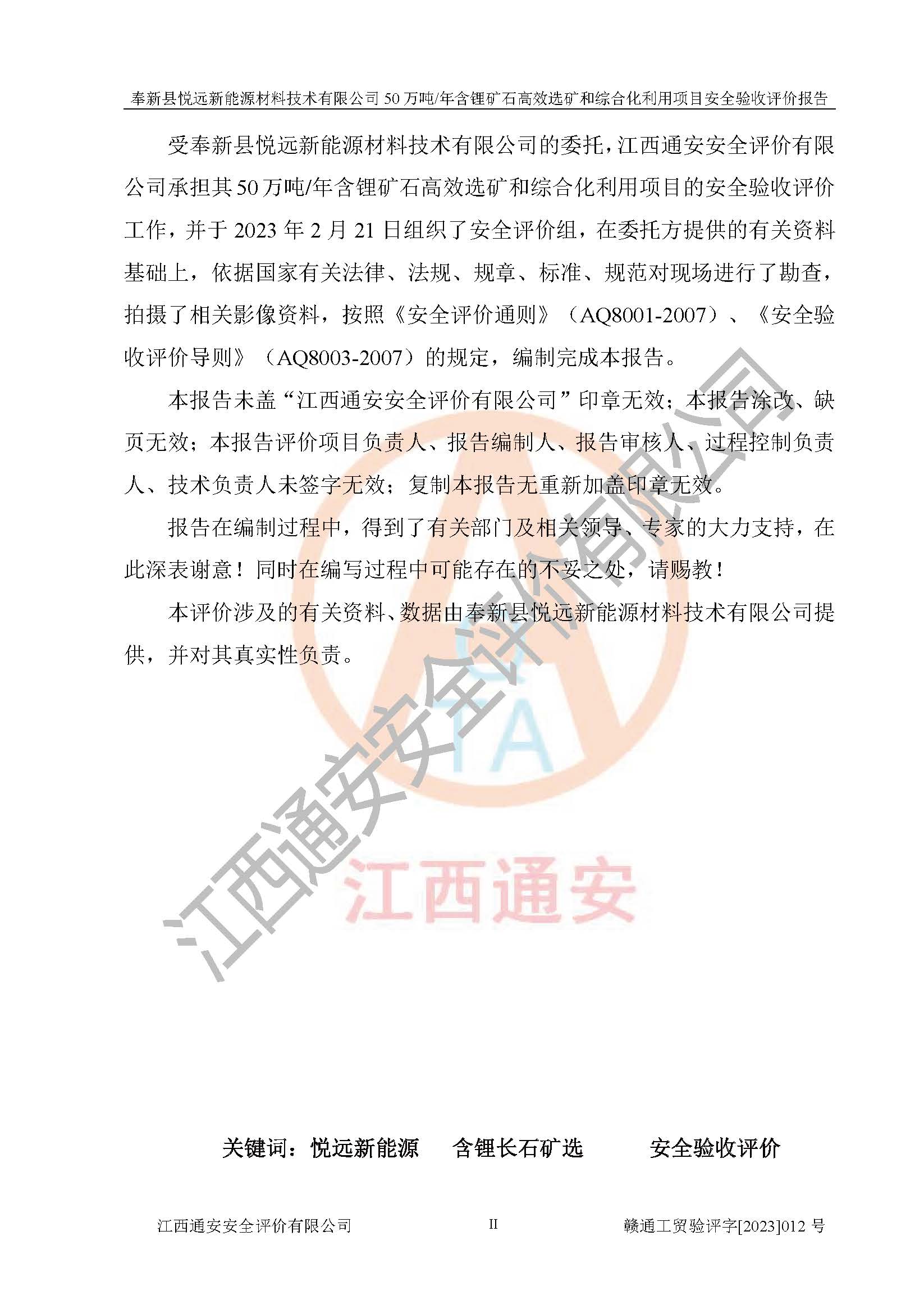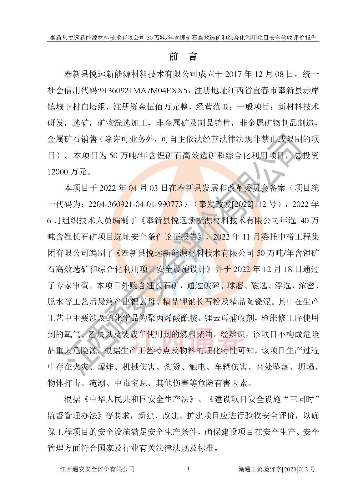 項(xiàng)目名稱 | 奉新縣悅遠(yuǎn)新能源材料技術(shù)有限公司50萬(wàn)噸/年含鋰礦石**選礦和綜合化利用項(xiàng)目 | ||||