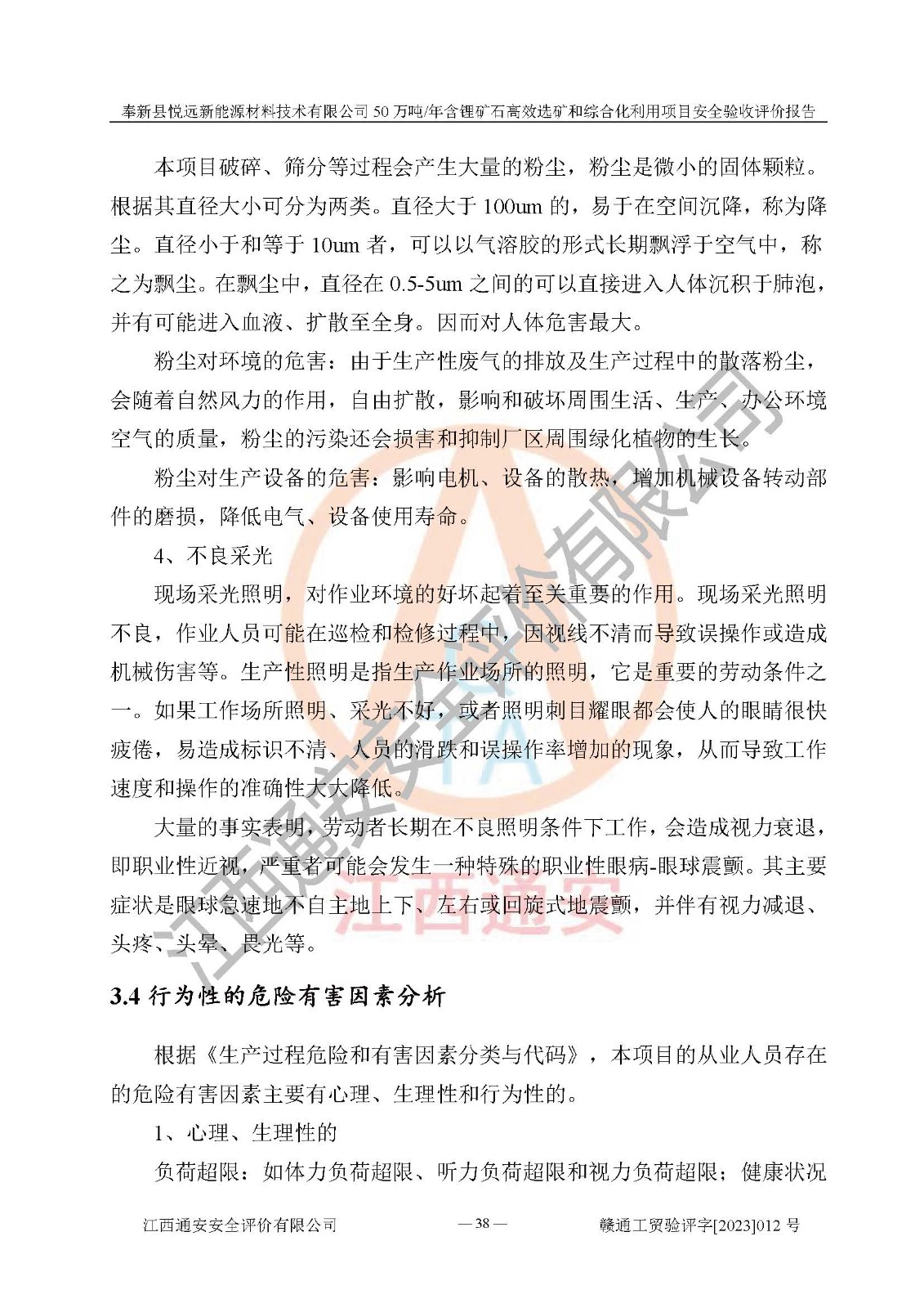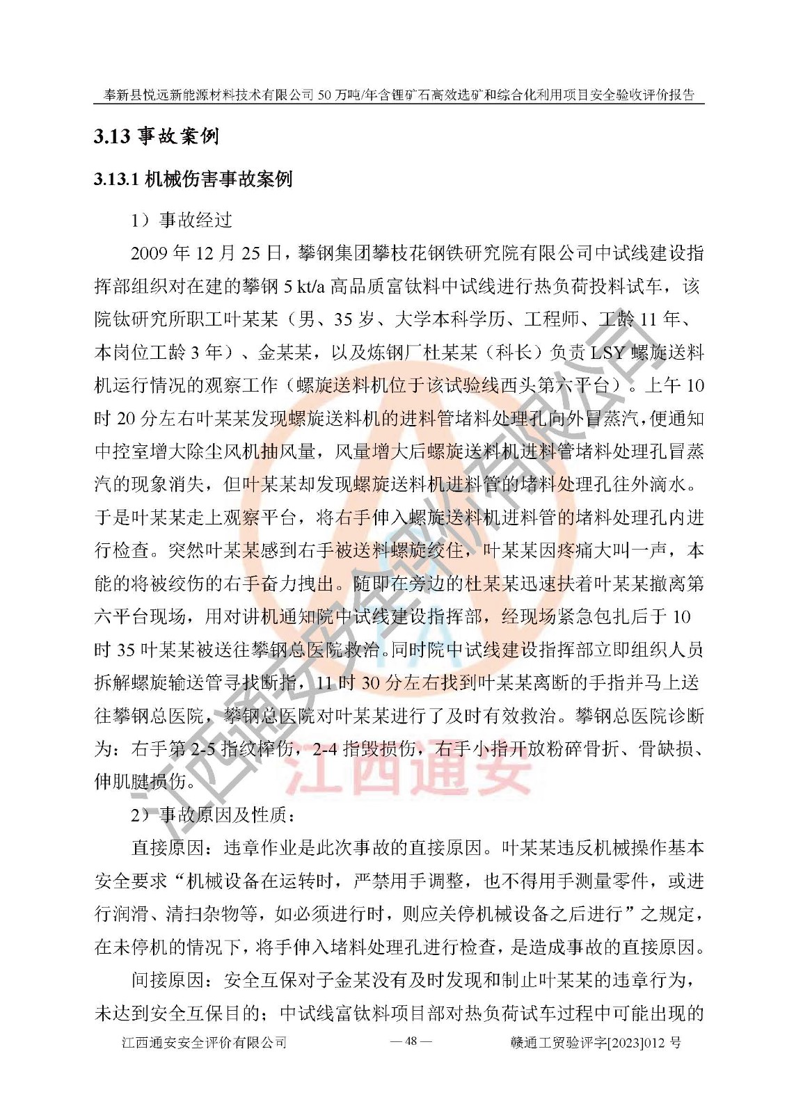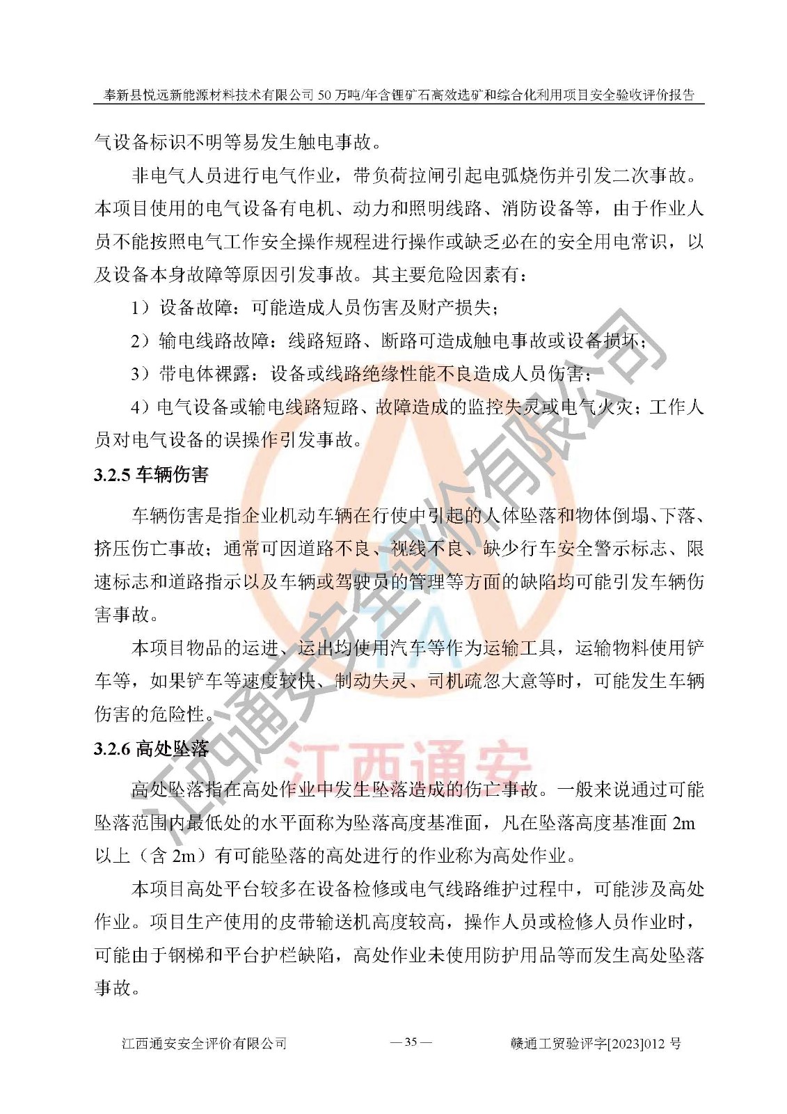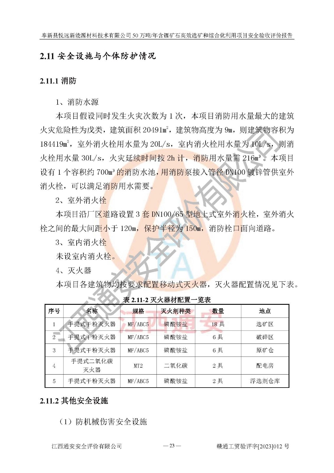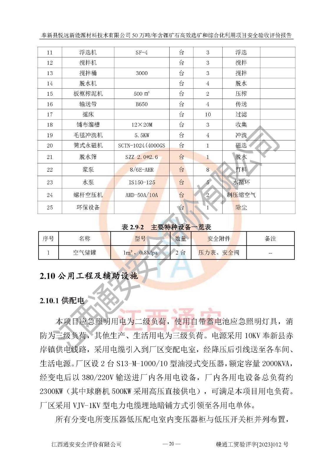 項(xiàng)目簡(jiǎn)介 | 奉新縣悅遠(yuǎn)新能源材料技術(shù)有限公司成立于2017年12月08日,統(tǒng)一社會(huì)信用代碼:91360921MA7M04EXX5,注冊(cè)地址江西省宜春市奉新縣赤岸鎮(zhèn)城下村白塔組,注冊(cè)資金伍佰萬(wàn)元整,經(jīng)營(yíng)范圍:一般項(xiàng)目:新材料技術(shù)研發(fā),選礦,礦物洗選加工,非金屬礦及制品銷售,非金屬礦物制品制造,金屬礦石銷售(除許可業(yè)務(wù)外,可自主依法經(jīng)營(yíng)法律法規(guī)非禁止或限制的項(xiàng)目)。本項(xiàng)目為50萬(wàn)噸/年含鋰礦石**選礦和綜合化利用項(xiàng)目,總投資12000萬(wàn)元。 本項(xiàng)目于2022年04月03日在奉新縣發(fā)展和改革委員會(huì)備案(項(xiàng)目統(tǒng)一代碼為:2204-360921-04-01-990773)(奉發(fā)改發(fā)[2022]112號(hào)),2022年6月組織技術(shù)人員編制了《奉新縣悅遠(yuǎn)新能源材料技術(shù)有限公司年選 40萬(wàn)噸含鋰長(zhǎng)石礦項(xiàng)目選址安全條件論證報(bào)告》,2022年11月委托中裕工程集團(tuán)有限公司編制了《奉新縣悅遠(yuǎn)新能源材料技術(shù)有限公司50萬(wàn)噸/年含鋰礦石**選礦和綜合化利用項(xiàng)目安全設(shè)施設(shè)計(jì)》并于2022年12月18日通過了專家審查。本項(xiàng)目外購(gòu)含鋰長(zhǎng)石礦,通過破碎、球磨、磁選、浮選、濃密、脫水等工藝后*終產(chǎn)出鋰云母、精品鉀鈉長(zhǎng)石粉及精品陶瓷泥。其中在生產(chǎn)工藝中主要涉及的化學(xué)品為聚丙烯酸酰胺、鋰云母捕收劑,檢維修工序使用到的氧氣、乙炔以及裝載車使用到的燃料柴油。經(jīng)辨識(shí),該項(xiàng)目不構(gòu)成危險(xiǎn)品重大危險(xiǎn)源。根據(jù)生產(chǎn)工藝特點(diǎn)及物料的理化特性可知,該項(xiàng)目生產(chǎn)過程中存在火災(zāi)、爆炸、機(jī)械傷害、灼燙、觸電、**傷害、高處墜落、坍塌、物體打擊、淹溺、中毒窒息、其他傷害等危險(xiǎn)有害因素。 | ||||