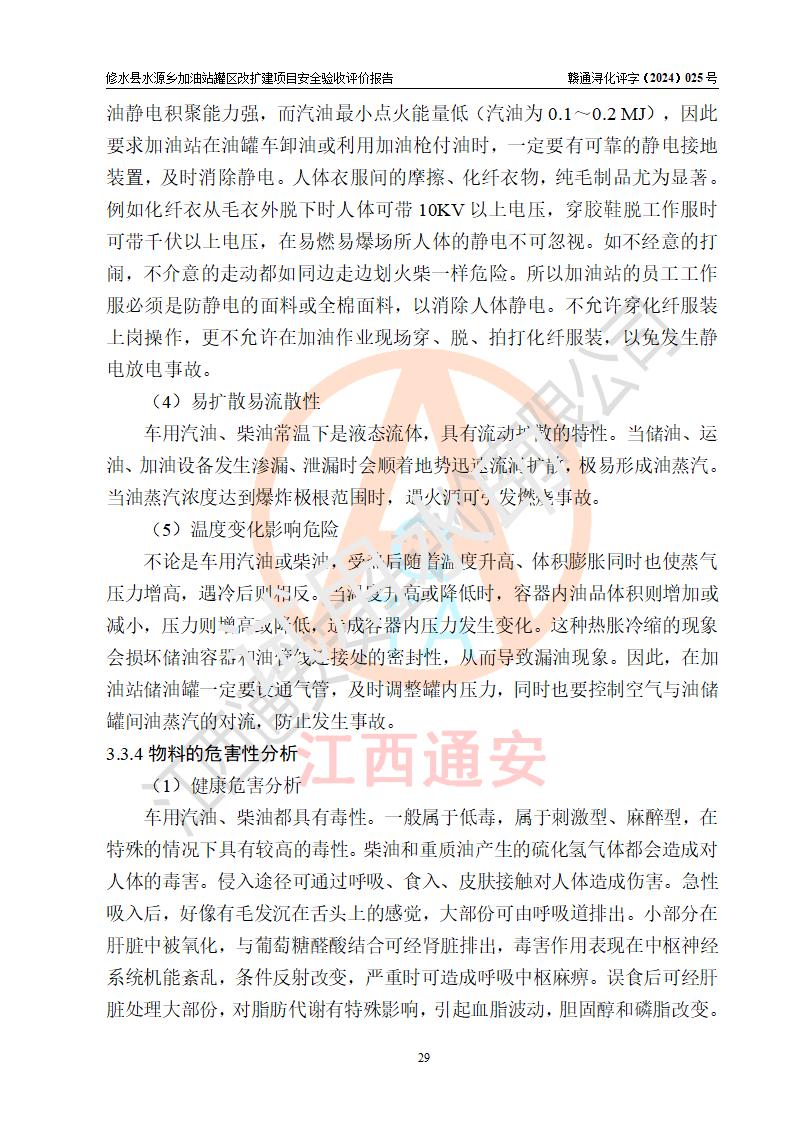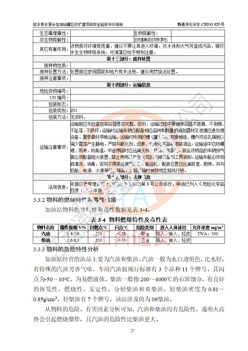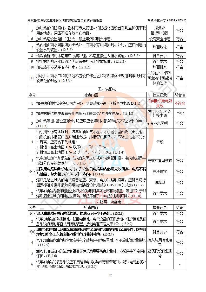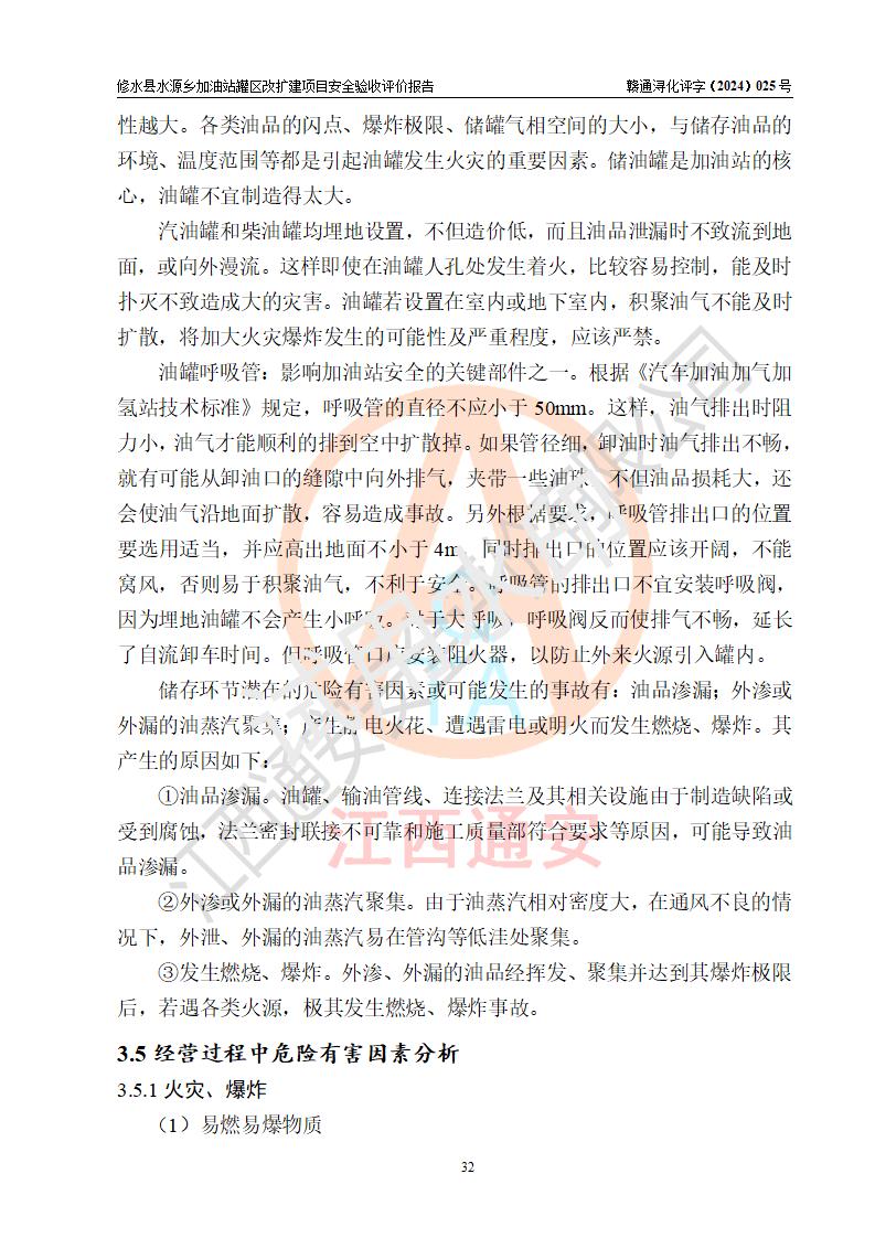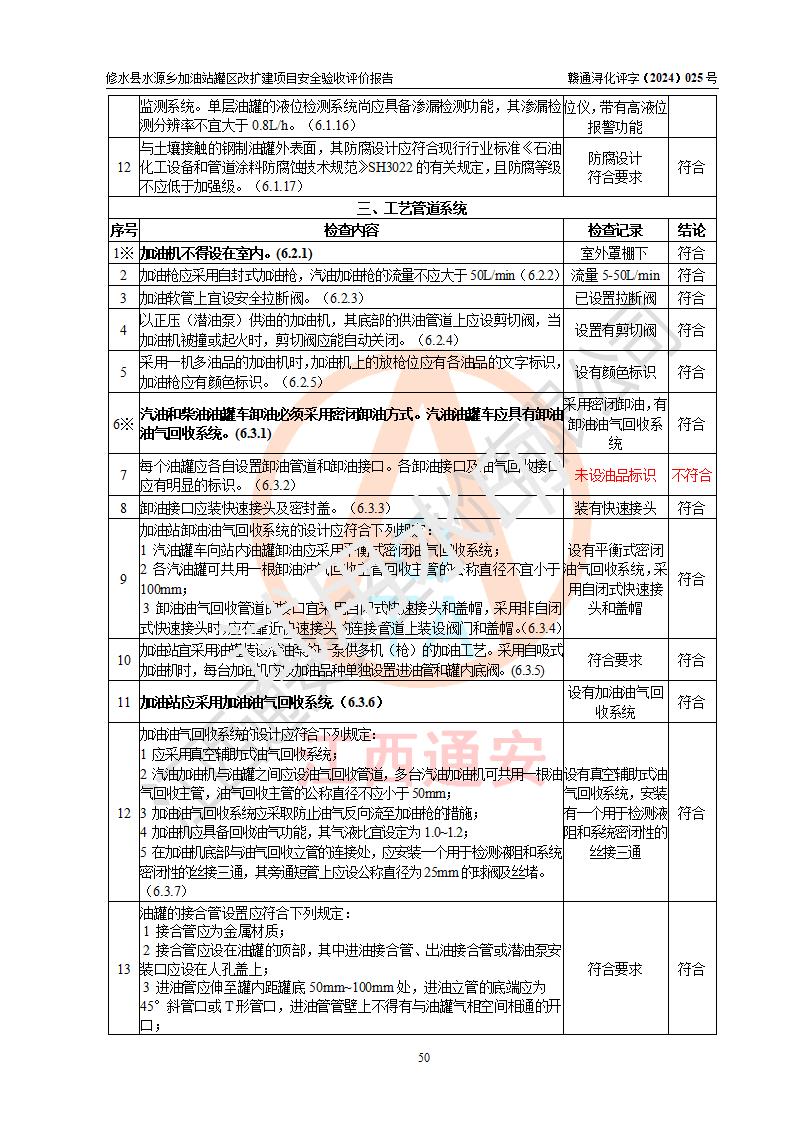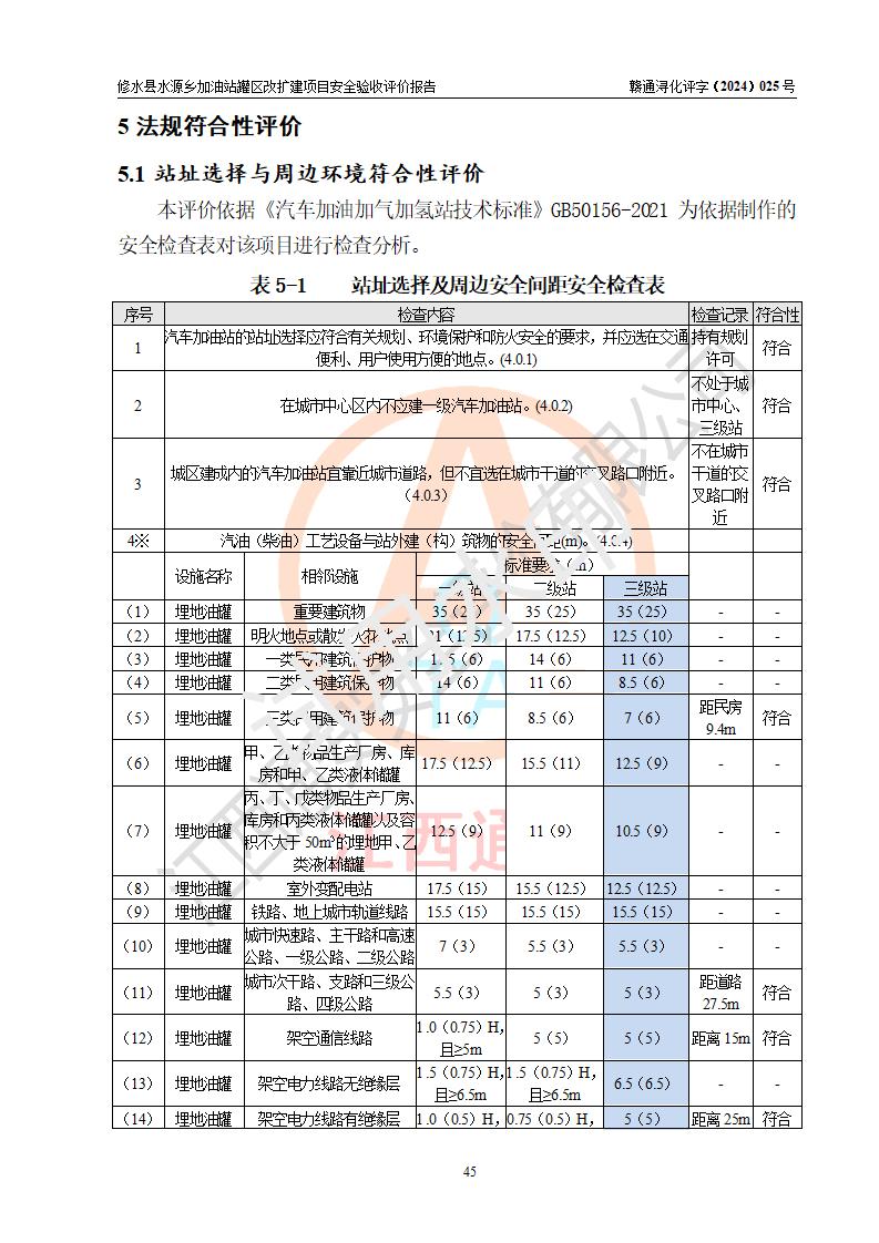 評(píng)價(jià)結(jié)論 | 修水縣水源鄉(xiāng)加油站罐區(qū)改擴(kuò)建項(xiàng)目涉及的安全條件、安全生產(chǎn)條件、安全生產(chǎn)管理符合《危險(xiǎn)化學(xué)品經(jīng)營(yíng)許可證管理辦法》、《汽車(chē)加油加氣加氫站技術(shù)標(biāo)準(zhǔn)》等**有關(guān)法規(guī)、標(biāo)準(zhǔn)、規(guī)范要求,能滿(mǎn)足成品油零售經(jīng)營(yíng)單位的安全條件,具備項(xiàng)目竣工驗(yàn)收的條件。 | |||