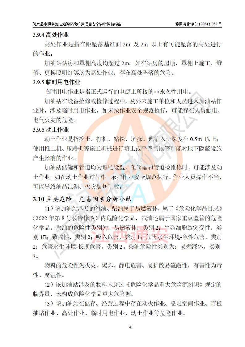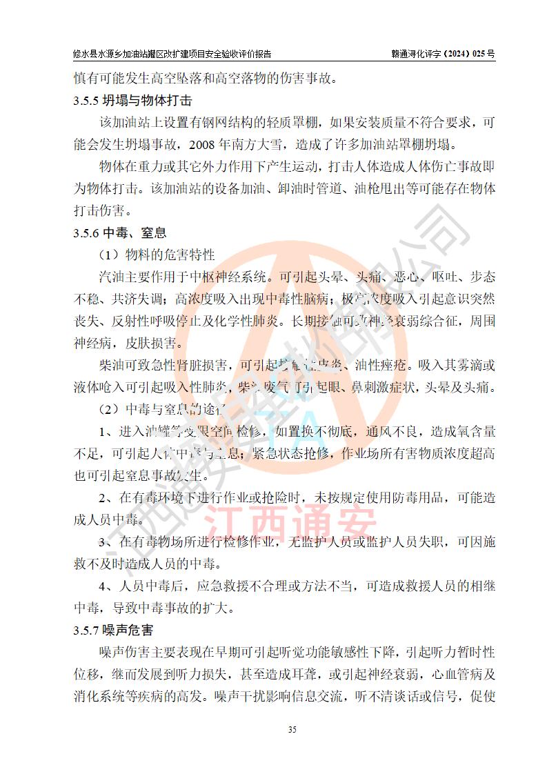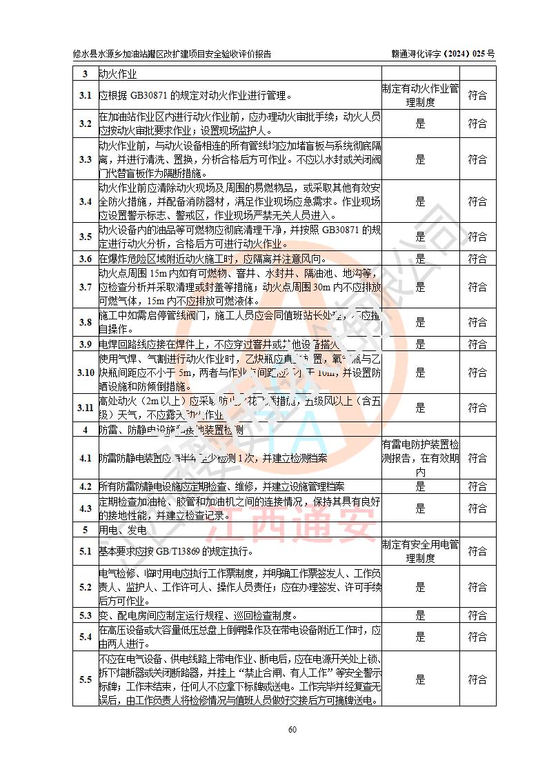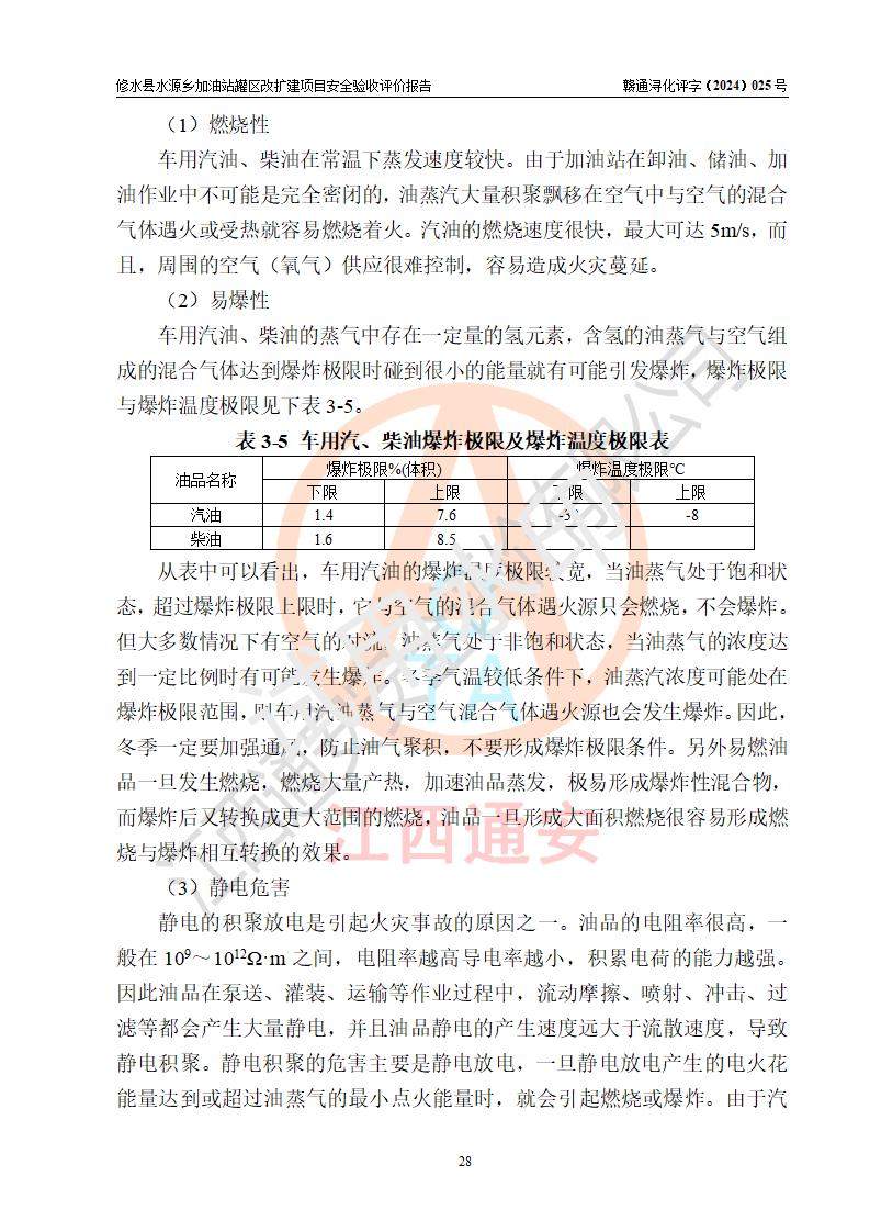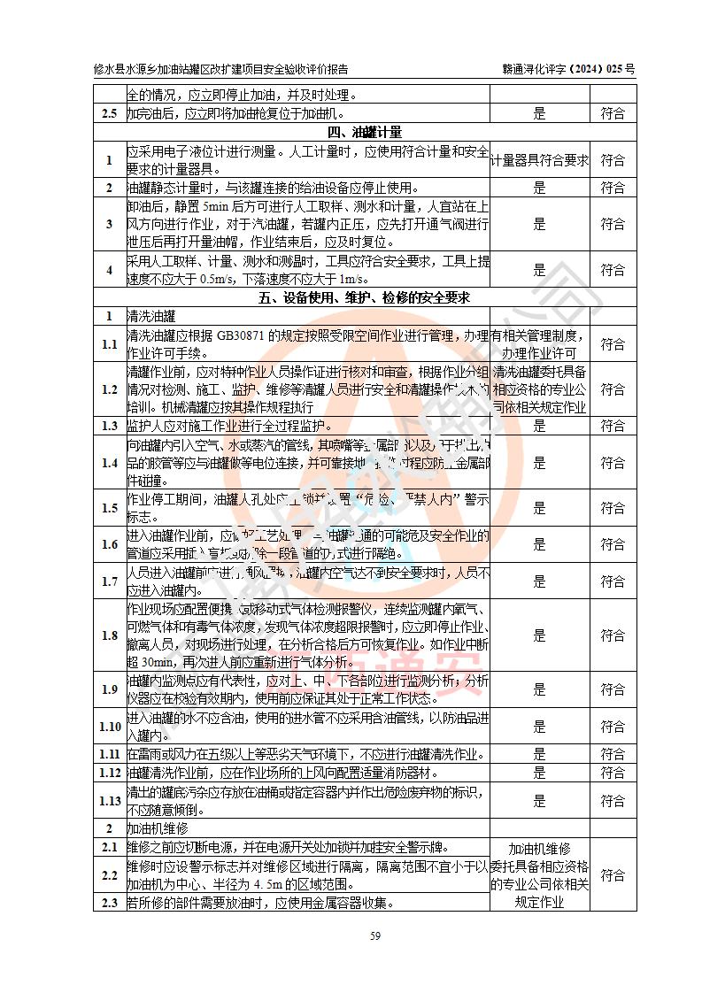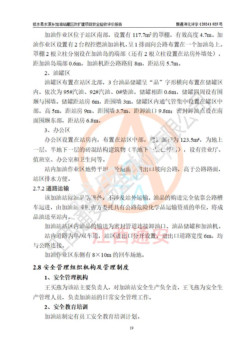 評(píng)價(jià)結(jié)論 | 修水縣水源鄉(xiāng)加油站罐區(qū)改擴(kuò)建項(xiàng)目涉及的安全條件、安全生產(chǎn)條件、安全生產(chǎn)管理符合《危險(xiǎn)化學(xué)品經(jīng)營(yíng)許可證管理辦法》、《汽車(chē)加油加氣加氫站技術(shù)標(biāo)準(zhǔn)》等**有關(guān)法規(guī)、標(biāo)準(zhǔn)、規(guī)范要求,能滿(mǎn)足成品油零售經(jīng)營(yíng)單位的安全條件,具備項(xiàng)目竣工驗(yàn)收的條件。 | |||