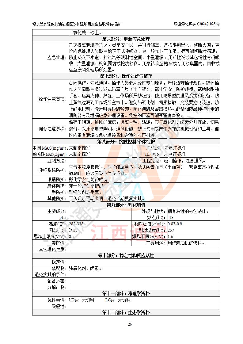評(píng)價(jià)報(bào)告名稱(chēng) | 修水縣水源鄉(xiāng)加油站罐區(qū)改擴(kuò)建項(xiàng)目安全驗(yàn)收評(píng)價(jià)報(bào)告 | |||