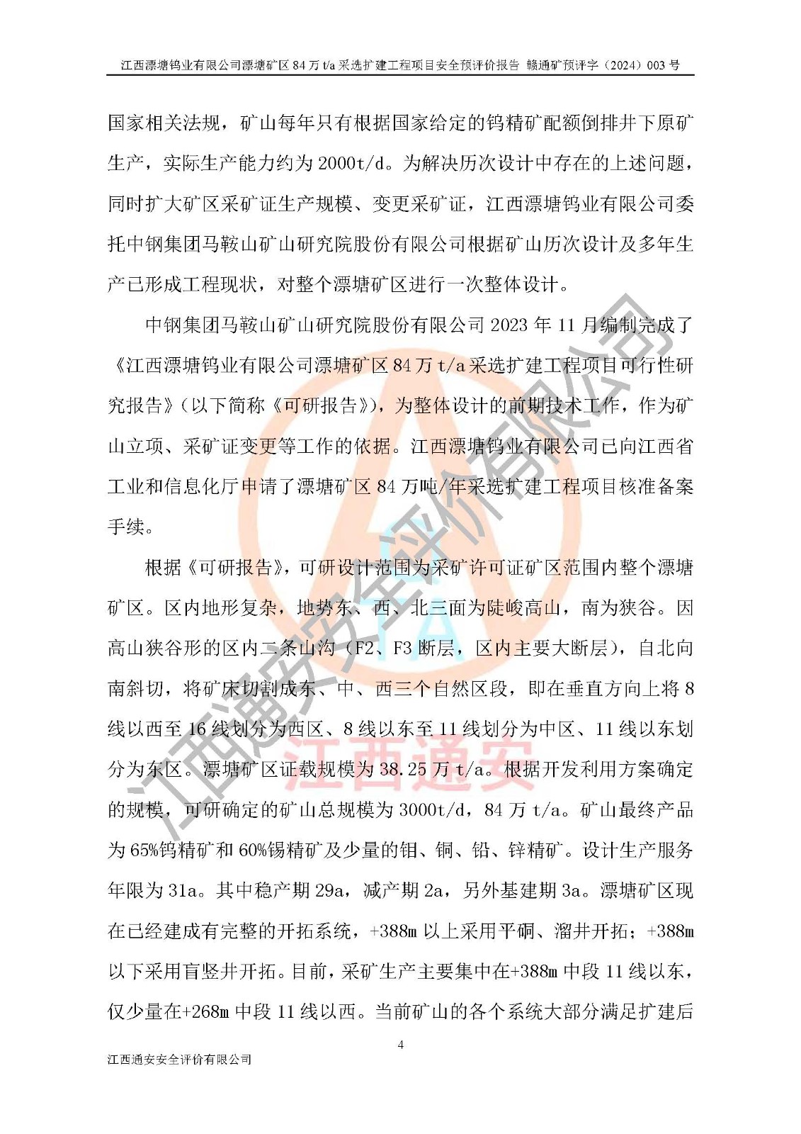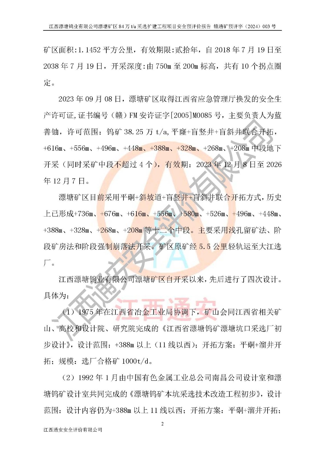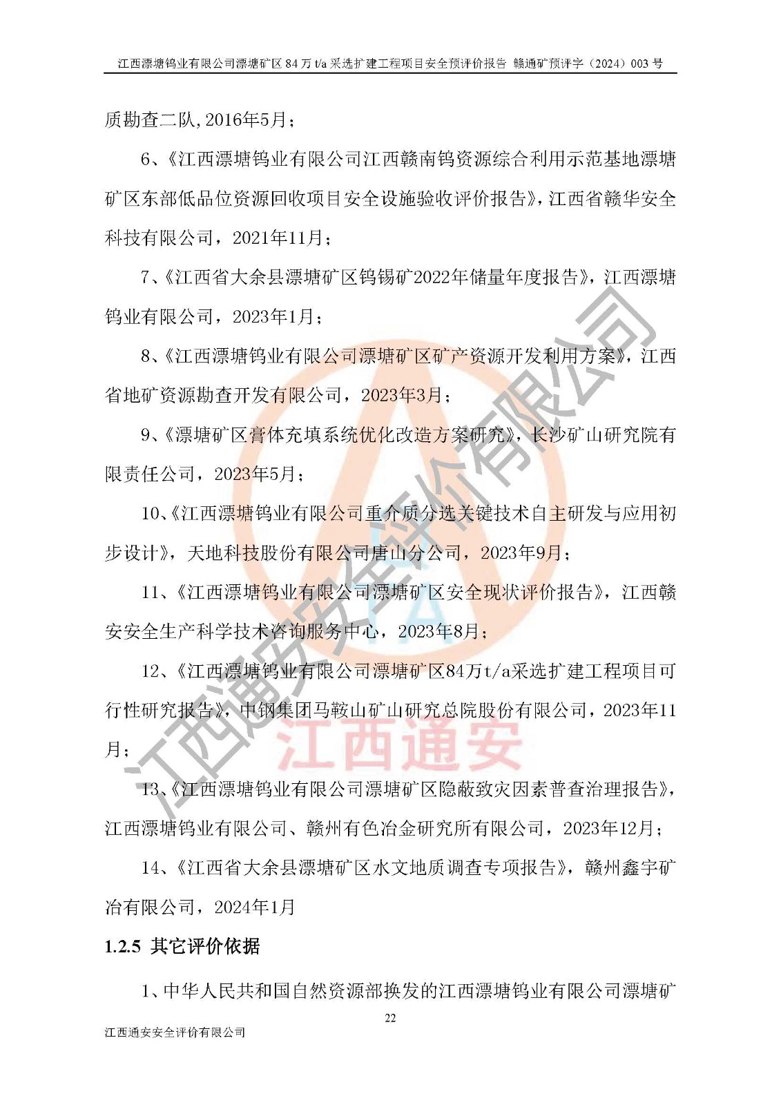 項(xiàng)目名稱 | 江西漂塘鎢業(yè)有限公司漂塘礦區(qū)84萬(wàn)t a采選擴(kuò)建工程項(xiàng)目安全預(yù)評(píng)價(jià)報(bào)告 | ||||
