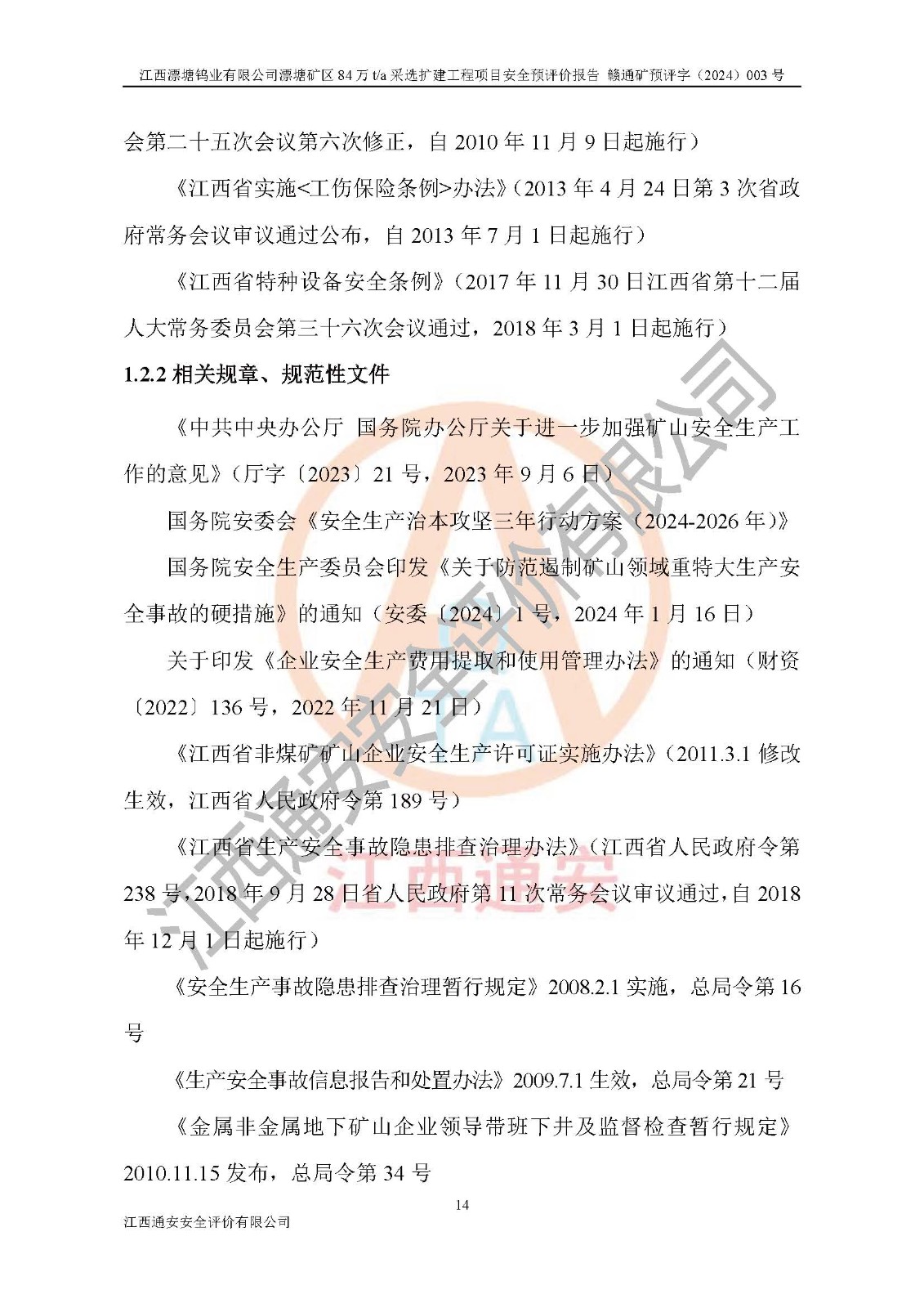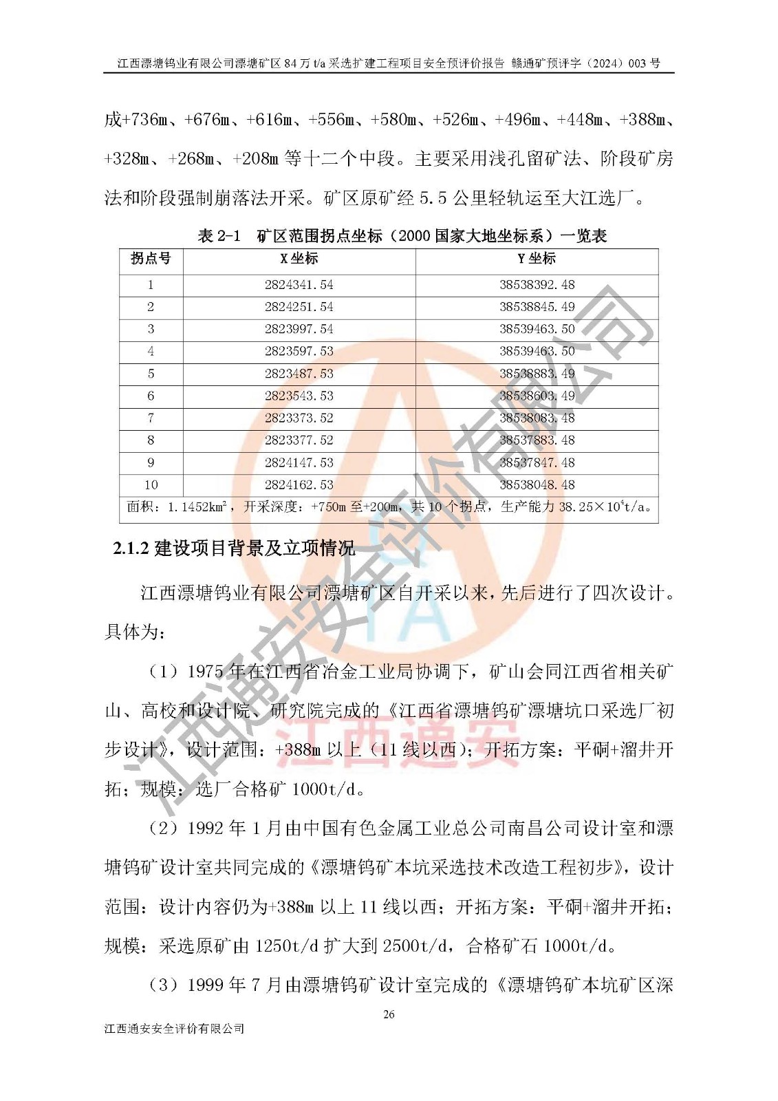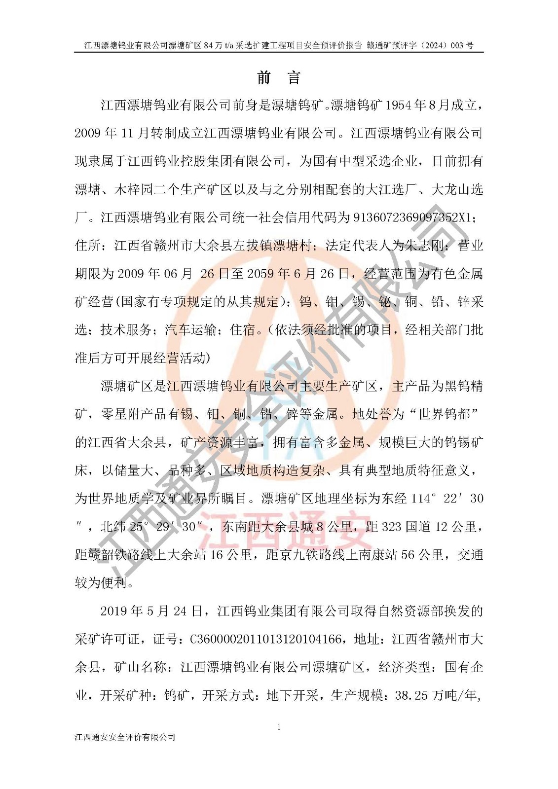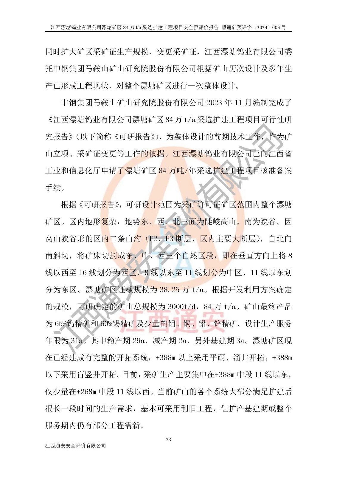 項(xiàng)目名稱 | 江西漂塘鎢業(yè)有限公司漂塘礦區(qū)84萬(wàn)t a采選擴(kuò)建工程項(xiàng)目安全預(yù)評(píng)價(jià)報(bào)告 | ||||