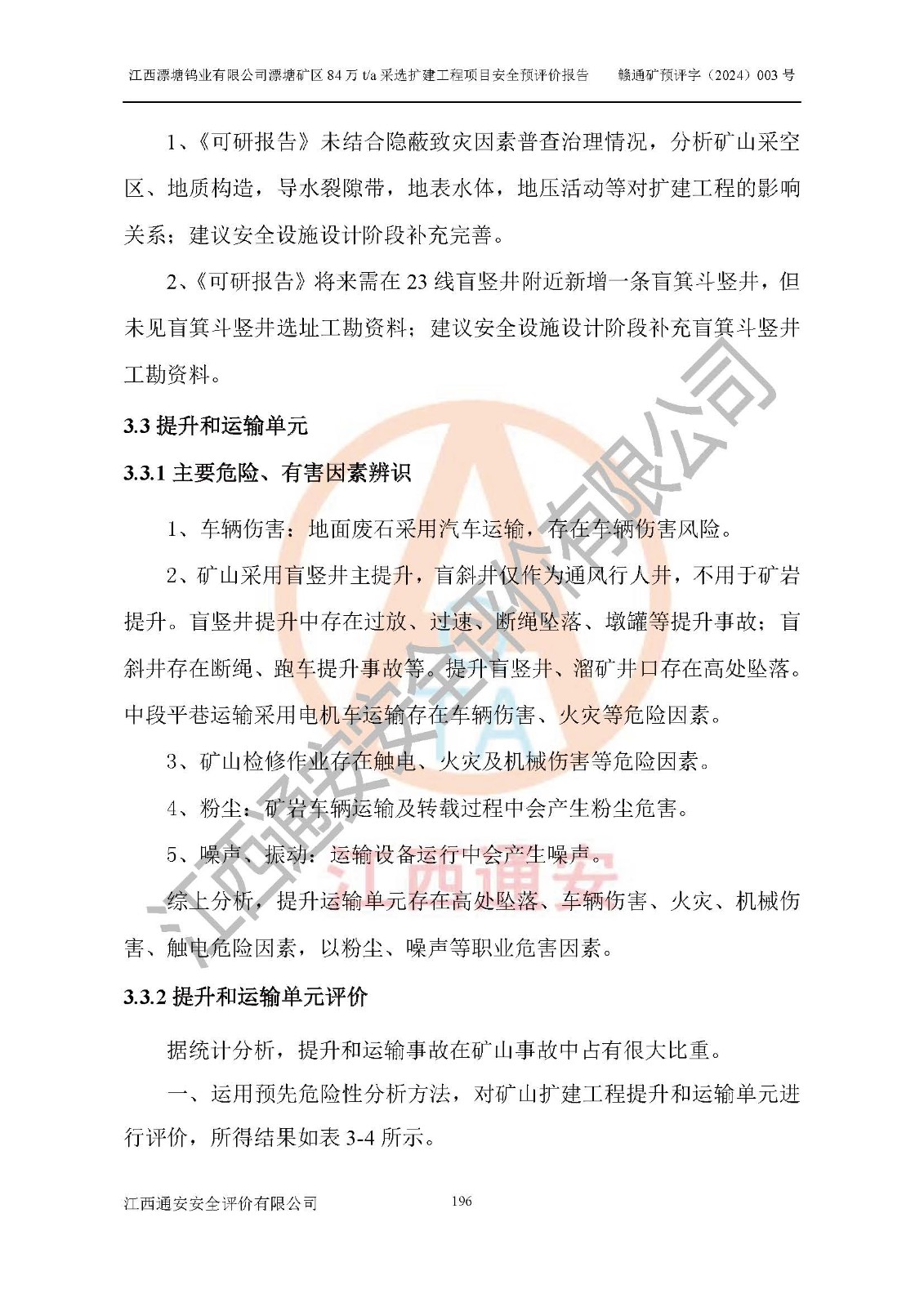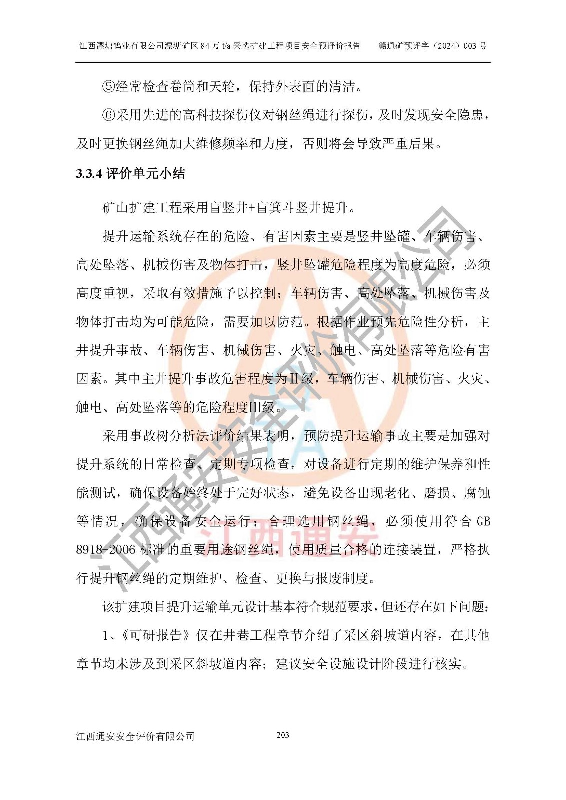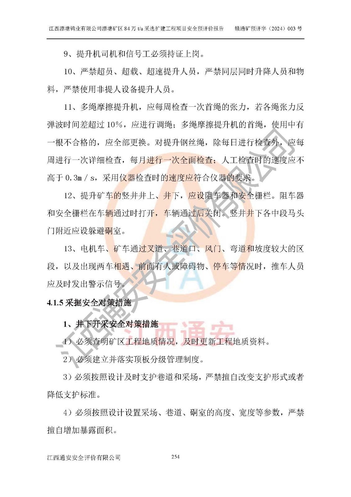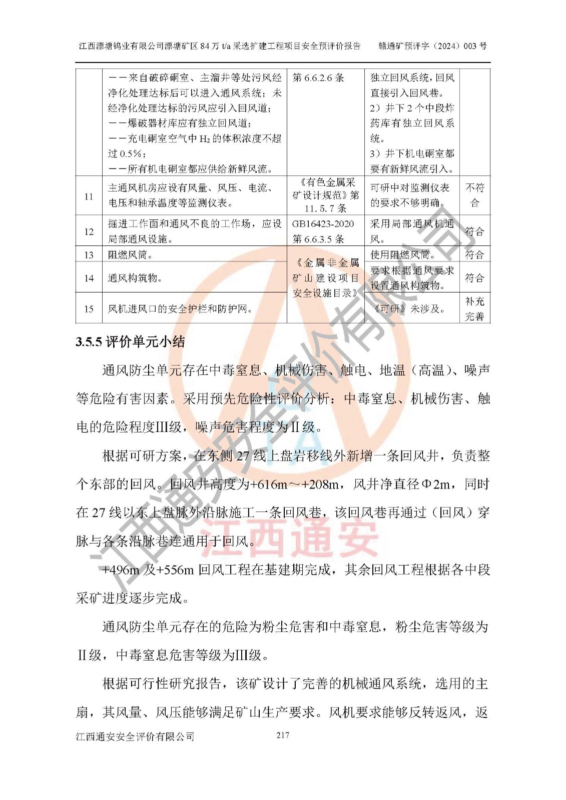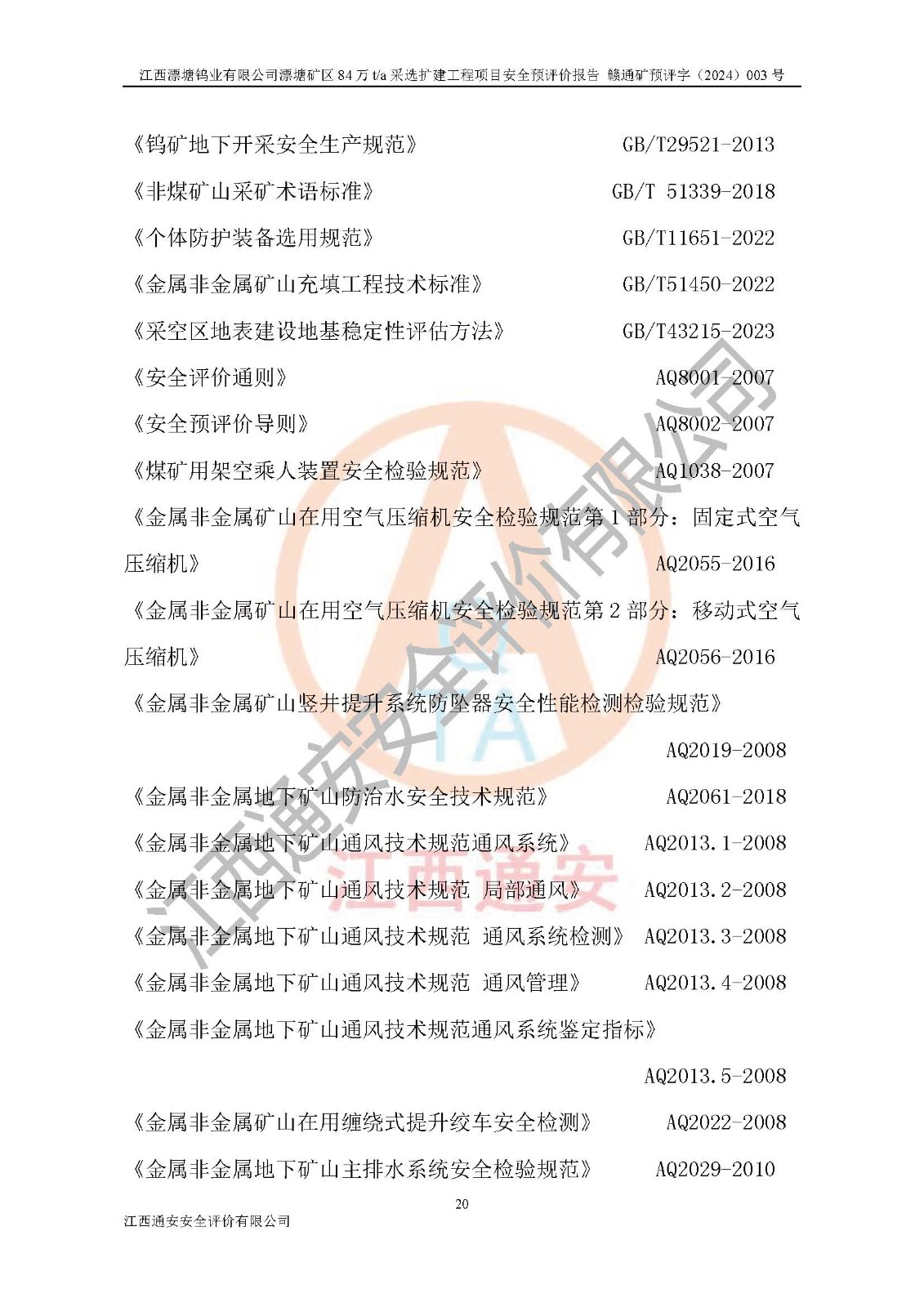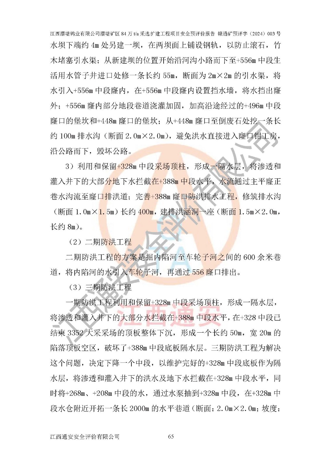 其它 | 江西漂塘鎢業(yè)有限公司漂塘礦區(qū)84萬(wàn)噸/年采選擴(kuò)建工程方案可行、選用的工藝和設(shè)備成熟、系統(tǒng)總體可靠,礦山具有建設(shè)、生產(chǎn)和管理的經(jīng)驗(yàn)和基礎(chǔ),在采納《可研報(bào)告》和本安全預(yù)評(píng)價(jià)報(bào)告提出的安全對(duì)策措施的基礎(chǔ)上,嚴(yán)把工程建設(shè)質(zhì)量關(guān)和現(xiàn)場(chǎng)安全管理,安全設(shè)施做到與主體工程同時(shí)設(shè)計(jì)、同時(shí)施工、同時(shí)投產(chǎn)使用,該擴(kuò)建工程安全風(fēng)險(xiǎn)處在可接受的范圍,符合**有關(guān)安全生產(chǎn)法律、法規(guī)、規(guī)章、標(biāo)準(zhǔn)和規(guī)范的要求。 | ||||