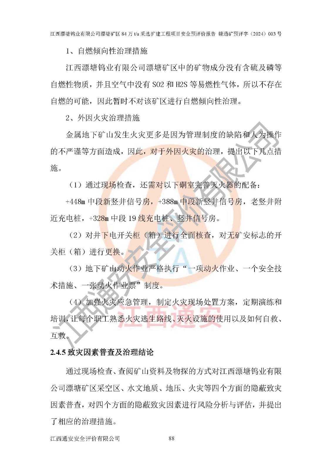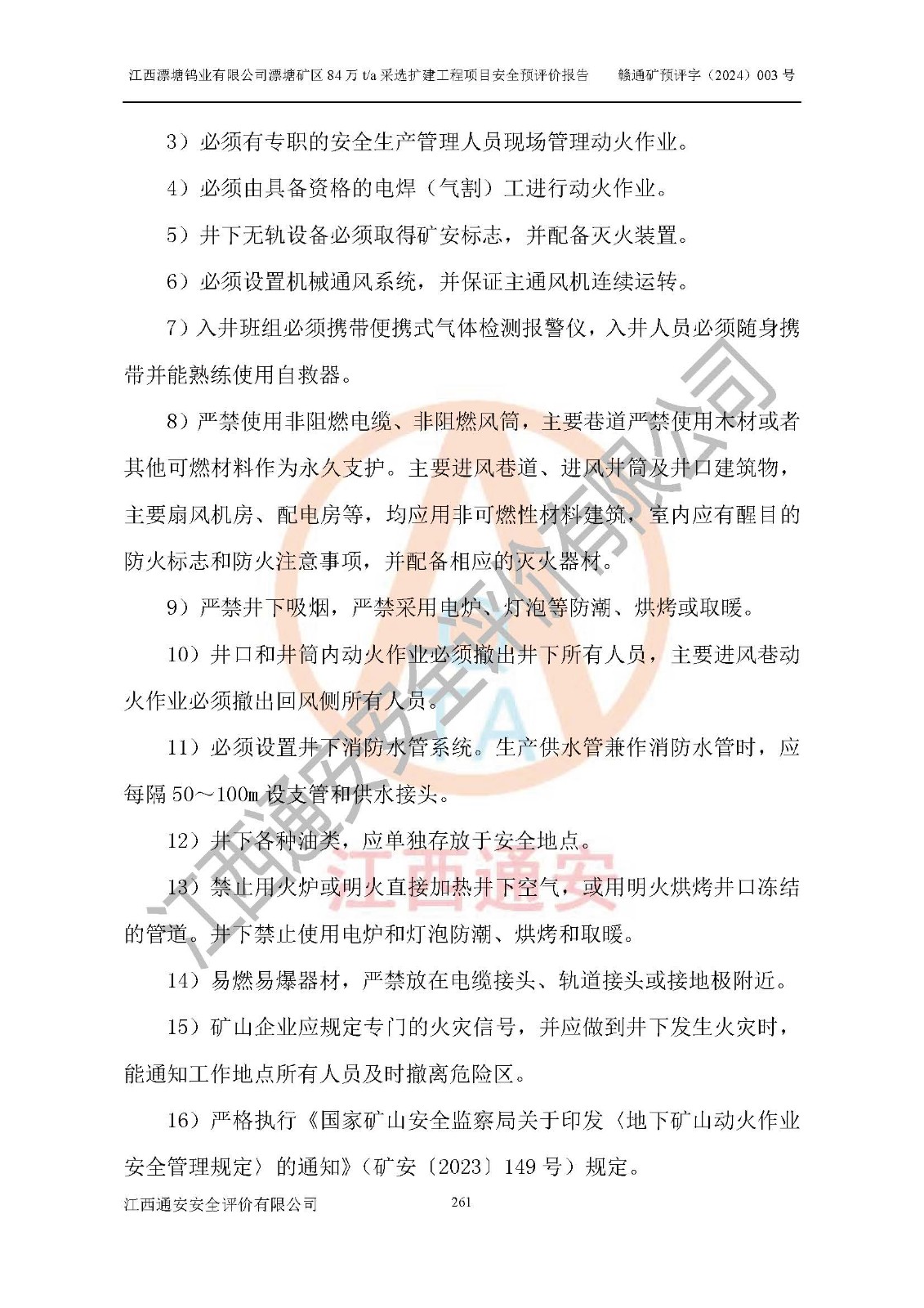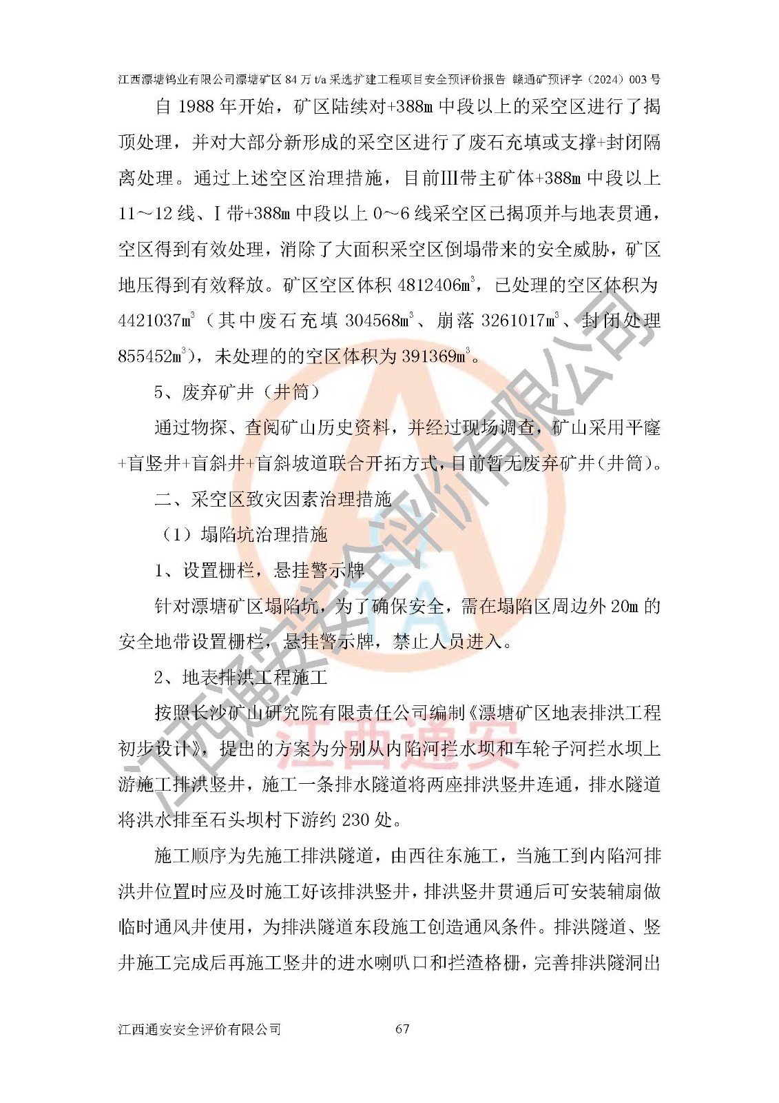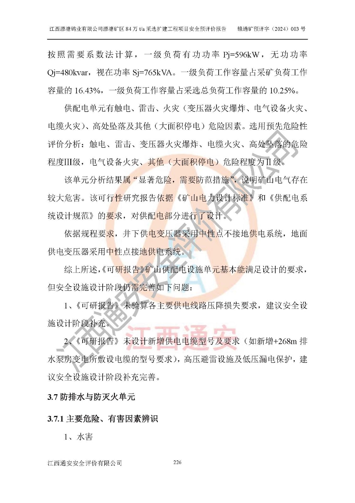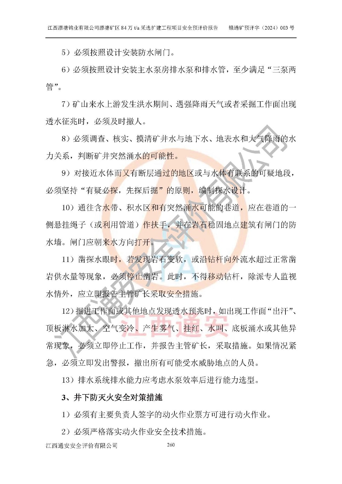 其它 | 江西漂塘鎢業(yè)有限公司漂塘礦區(qū)84萬(wàn)噸/年采選擴(kuò)建工程方案可行、選用的工藝和設(shè)備成熟、系統(tǒng)總體可靠,礦山具有建設(shè)、生產(chǎn)和管理的經(jīng)驗(yàn)和基礎(chǔ),在采納《可研報(bào)告》和本安全預(yù)評(píng)價(jià)報(bào)告提出的安全對(duì)策措施的基礎(chǔ)上,嚴(yán)把工程建設(shè)質(zhì)量關(guān)和現(xiàn)場(chǎng)安全管理,安全設(shè)施做到與主體工程同時(shí)設(shè)計(jì)、同時(shí)施工、同時(shí)投產(chǎn)使用,該擴(kuò)建工程安全風(fēng)險(xiǎn)處在可接受的范圍,符合**有關(guān)安全生產(chǎn)法律、法規(guī)、規(guī)章、標(biāo)準(zhǔn)和規(guī)范的要求。 | ||||