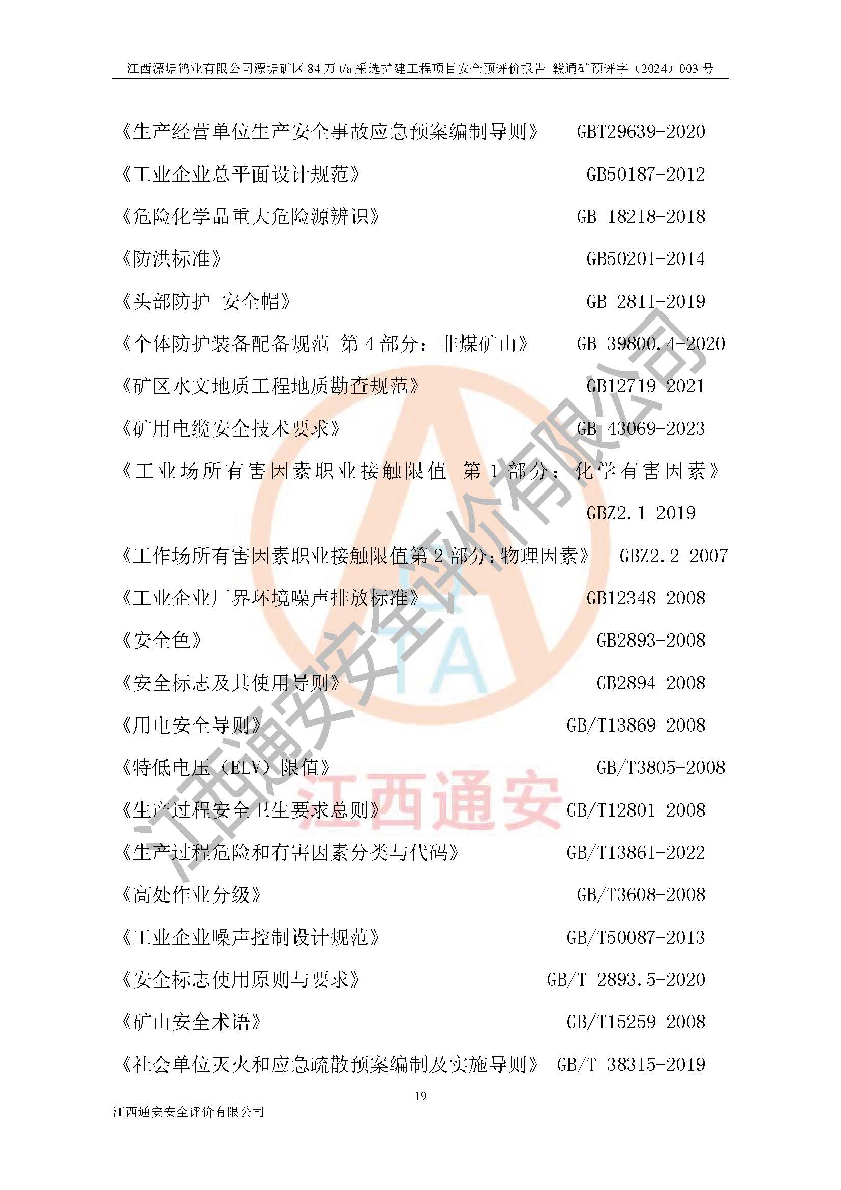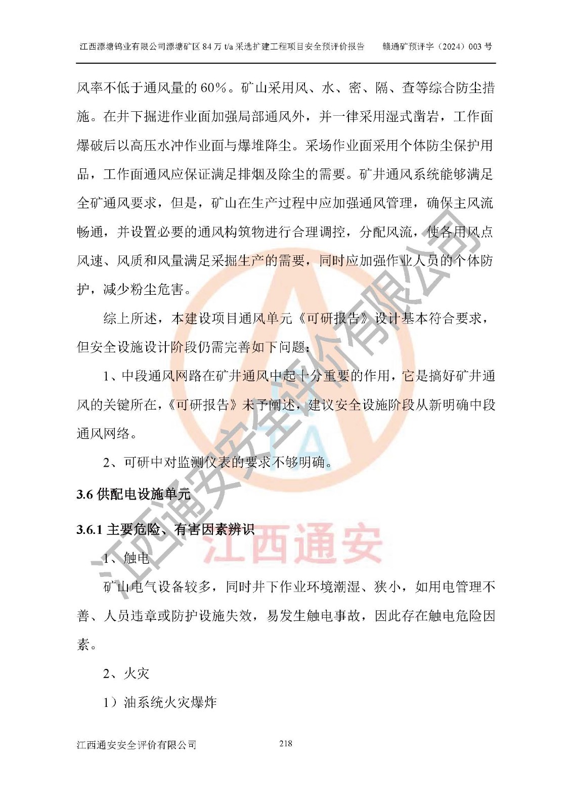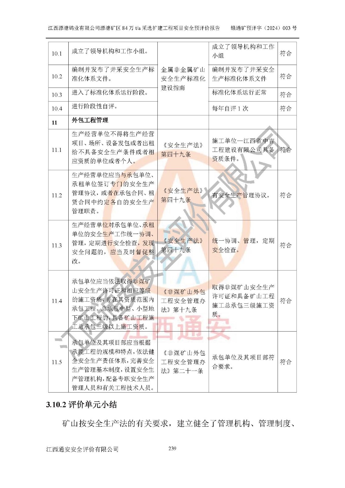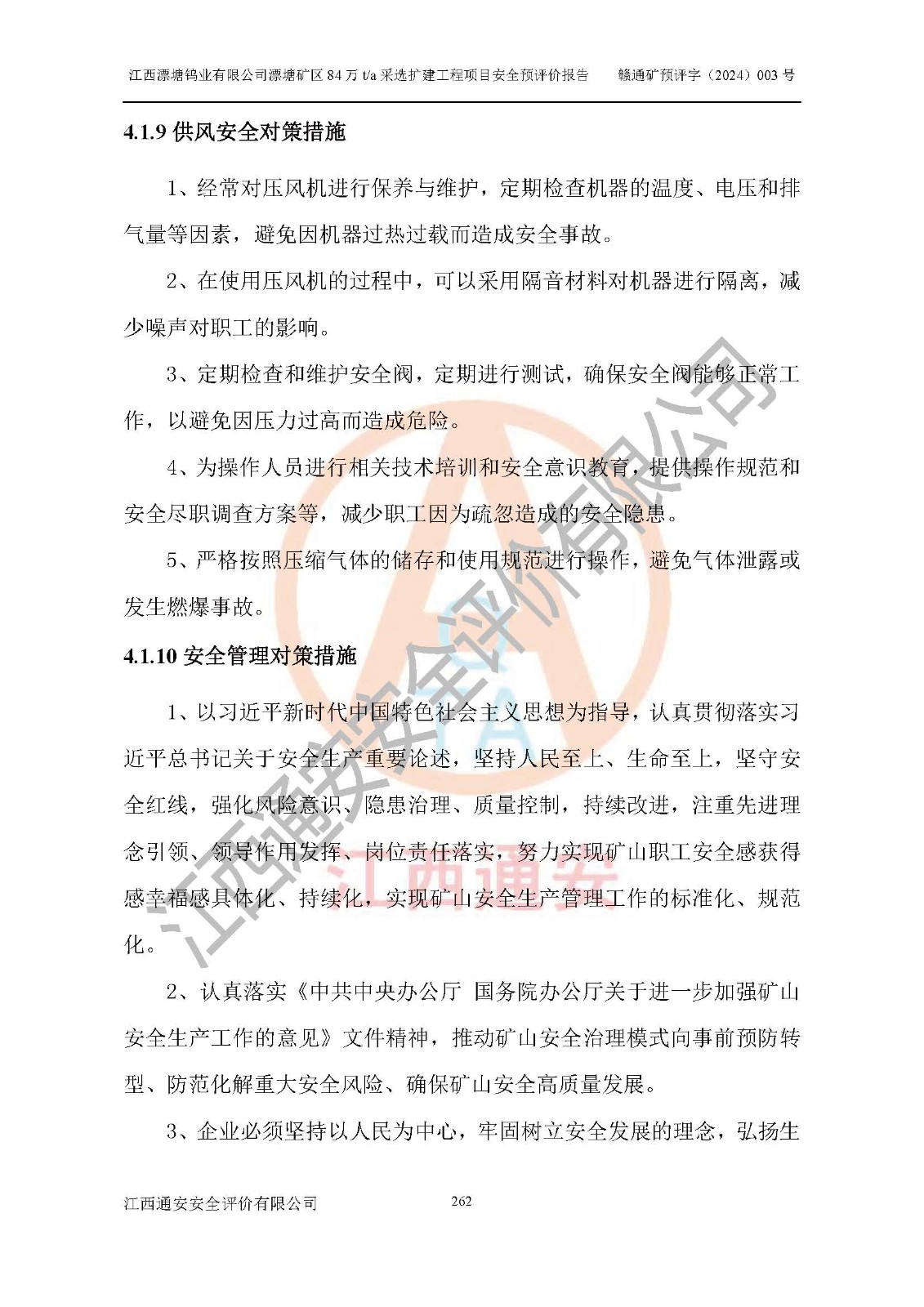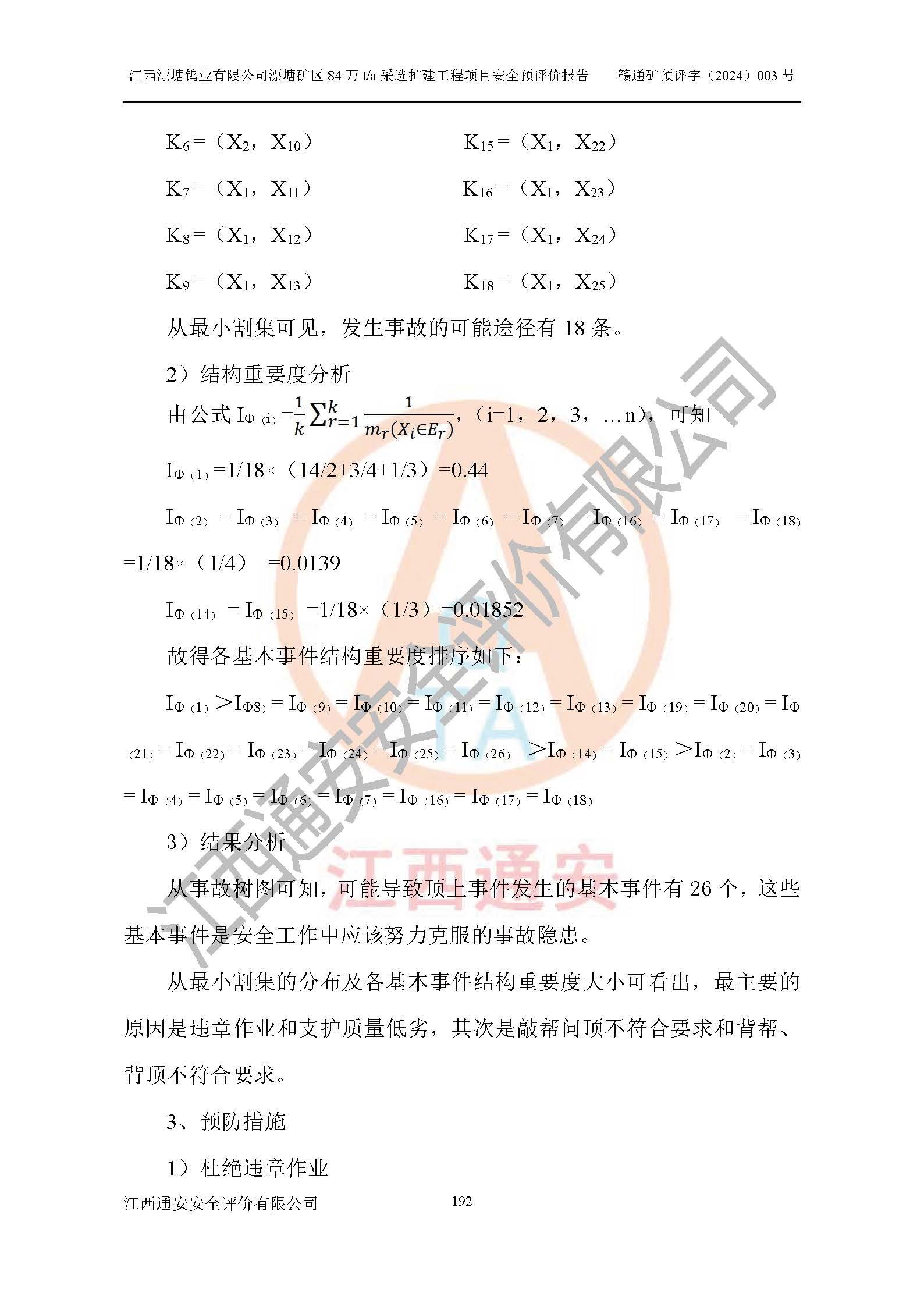 其它 | 江西漂塘鎢業(yè)有限公司漂塘礦區(qū)84萬(wàn)噸/年采選擴(kuò)建工程方案可行、選用的工藝和設(shè)備成熟、系統(tǒng)總體可靠,礦山具有建設(shè)、生產(chǎn)和管理的經(jīng)驗(yàn)和基礎(chǔ),在采納《可研報(bào)告》和本安全預(yù)評(píng)價(jià)報(bào)告提出的安全對(duì)策措施的基礎(chǔ)上,嚴(yán)把工程建設(shè)質(zhì)量關(guān)和現(xiàn)場(chǎng)安全管理,安全設(shè)施做到與主體工程同時(shí)設(shè)計(jì)、同時(shí)施工、同時(shí)投產(chǎn)使用,該擴(kuò)建工程安全風(fēng)險(xiǎn)處在可接受的范圍,符合**有關(guān)安全生產(chǎn)法律、法規(guī)、規(guī)章、標(biāo)準(zhǔn)和規(guī)范的要求。 | ||||