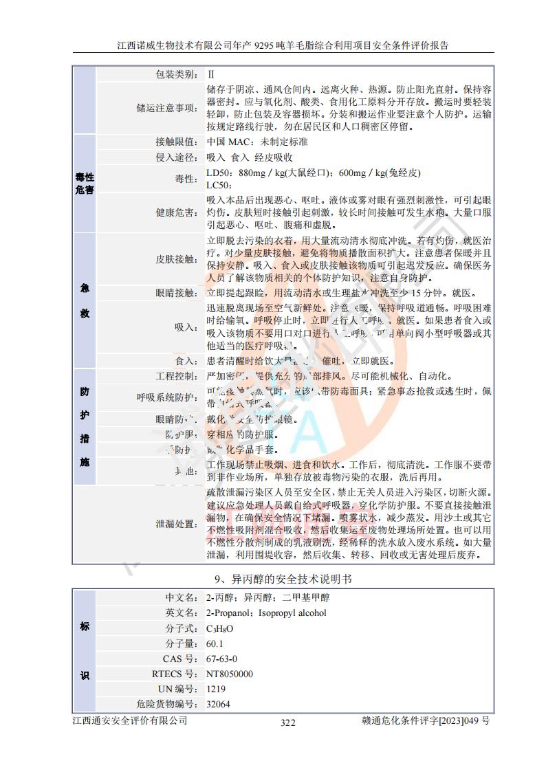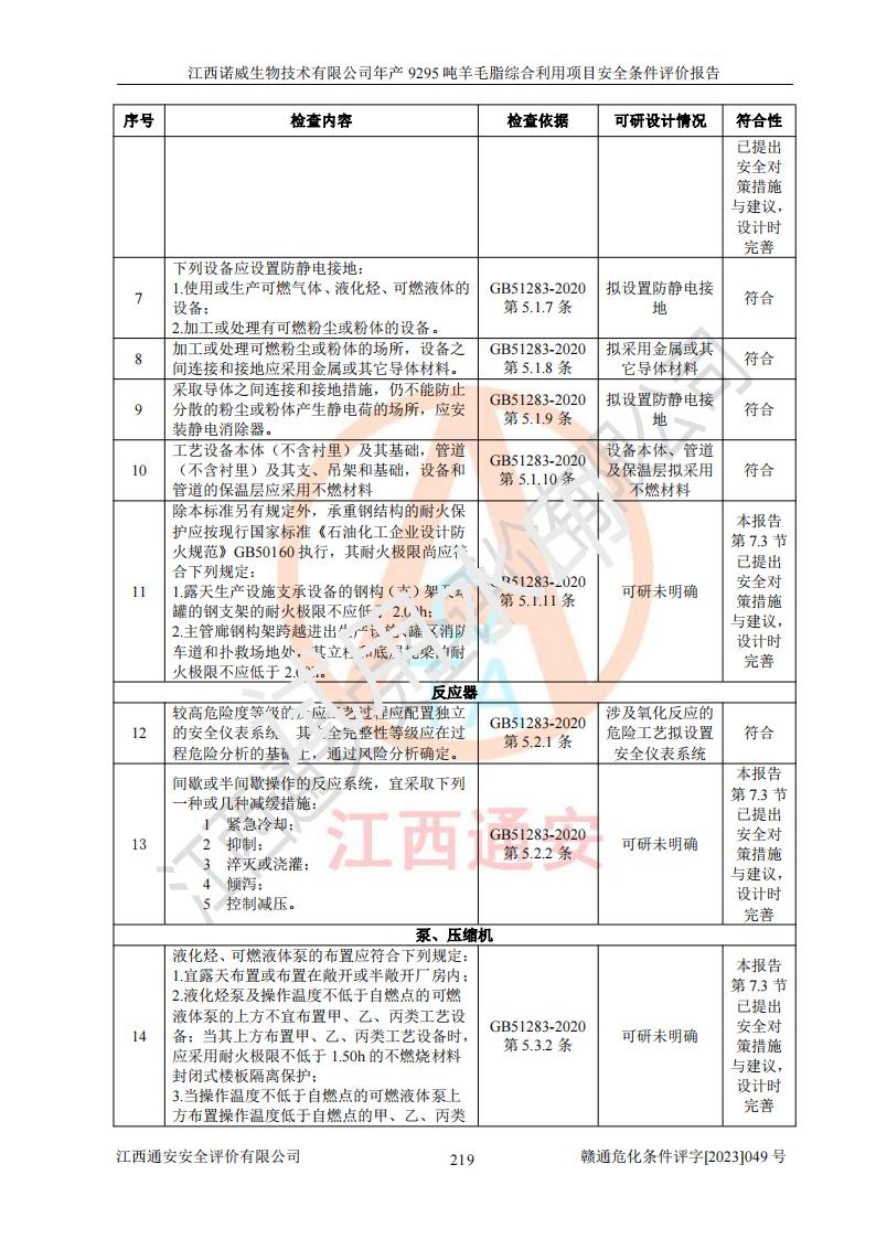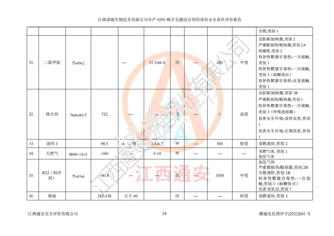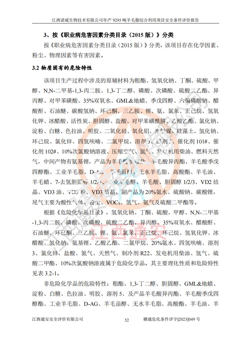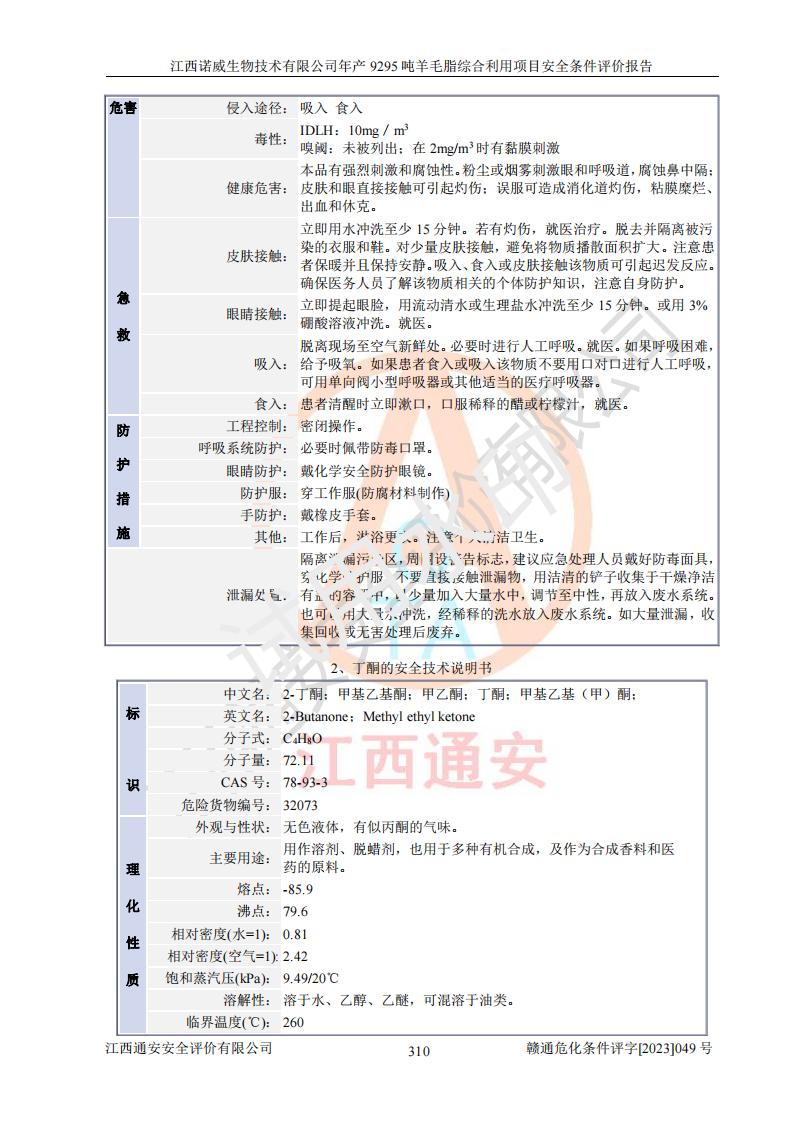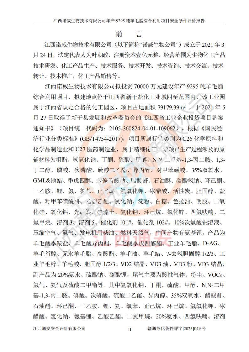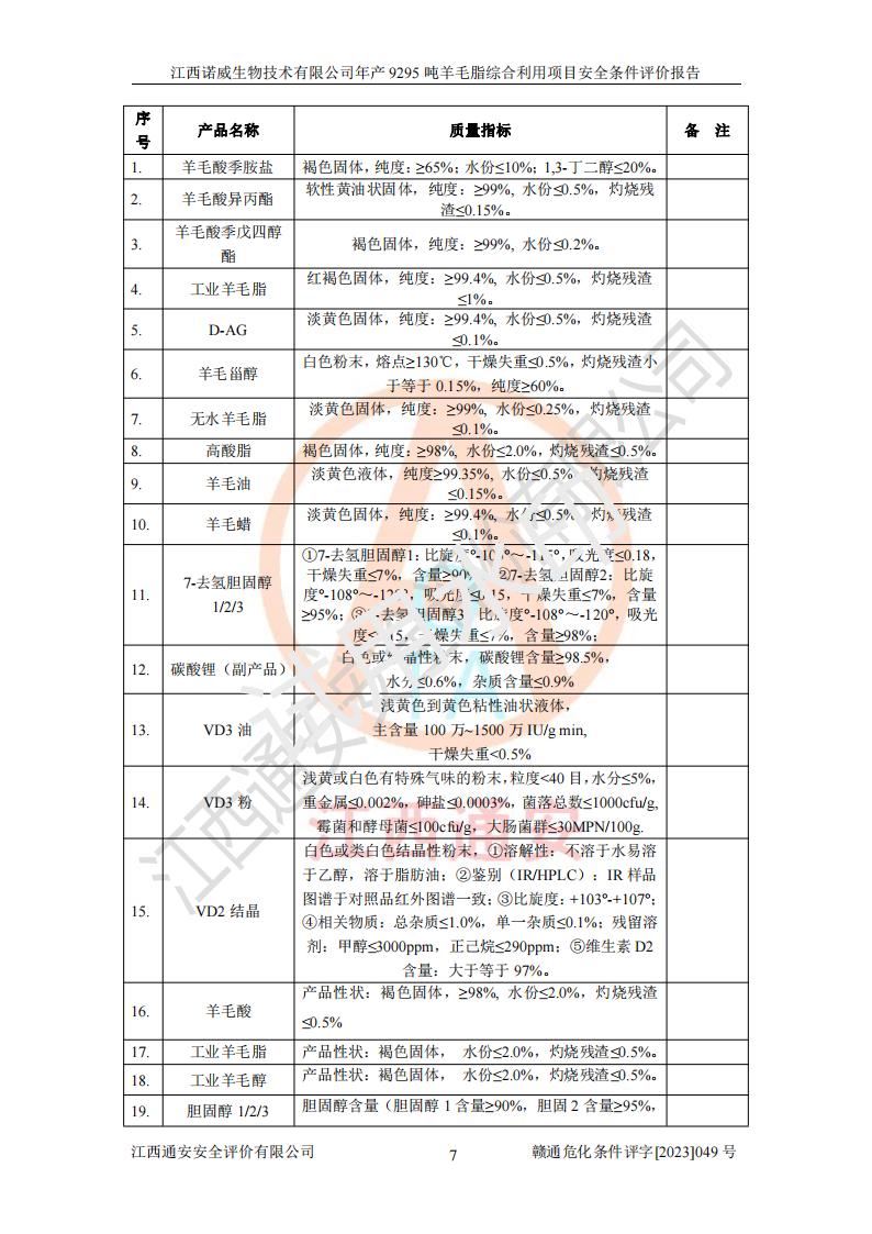 項目名稱 | 江西諾威生物技術(shù)有限公司年產(chǎn)9295噸羊毛脂綜合利用項目安全條件評價 | ||||