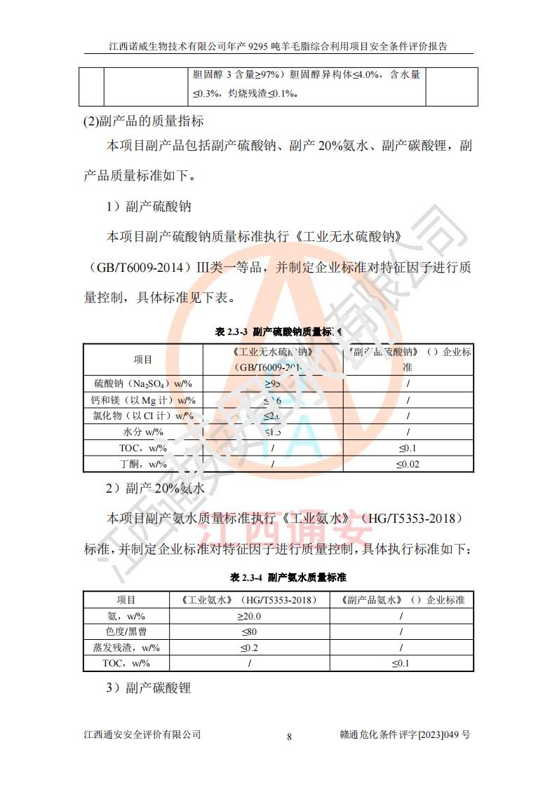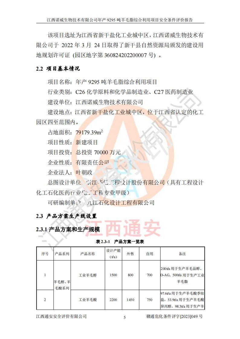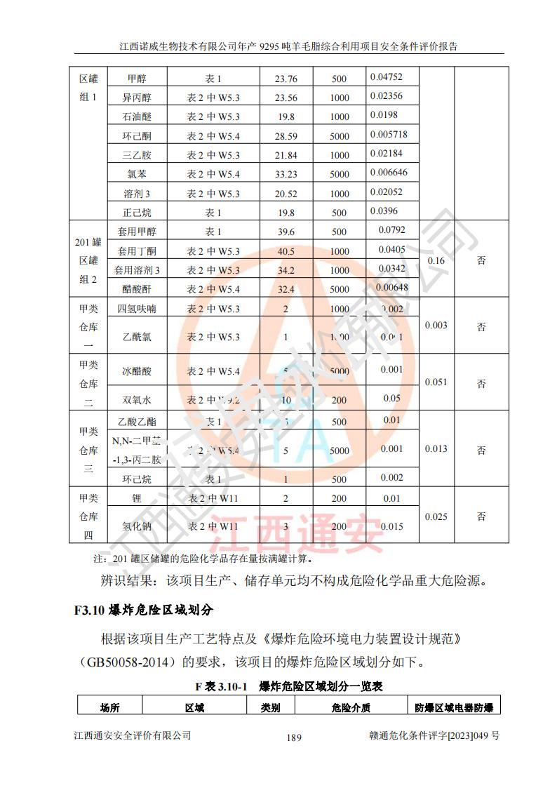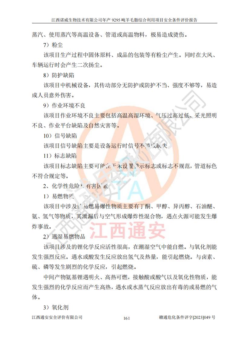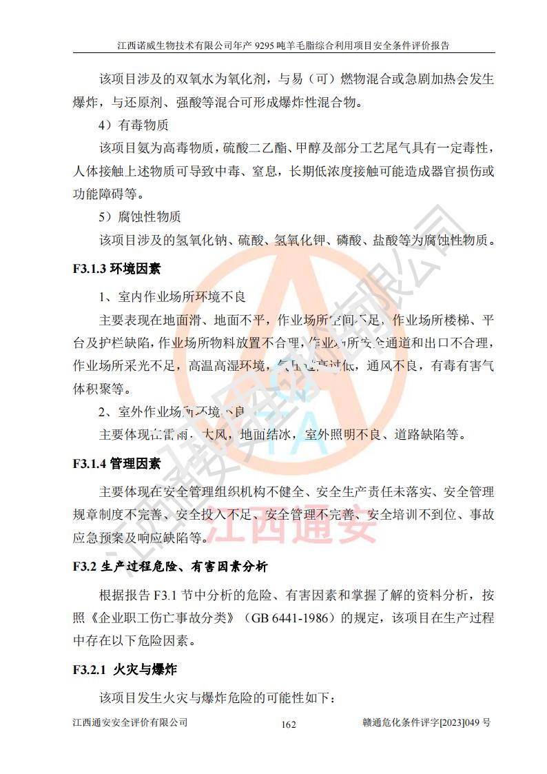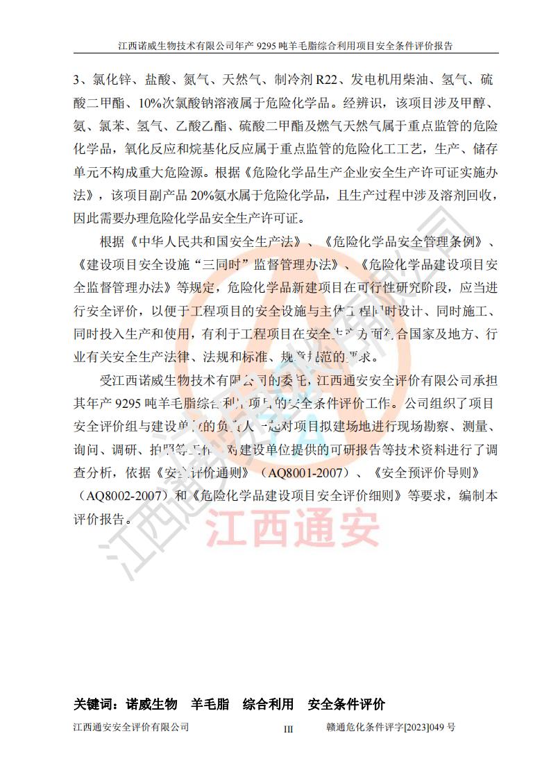 項目名稱 | 江西諾威生物技術(shù)有限公司年產(chǎn)9295噸羊毛脂綜合利用項目安全條件評價 | ||||