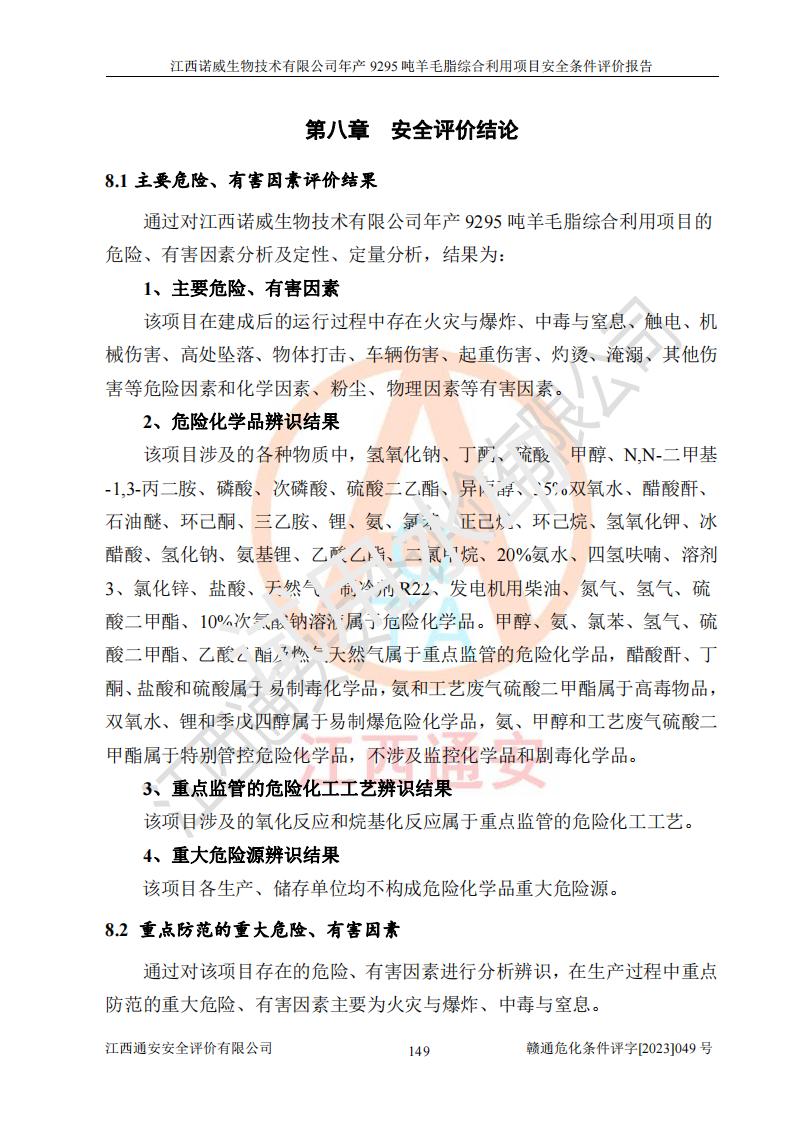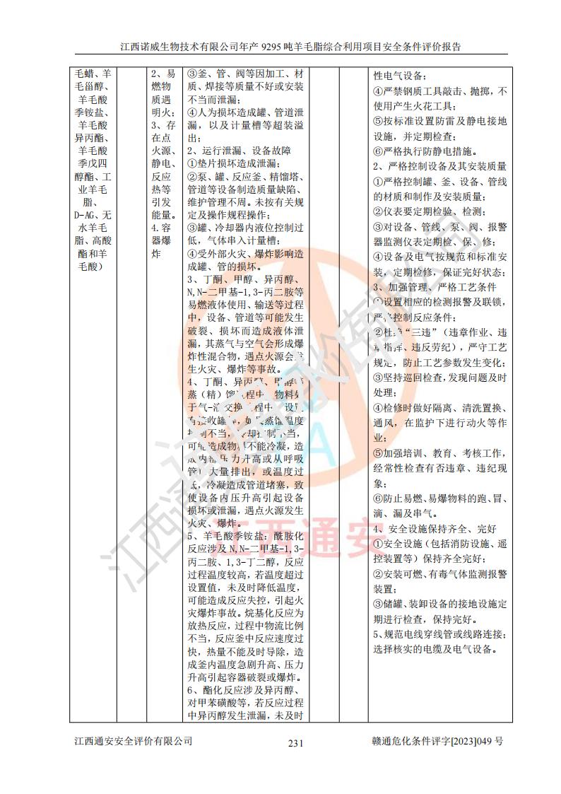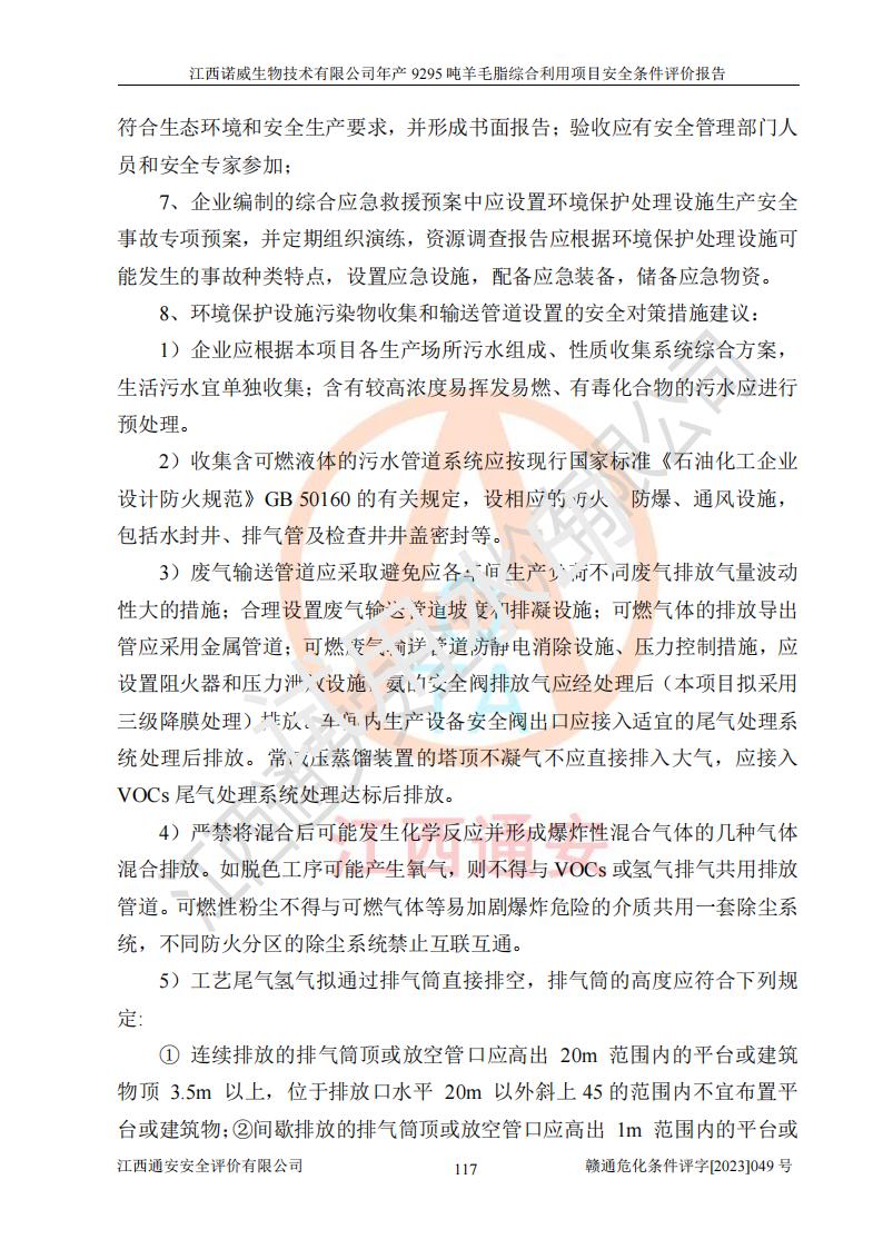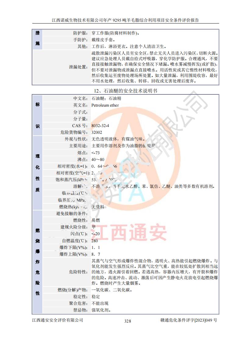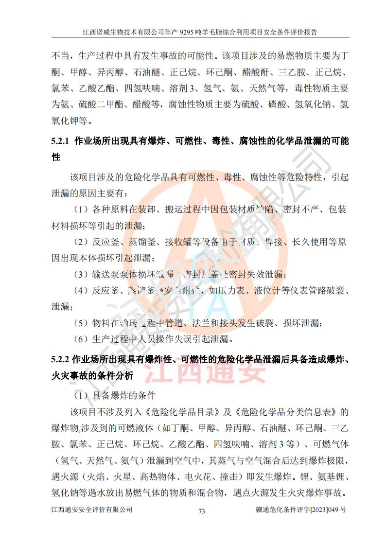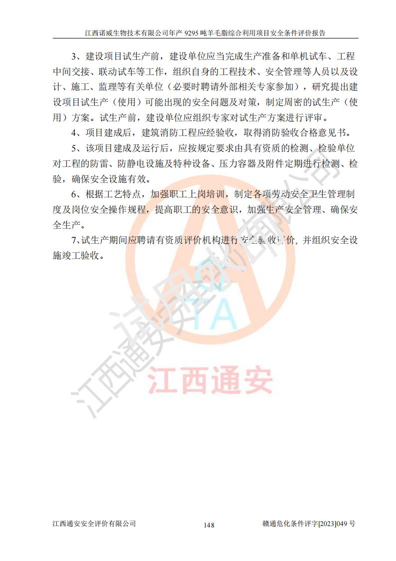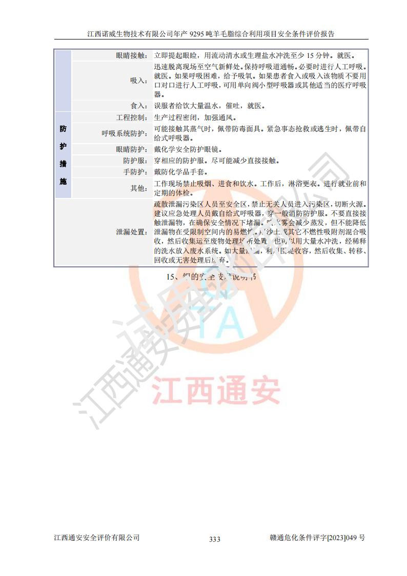 項目名稱 | 江西諾威生物技術(shù)有限公司年產(chǎn)9295噸羊毛脂綜合利用項目安全條件評價 | ||||