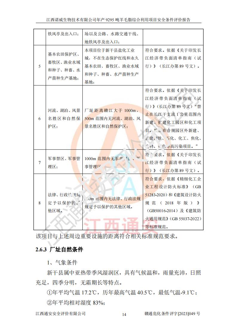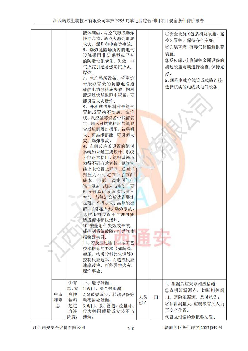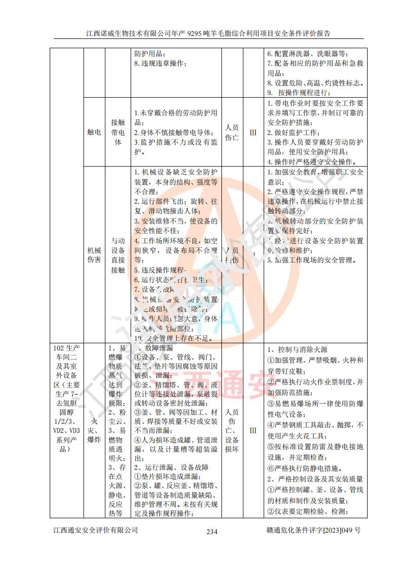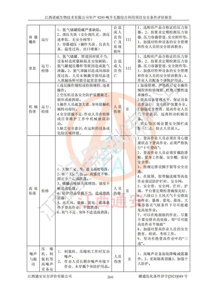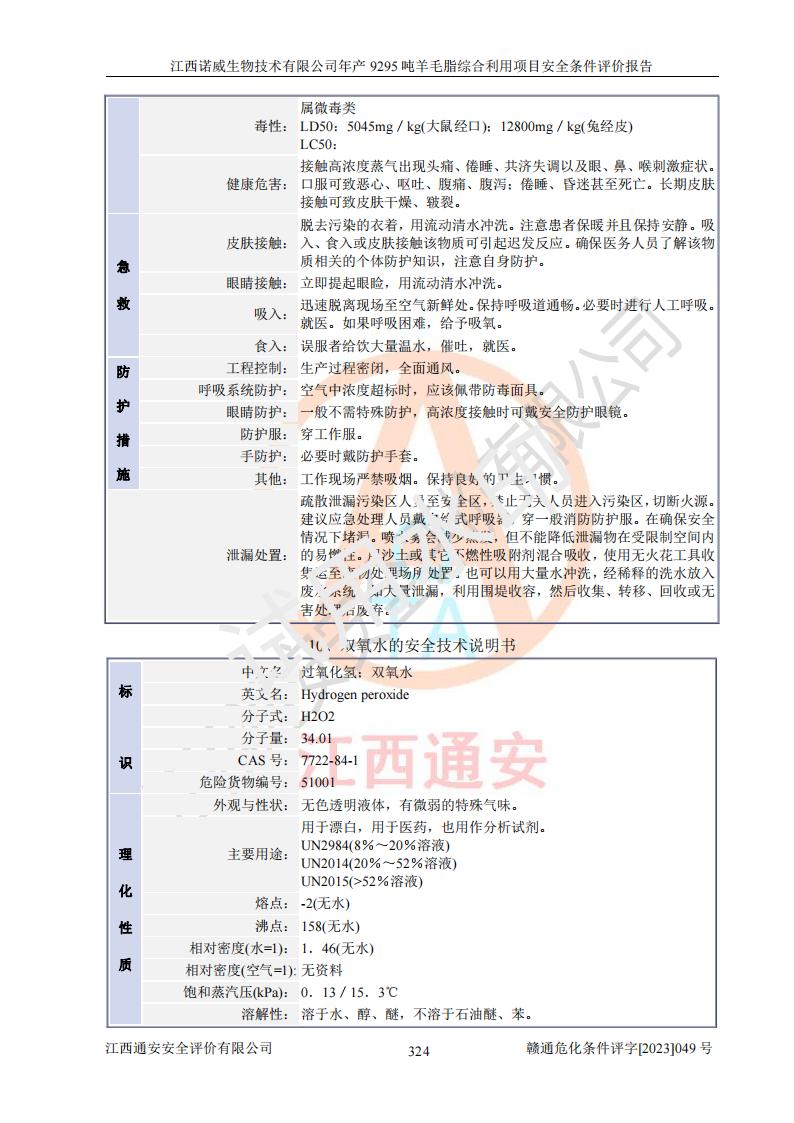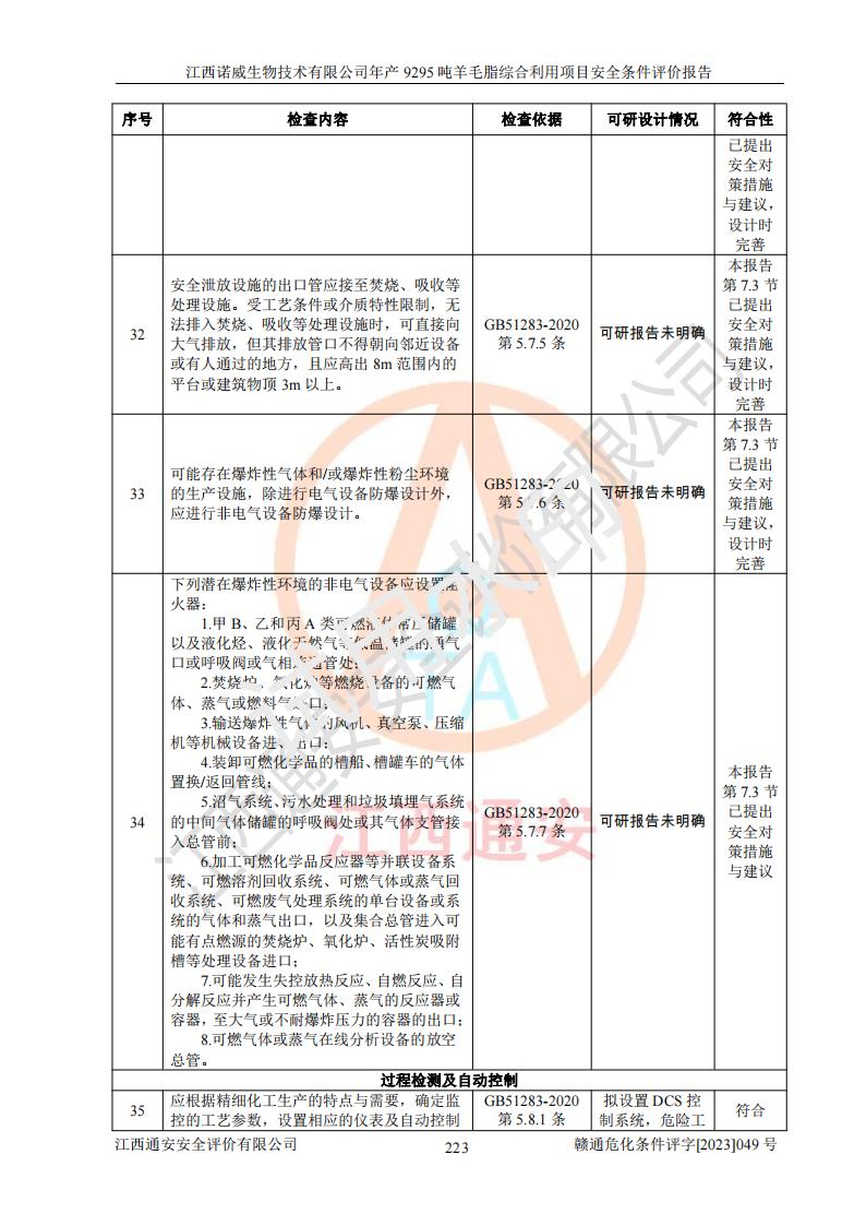 項目名稱 | 江西諾威生物技術(shù)有限公司年產(chǎn)9295噸羊毛脂綜合利用項目安全條件評價 | ||||