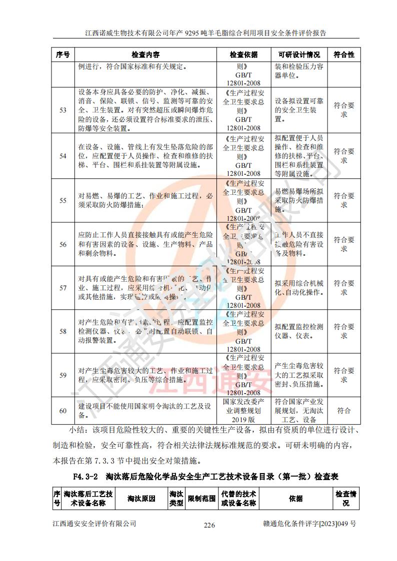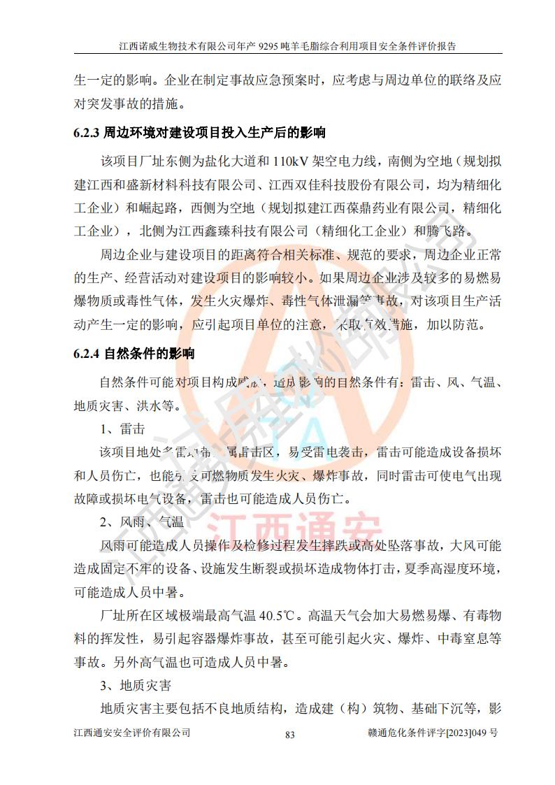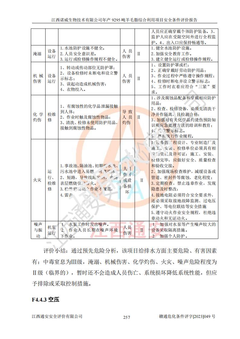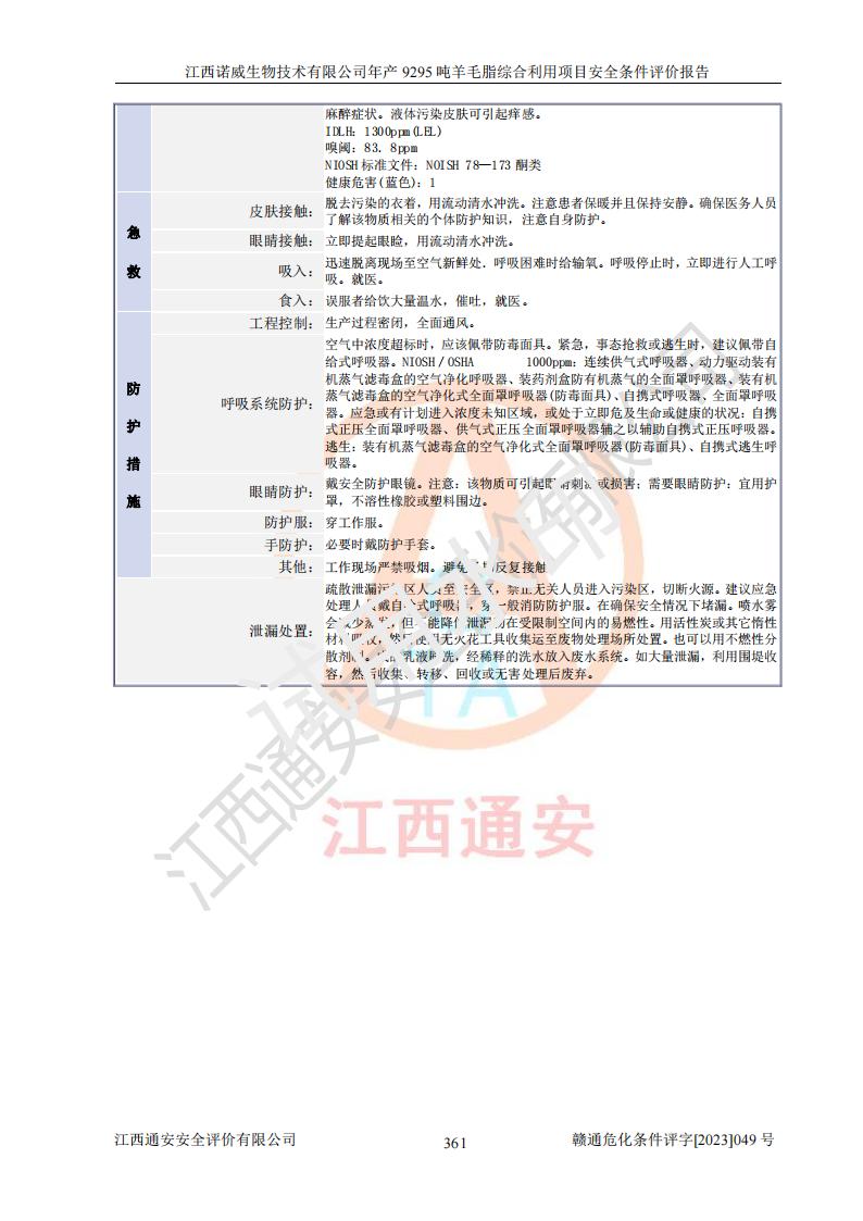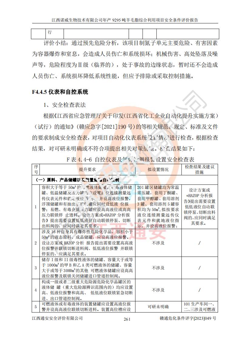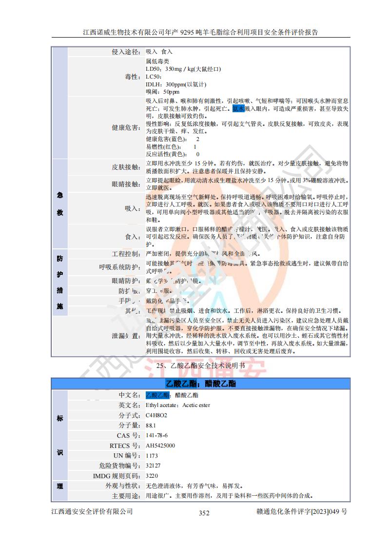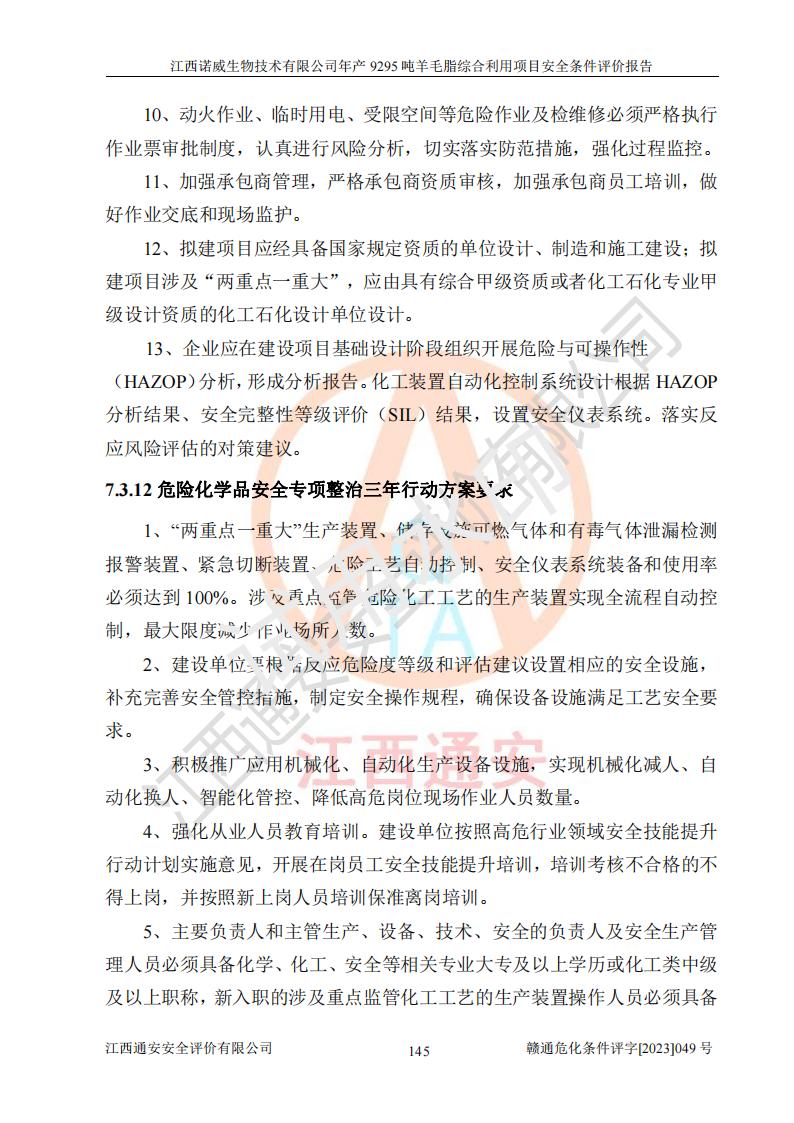 項目名稱 | 江西諾威生物技術(shù)有限公司年產(chǎn)9295噸羊毛脂綜合利用項目安全條件評價 | ||||