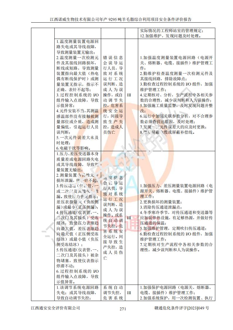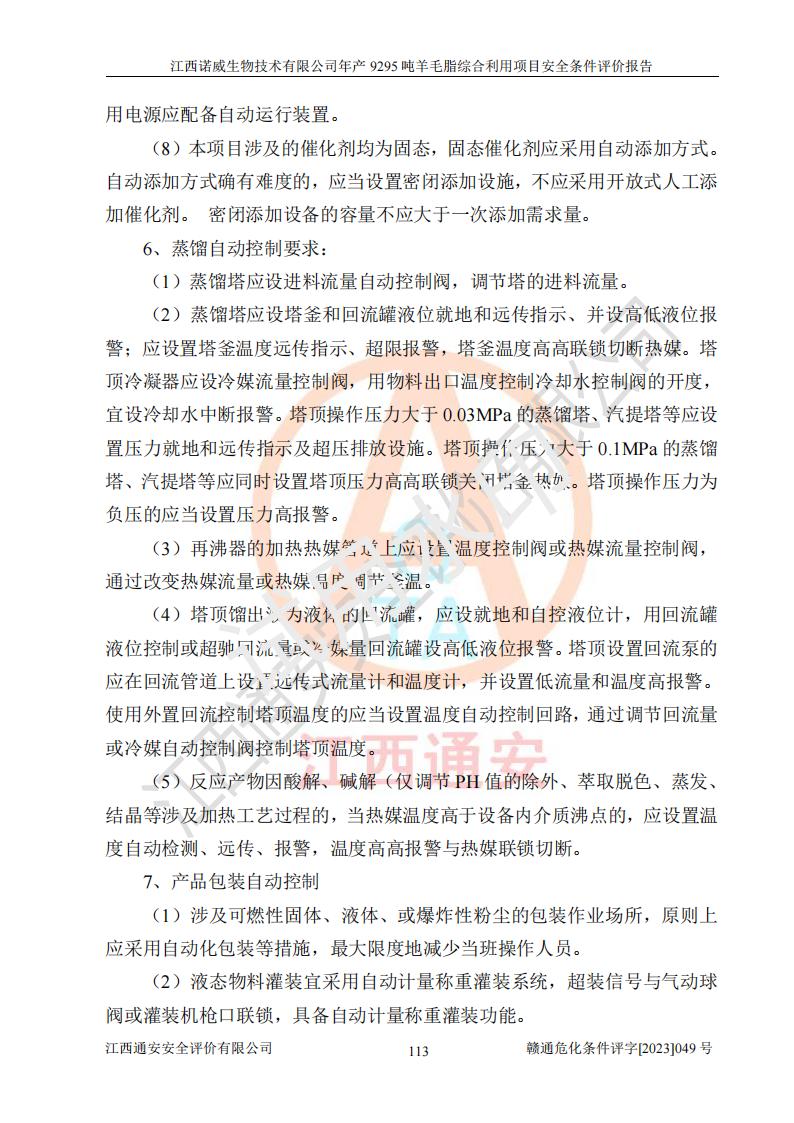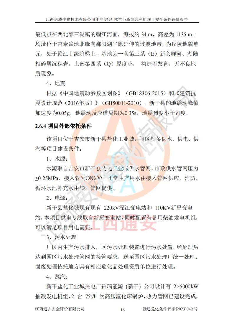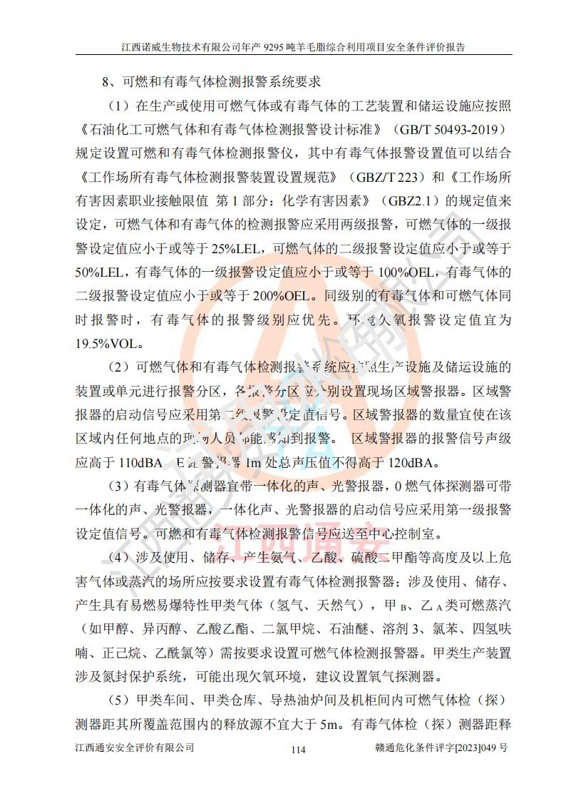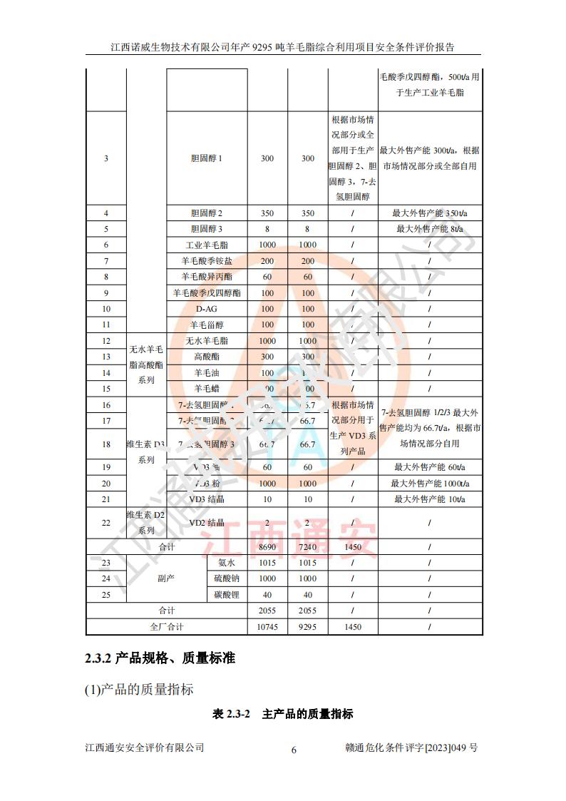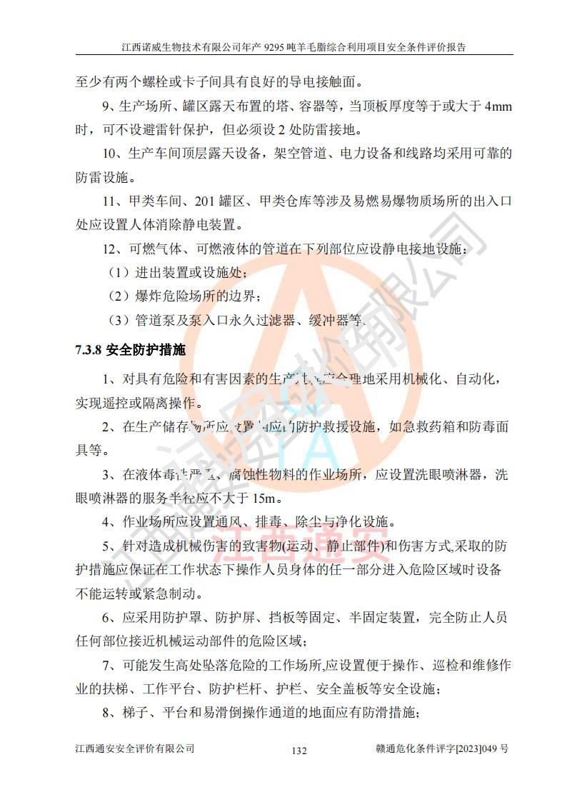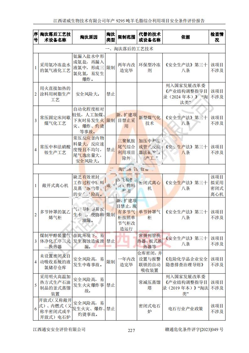 項目名稱 | 江西諾威生物技術(shù)有限公司年產(chǎn)9295噸羊毛脂綜合利用項目安全條件評價 | ||||