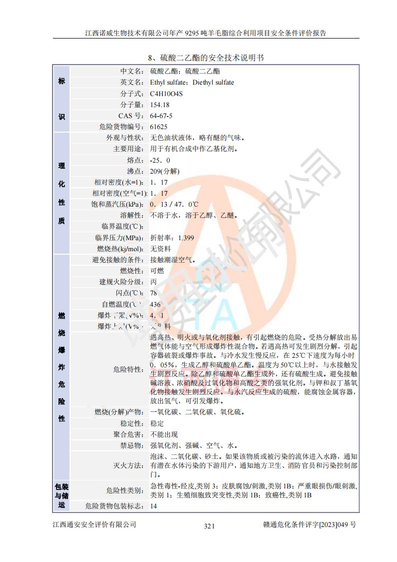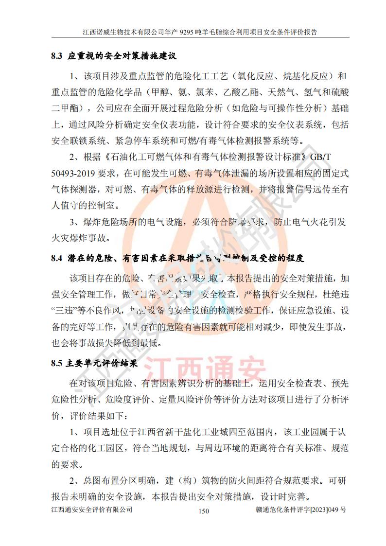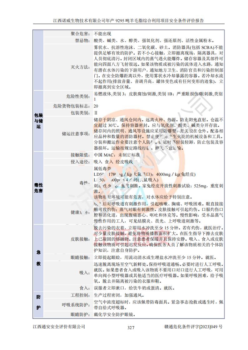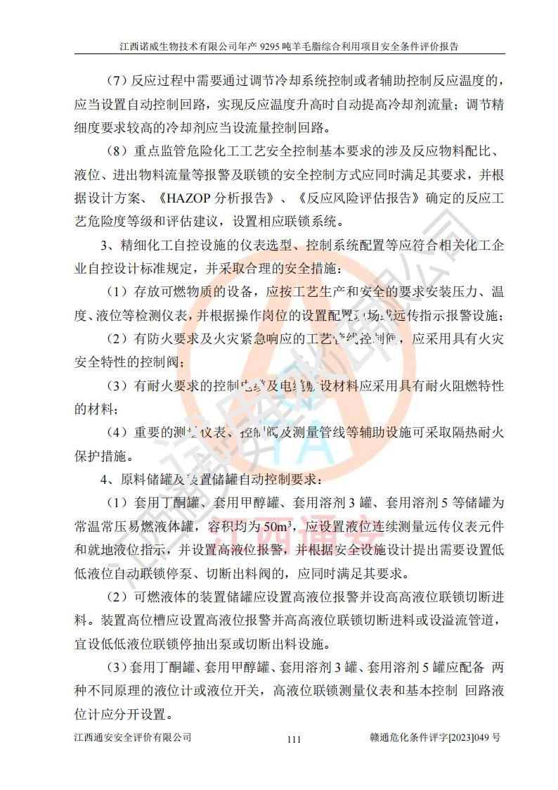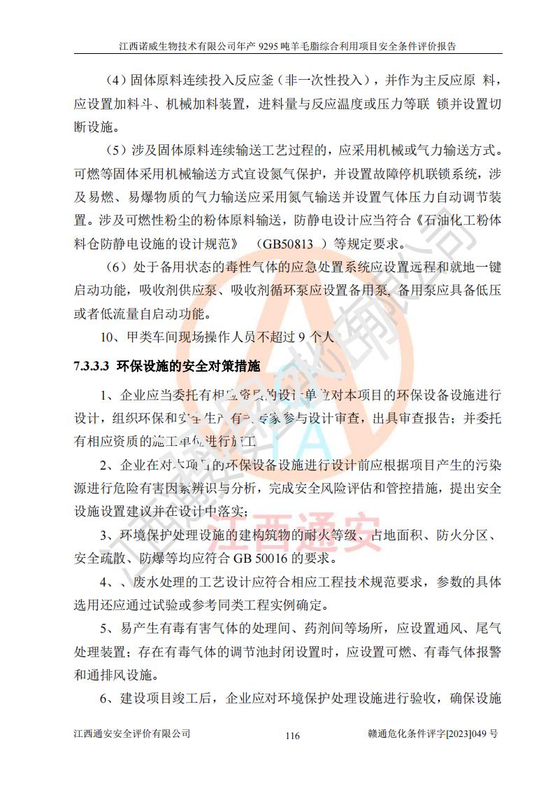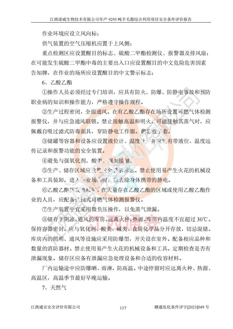 項目名稱 | 江西諾威生物技術(shù)有限公司年產(chǎn)9295噸羊毛脂綜合利用項目安全條件評價 | ||||