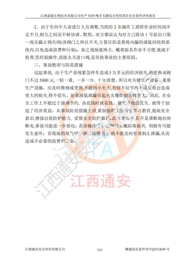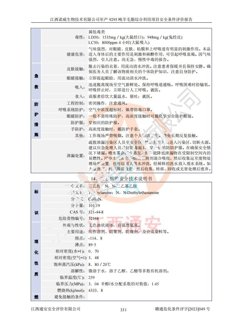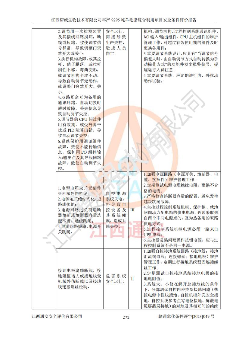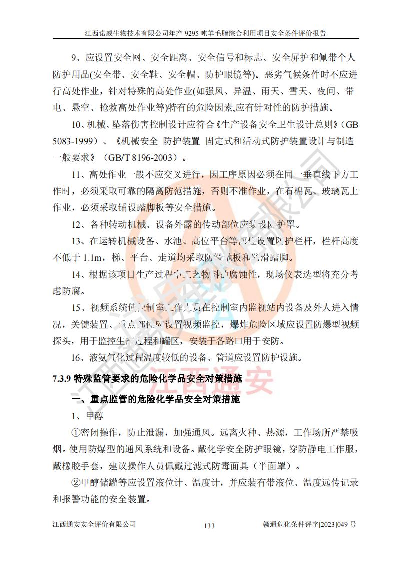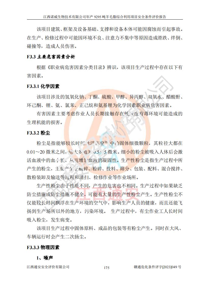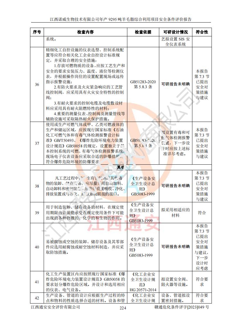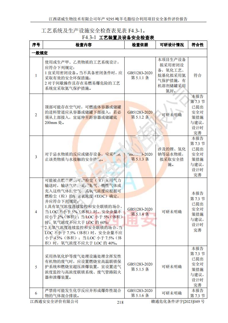 項目名稱 | 江西諾威生物技術(shù)有限公司年產(chǎn)9295噸羊毛脂綜合利用項目安全條件評價 | ||||