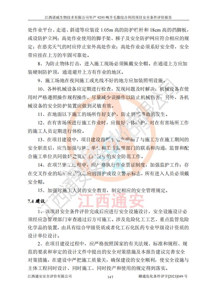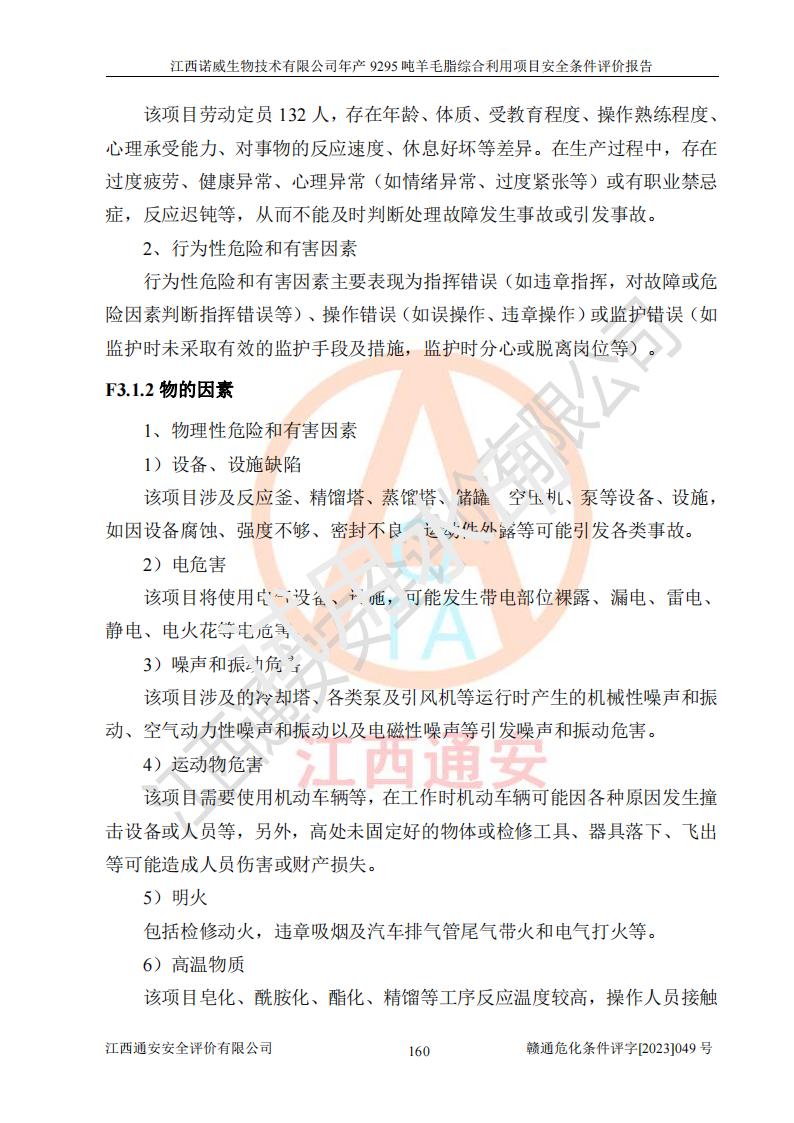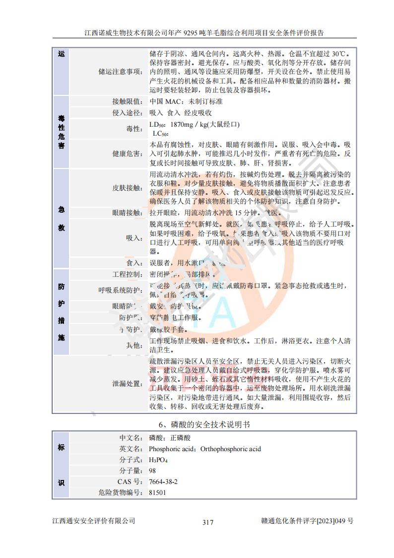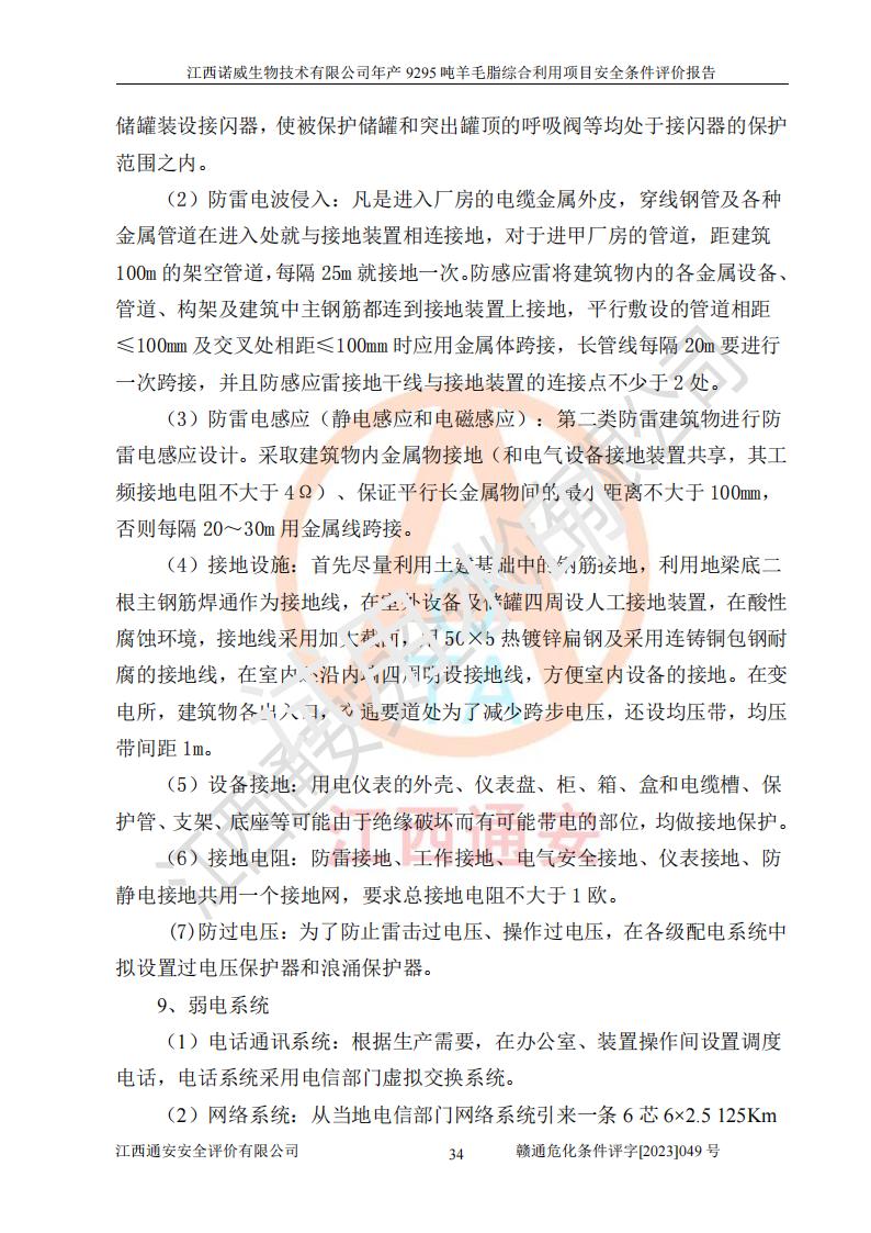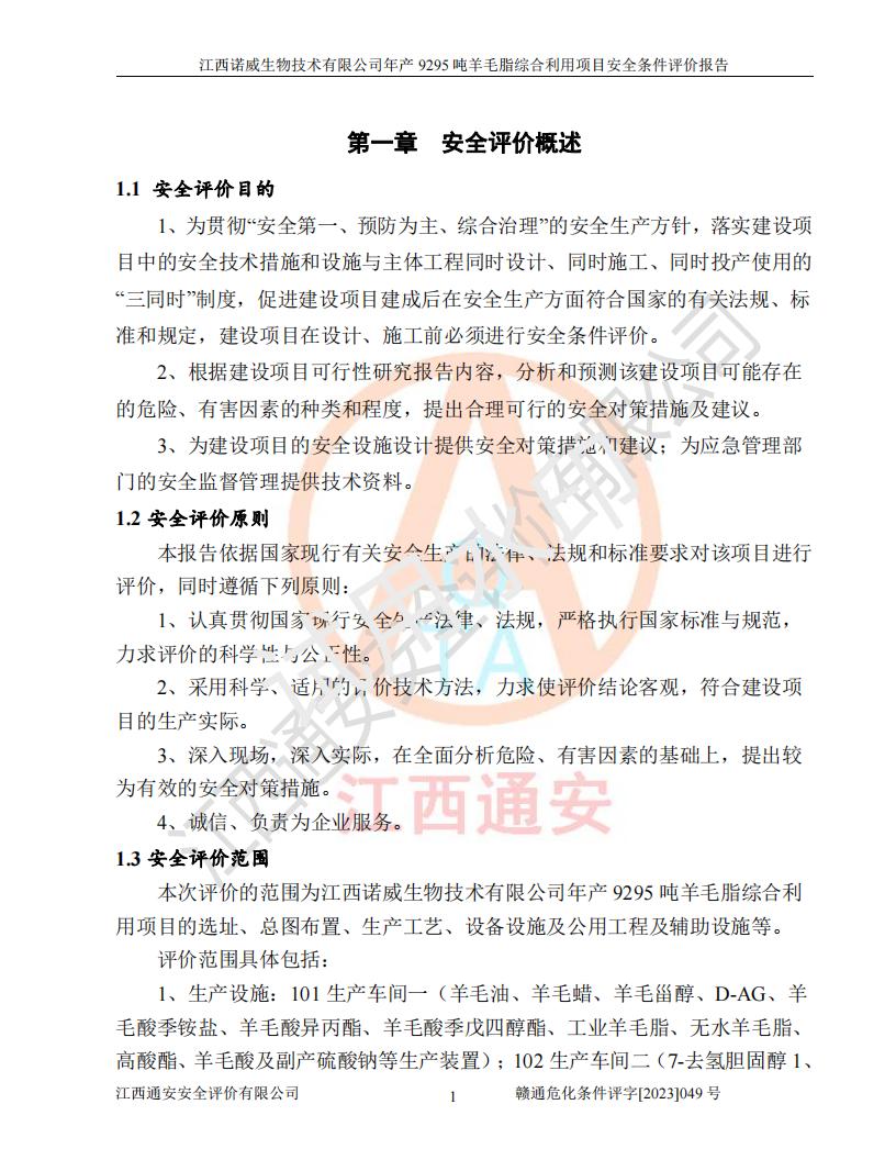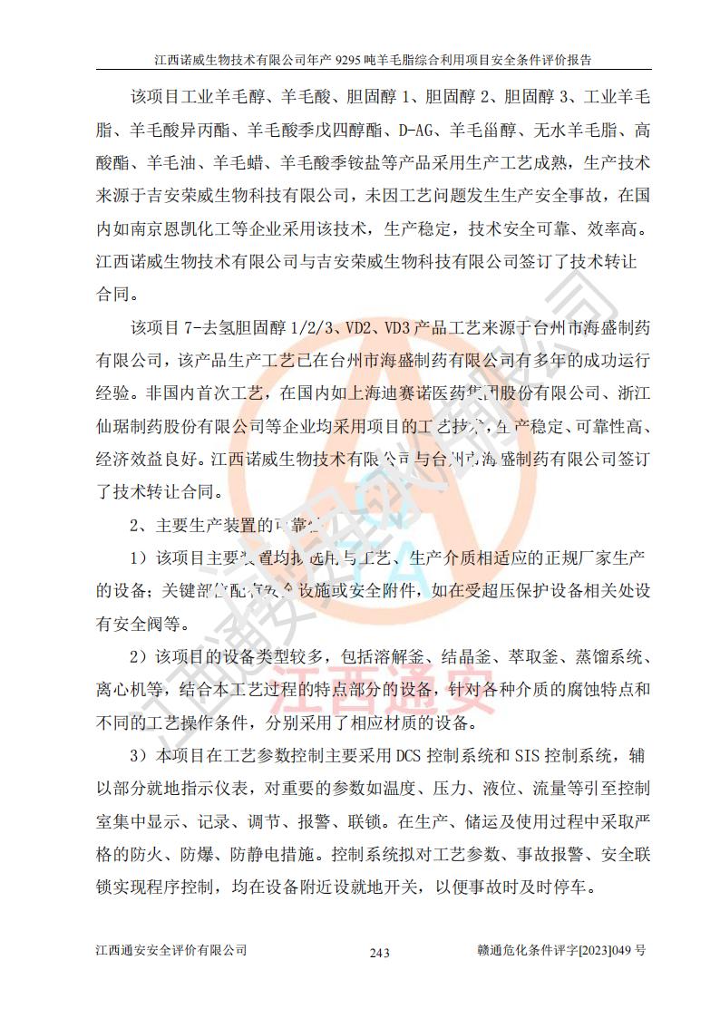 項目名稱 | 江西諾威生物技術(shù)有限公司年產(chǎn)9295噸羊毛脂綜合利用項目安全條件評價 | ||||