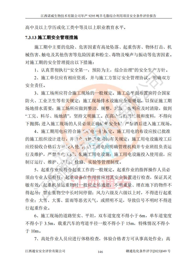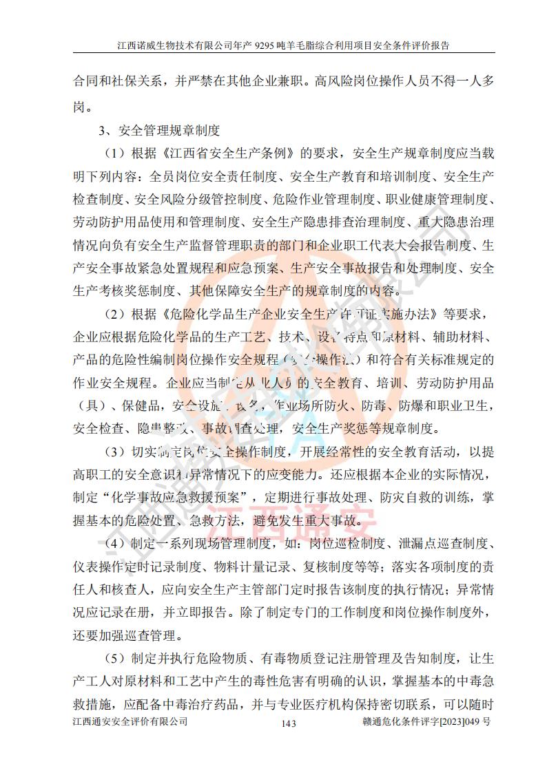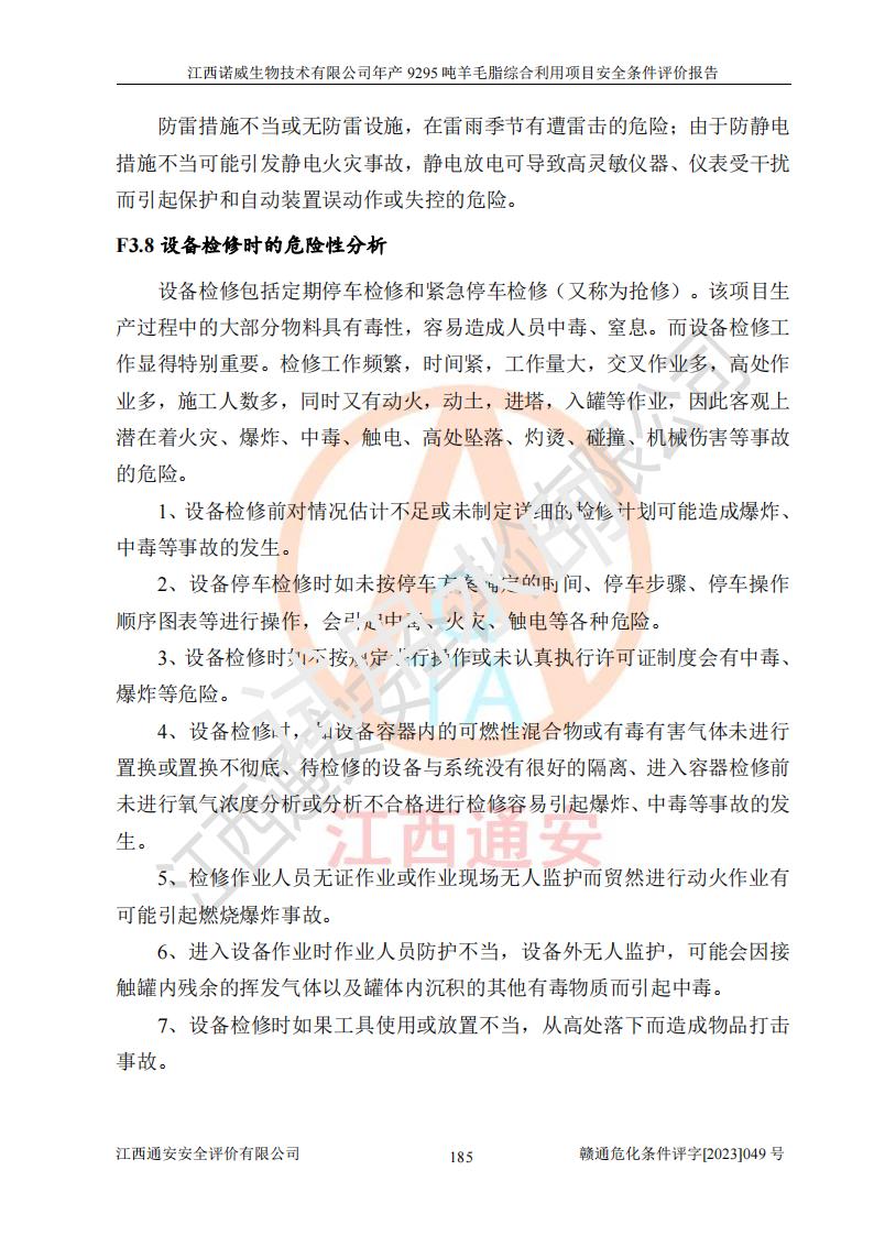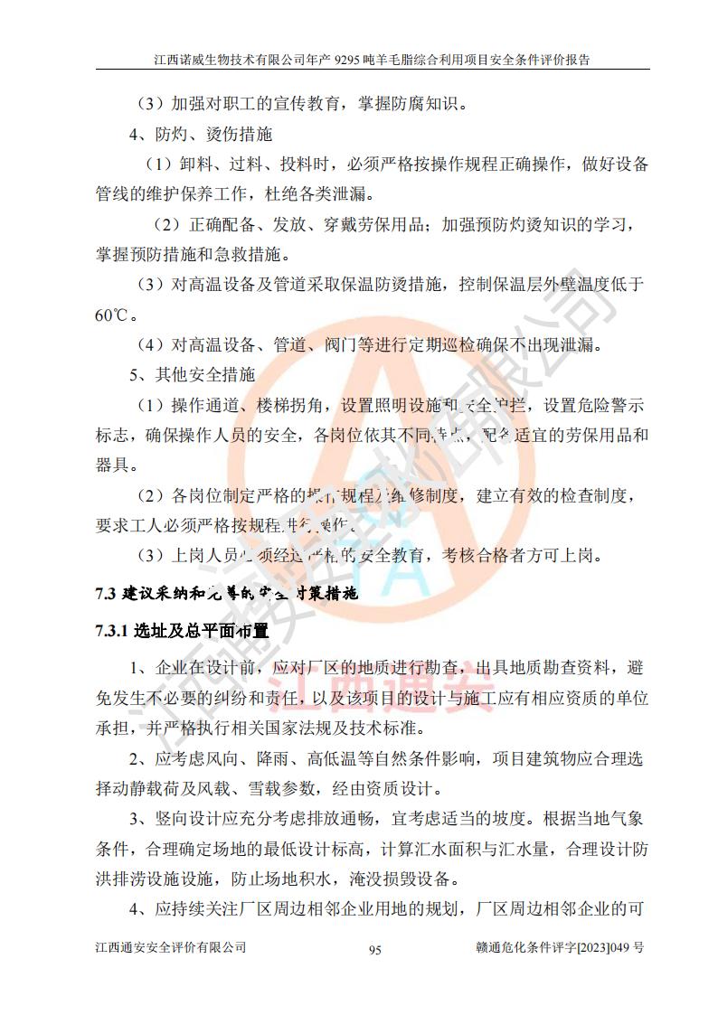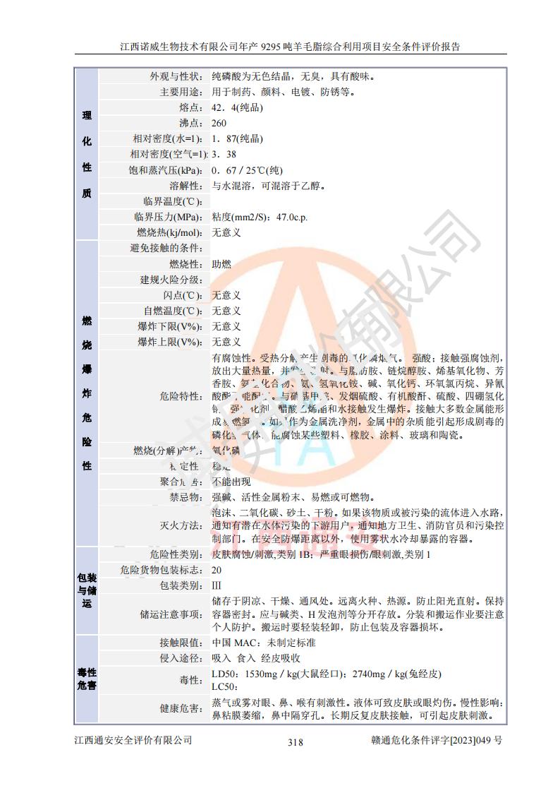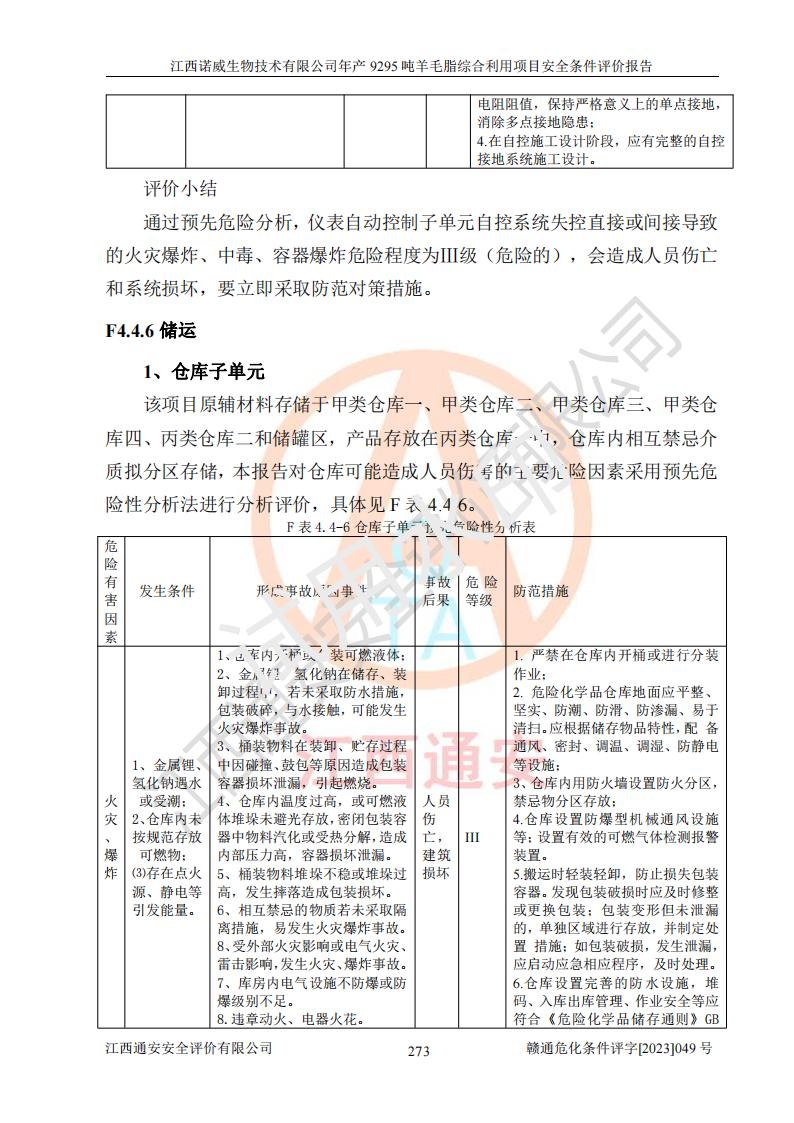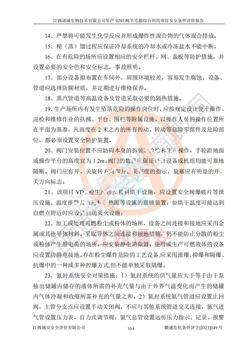 項目名稱 | 江西諾威生物技術(shù)有限公司年產(chǎn)9295噸羊毛脂綜合利用項目安全條件評價 | ||||
