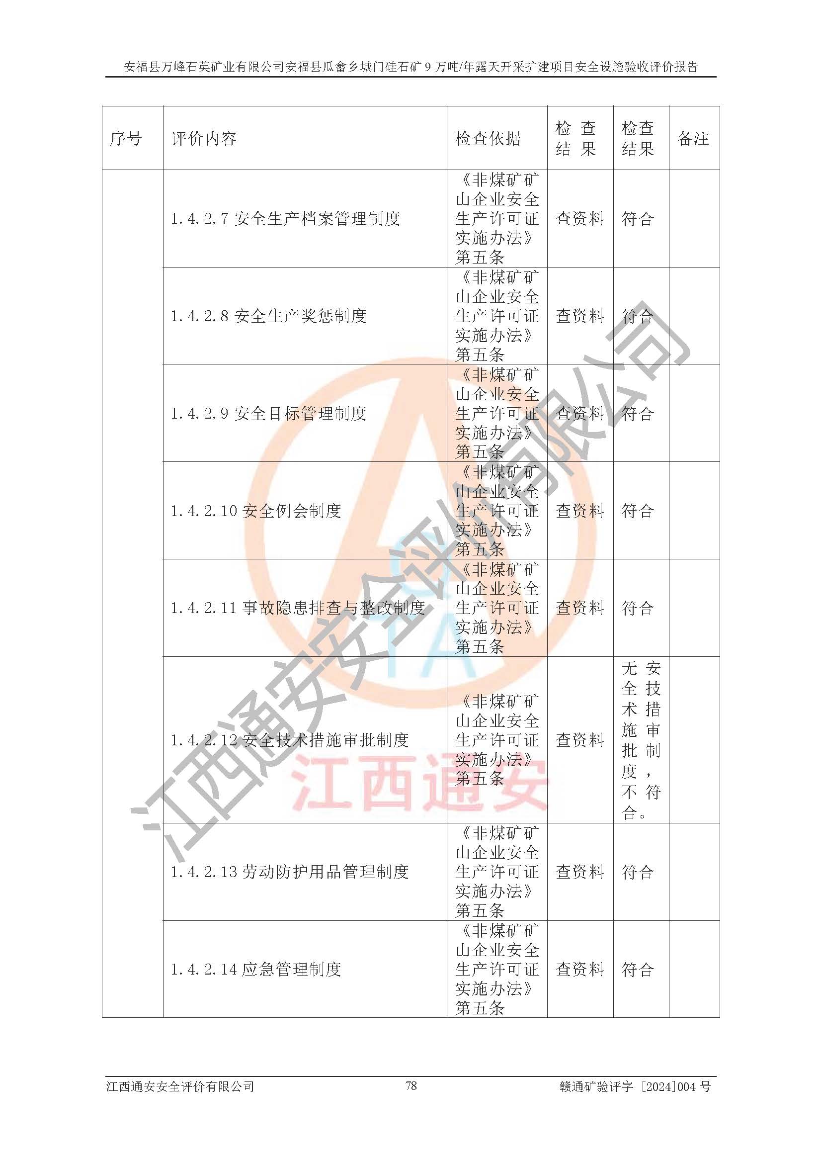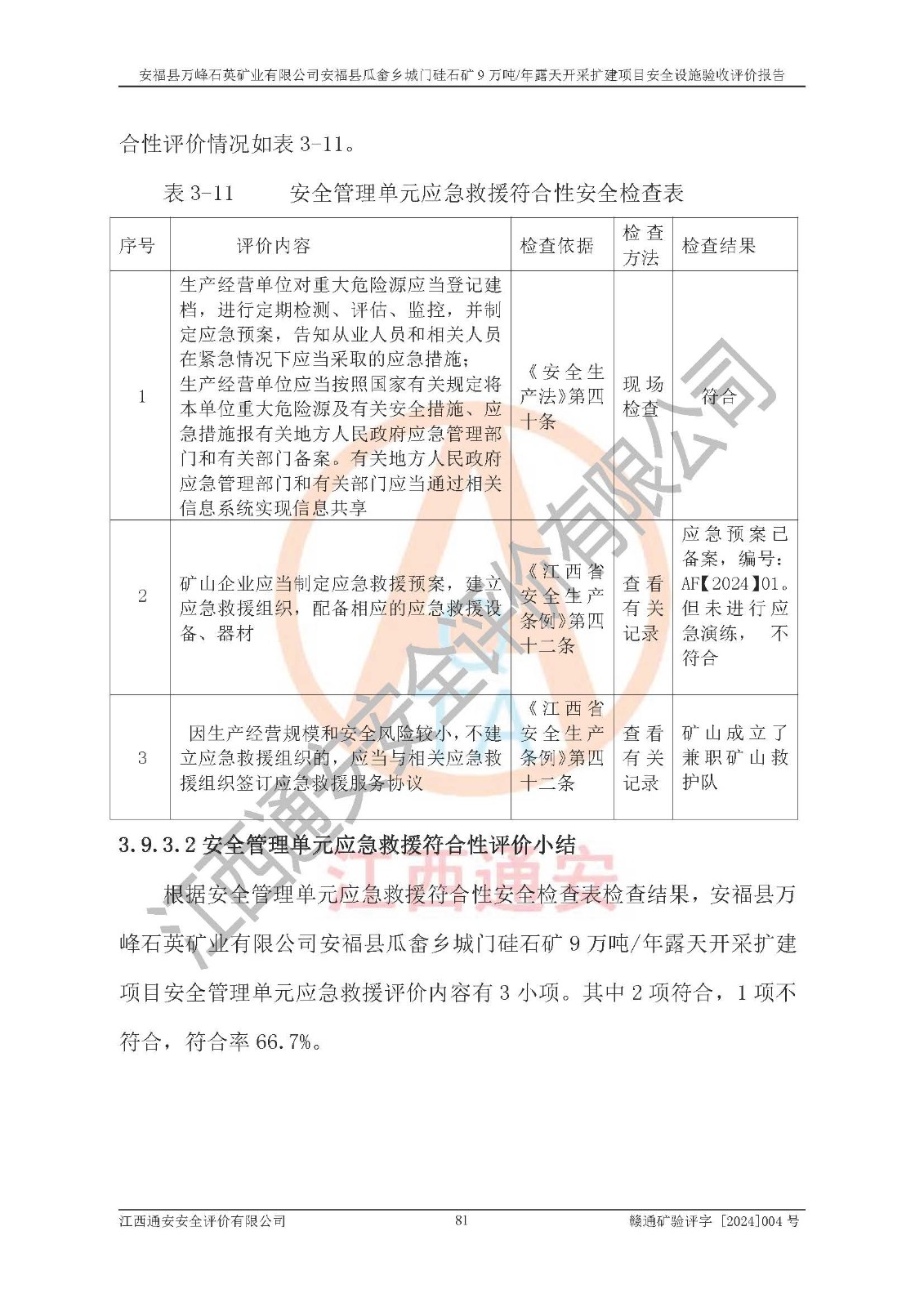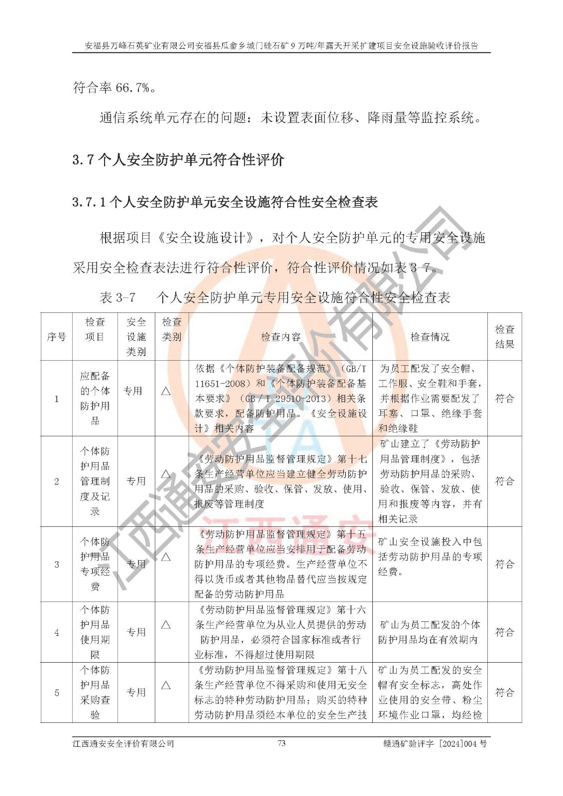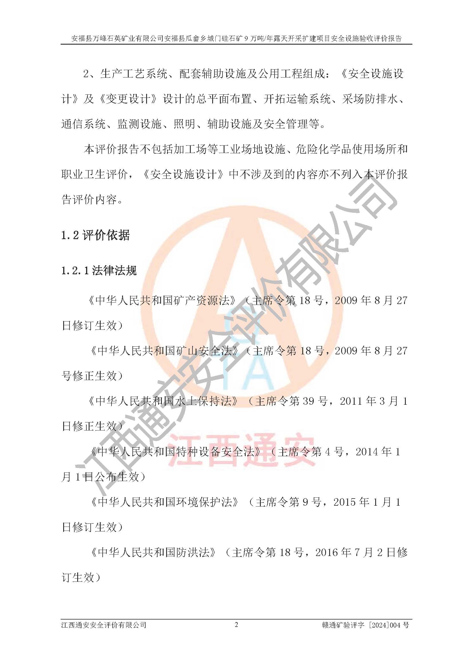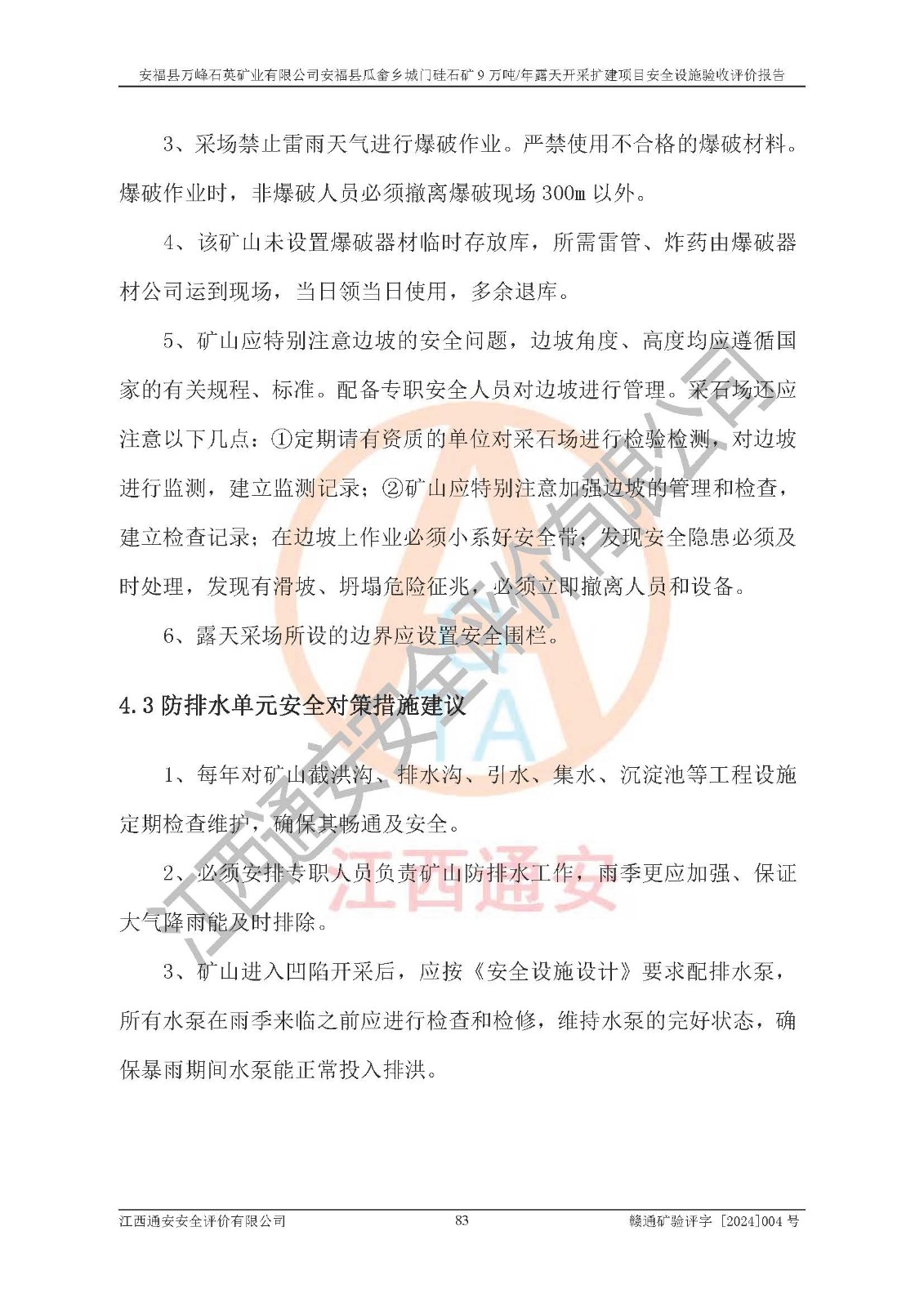安??h萬(wàn)峰石英礦業(yè)有限公司安??h瓜畬鄉(xiāng)城門(mén)硅石礦礦區(qū)位于安??h城70°方向約15km處,行政區(qū)劃屬安福縣瓜畬鄉(xiāng)管轄。礦區(qū)位置地理坐標(biāo):東經(jīng)114°44′12"~114°44′29",北緯27°28′53"~27°28′57",礦區(qū)中心地理坐標(biāo):東經(jīng)114°44′20",北緯27°28′55"。礦區(qū)有約15km簡(jiǎn)易公路經(jīng)瓜畬鄉(xiāng)**所在地,與安?!掠喙废嘟?,交通方便。 安??h瓜畬鄉(xiāng)城門(mén)硅石礦于2016年3月8日取得采礦許可證,證號(hào)C3608002009027220004917,生產(chǎn)規(guī)模1萬(wàn)噸/年,礦區(qū)面積:0.0646km2。 因礦山生產(chǎn)規(guī)模滿足不了市場(chǎng)要求,加上礦區(qū)有些地征用比較困難,企業(yè)向吉安市自然資源局申請(qǐng)擴(kuò)大生產(chǎn)規(guī)模,并將礦區(qū)范圍進(jìn)行了縮小。 2019年6月8日取得了吉安市自然資源局換發(fā)的采礦許可證,證號(hào)C3608002009027220004917,生產(chǎn)規(guī)模9萬(wàn)噸/年,礦區(qū)面積為0.029km2。**期自2019年6月8日至2027年6月8日。由于新的采礦證擴(kuò)大了生產(chǎn)規(guī)模,且改變了礦區(qū)范圍,該項(xiàng)目屬于擴(kuò)建項(xiàng)目。 吉安市富林礦山技術(shù)服務(wù)有限公司于2019年9月編制了《安??h瓜畬鄉(xiāng)城門(mén)玻璃用石英巖礦資源儲(chǔ)量核實(shí)報(bào)告》,吉安市富林礦山技術(shù)服務(wù)有限公司于2020年4月編制了《安??h瓜畬鄉(xiāng)城門(mén)玻璃用石英巖礦礦產(chǎn)資源開(kāi)發(fā)利用、地質(zhì)環(huán)境恢復(fù)治理與土地復(fù)墾方案》,貴州匯和安全評(píng)價(jià)有限公司于2023年4月編制了《安??h萬(wàn)峰石英礦業(yè)有限公司安??h瓜畬鄉(xiāng)城門(mén)硅石礦9萬(wàn)噸/年露天開(kāi)采擴(kuò)建項(xiàng)目安全預(yù)評(píng)價(jià)報(bào)告》,河南華鼎礦業(yè)設(shè)計(jì)有限公司于2023年6月編制了《安??h萬(wàn)峰石英礦業(yè)有限公司安??h瓜畬鄉(xiāng)城門(mén)硅石礦9萬(wàn)噸/年露天開(kāi)采擴(kuò)建項(xiàng)目初步設(shè)計(jì)》和《安??h萬(wàn)峰石英礦業(yè)有限公司安福縣瓜畬鄉(xiāng)城門(mén)硅石礦9萬(wàn)噸/年露天開(kāi)采擴(kuò)建項(xiàng)目安全設(shè)施設(shè)計(jì)》;2023年7月3日安??h應(yīng)急管理局下發(fā)了《關(guān)于安福縣萬(wàn)峰石英礦業(yè)有限公司安??h瓜畬鄉(xiāng)城門(mén)硅石礦9萬(wàn)噸/年露天開(kāi)采擴(kuò)建項(xiàng)目安全設(shè)施設(shè)計(jì)審查意見(jiàn)》(安應(yīng)急字〔2023〕30號(hào))。 2023年7月安??h萬(wàn)峰石英礦業(yè)有限公司根據(jù)《中華人民共和國(guó)安全生產(chǎn)法》、《安全生產(chǎn)許可證條例》等有關(guān)法律、法規(guī)、部門(mén)規(guī)章的規(guī)定,嚴(yán)格按照《安全設(shè)施設(shè)計(jì)》進(jìn)行基建,該礦山分東、西兩個(gè)采區(qū),西采區(qū)設(shè)計(jì)+259m平臺(tái)為采剝平臺(tái)、+249m平臺(tái)為鏟裝平臺(tái),開(kāi)拓運(yùn)輸?shù)缆分?249m平臺(tái),在基建過(guò)程中,剝離表土?xí)r因表土層發(fā)生變化,+259m采剝平臺(tái)無(wú)硅石資源可采,因此首采平臺(tái)及其鏟裝平臺(tái)、開(kāi)拓運(yùn)輸?shù)缆?*進(jìn)行變更。 2024年4月礦山委托原設(shè)計(jì)單位河南華鼎礦業(yè)設(shè)計(jì)有限公司編制了《安??h萬(wàn)峰石英礦業(yè)有限公司安??h瓜畬鄉(xiāng)城門(mén)硅石礦9萬(wàn)噸/年露天開(kāi)采擴(kuò)建項(xiàng)目變更設(shè)計(jì)》,根據(jù)礦山西采區(qū)+259m、+249m、+239m平臺(tái)均無(wú)硅石資源的實(shí)際情況,對(duì)設(shè)計(jì)的西采區(qū)+259m平臺(tái)為采剝平臺(tái)、+249m平臺(tái)為鏟裝平臺(tái),開(kāi)拓運(yùn)輸?shù)缆分?249m平臺(tái)進(jìn)行變更,將+259m平臺(tái)、+249m平臺(tái)變更為安全平臺(tái),+239m平臺(tái)仍為清掃平臺(tái),首采平臺(tái)變更為+229m平臺(tái)、鏟裝平臺(tái)變更為+219m平臺(tái),開(kāi)拓運(yùn)輸?shù)缆分?219m平臺(tái)、簡(jiǎn)易道路至+229m平臺(tái);東采區(qū)安全設(shè)施設(shè)計(jì)不變,根據(jù)《**礦山監(jiān)察局關(guān)于印發(fā)非煤礦山建設(shè)項(xiàng)目安全設(shè)施重大變更范圍的通知》之規(guī)定,上述變更不屬于重大變更。 安??h萬(wàn)峰石英礦業(yè)有限公司安??h瓜畬鄉(xiāng)城門(mén)硅石礦9萬(wàn)噸/年露天開(kāi)采擴(kuò)建項(xiàng)目基建已完成,本次安全設(shè)施驗(yàn)收評(píng)價(jià)未涉及凹陷露天開(kāi)采。 |
