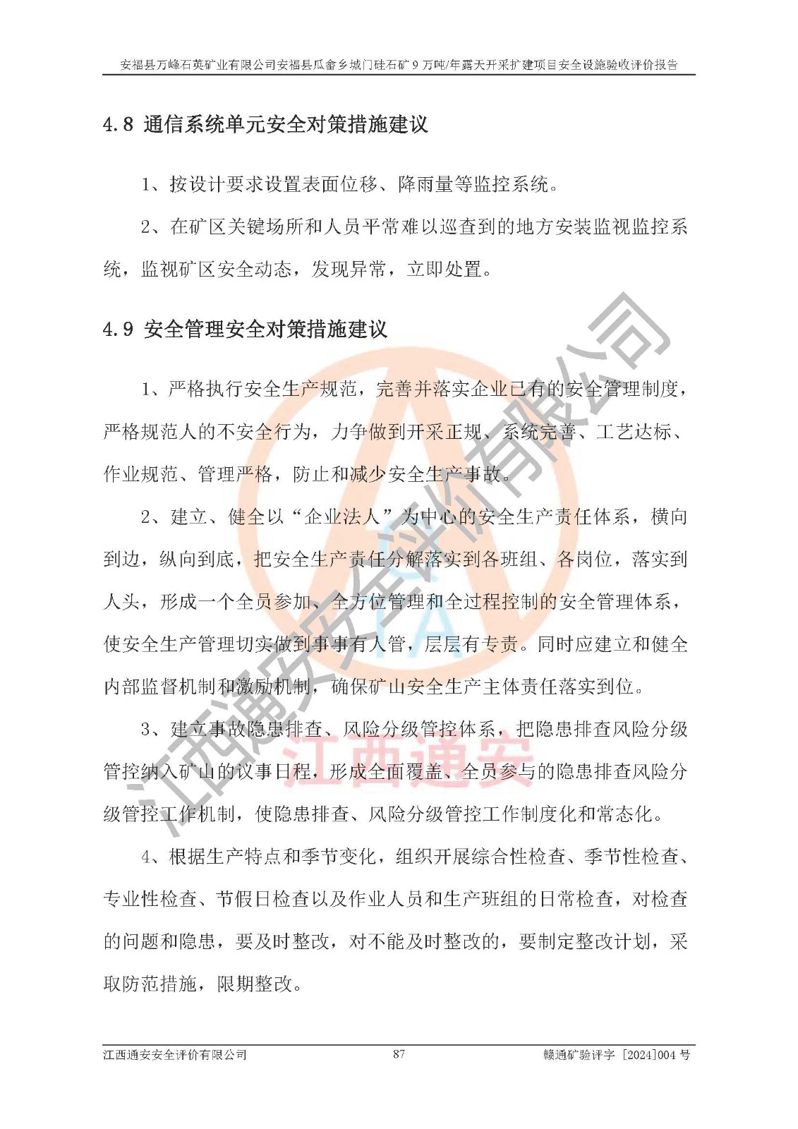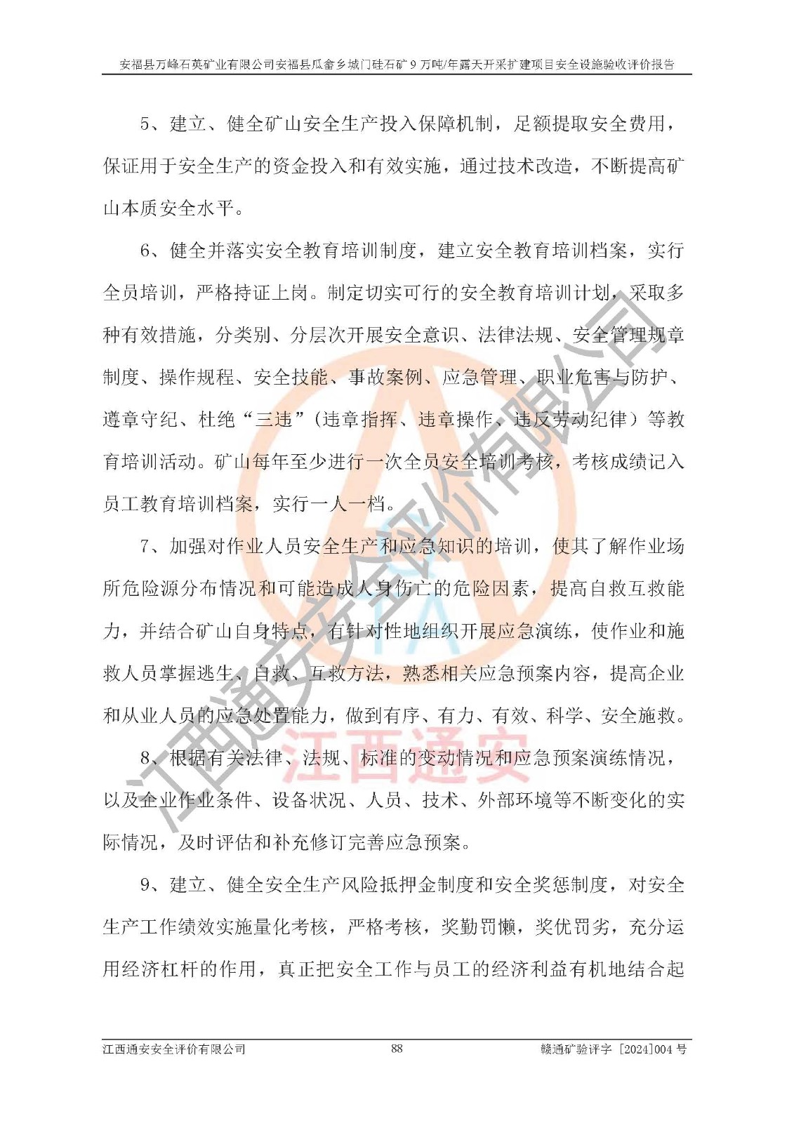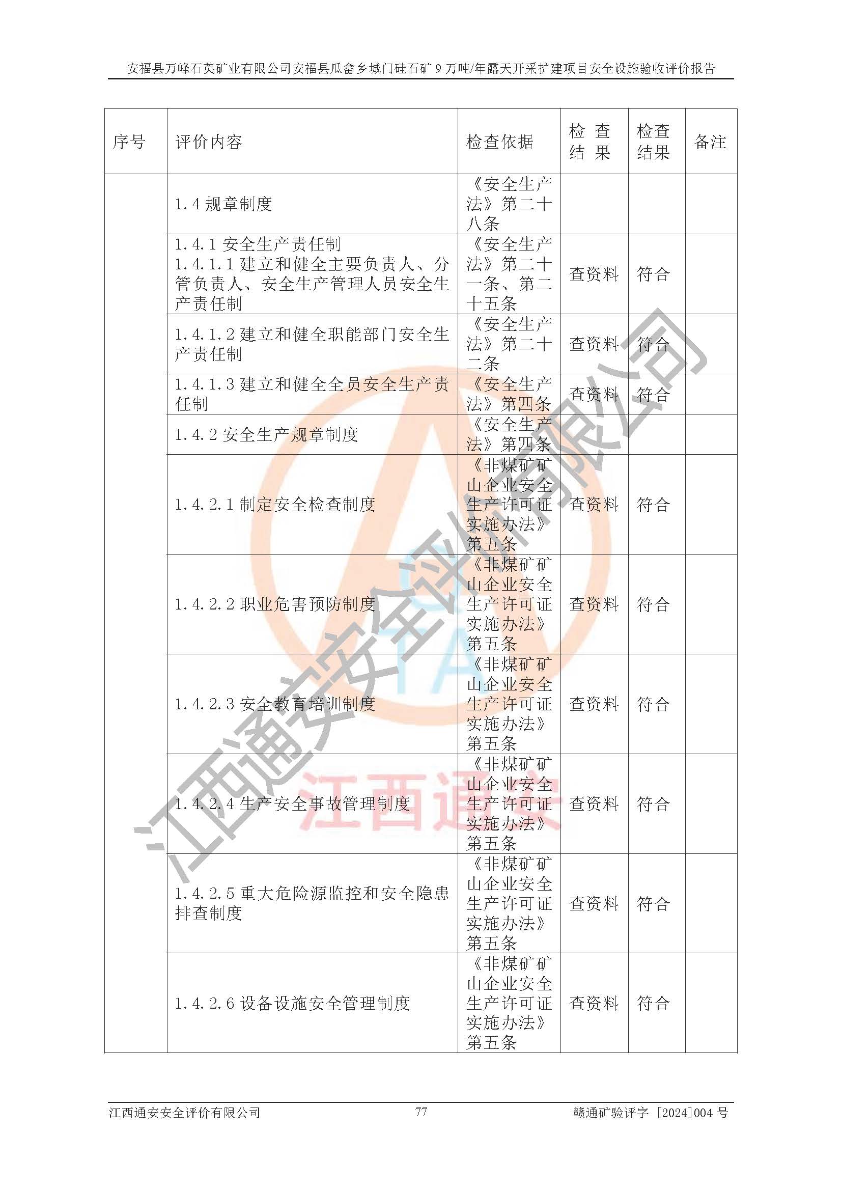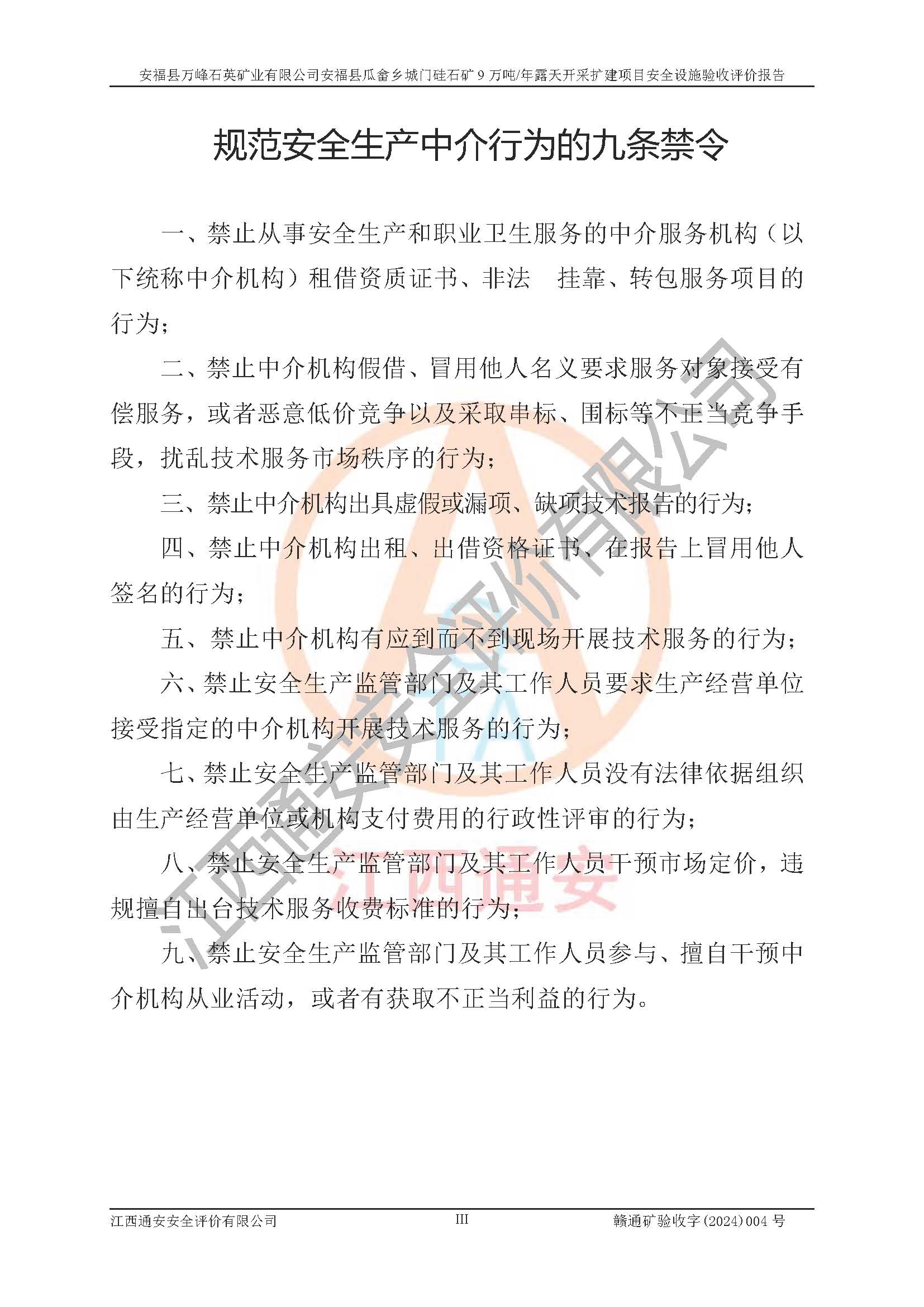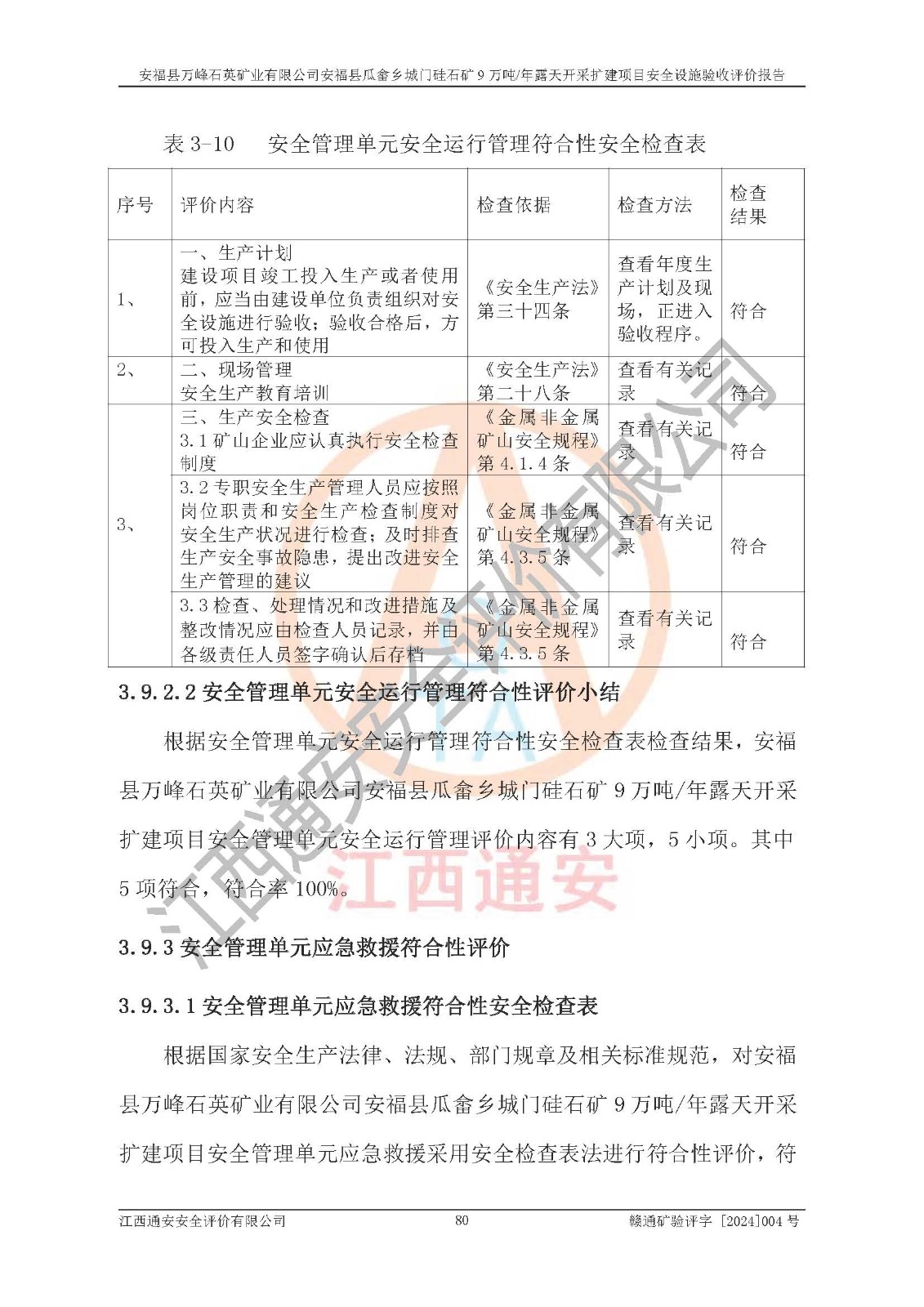 安??h萬(wàn)峰石英礦業(yè)有限公司安??h瓜畬鄉(xiāng)城門(mén)硅石礦礦區(qū)位于安??h城70°方向約15km處,行政區(qū)劃屬安福縣瓜畬鄉(xiāng)管轄。礦區(qū)位置地理坐標(biāo):東經(jīng)114°44′12"~114°44′29",北緯27°28′53"~27°28′57",礦區(qū)中心地理坐標(biāo):東經(jīng)114°44′20",北緯27°28′55"。礦區(qū)有約15km簡(jiǎn)易公路經(jīng)瓜畬鄉(xiāng)**所在地,與安?!掠喙废嘟?,交通方便。 安??h瓜畬鄉(xiāng)城門(mén)硅石礦于2016年3月8日取得采礦許可證,證號(hào)C3608002009027220004917,生產(chǎn)規(guī)模1萬(wàn)噸/年,礦區(qū)面積:0.0646km2。 因礦山生產(chǎn)規(guī)模滿足不了市場(chǎng)要求,加上礦區(qū)有些地征用比較困難,企業(yè)向吉安市自然資源局申請(qǐng)擴(kuò)大生產(chǎn)規(guī)模,并將礦區(qū)范圍進(jìn)行了縮小。 2019年6月8日取得了吉安市自然資源局換發(fā)的采礦許可證,證號(hào)C3608002009027220004917,生產(chǎn)規(guī)模9萬(wàn)噸/年,礦區(qū)面積為0.029km2。**期自2019年6月8日至2027年6月8日。由于新的采礦證擴(kuò)大了生產(chǎn)規(guī)模,且改變了礦區(qū)范圍,該項(xiàng)目屬于擴(kuò)建項(xiàng)目。 吉安市富林礦山技術(shù)服務(wù)有限公司于2019年9月編制了《安??h瓜畬鄉(xiāng)城門(mén)玻璃用石英巖礦資源儲(chǔ)量核實(shí)報(bào)告》,吉安市富林礦山技術(shù)服務(wù)有限公司于2020年4月編制了《安??h瓜畬鄉(xiāng)城門(mén)玻璃用石英巖礦礦產(chǎn)資源開(kāi)發(fā)利用、地質(zhì)環(huán)境恢復(fù)治理與土地復(fù)墾方案》,貴州匯和安全評(píng)價(jià)有限公司于2023年4月編制了《安??h萬(wàn)峰石英礦業(yè)有限公司安??h瓜畬鄉(xiāng)城門(mén)硅石礦9萬(wàn)噸/年露天開(kāi)采擴(kuò)建項(xiàng)目安全預(yù)評(píng)價(jià)報(bào)告》,河南華鼎礦業(yè)設(shè)計(jì)有限公司于2023年6月編制了《安??h萬(wàn)峰石英礦業(yè)有限公司安??h瓜畬鄉(xiāng)城門(mén)硅石礦9萬(wàn)噸/年露天開(kāi)采擴(kuò)建項(xiàng)目初步設(shè)計(jì)》和《安??h萬(wàn)峰石英礦業(yè)有限公司安福縣瓜畬鄉(xiāng)城門(mén)硅石礦9萬(wàn)噸/年露天開(kāi)采擴(kuò)建項(xiàng)目安全設(shè)施設(shè)計(jì)》;2023年7月3日安??h應(yīng)急管理局下發(fā)了《關(guān)于安福縣萬(wàn)峰石英礦業(yè)有限公司安??h瓜畬鄉(xiāng)城門(mén)硅石礦9萬(wàn)噸/年露天開(kāi)采擴(kuò)建項(xiàng)目安全設(shè)施設(shè)計(jì)審查意見(jiàn)》(安應(yīng)急字〔2023〕30號(hào))。 2023年7月安??h萬(wàn)峰石英礦業(yè)有限公司根據(jù)《中華人民共和國(guó)安全生產(chǎn)法》、《安全生產(chǎn)許可證條例》等有關(guān)法律、法規(guī)、部門(mén)規(guī)章的規(guī)定,嚴(yán)格按照《安全設(shè)施設(shè)計(jì)》進(jìn)行基建,該礦山分東、西兩個(gè)采區(qū),西采區(qū)設(shè)計(jì)+259m平臺(tái)為采剝平臺(tái)、+249m平臺(tái)為鏟裝平臺(tái),開(kāi)拓運(yùn)輸?shù)缆分?249m平臺(tái),在基建過(guò)程中,剝離表土?xí)r因表土層發(fā)生變化,+259m采剝平臺(tái)無(wú)硅石資源可采,因此首采平臺(tái)及其鏟裝平臺(tái)、開(kāi)拓運(yùn)輸?shù)缆?*進(jìn)行變更。 2024年4月礦山委托原設(shè)計(jì)單位河南華鼎礦業(yè)設(shè)計(jì)有限公司編制了《安??h萬(wàn)峰石英礦業(yè)有限公司安??h瓜畬鄉(xiāng)城門(mén)硅石礦9萬(wàn)噸/年露天開(kāi)采擴(kuò)建項(xiàng)目變更設(shè)計(jì)》,根據(jù)礦山西采區(qū)+259m、+249m、+239m平臺(tái)均無(wú)硅石資源的實(shí)際情況,對(duì)設(shè)計(jì)的西采區(qū)+259m平臺(tái)為采剝平臺(tái)、+249m平臺(tái)為鏟裝平臺(tái),開(kāi)拓運(yùn)輸?shù)缆分?249m平臺(tái)進(jìn)行變更,將+259m平臺(tái)、+249m平臺(tái)變更為安全平臺(tái),+239m平臺(tái)仍為清掃平臺(tái),首采平臺(tái)變更為+229m平臺(tái)、鏟裝平臺(tái)變更為+219m平臺(tái),開(kāi)拓運(yùn)輸?shù)缆分?219m平臺(tái)、簡(jiǎn)易道路至+229m平臺(tái);東采區(qū)安全設(shè)施設(shè)計(jì)不變,根據(jù)《**礦山監(jiān)察局關(guān)于印發(fā)非煤礦山建設(shè)項(xiàng)目安全設(shè)施重大變更范圍的通知》之規(guī)定,上述變更不屬于重大變更。 安??h萬(wàn)峰石英礦業(yè)有限公司安??h瓜畬鄉(xiāng)城門(mén)硅石礦9萬(wàn)噸/年露天開(kāi)采擴(kuò)建項(xiàng)目基建已完成,本次安全設(shè)施驗(yàn)收評(píng)價(jià)未涉及凹陷露天開(kāi)采。 |