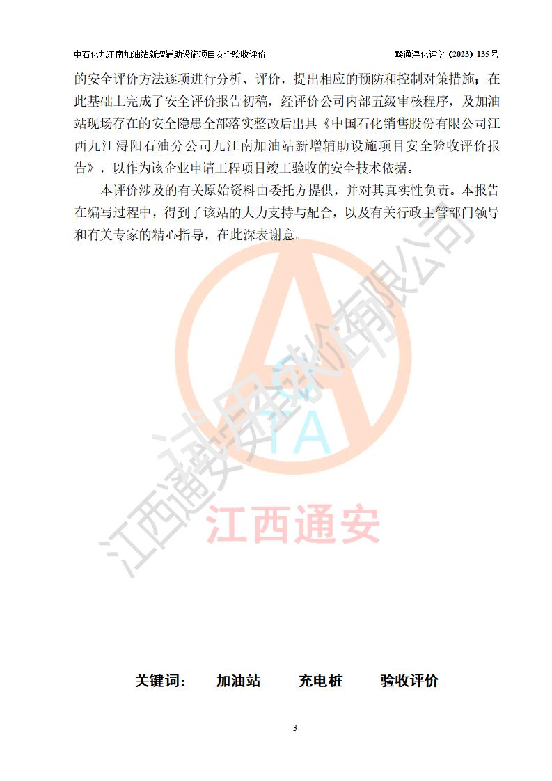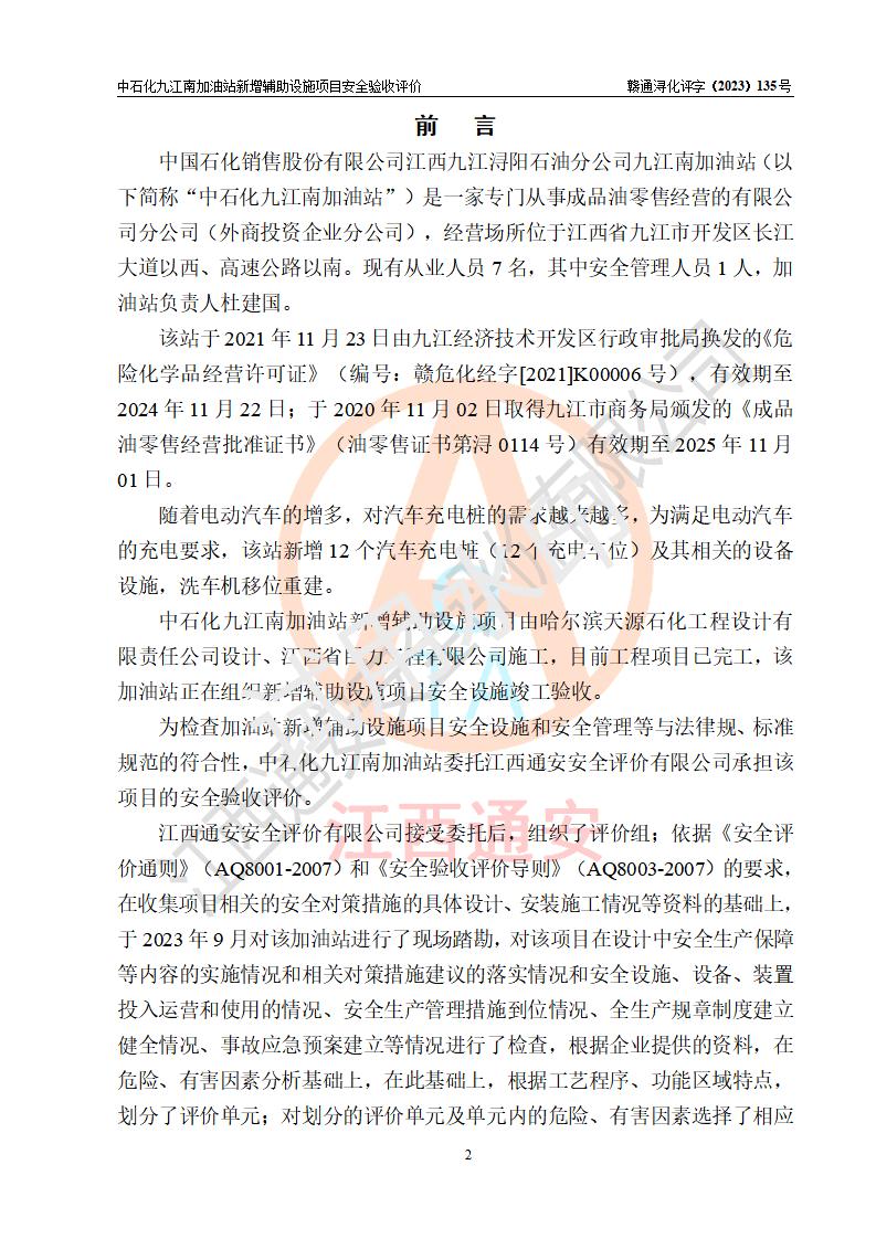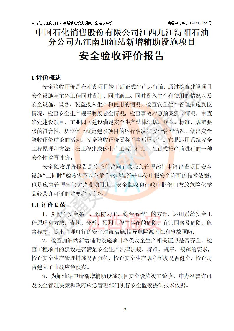評價報告名稱 | 中國石化銷售股份有限公司江西九江潯陽石油分公司九江南加油站新增輔助設(shè)施項目安全驗收評價報告 | |||