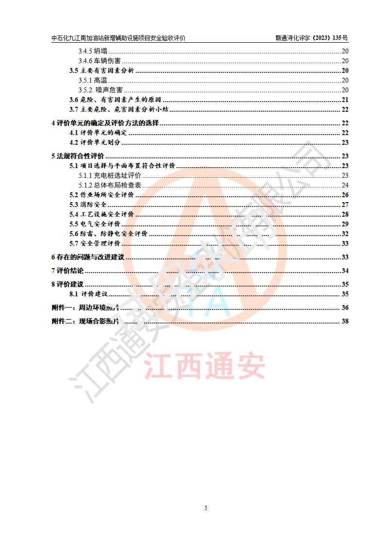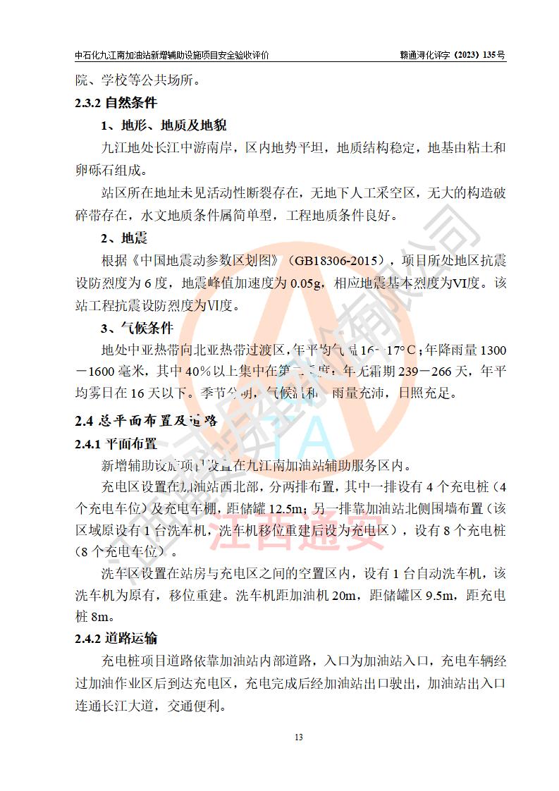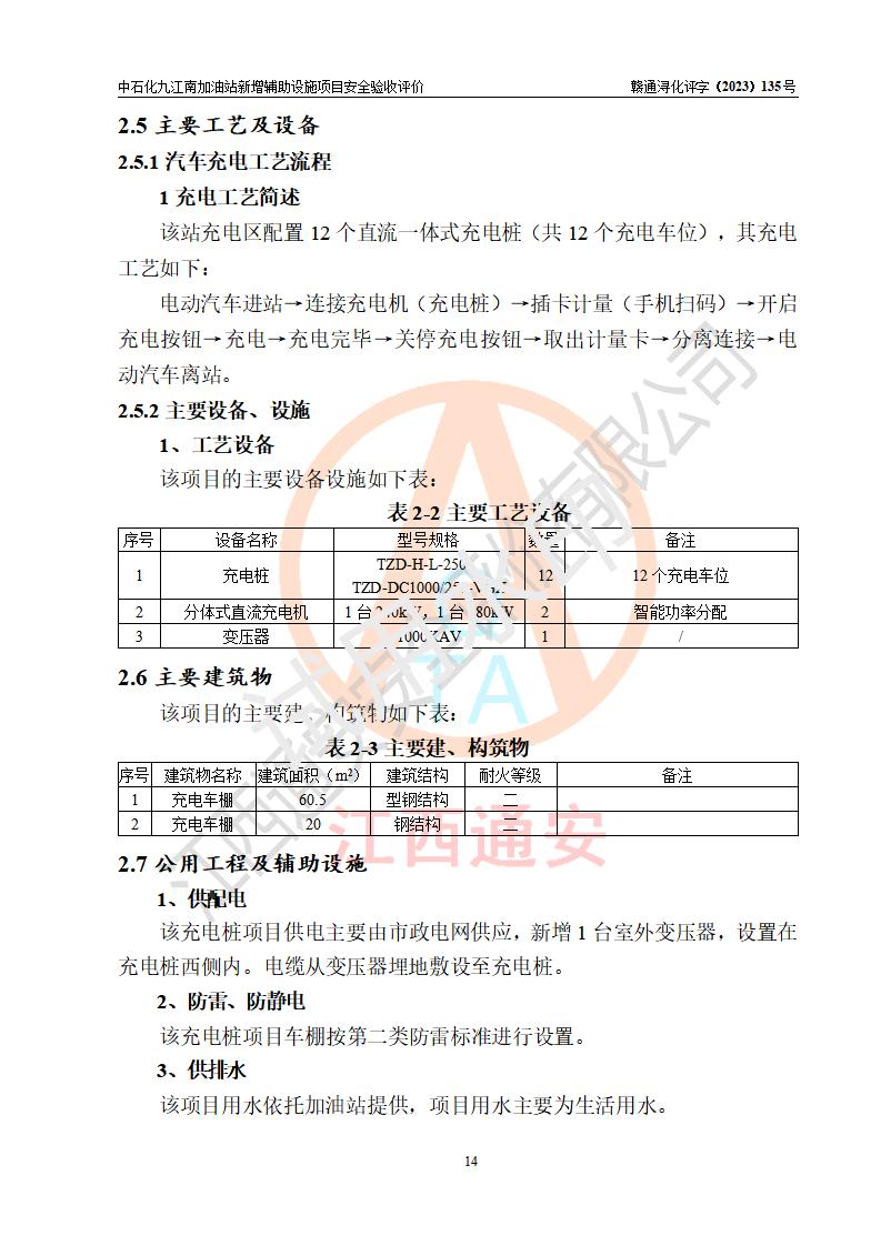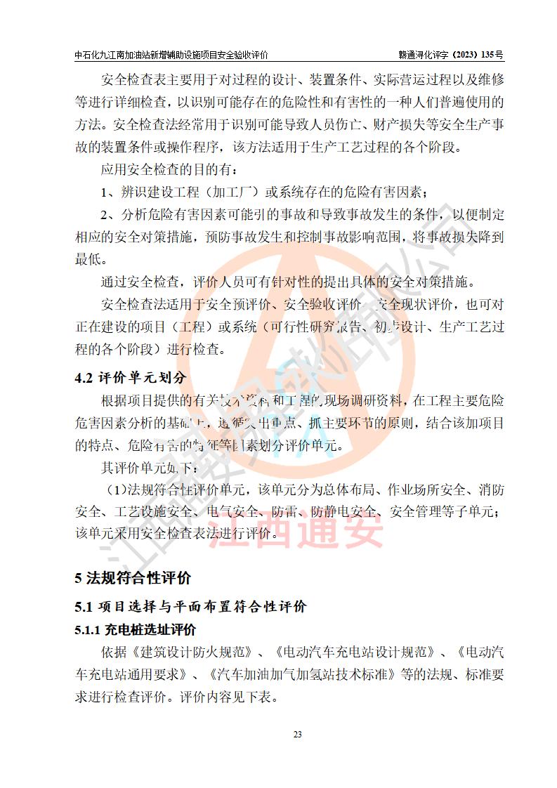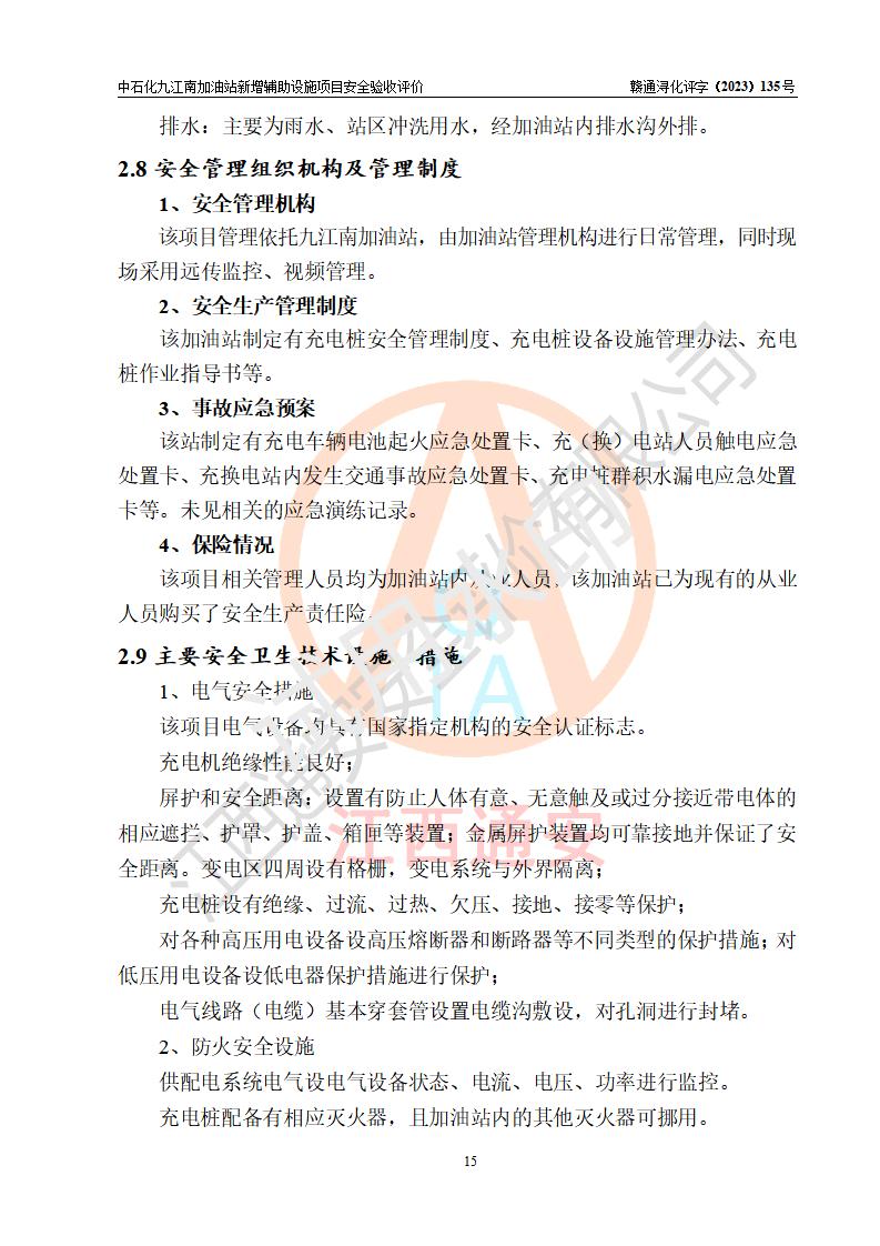 評價結(jié)論 | 中國石化銷售股份有限公司江西九江潯陽石油分公司九江南加油站新增輔助設(shè)施項目涉及的安全條件、安全生產(chǎn)條件、安全生產(chǎn)管理符合《電動汽車充電站設(shè)計規(guī)范》、《汽車加油加氣加氫站技術(shù)標準》等**有關(guān)法規(guī)、標準、規(guī)范要求,能滿足經(jīng)營單位的安全條件,具備項目竣工驗收的條件。 | |||