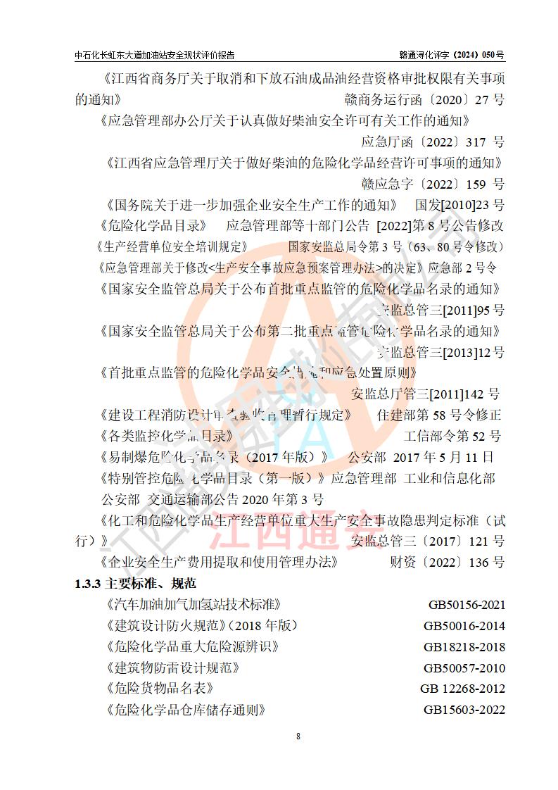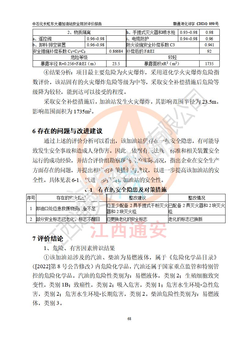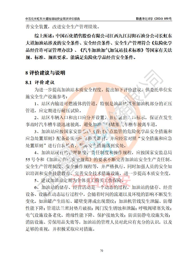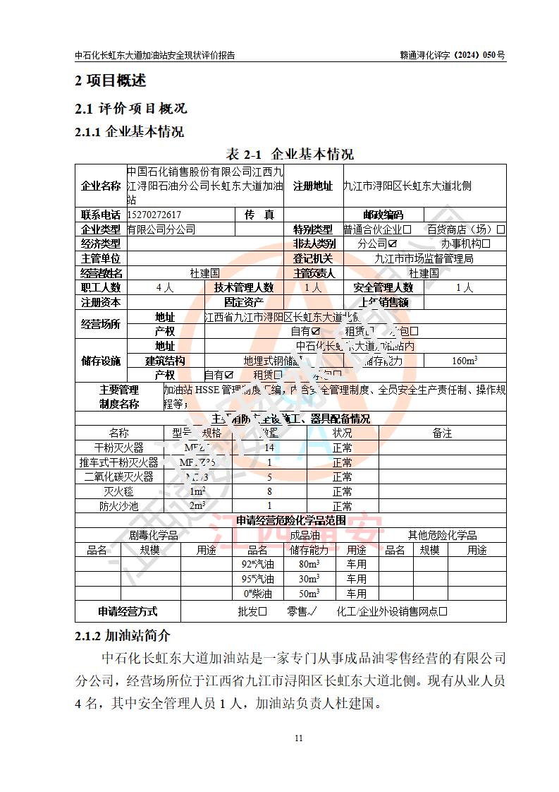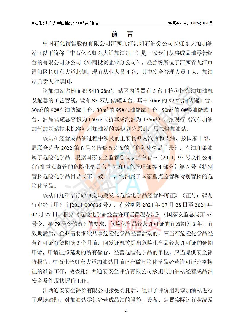 評(píng)價(jià)報(bào)告名稱 | 中國石化銷售股份有限公司江西九江潯陽石油分公司長虹東大道加油站安全現(xiàn)狀評(píng)價(jià)報(bào)告 | |||