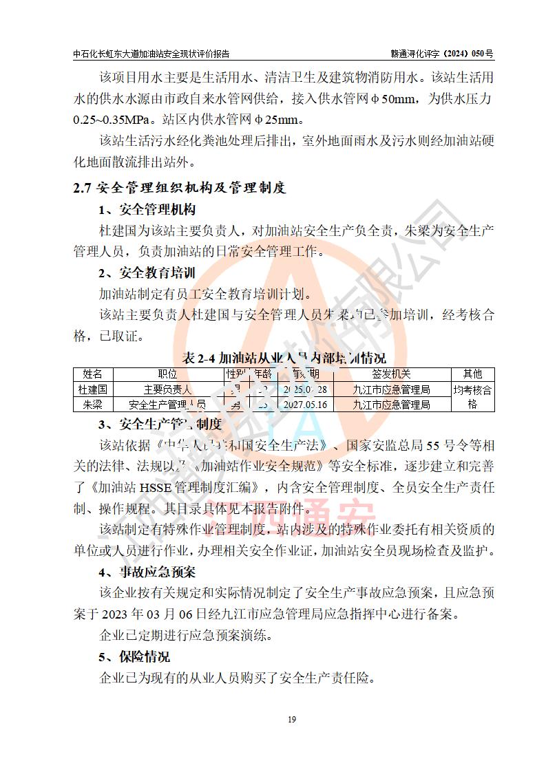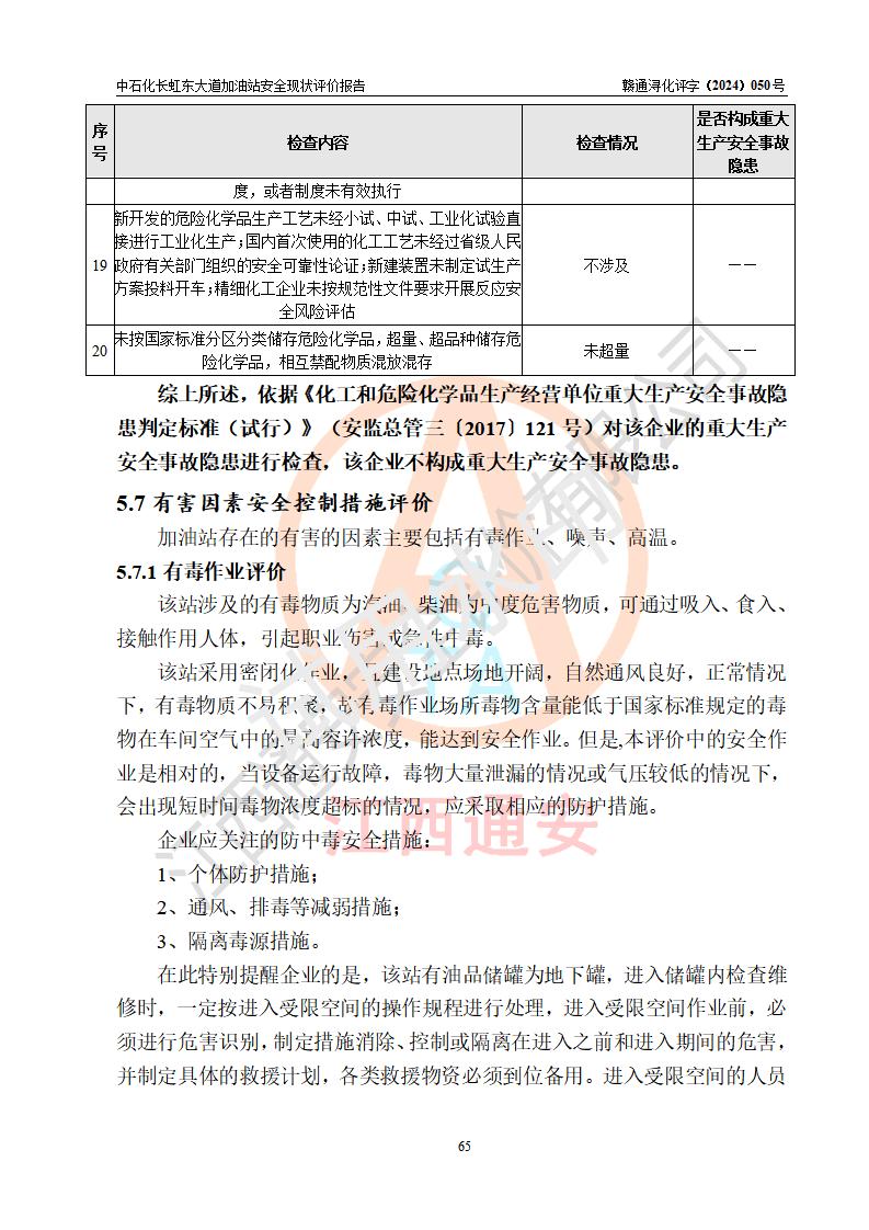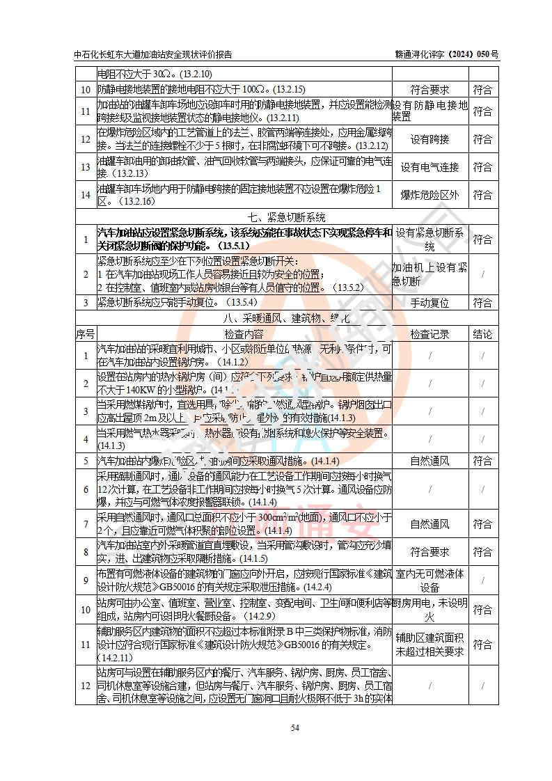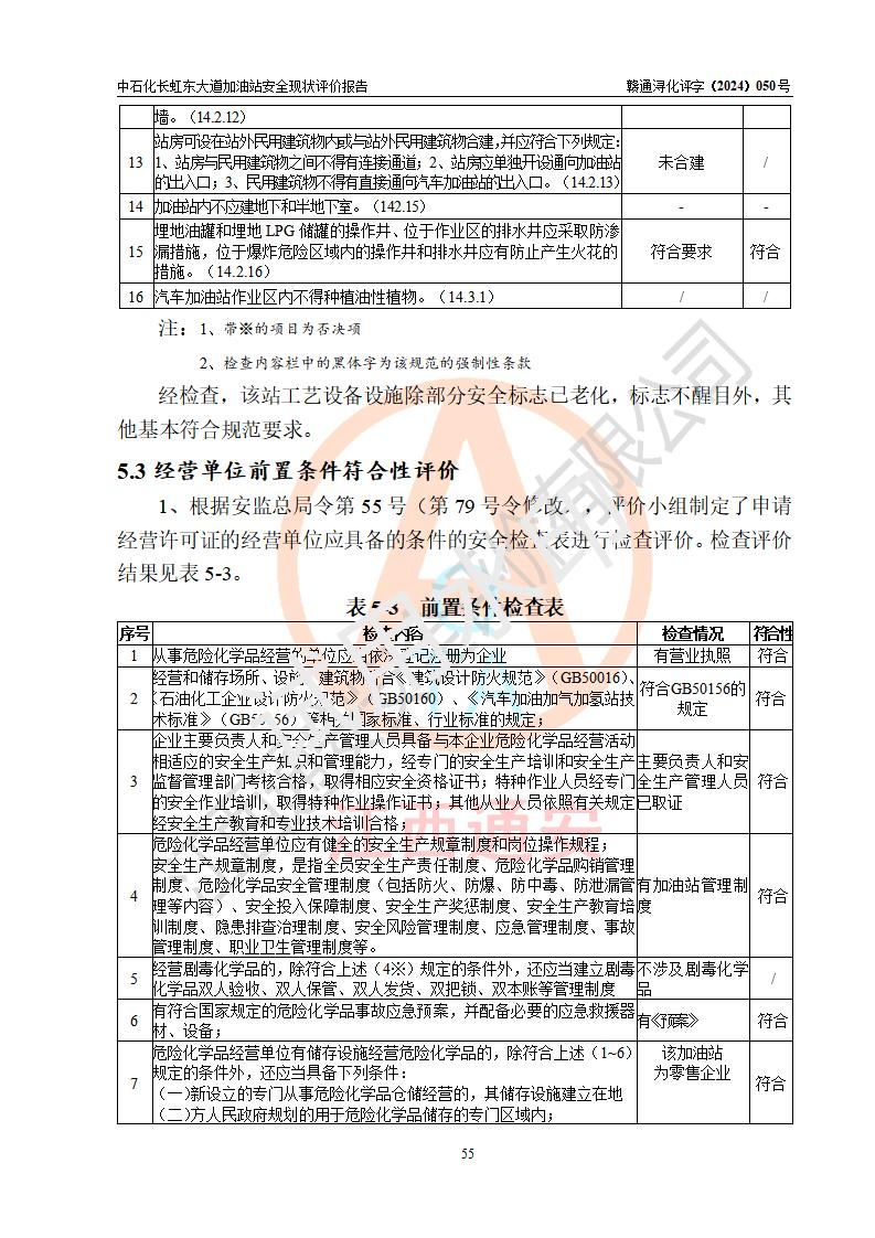 評(píng)價(jià)結(jié)論 | 中國石化銷售股份有限公司江西九江潯陽石油分公司長虹東大道加油站涉及的安全條件、安全經(jīng)營條件、安全生產(chǎn)管理符合《危險(xiǎn)化學(xué)品經(jīng)營許可證管理辦法》、《汽車加油加氣加氫站技術(shù)標(biāo)準(zhǔn)》等**有關(guān)法規(guī)、標(biāo)準(zhǔn)、規(guī)范要求,能滿足危險(xiǎn)化學(xué)品經(jīng)營安全條件。 | |||